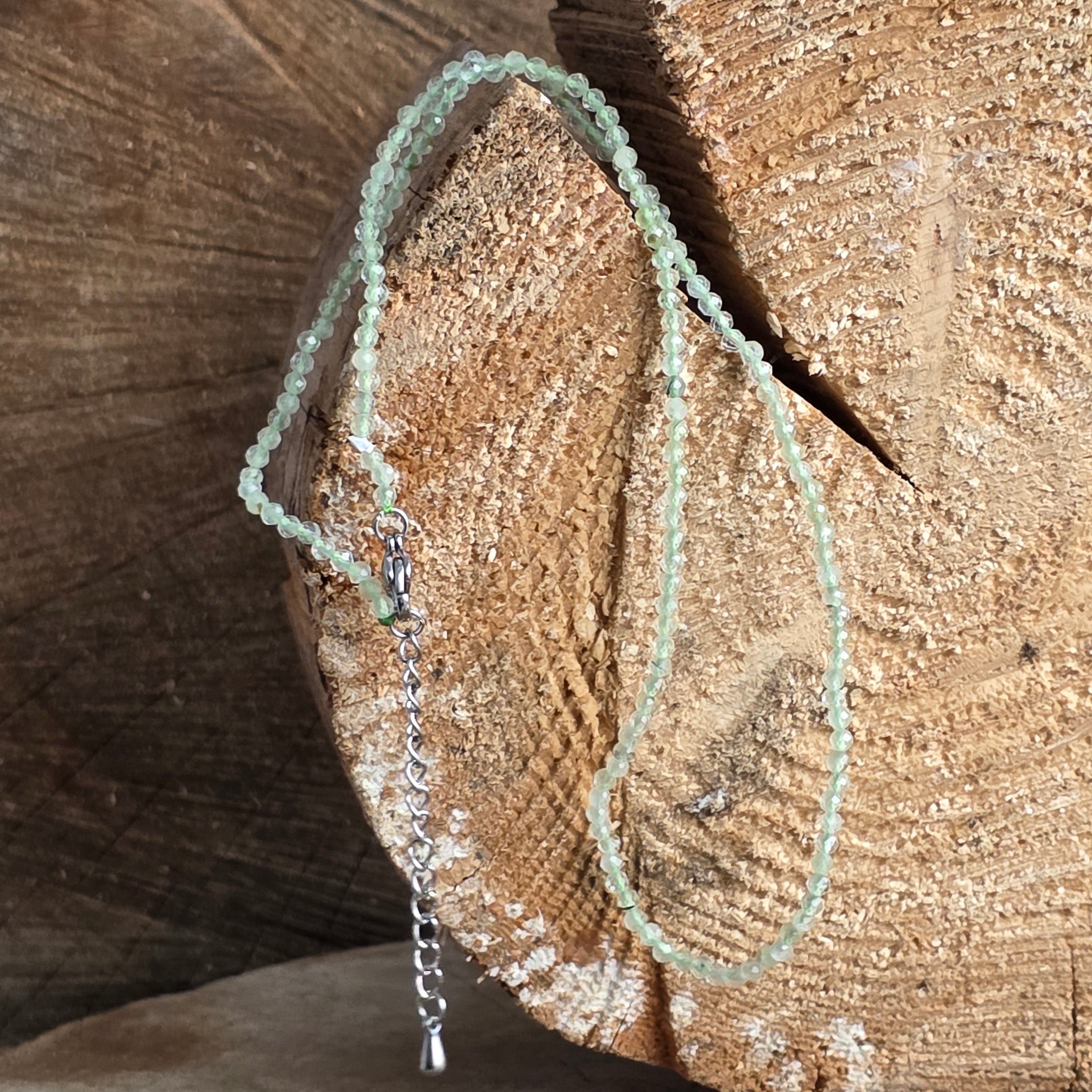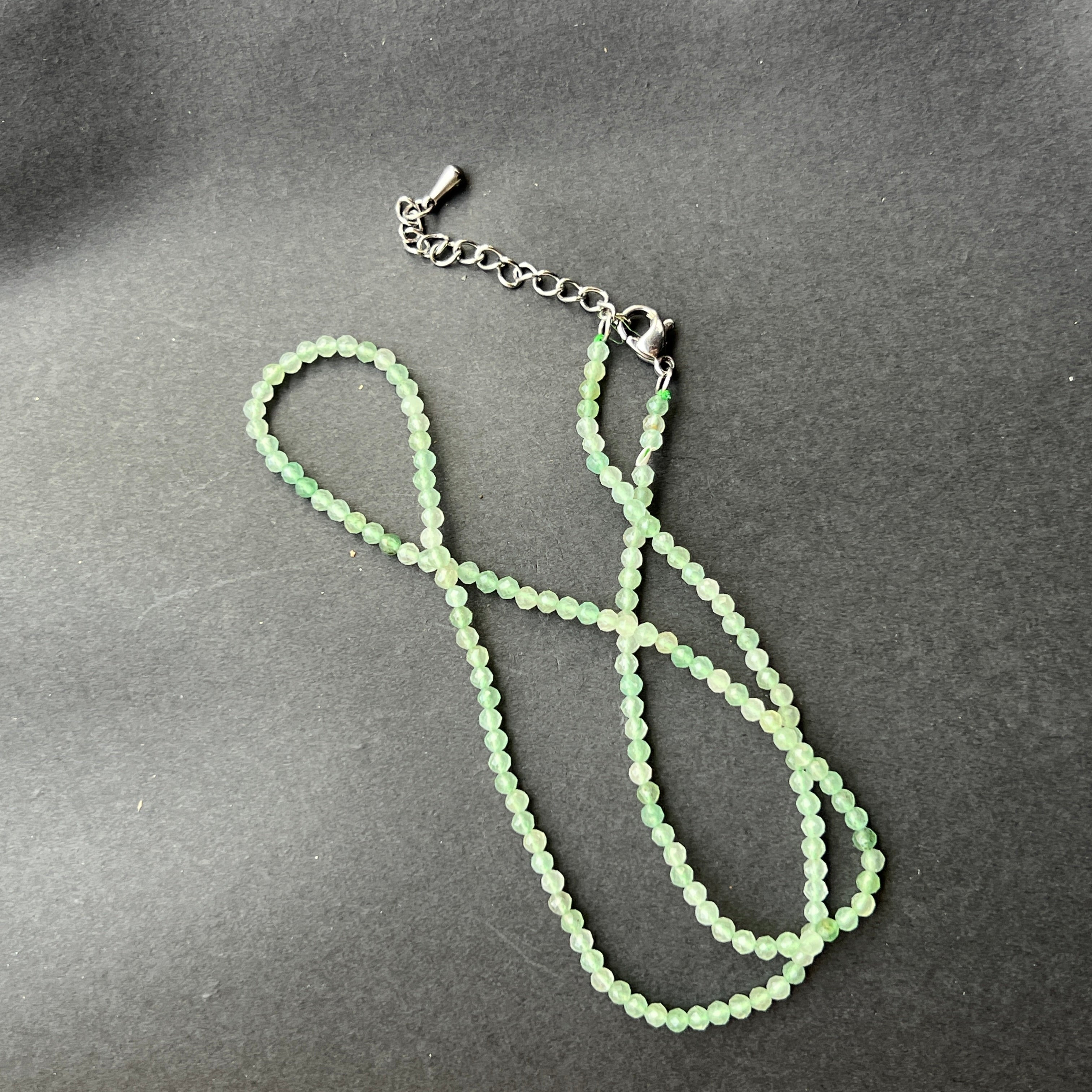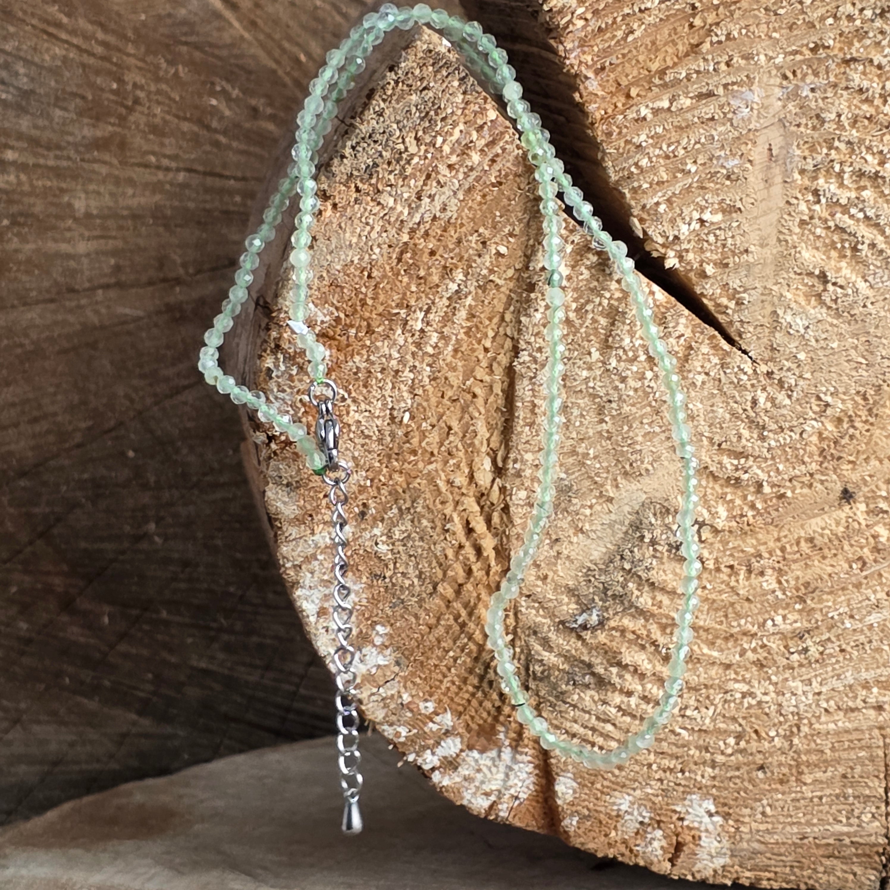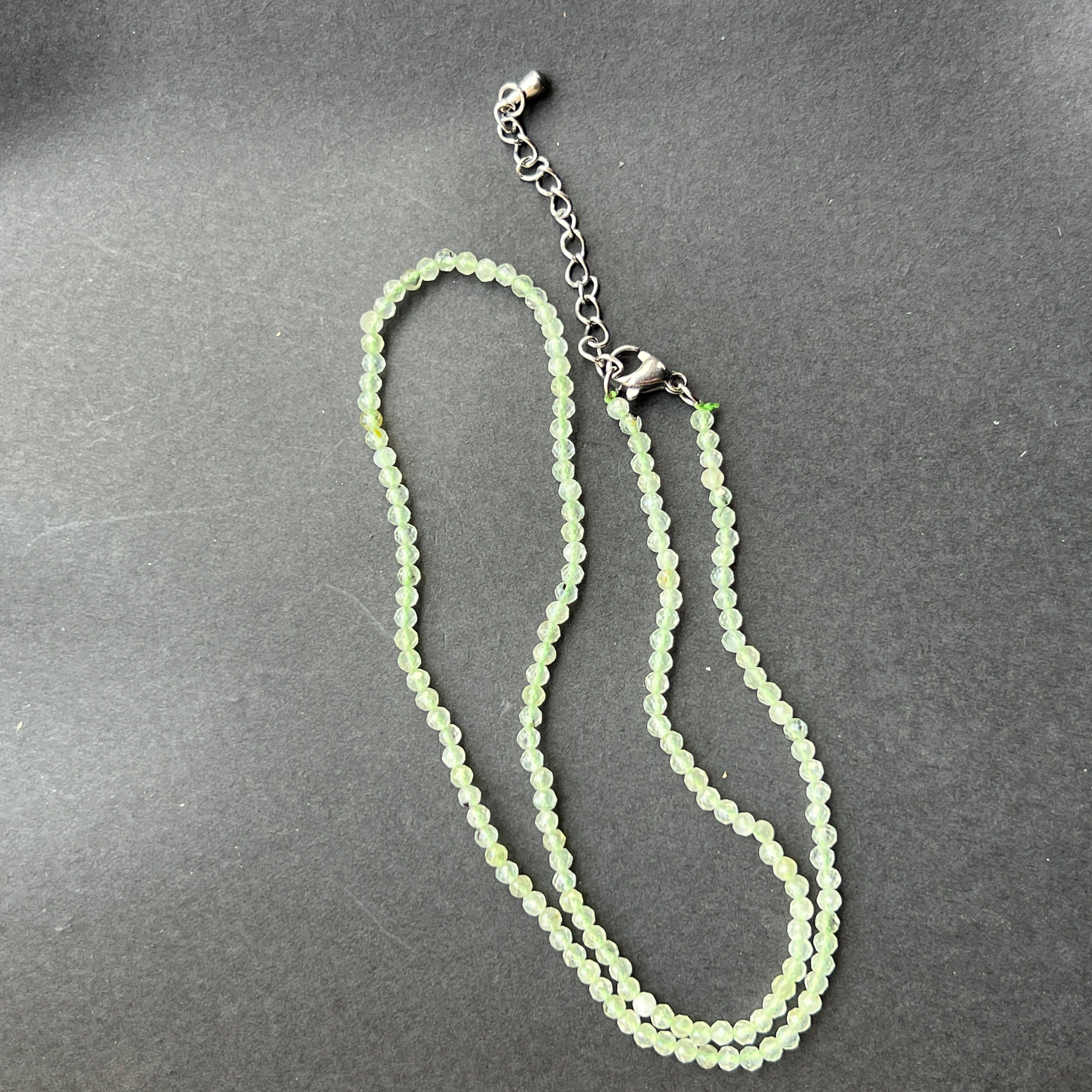 Prehnit gyöngy nyaklánc 2 mm, méret: 38 + 5 cm (hosszabbító lánc)