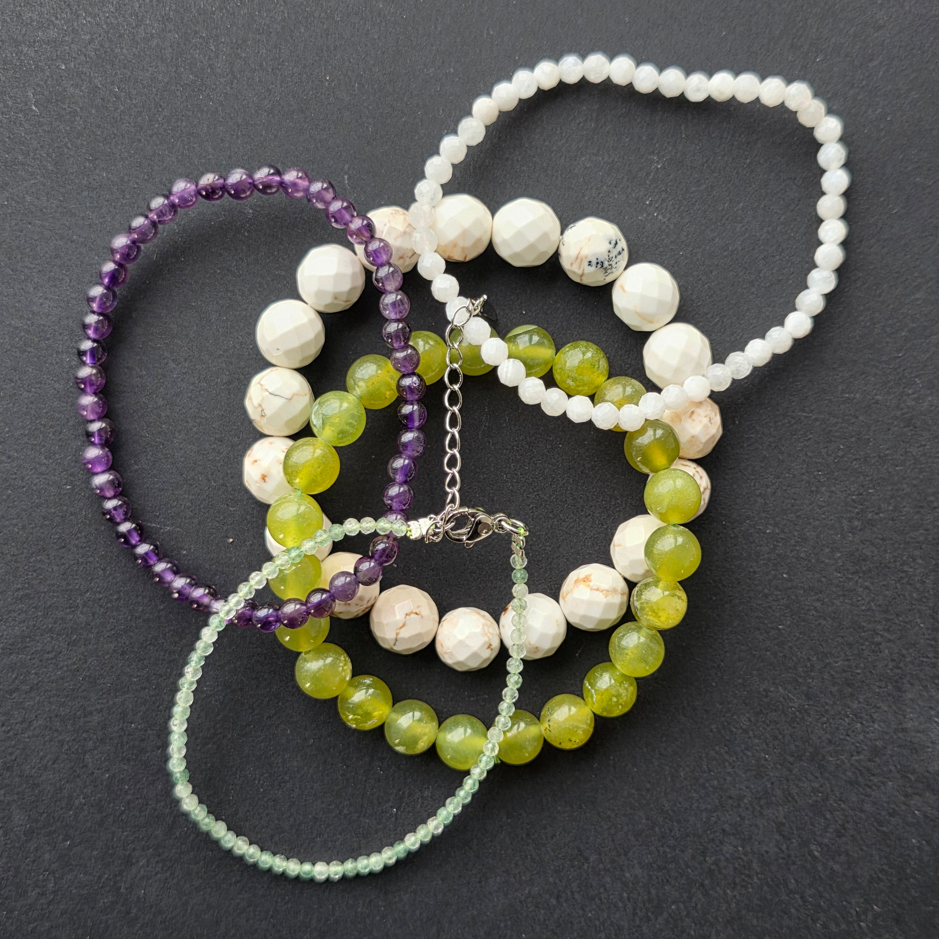 Ez a szett a Rák nő számára készült — intuitív, mély, szeretetteljes és összhangban van az érzelmeivel, akár egy belső óceánnal. Érzékenysége erőssége, a családjával és a saját lelkével való kapcsolata fényes, és a gondoskodás adásának és elfogadásának képessége meghatározza őt. A szett kövei támogatják ezeket a természetes adottságokat, védelmet, érzelmi egyensúlyt és intuíciós tisztánlátást nyújtanak.