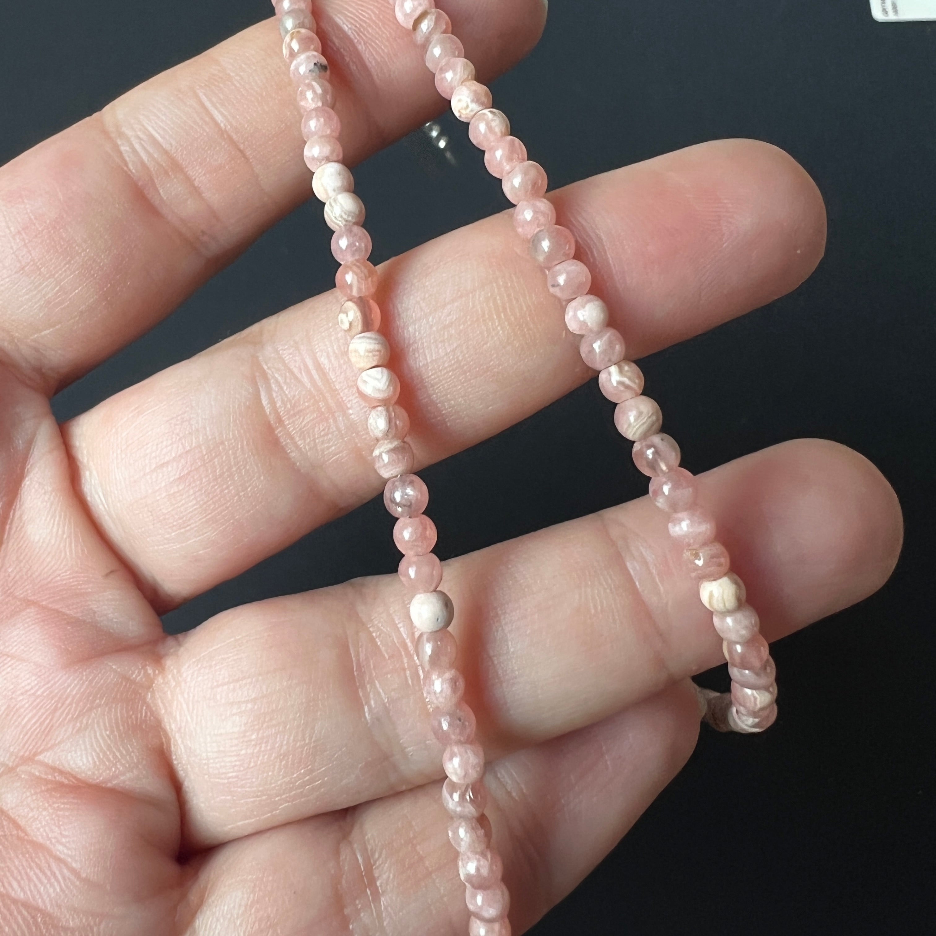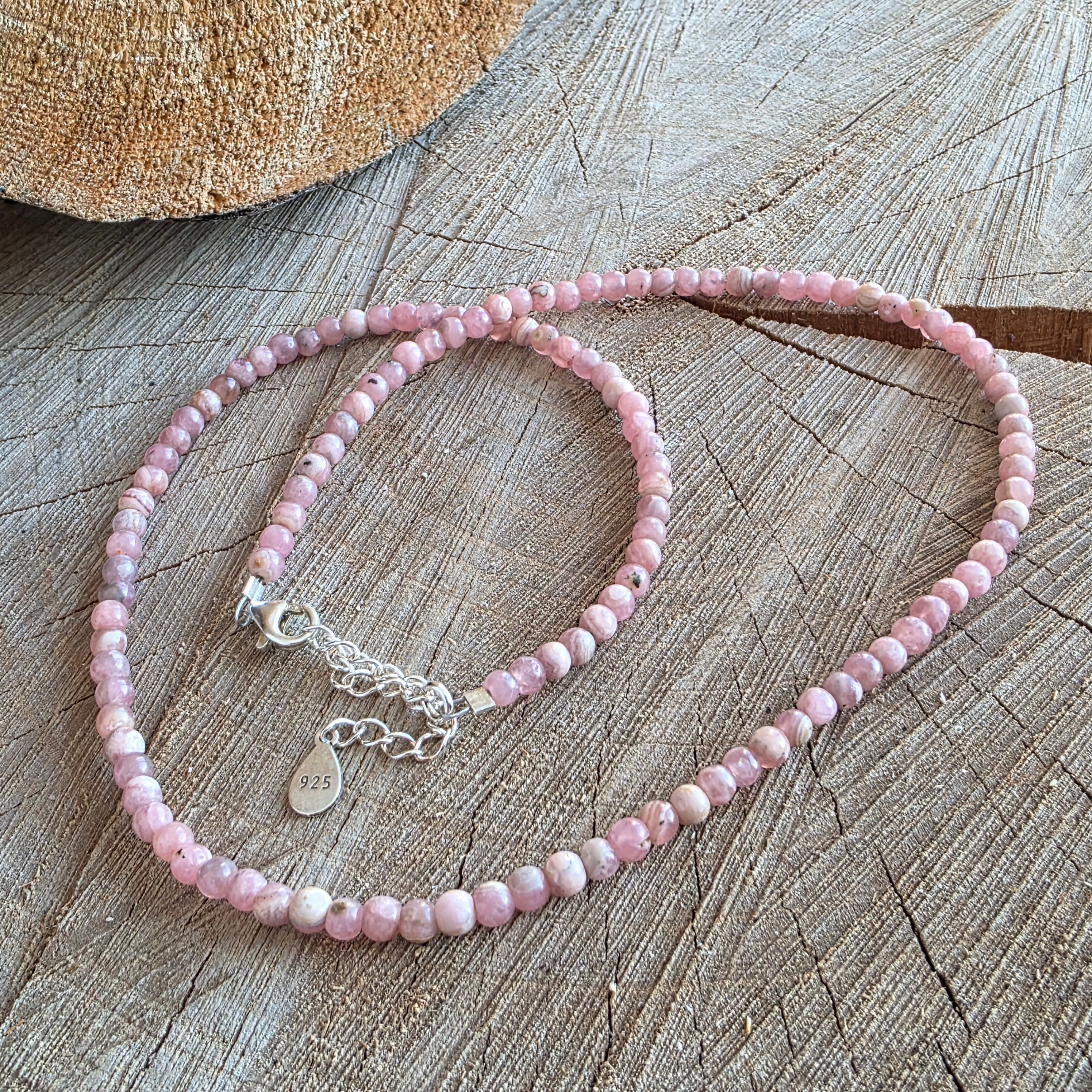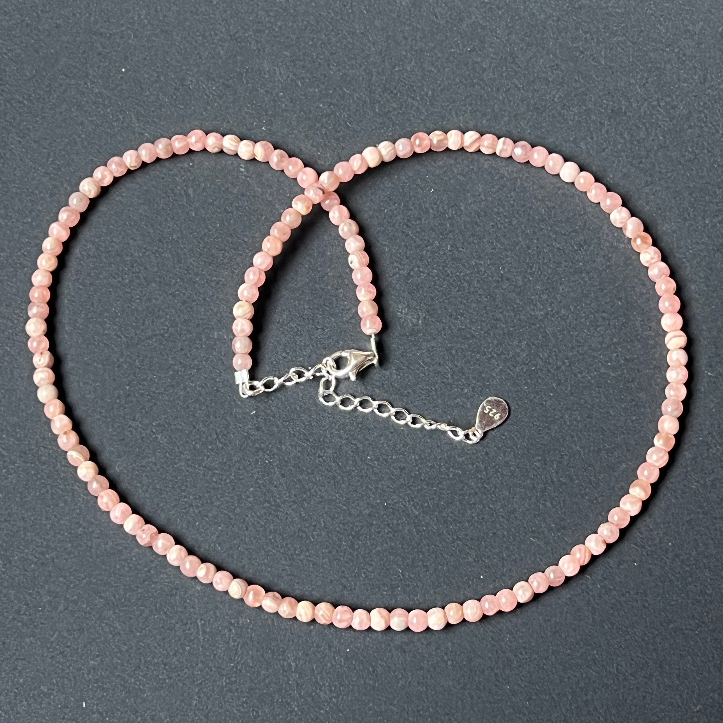 Egy finom, mégis mély érzéseket hordozó nyaklánc, mint egy finom rezgés, amely közvetlenül a szívből árad. Természetes rodokrozitbólkészült, 4 mm-es apró gömbökben, a nyaklánc úgy tűnik, mintha az időben lebegő lélegzet lenne – könnyed, élénk és meleg.