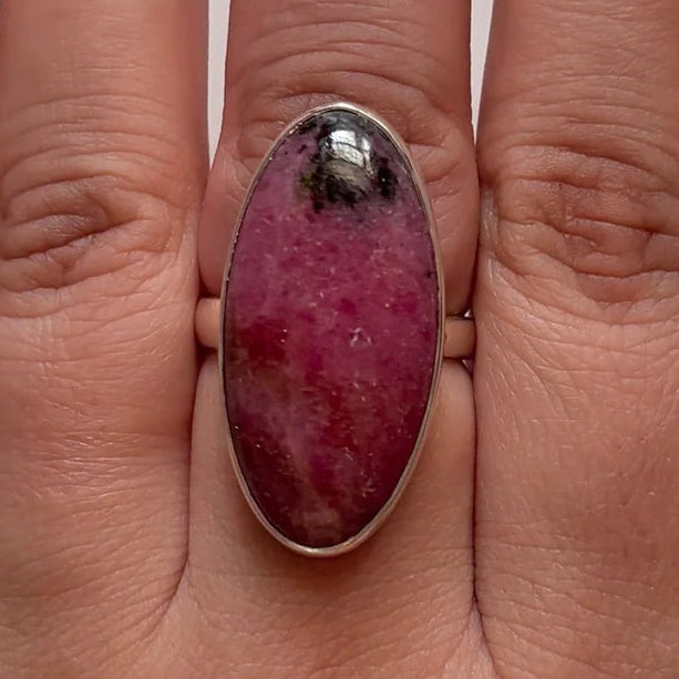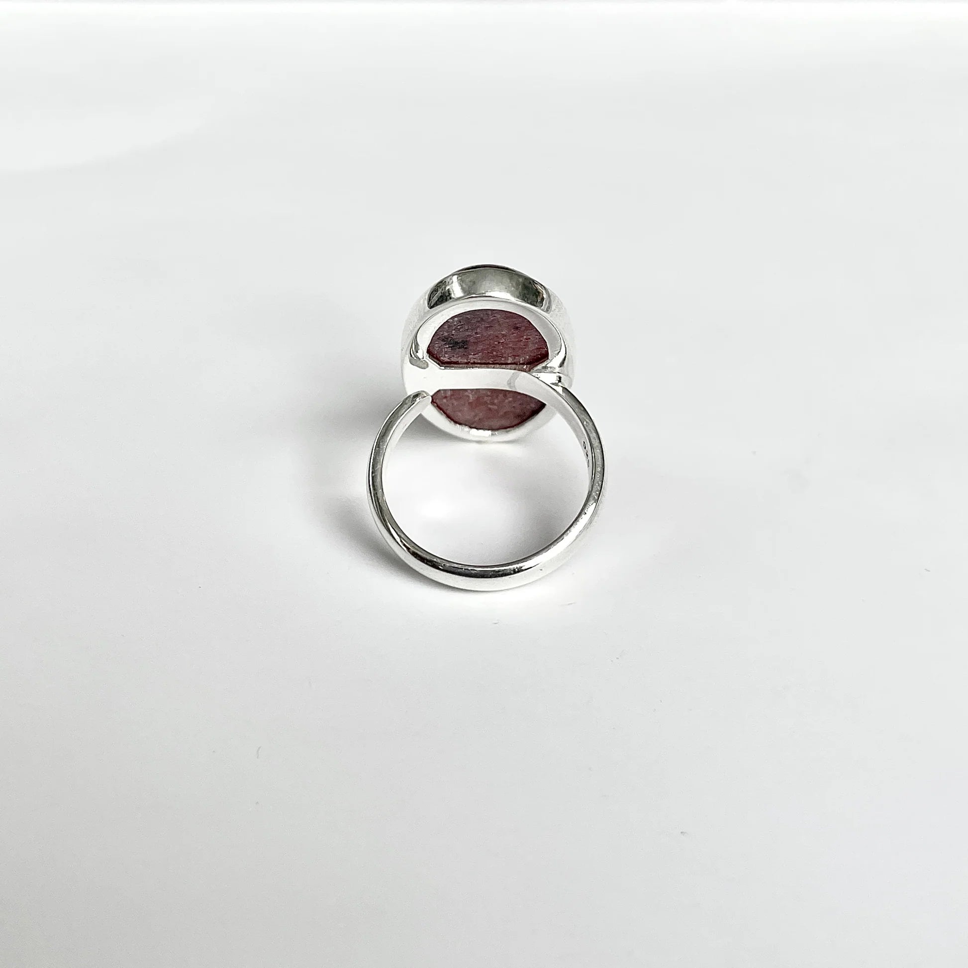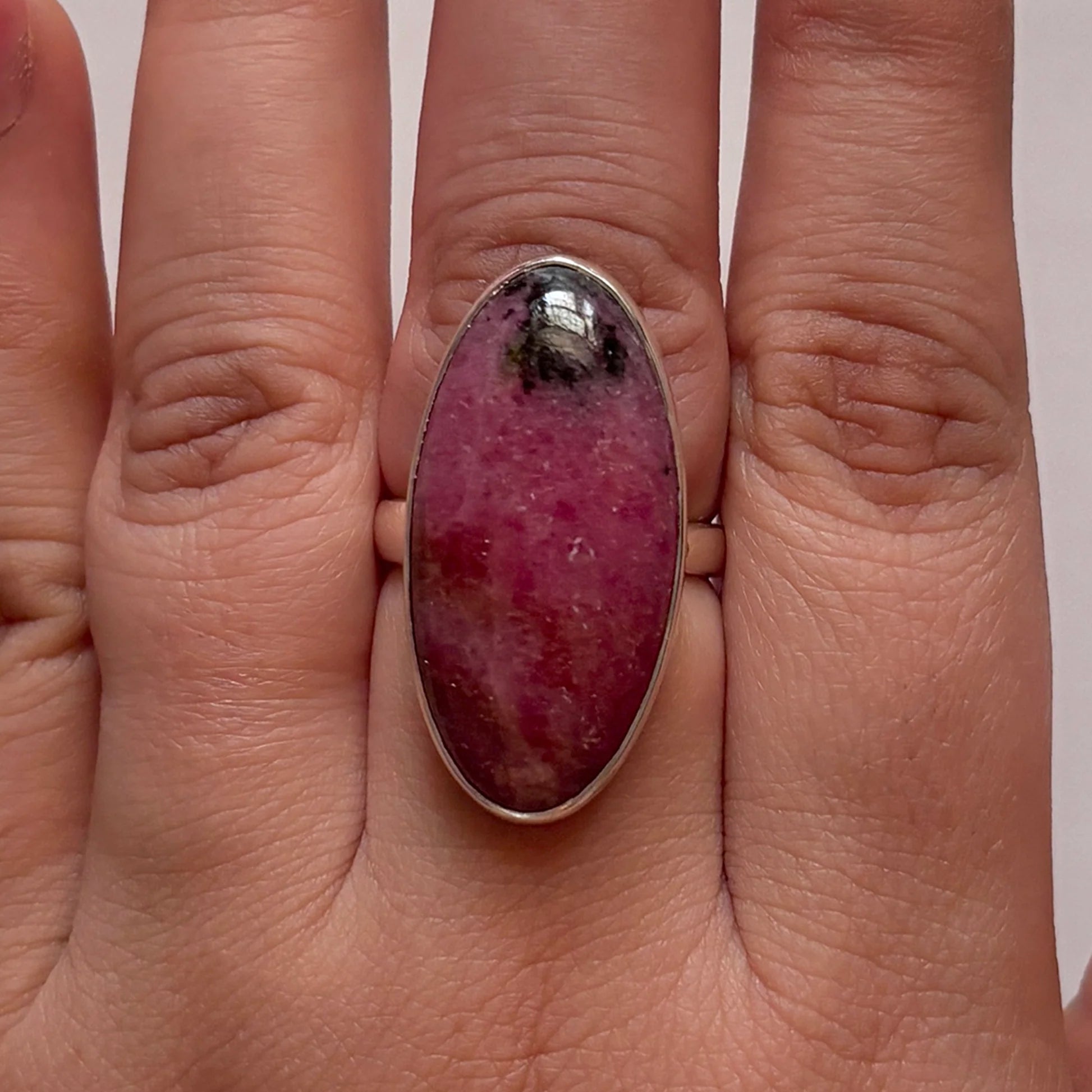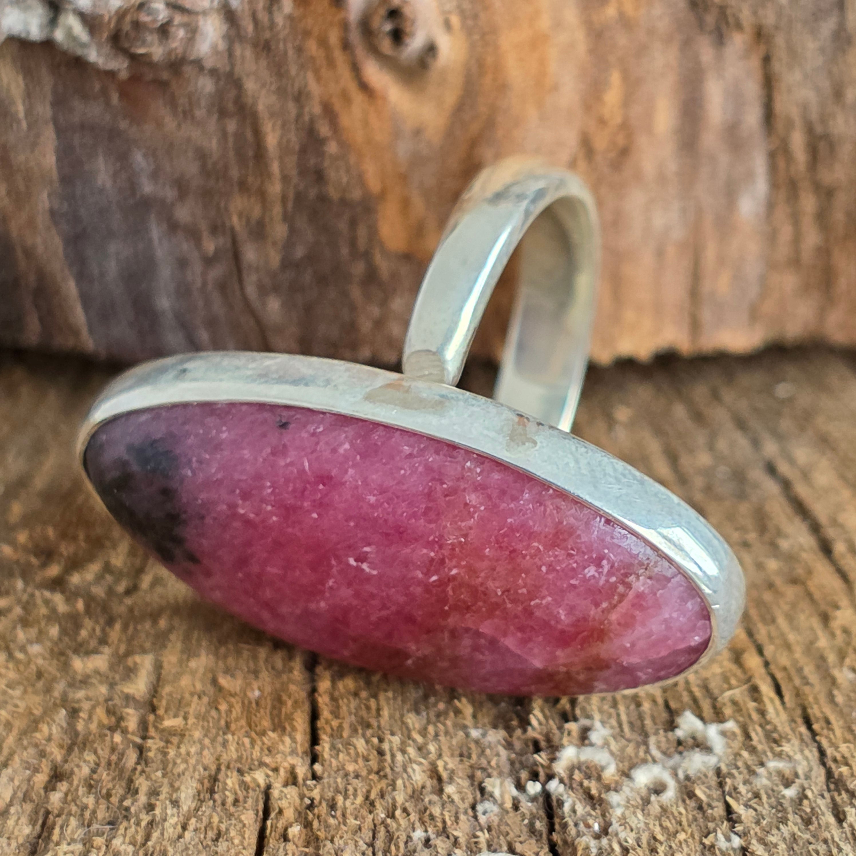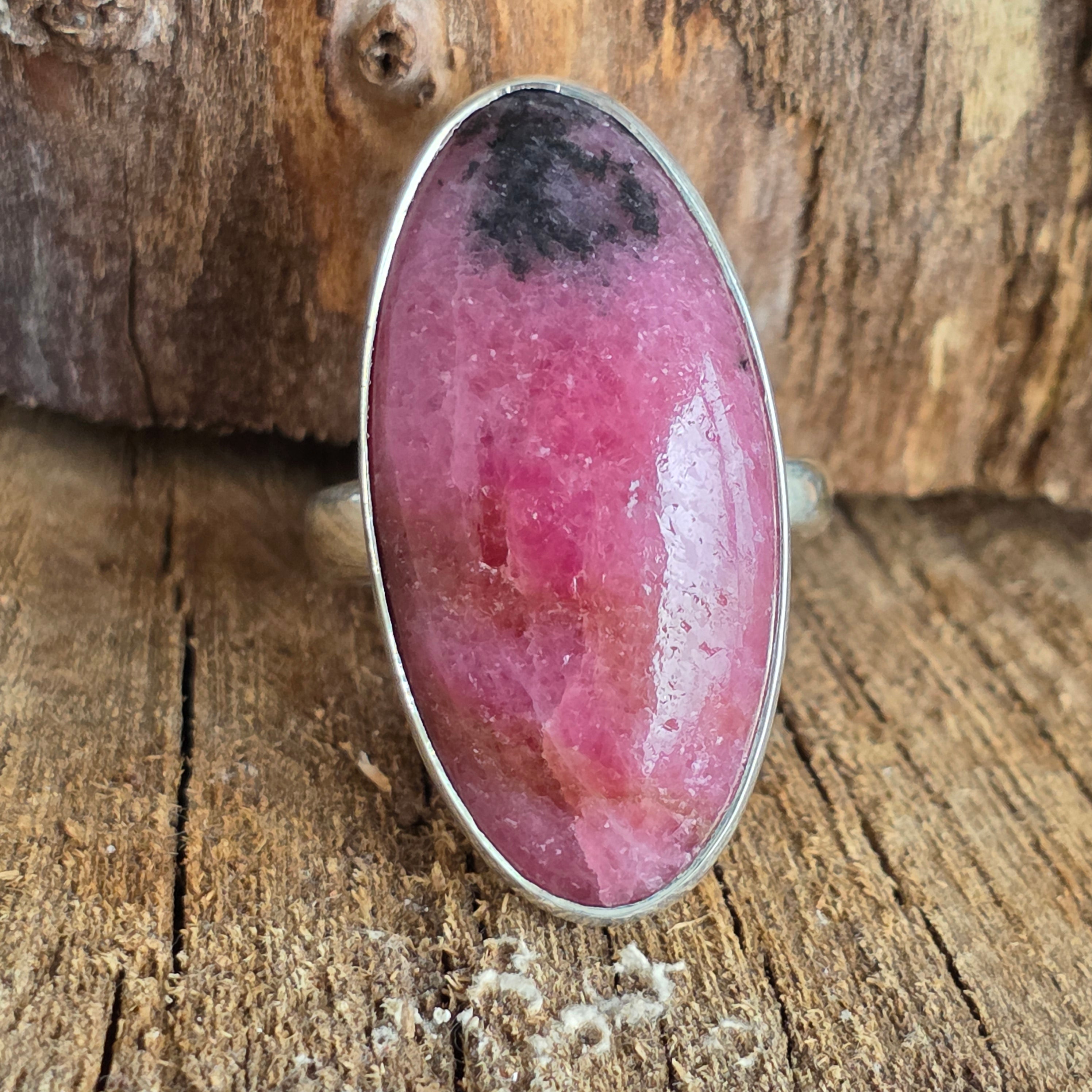 Viseld ezt a rodonit gyűrűt, hogy plusz eleganciát és harmóniát adj az életedhez – egy egyedi ékszer, amelyet azoknak a lelkeknek terveztek, akik szeretik a természetes szépséget és a kristályok gyógyító energiáját.