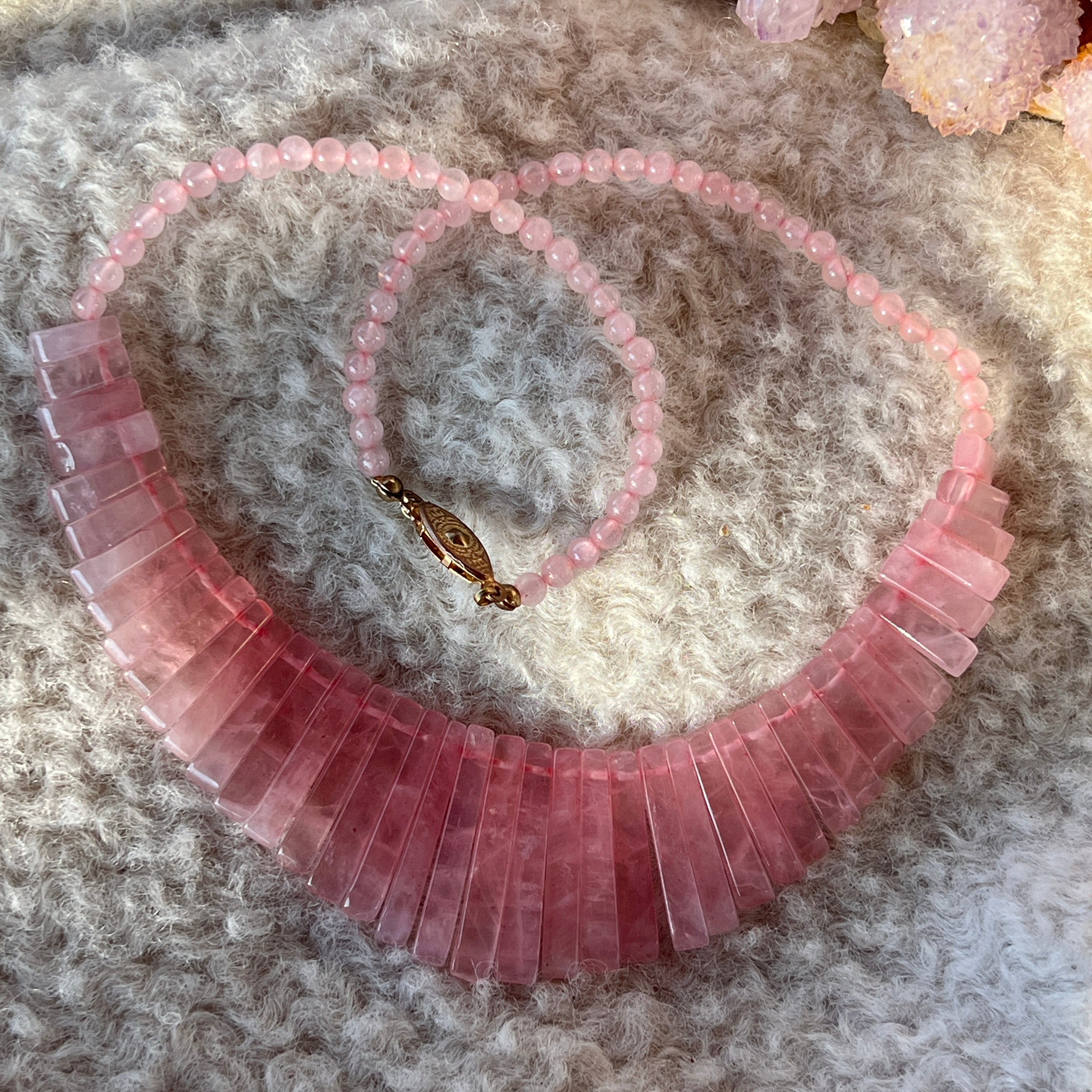 Descriere - Rózsakvarc egyiptomi nyaklánc