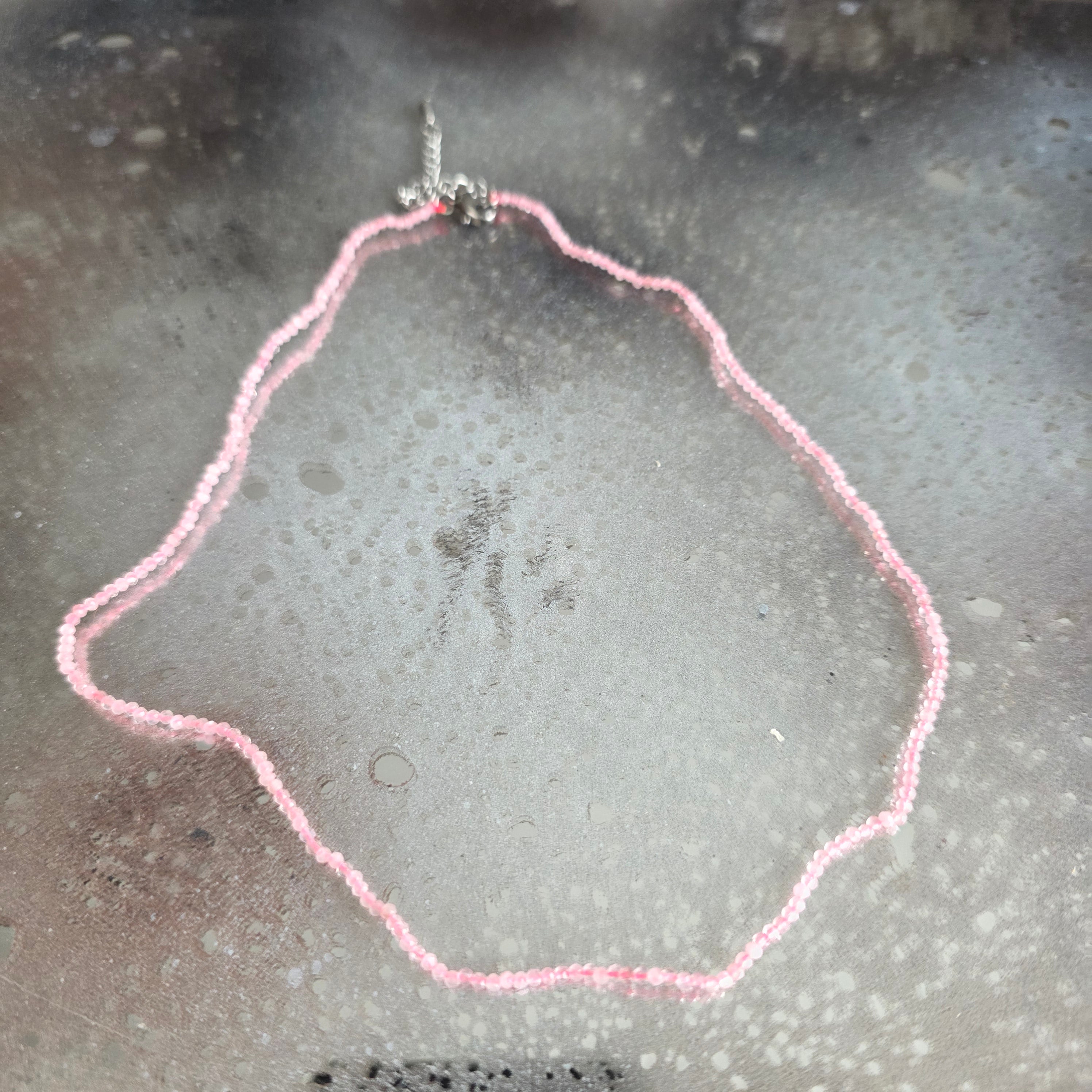 Leírás - Rózsakvarc gyöngy nyaklánc 2 mm
