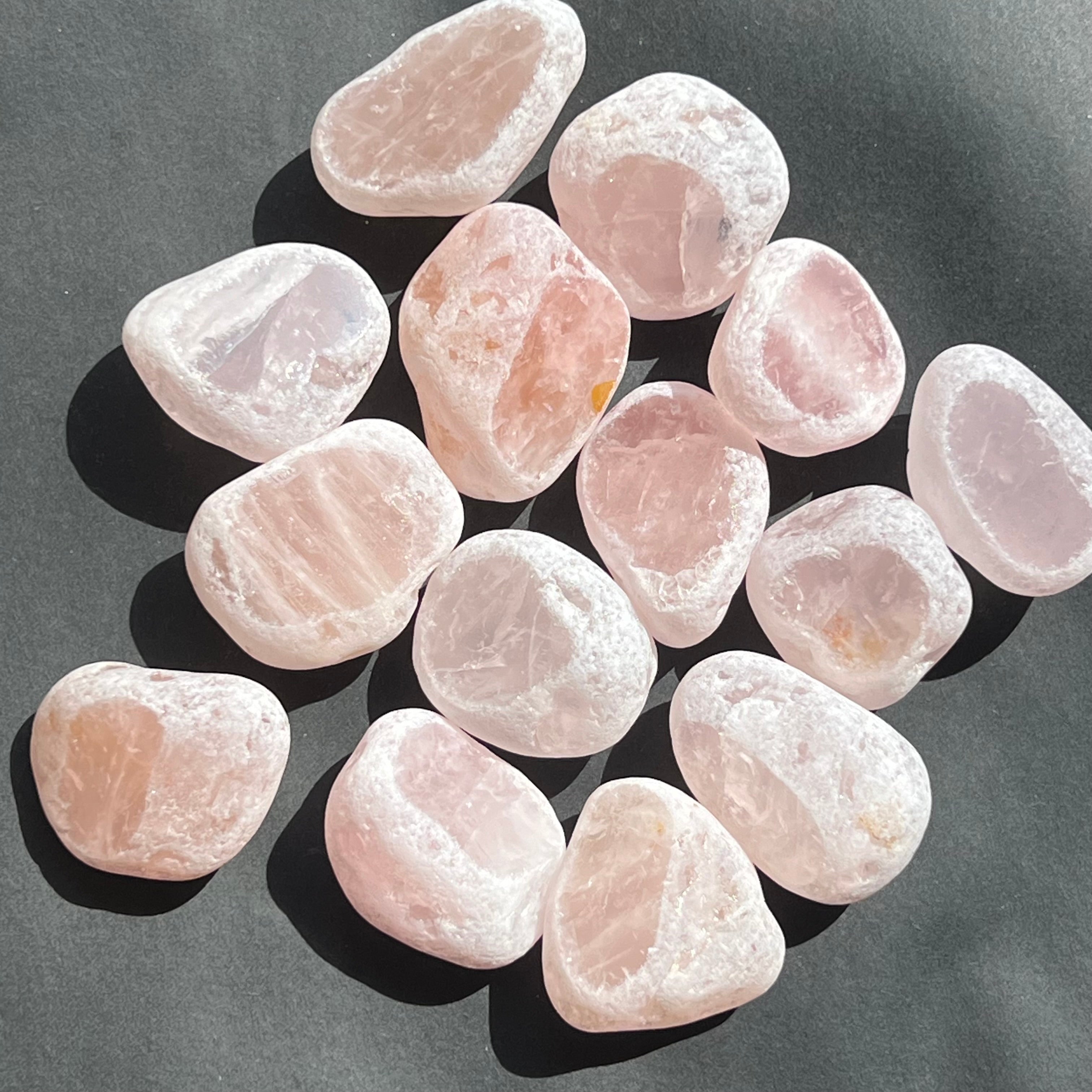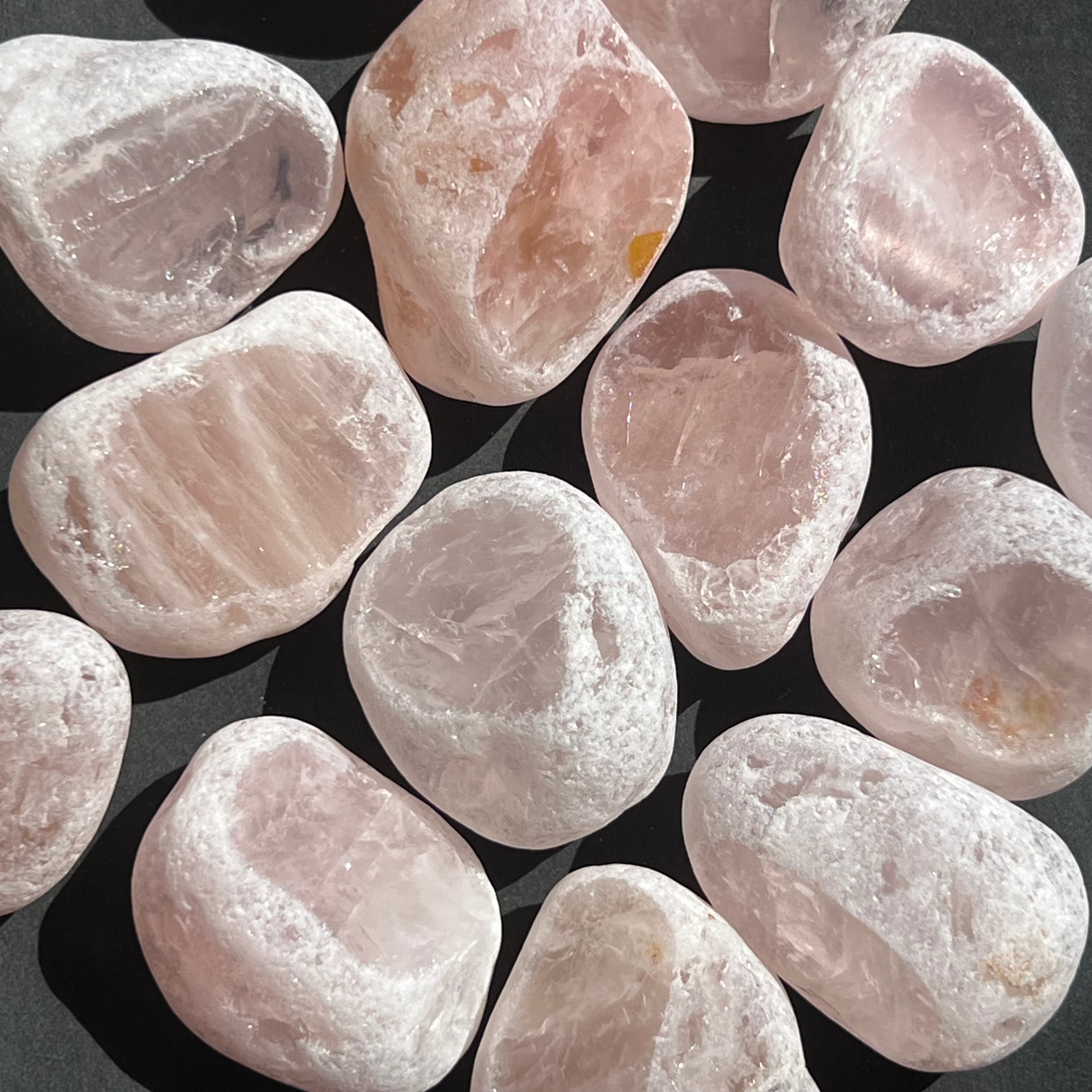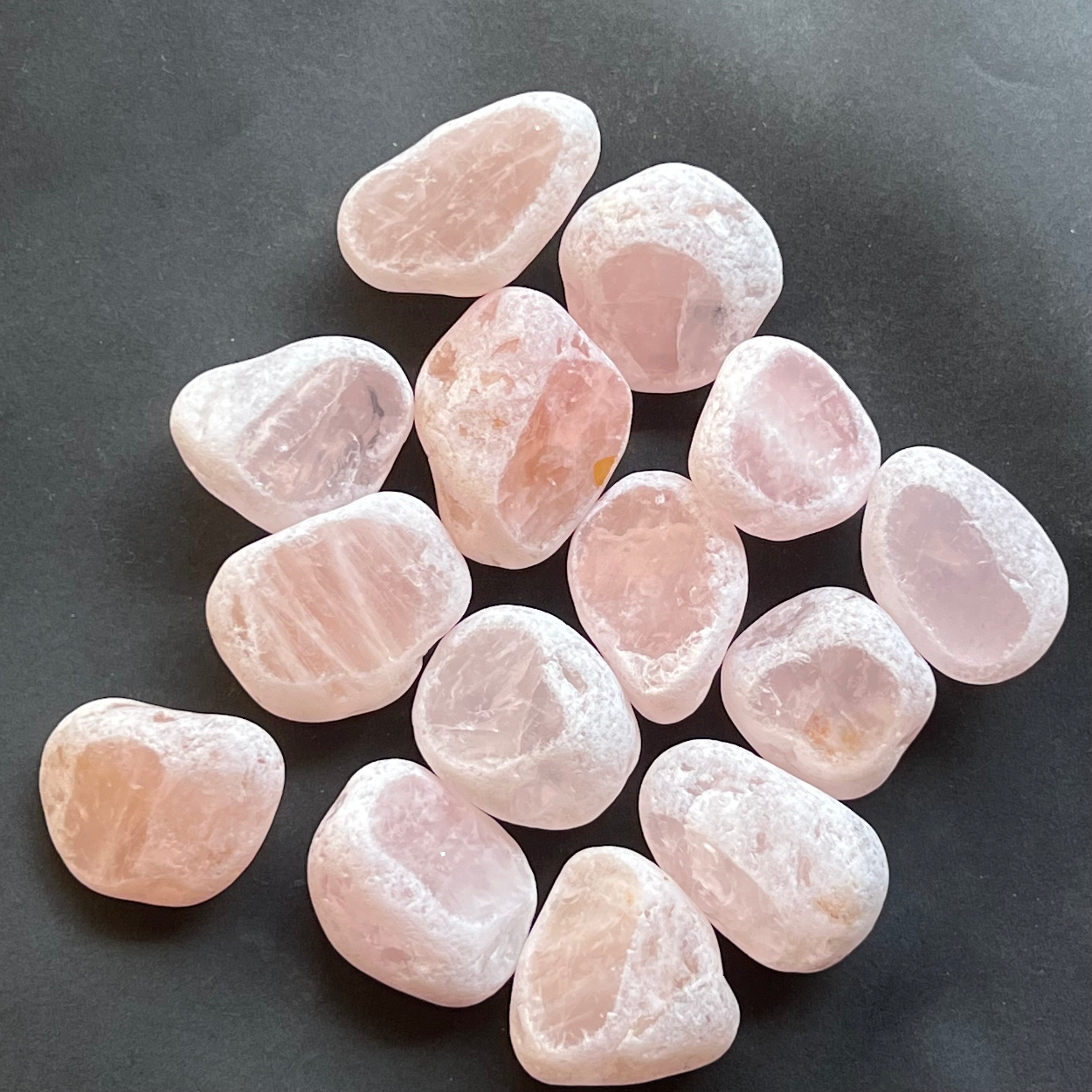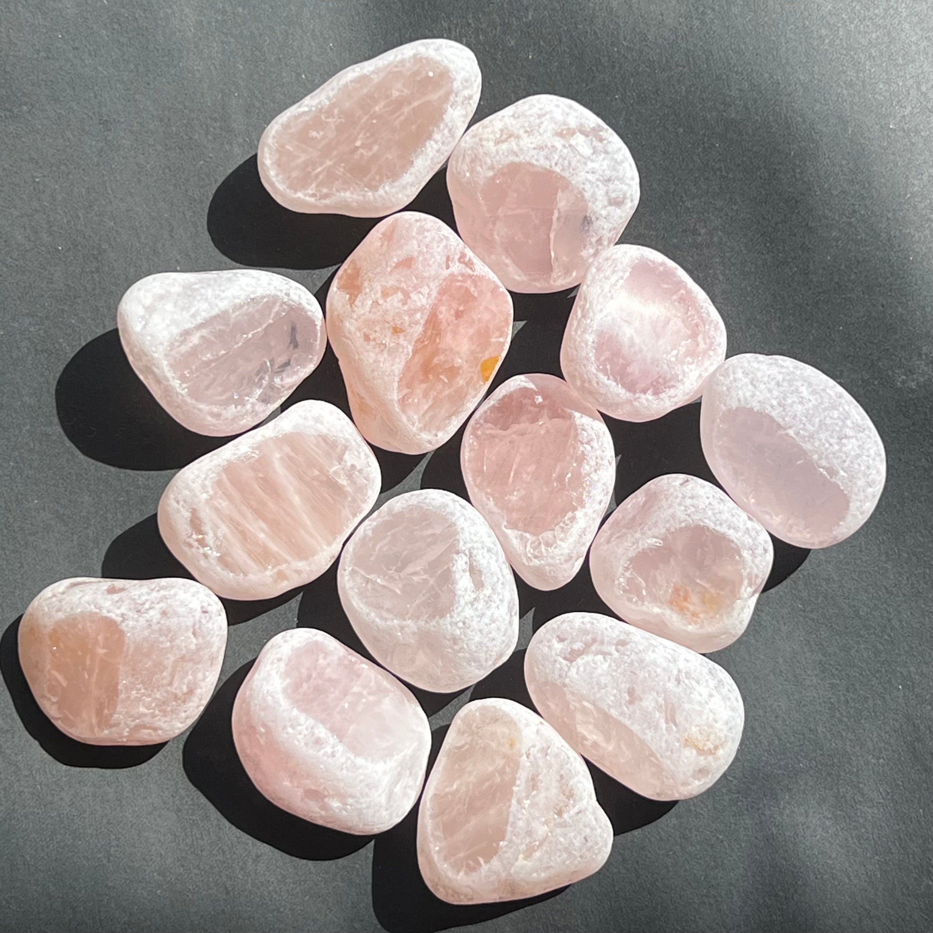 Rózsakvarc Ema tojás, körülbelül 4-6 cm méretben.