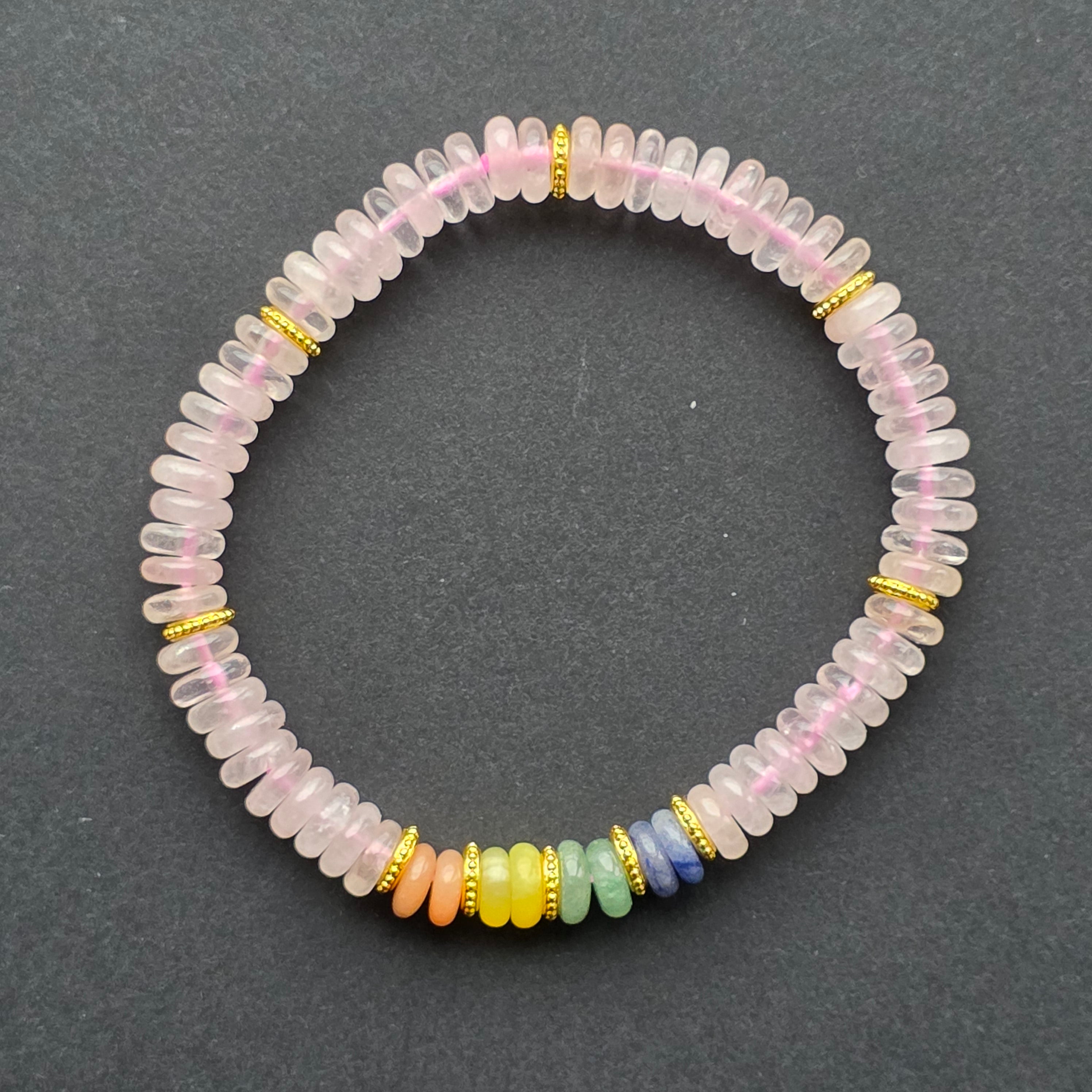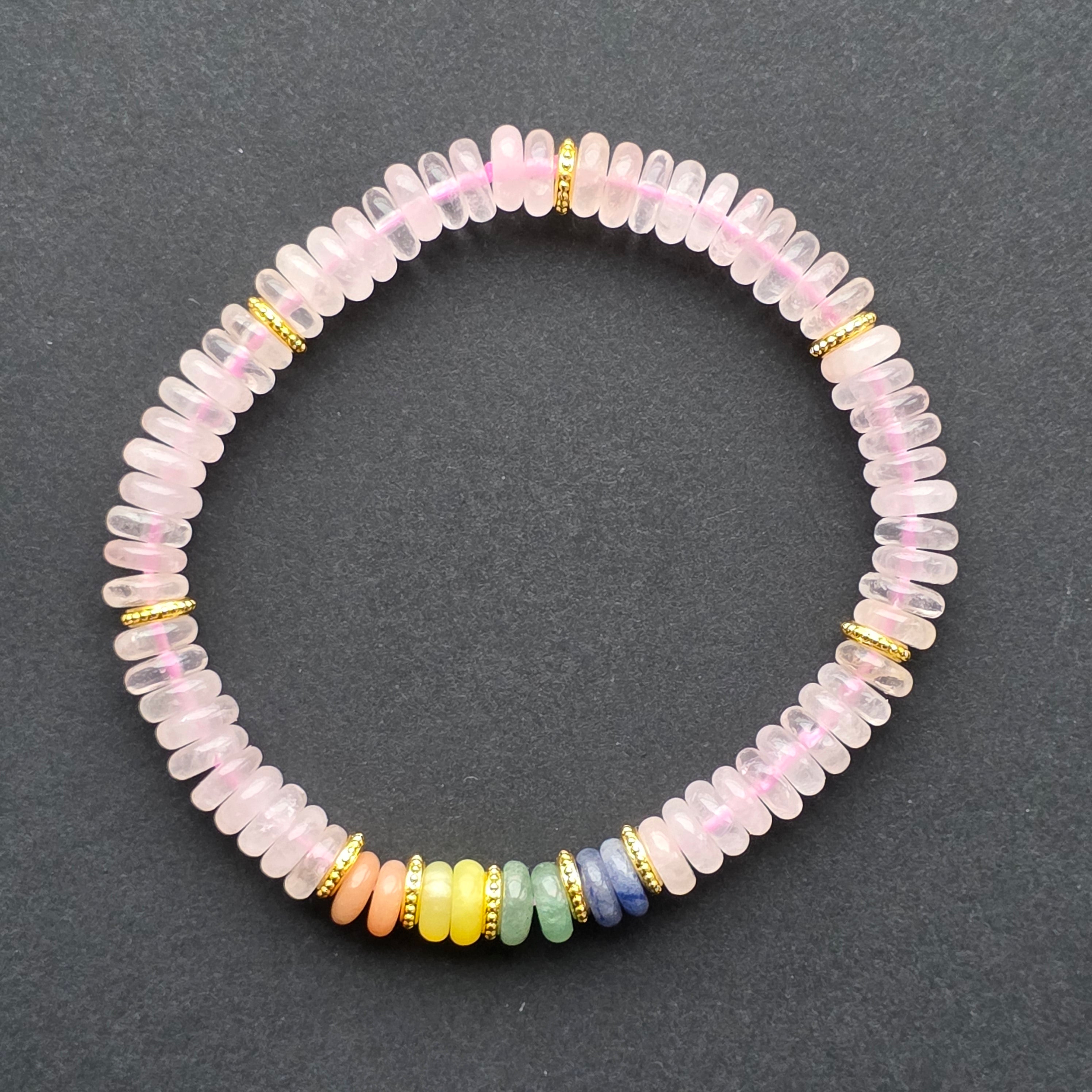 Descriere - Rózsakvarc korong karkötő | 7 csakra