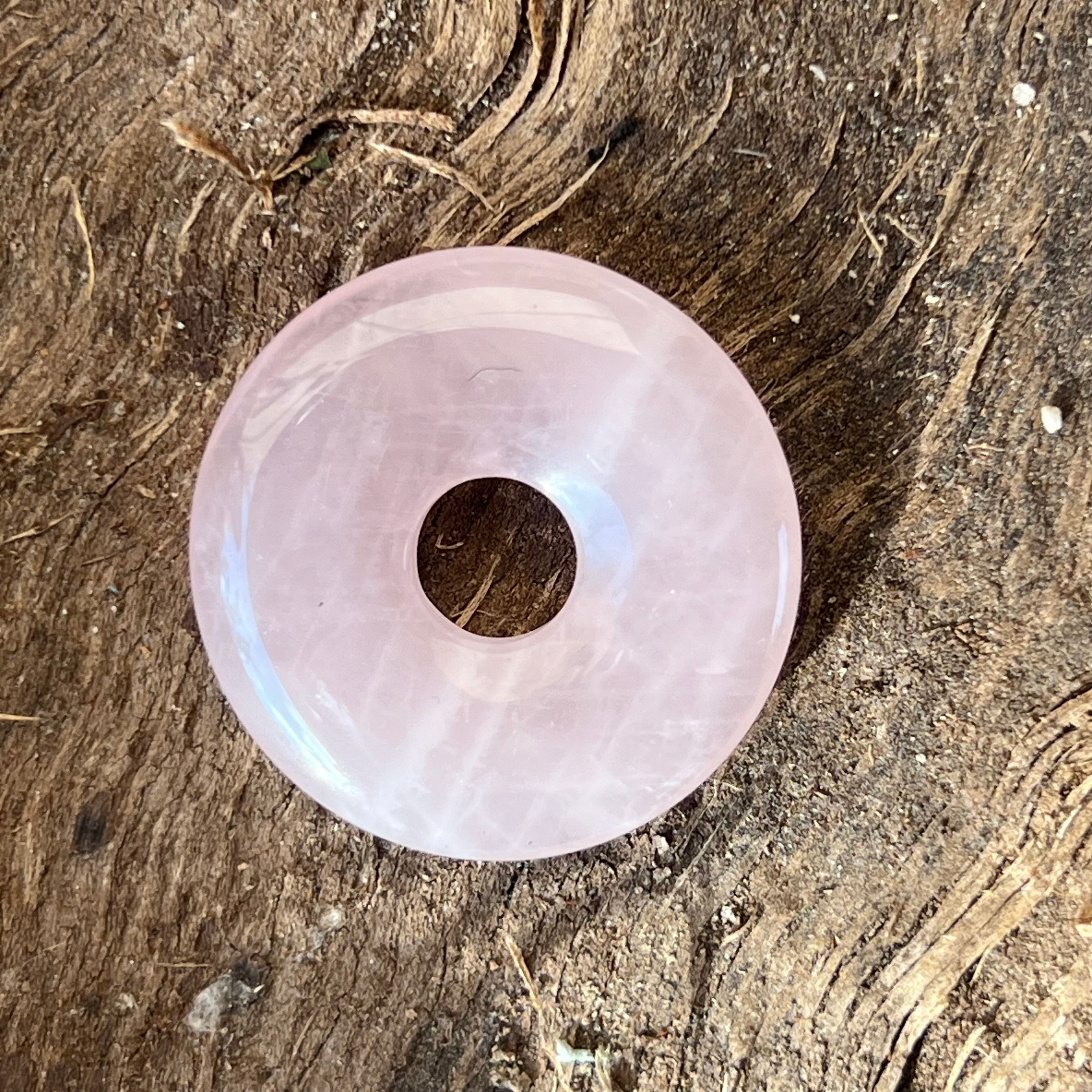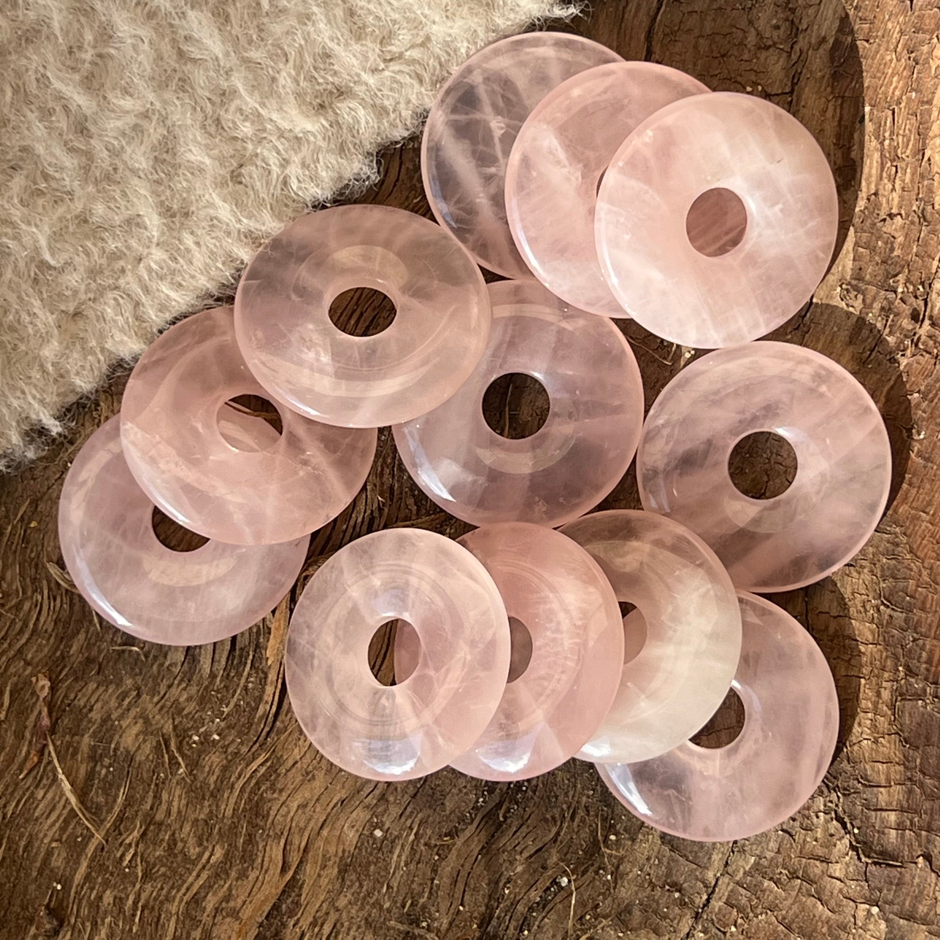 Rózsakvarc köves donuts medál, méret: 3 cm
