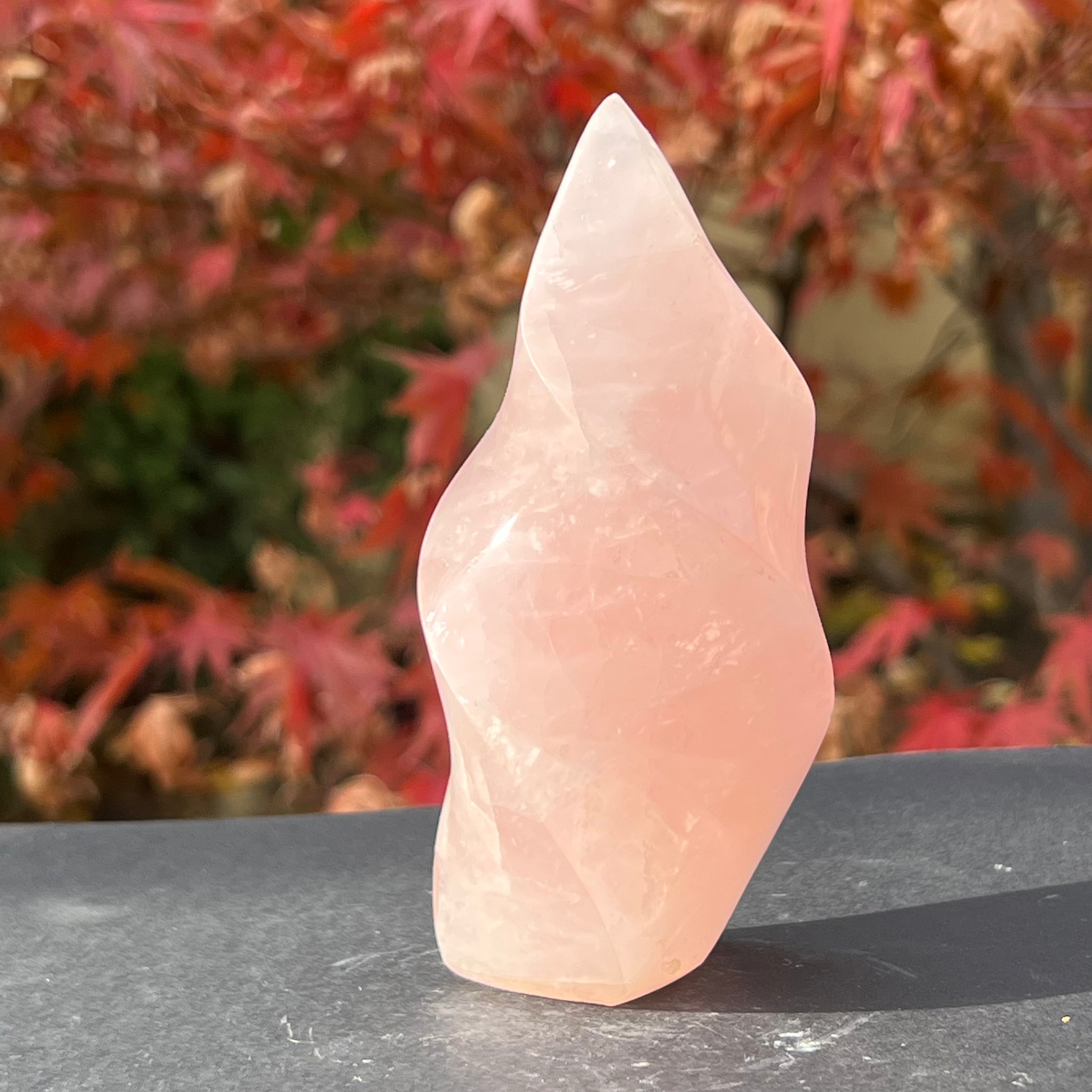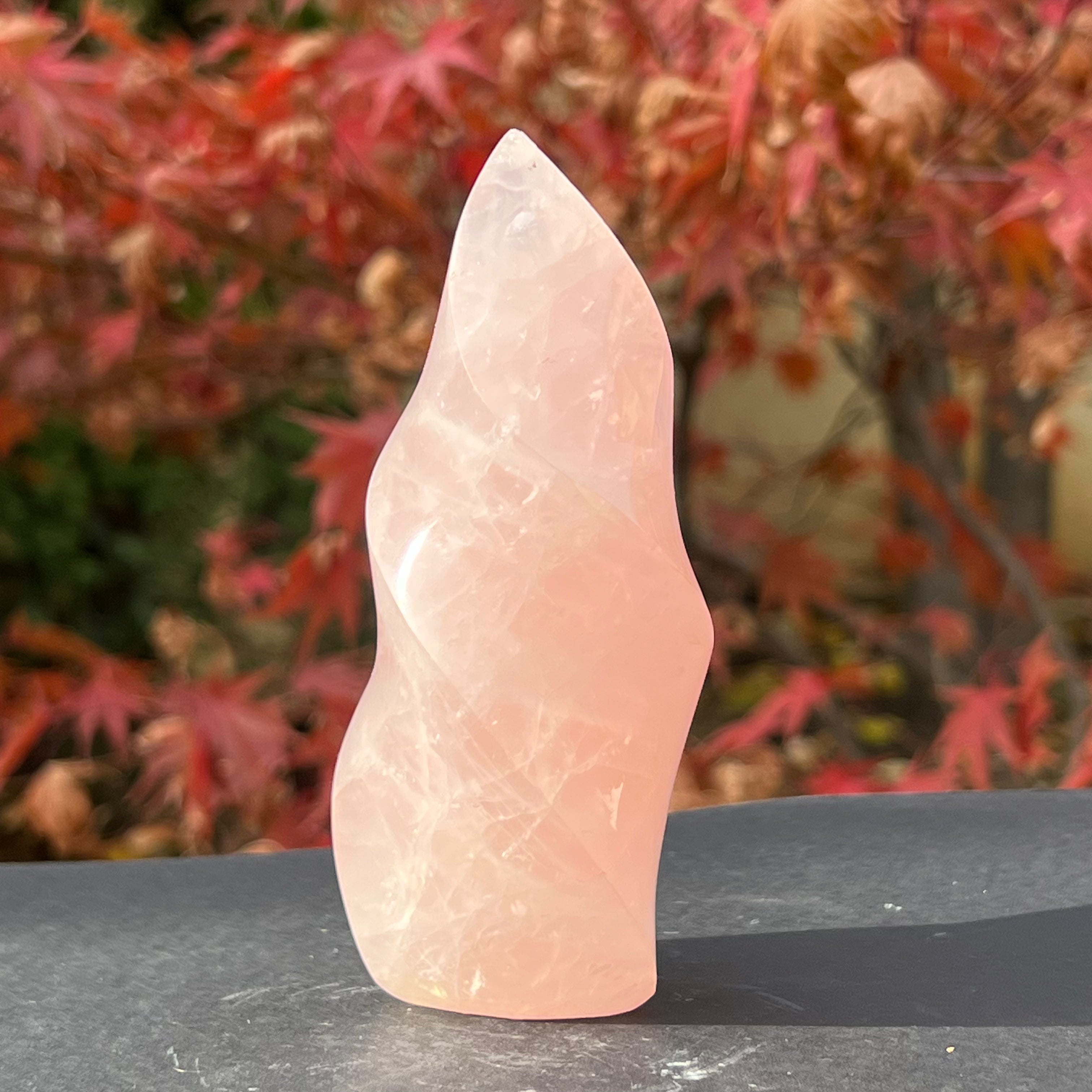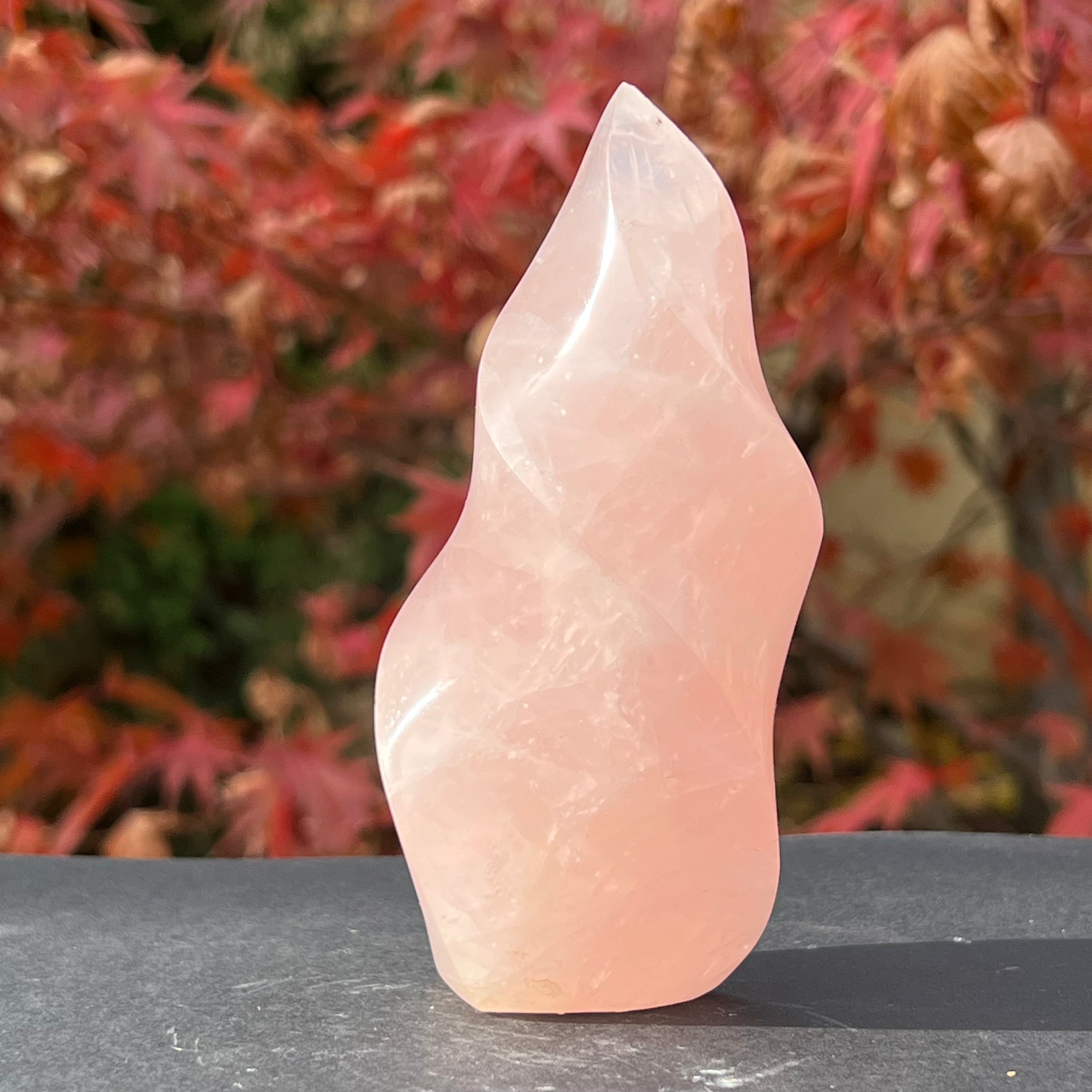 Rózsakvarc lángmodell 6 Madagaszkárról, mérete 12,5 * 5 * 5 cm