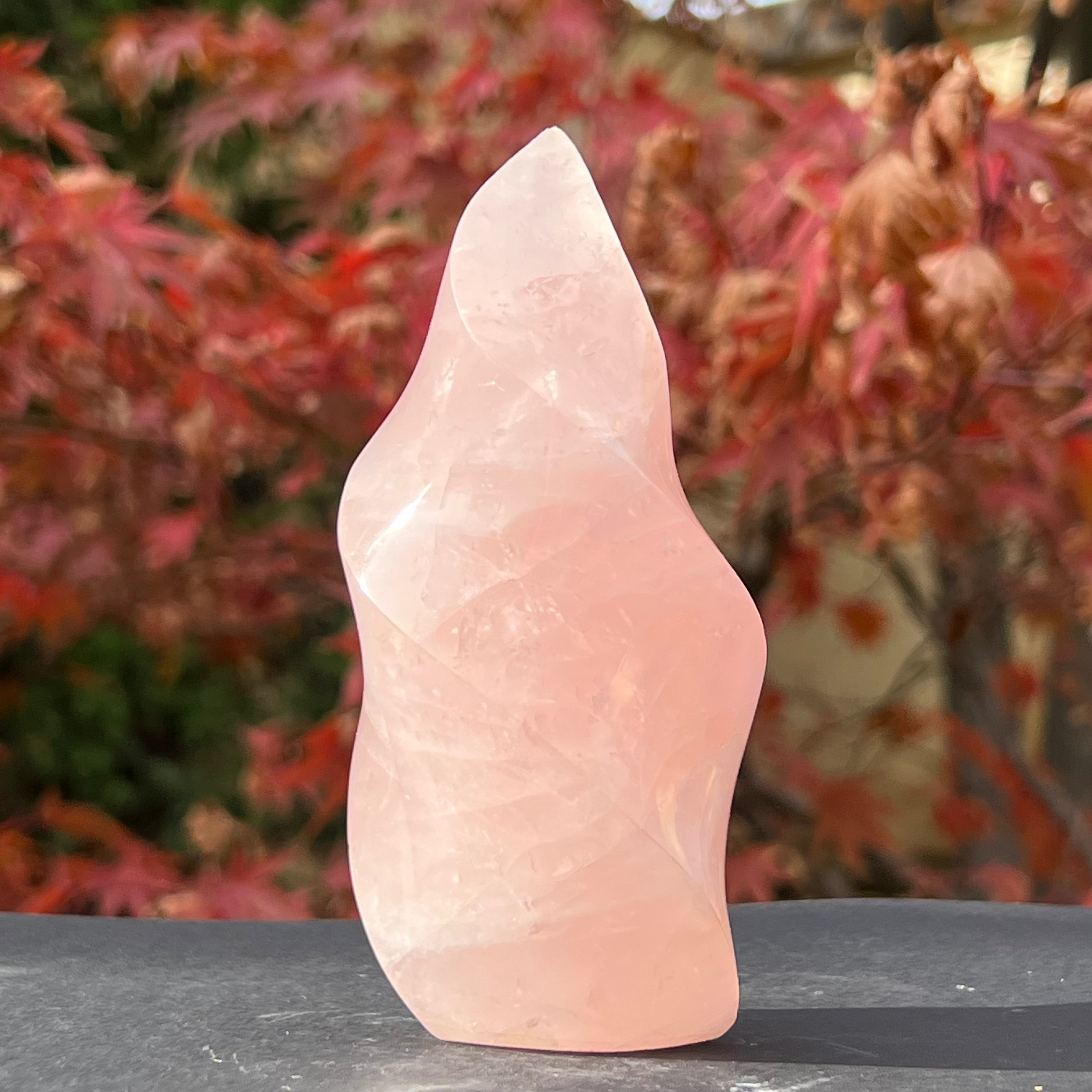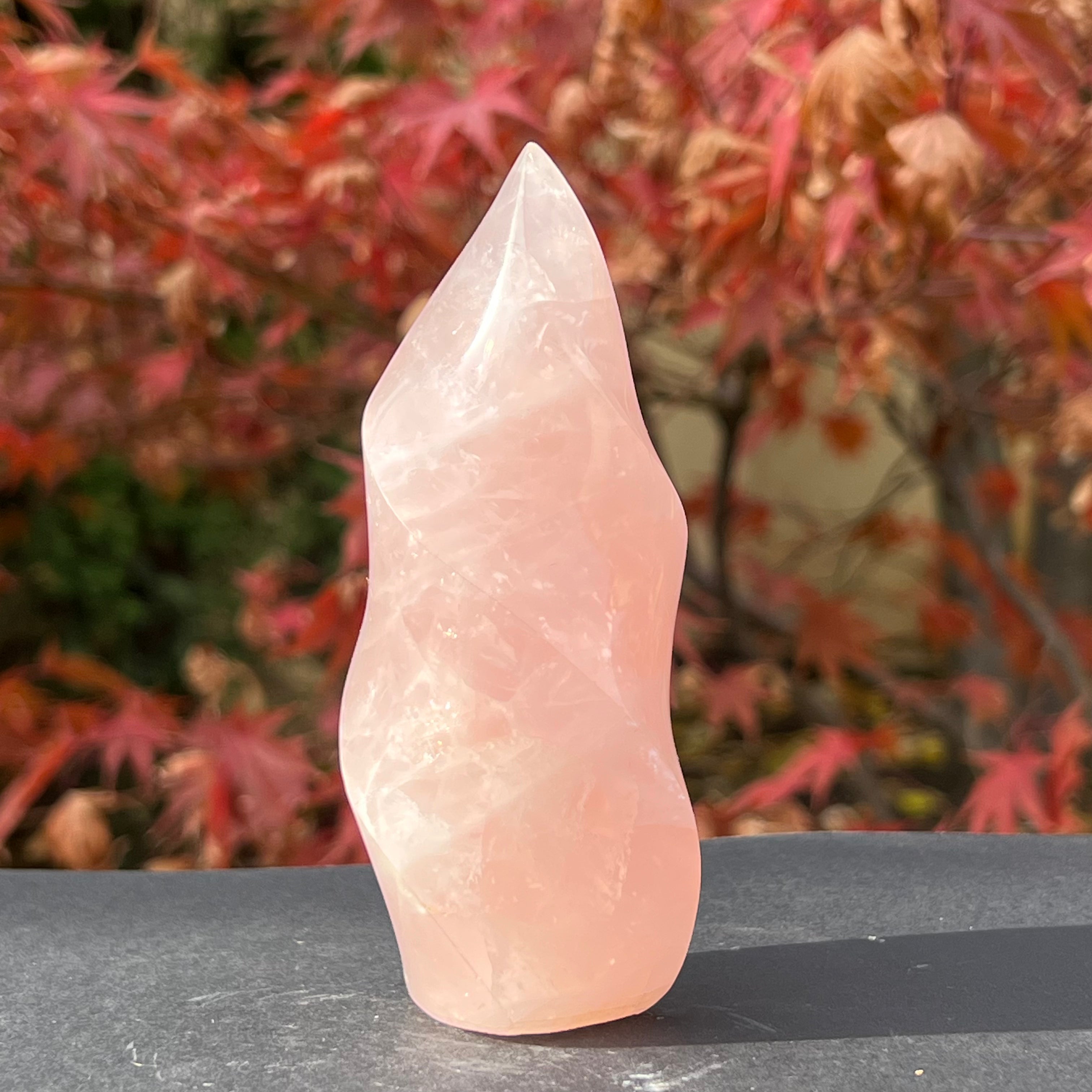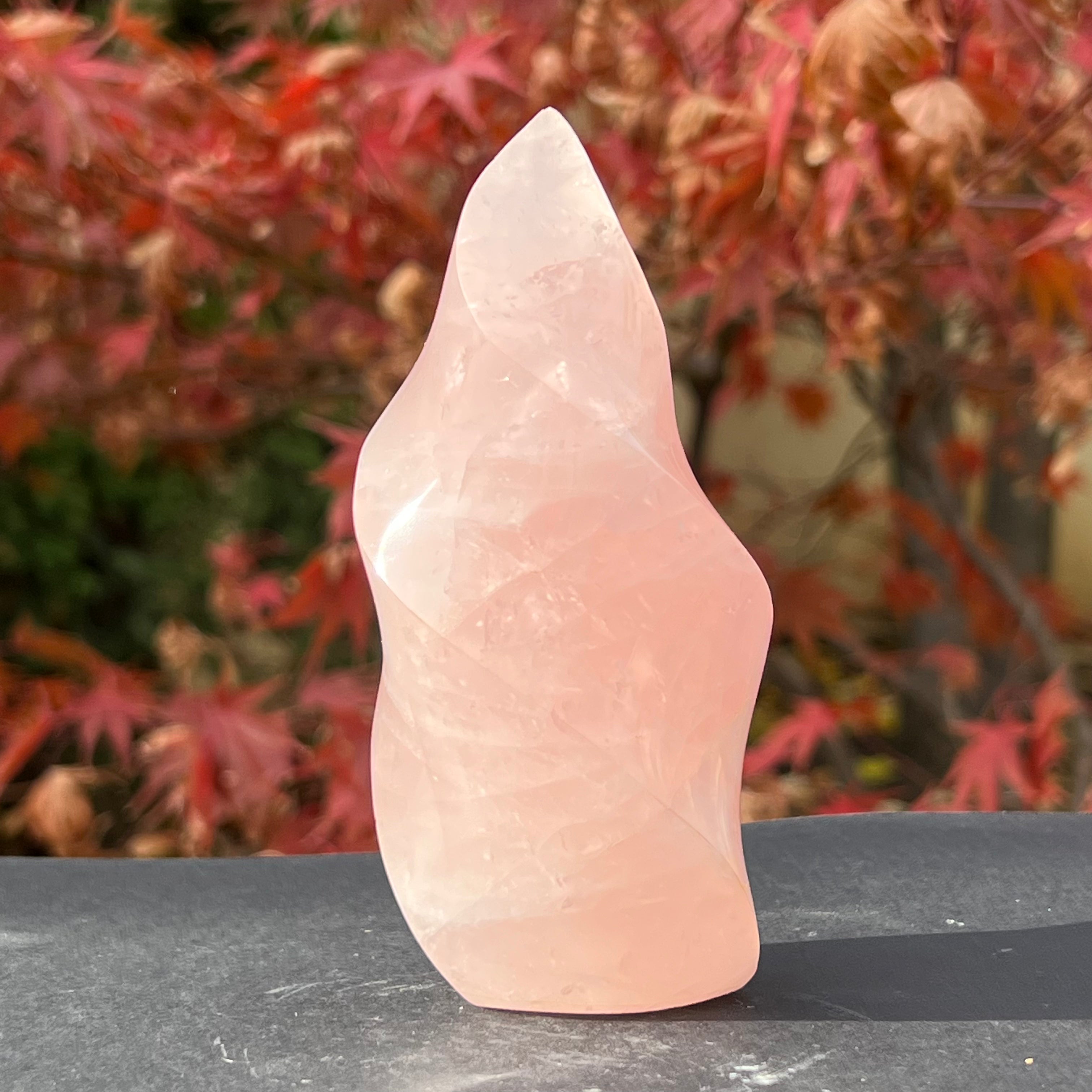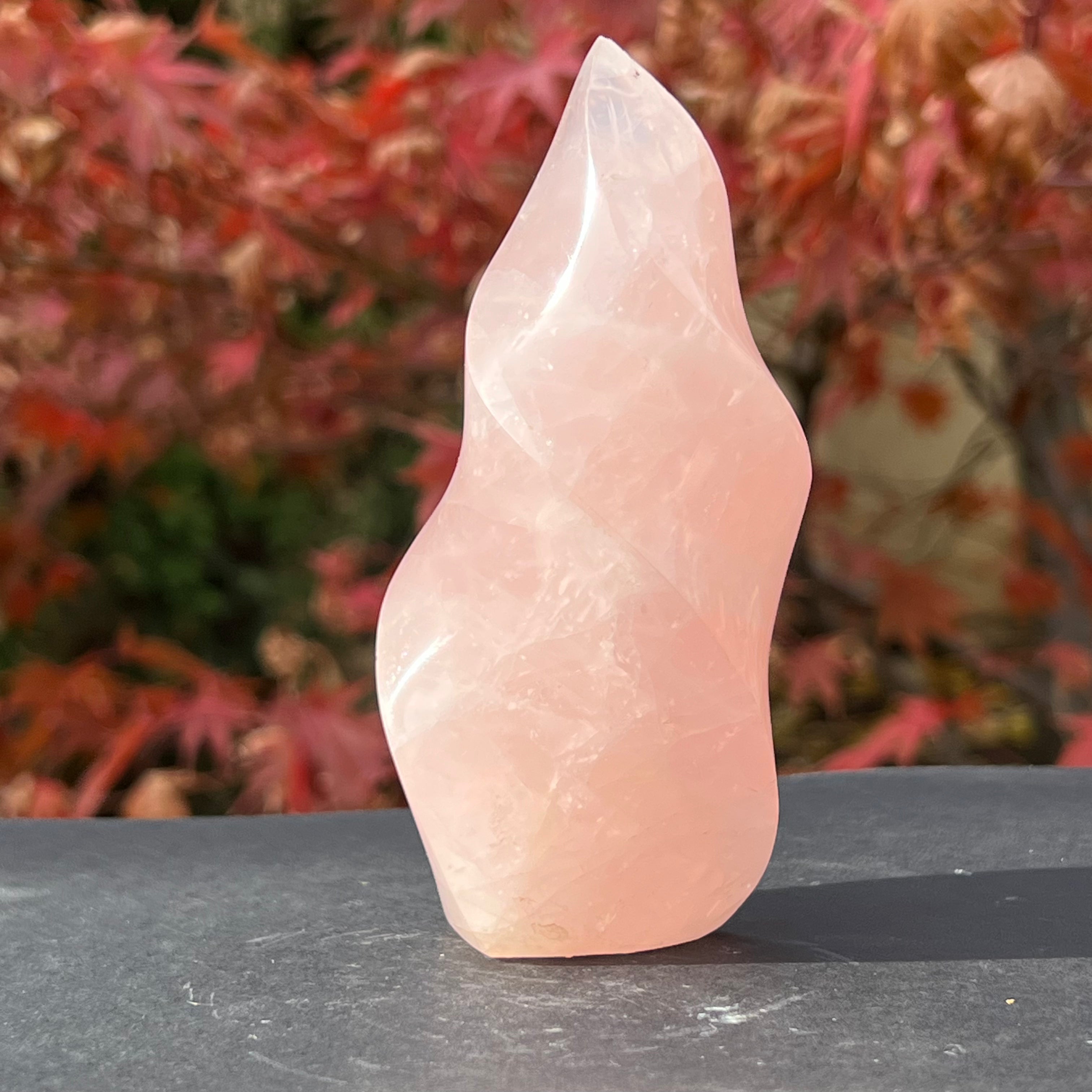 Rózsakvarc lángmodell 6 Madagaszkárról, mérete 12,5 * 5 * 5 cm