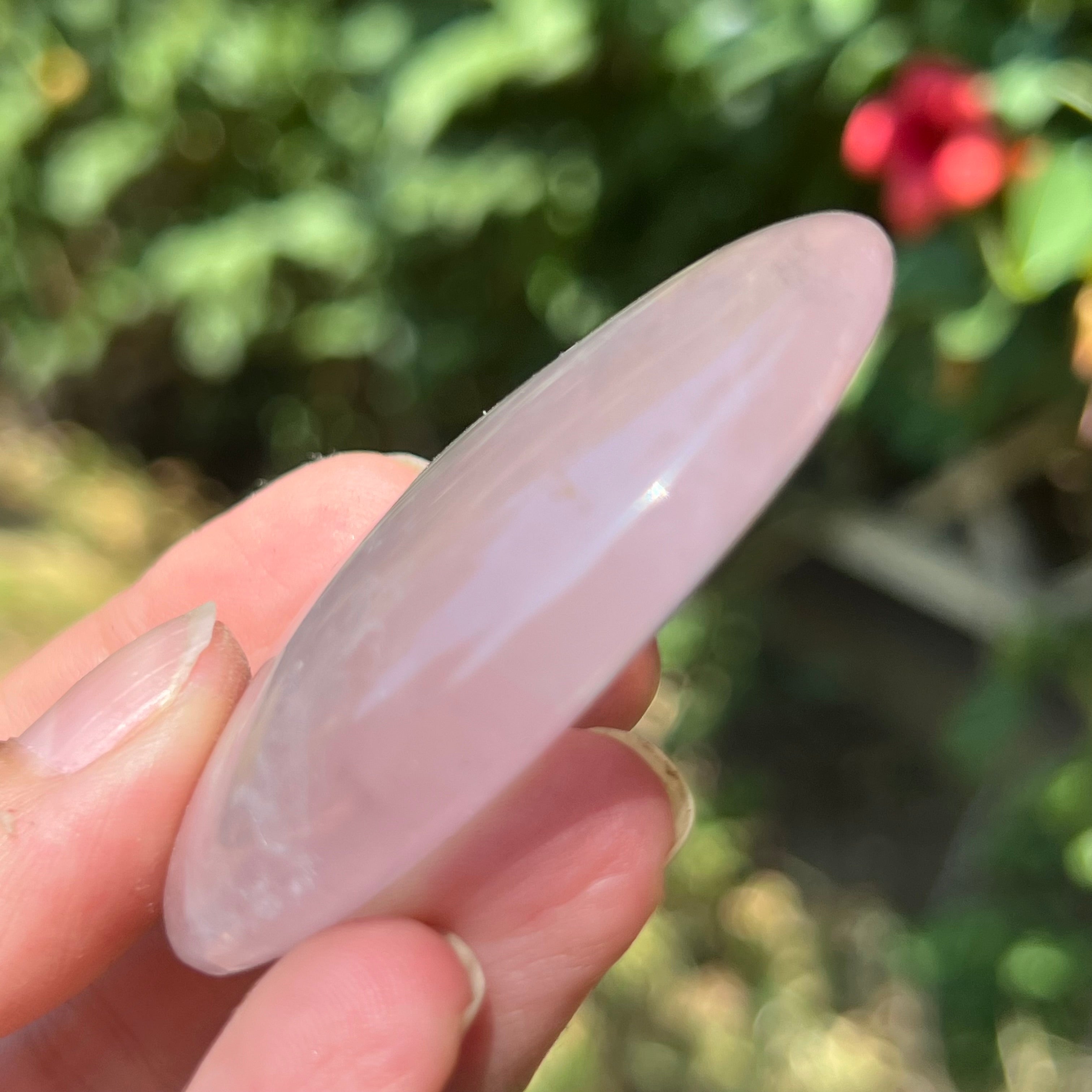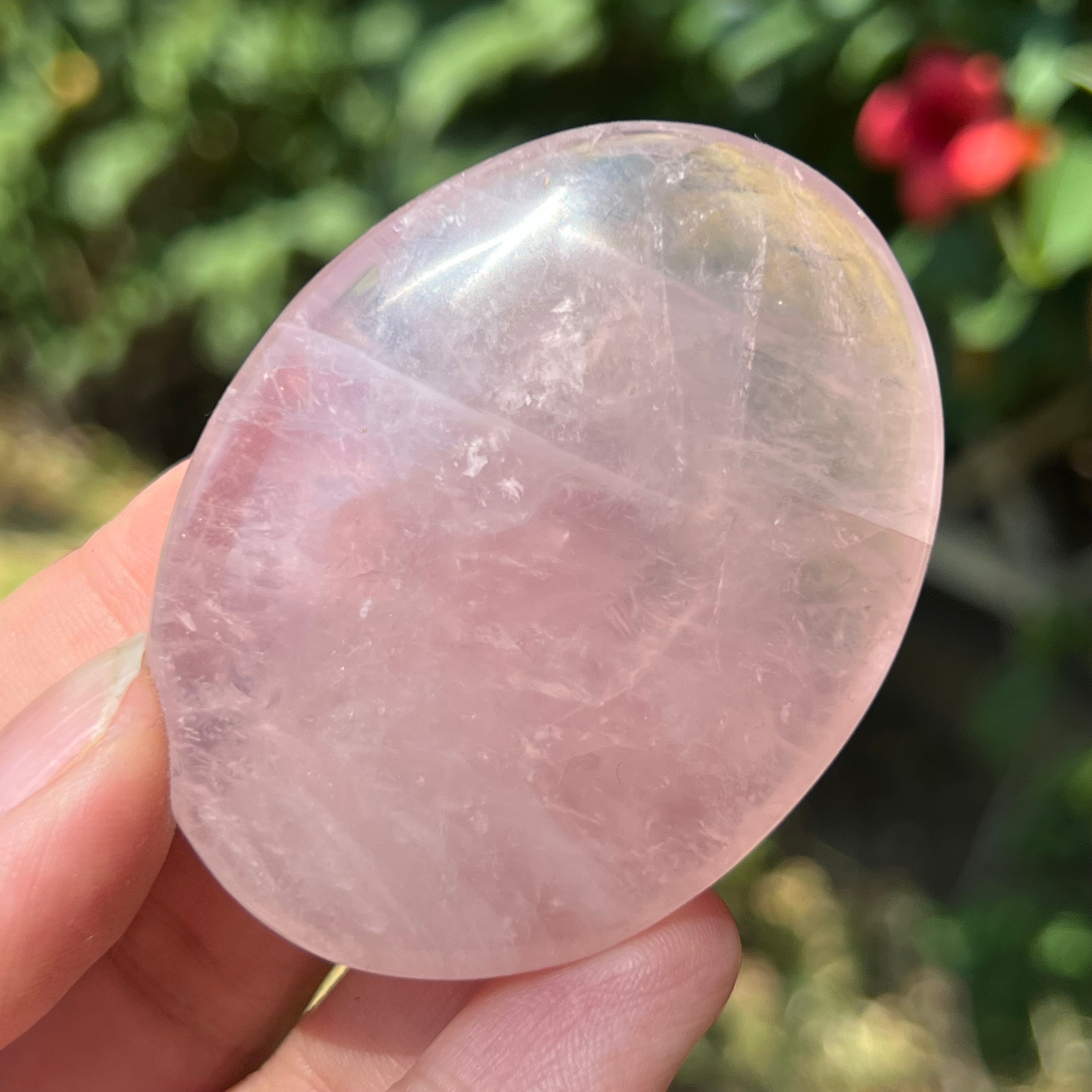 Rózsakvarc pálmakő m4, méret: 6 * 4,5 * 1,2 cm