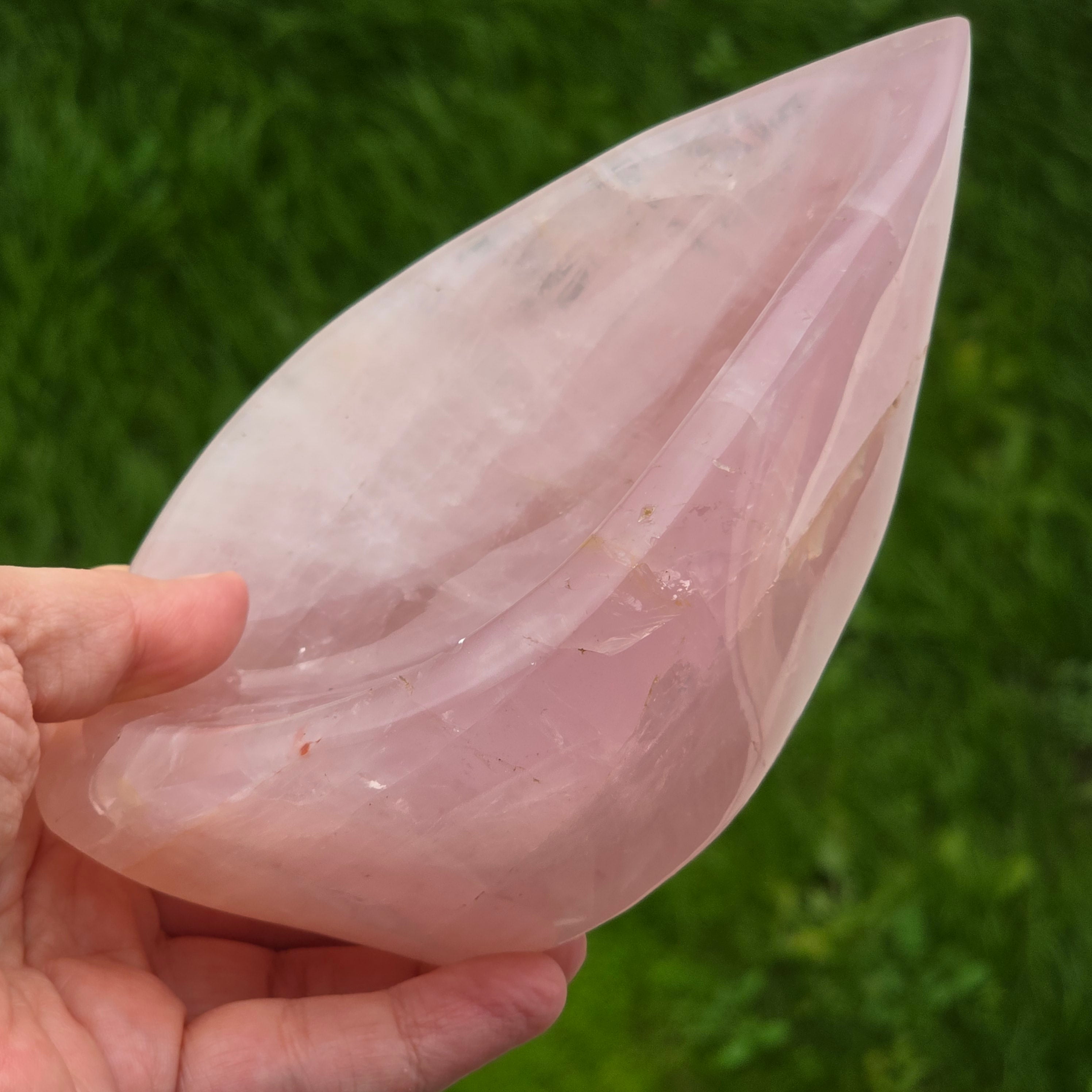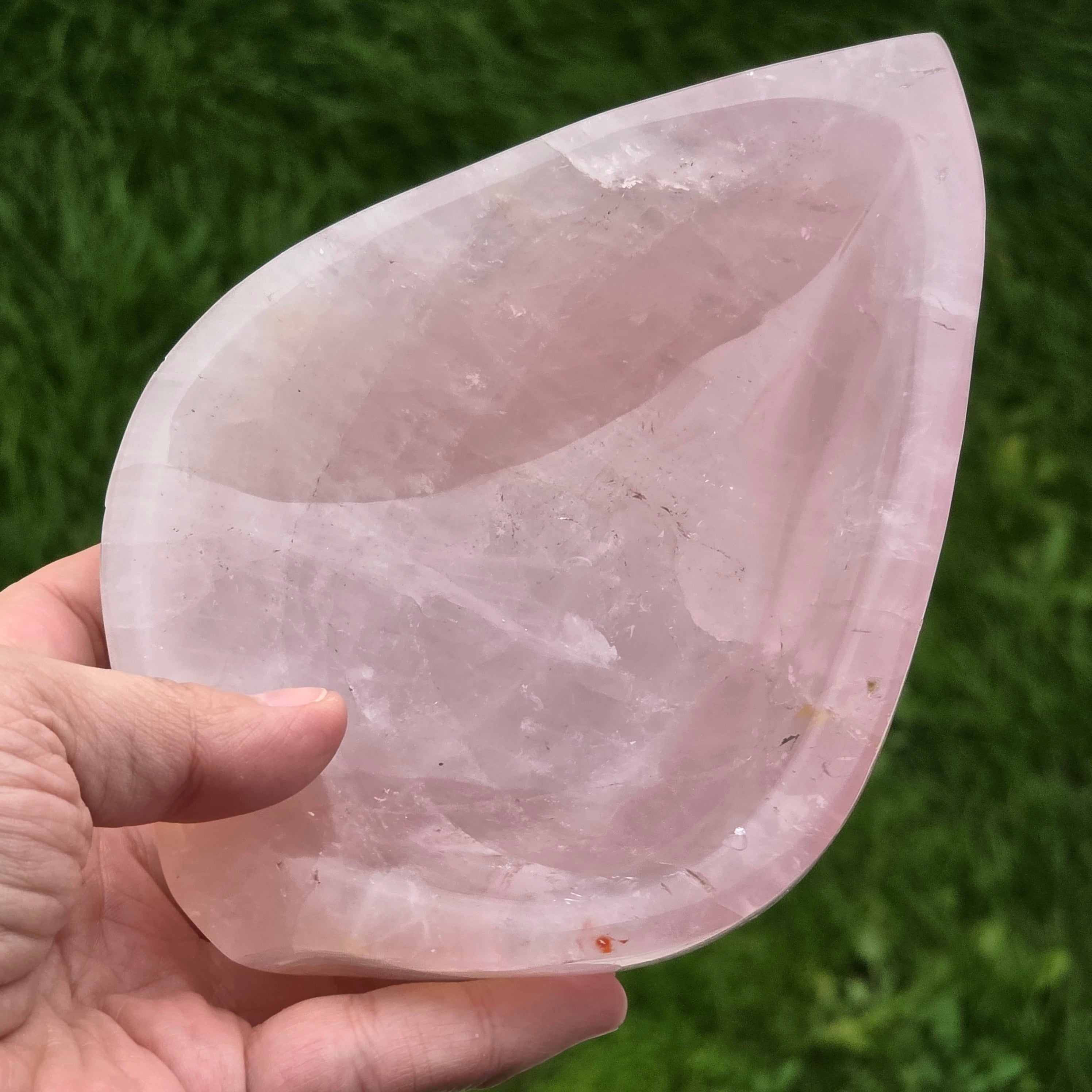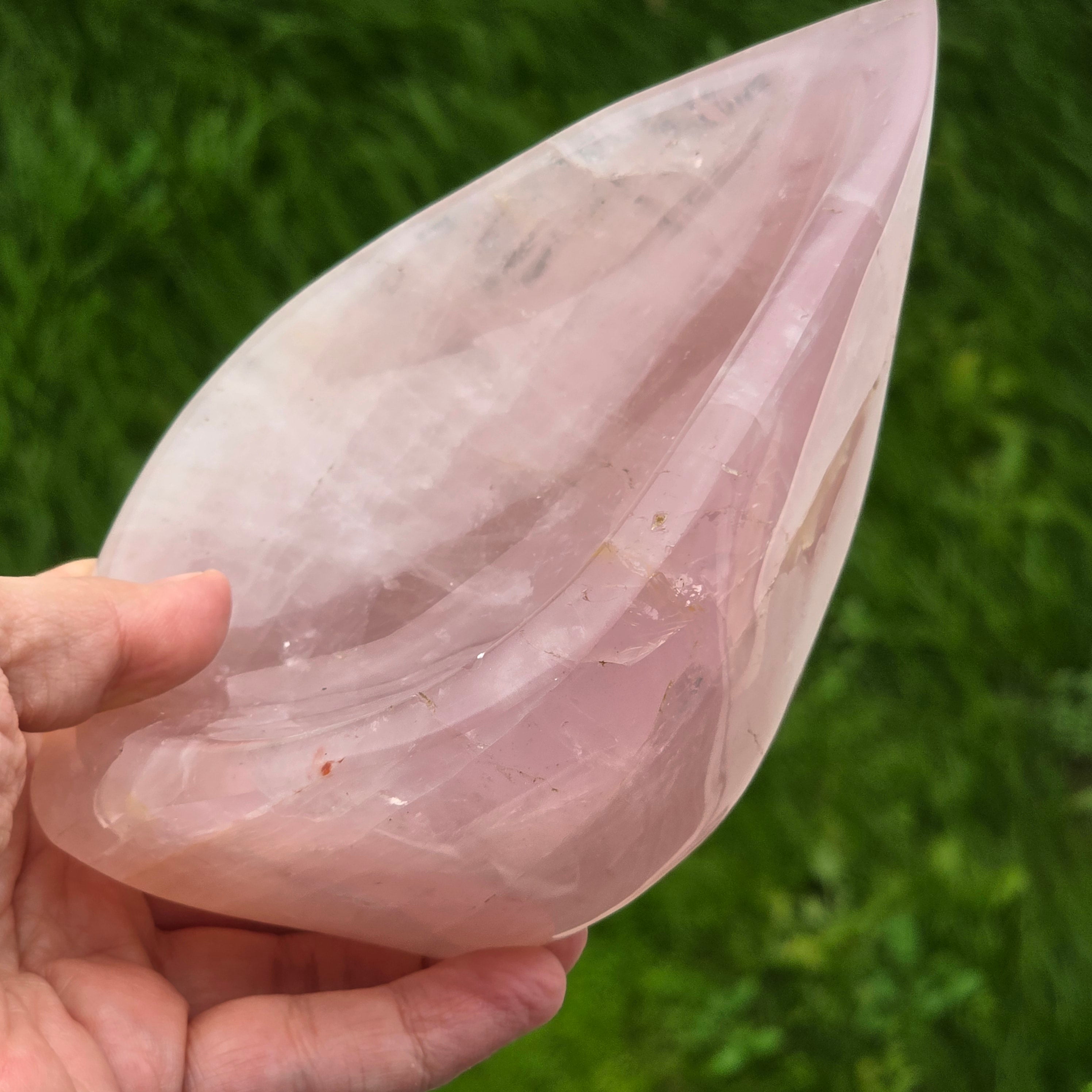 A tál Rózsakvarc modell Levél egy finom és meleg darab, kézzel faragva organikus formára, amely a fénytől frissen megérintett levélre emlékeztet. A rózsakvarc lágy sziromárnyalataival nyugodt, gyengéd és enyhén világító hangulatot kölcsönöz, a ház bármely sarkát melegebb, barátságosabb és harmonikusabb térré varázsolja.