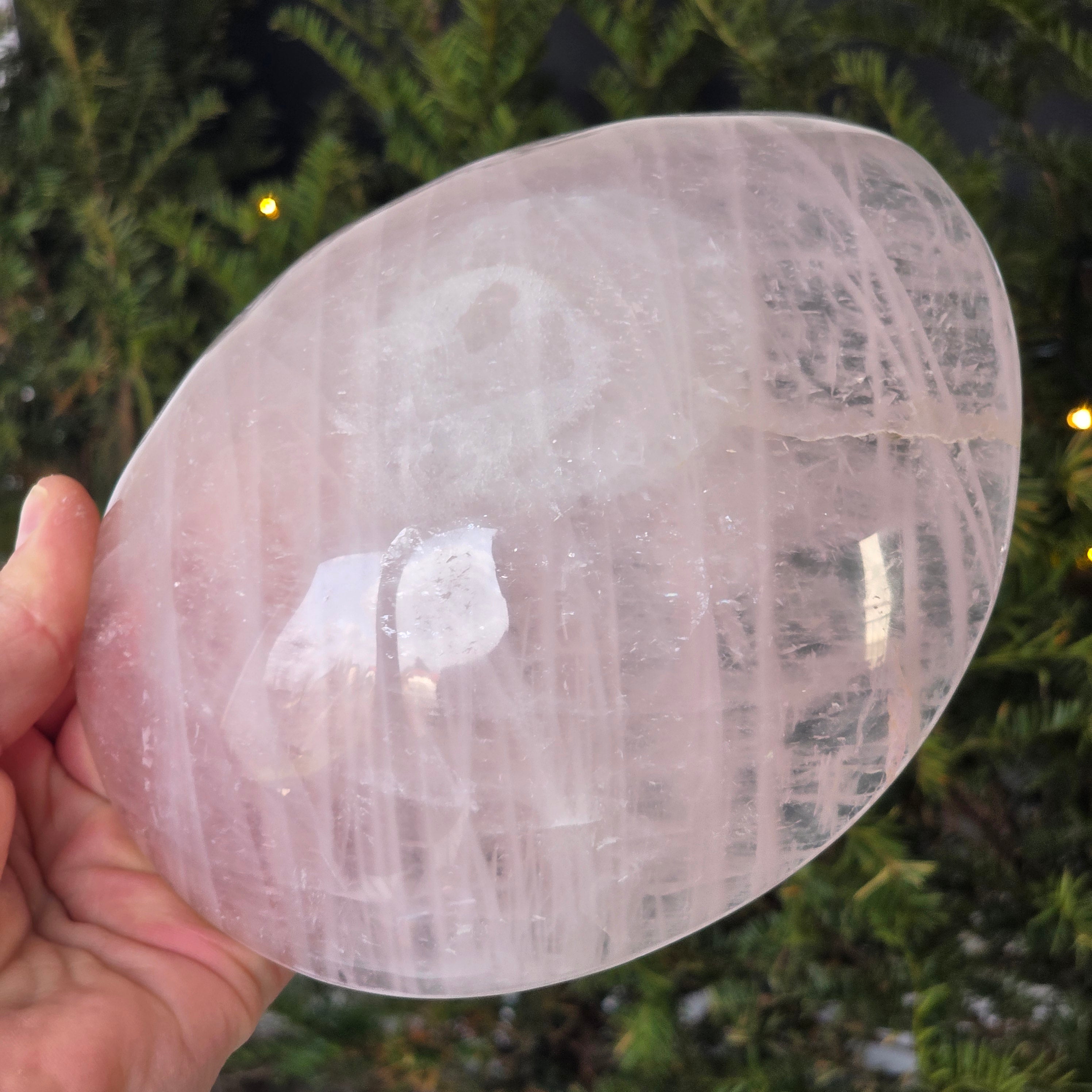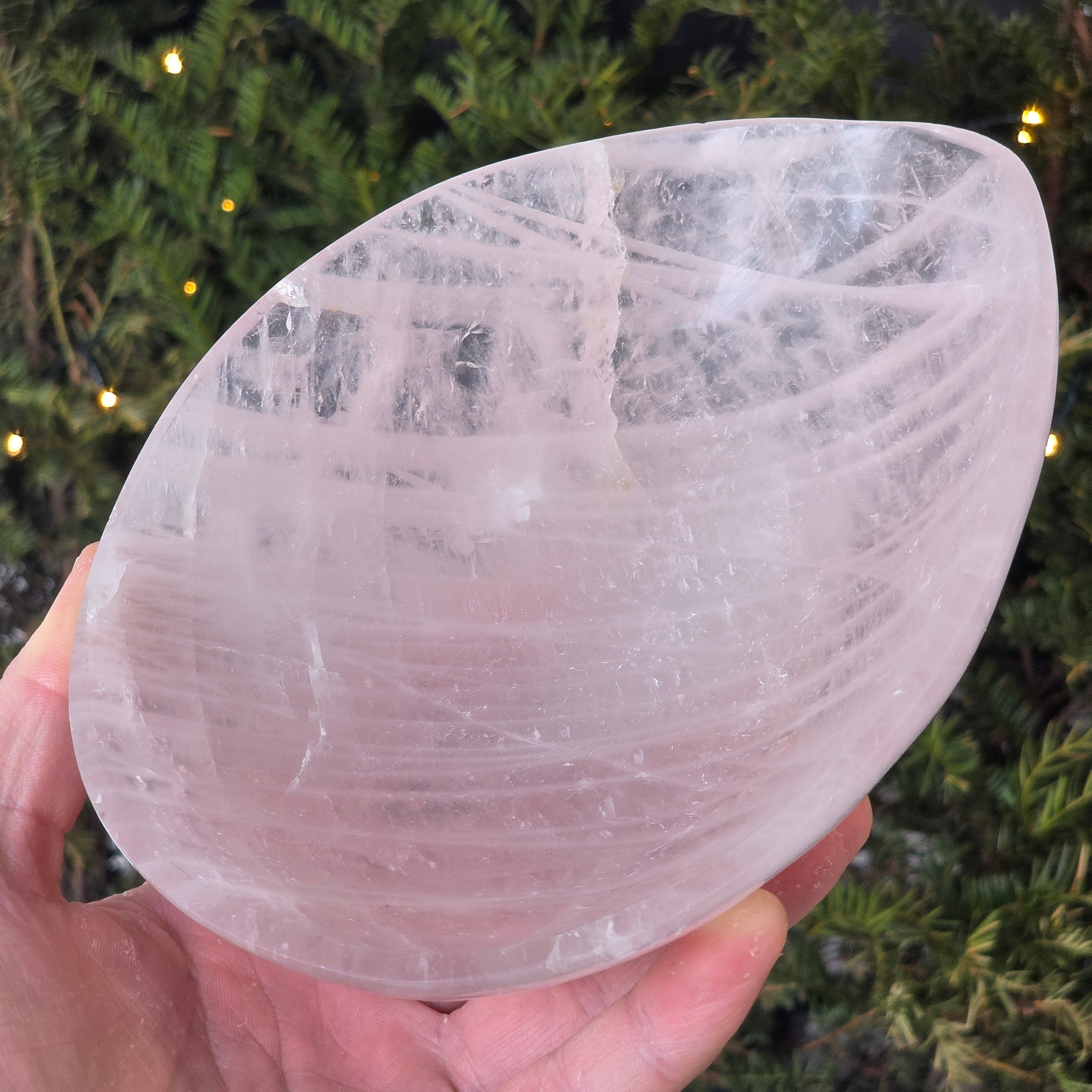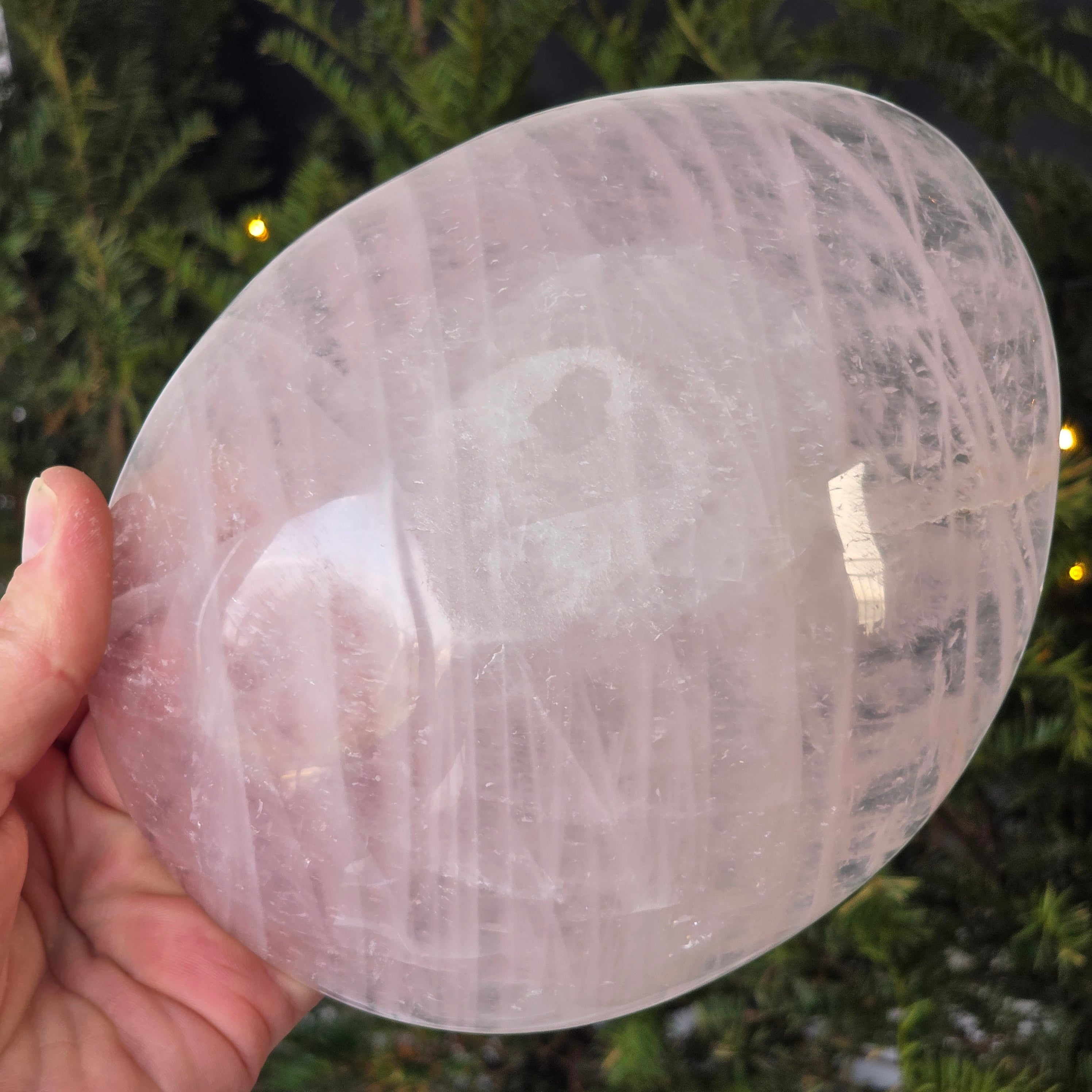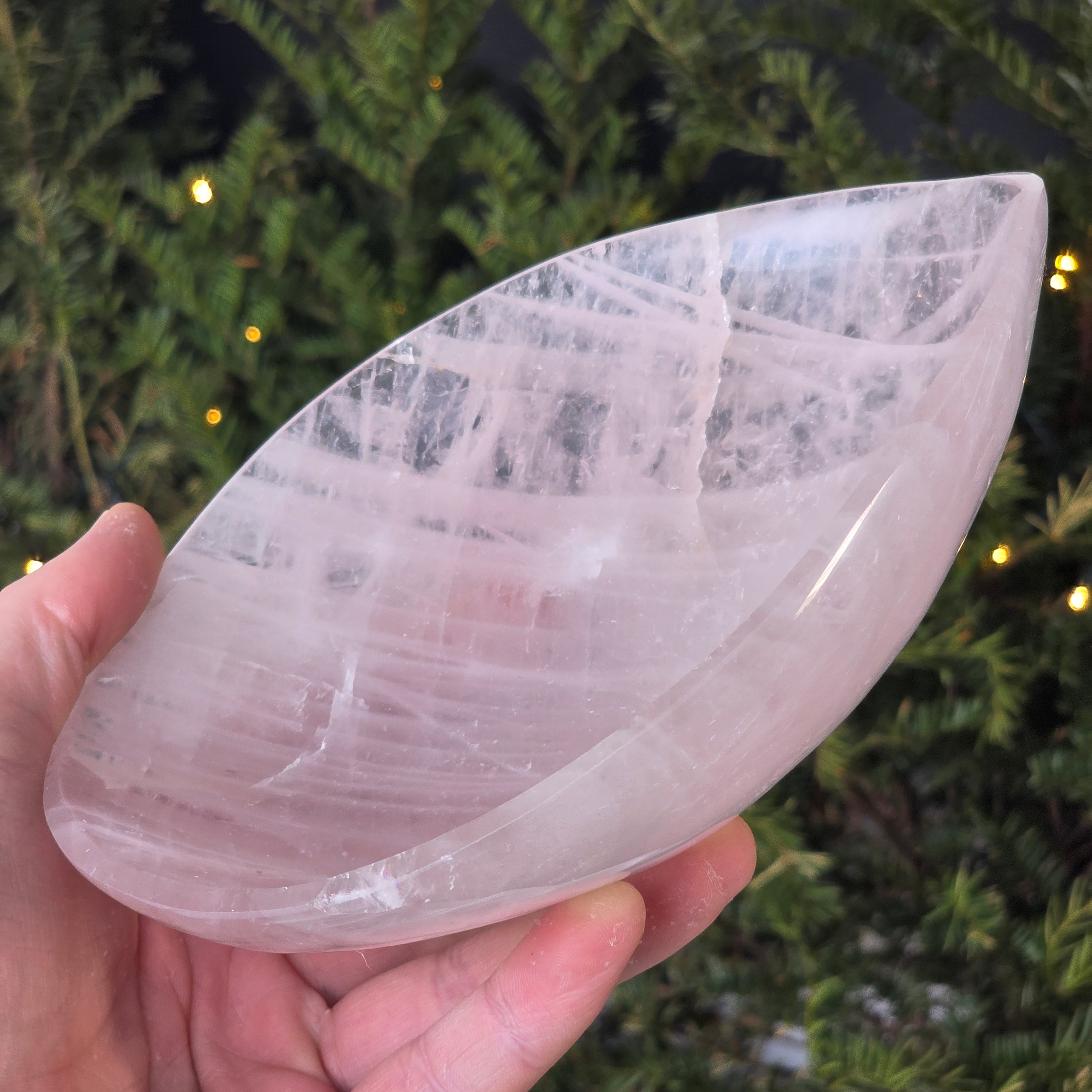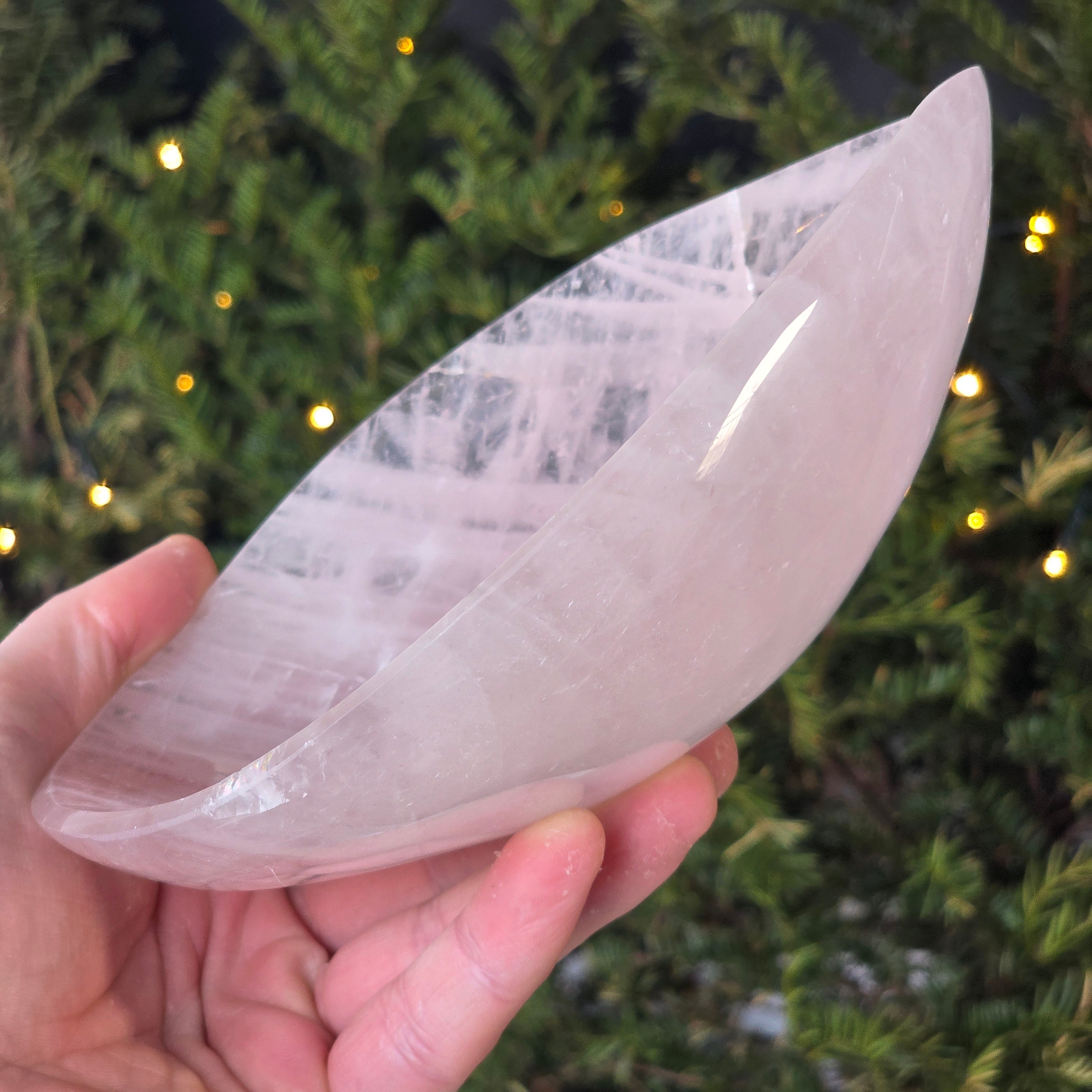 A rózsakvarc tál egy dekoratív darab, amely jól meghatározott kristályszerkezetű kvarcfajtából készült, és átlátszósága finoman tejszerű, valamint a titán vagy mangán apró zárványai által kialakított természetes rózsaszín árnyalatai miatt értékelt. Ezt az ásványt tömbszerűsége miatt ismerik el, ami lehetővé teszi, hogy kiegyensúlyozott szoborszerű formákat és magas minőségű felületeket dolgozzanak ki belőle.