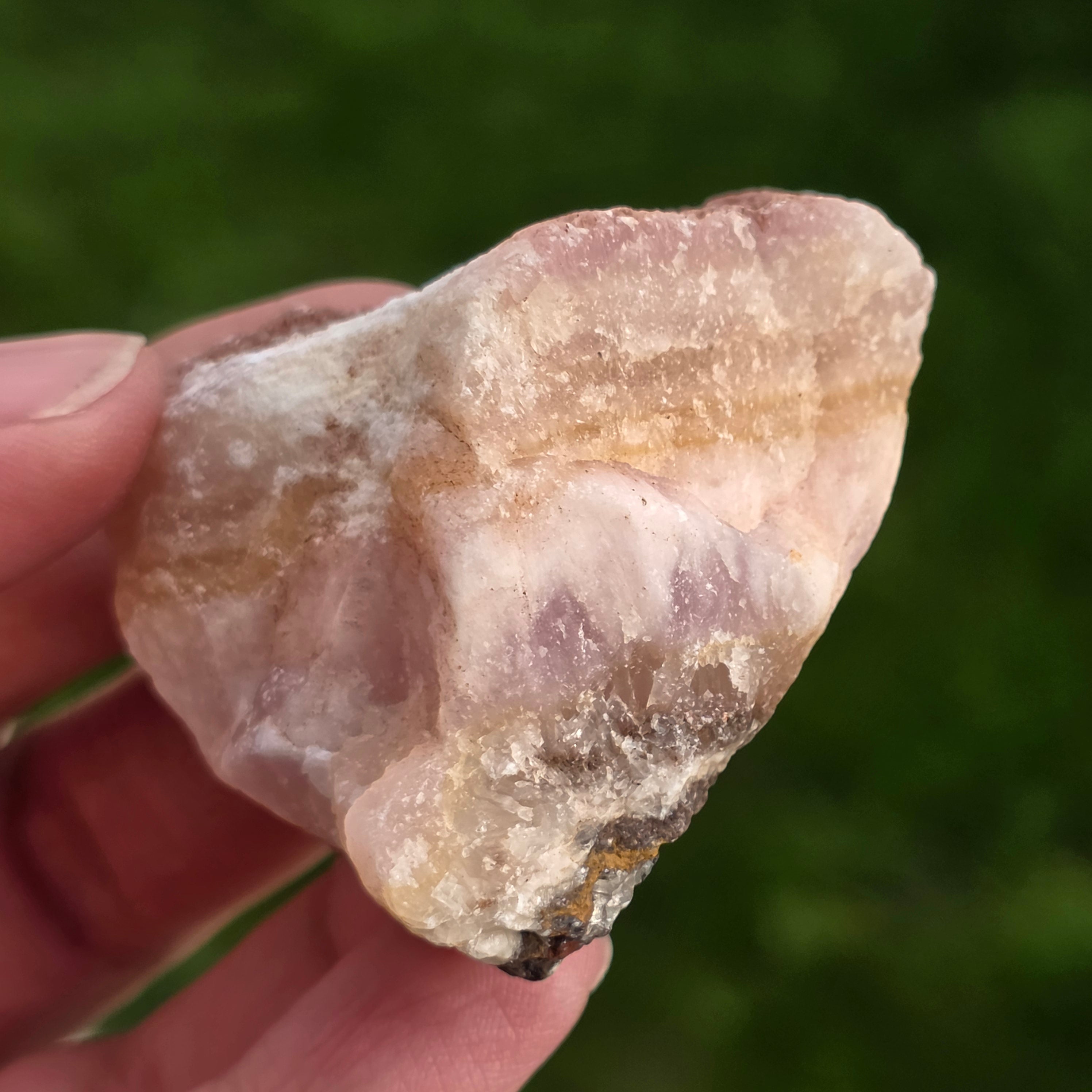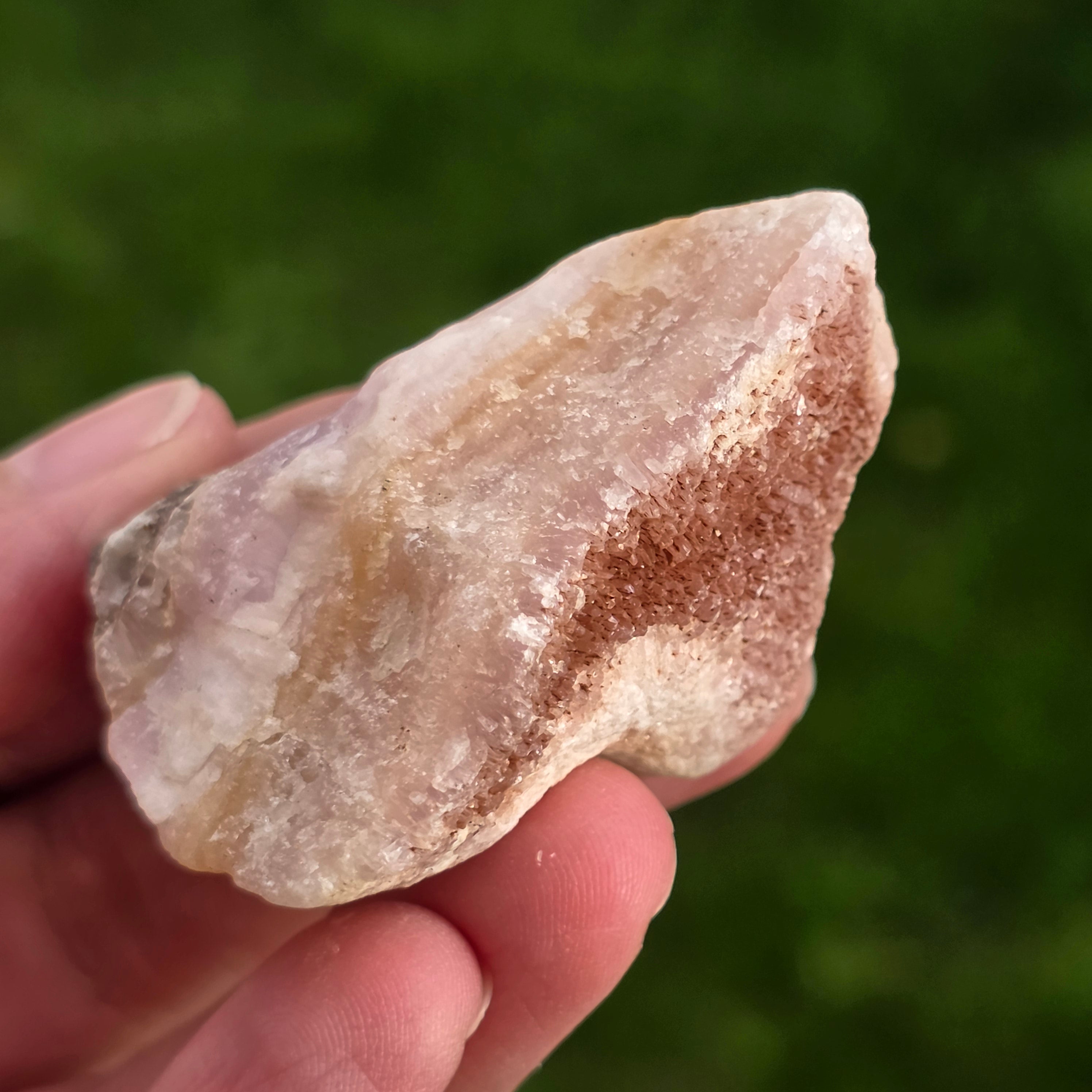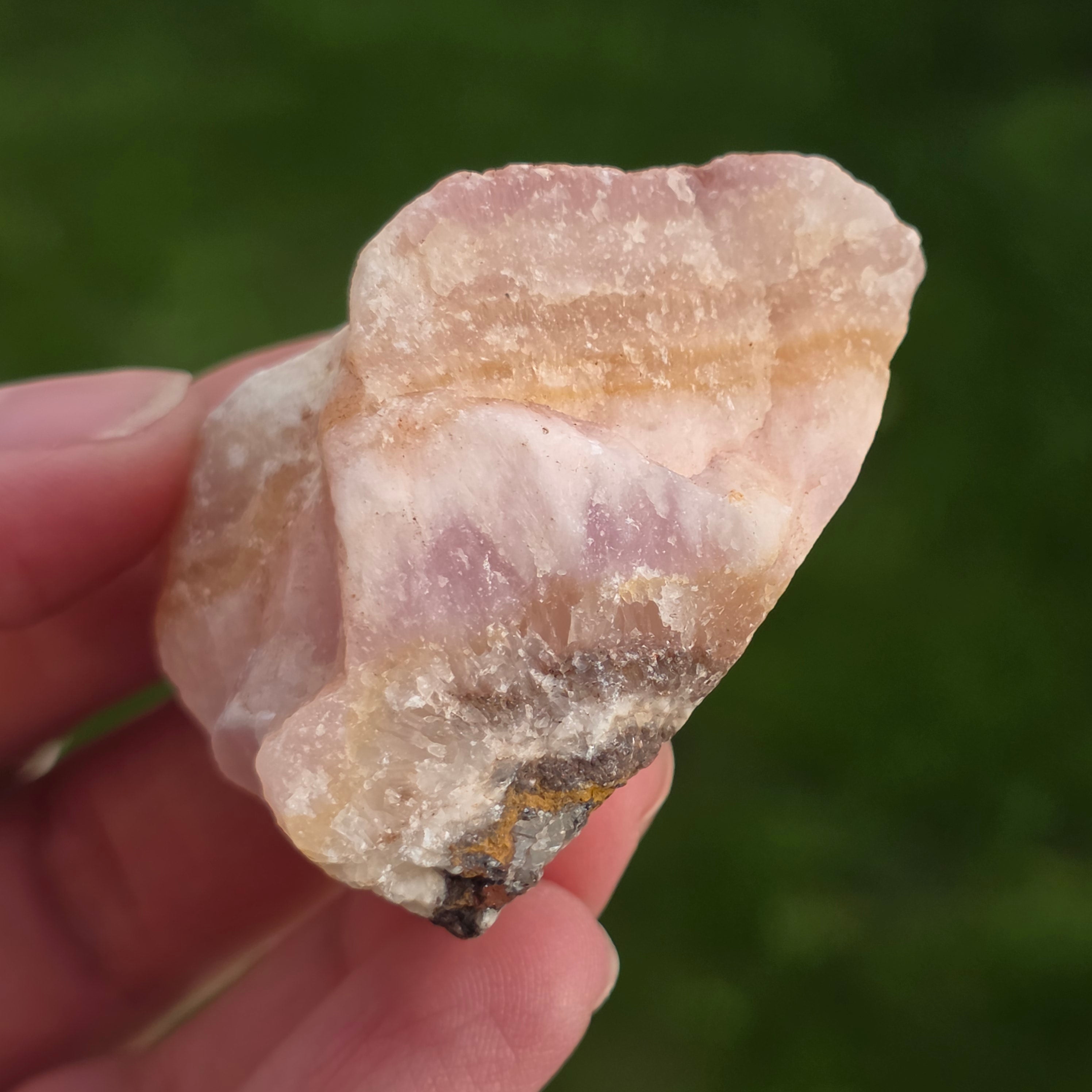 A rózsaszín aragonit ritka féldrágakő. Kalcium-karbonátból áll, és a vasszennyeződések miatt rózsaszín-narancssárga színű.