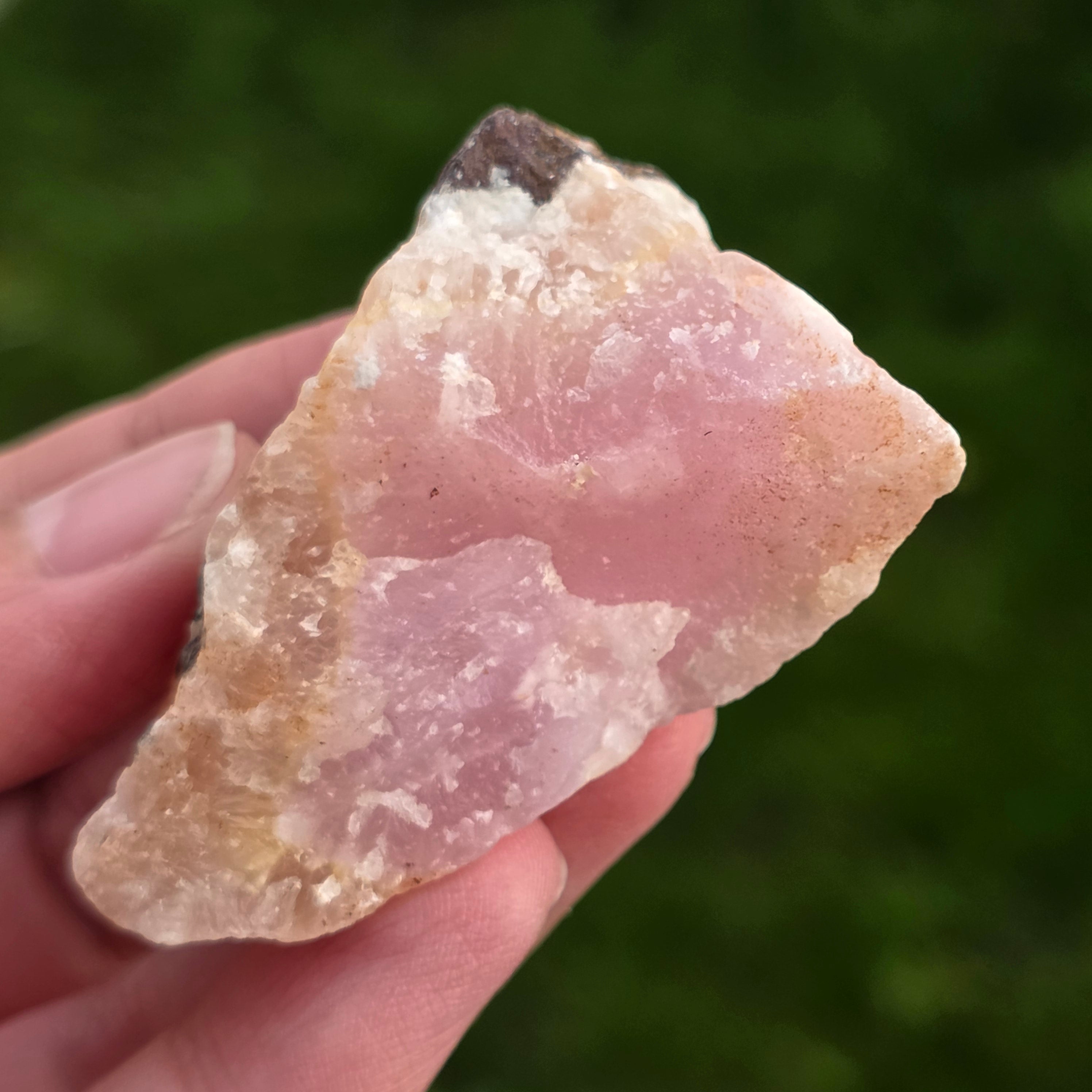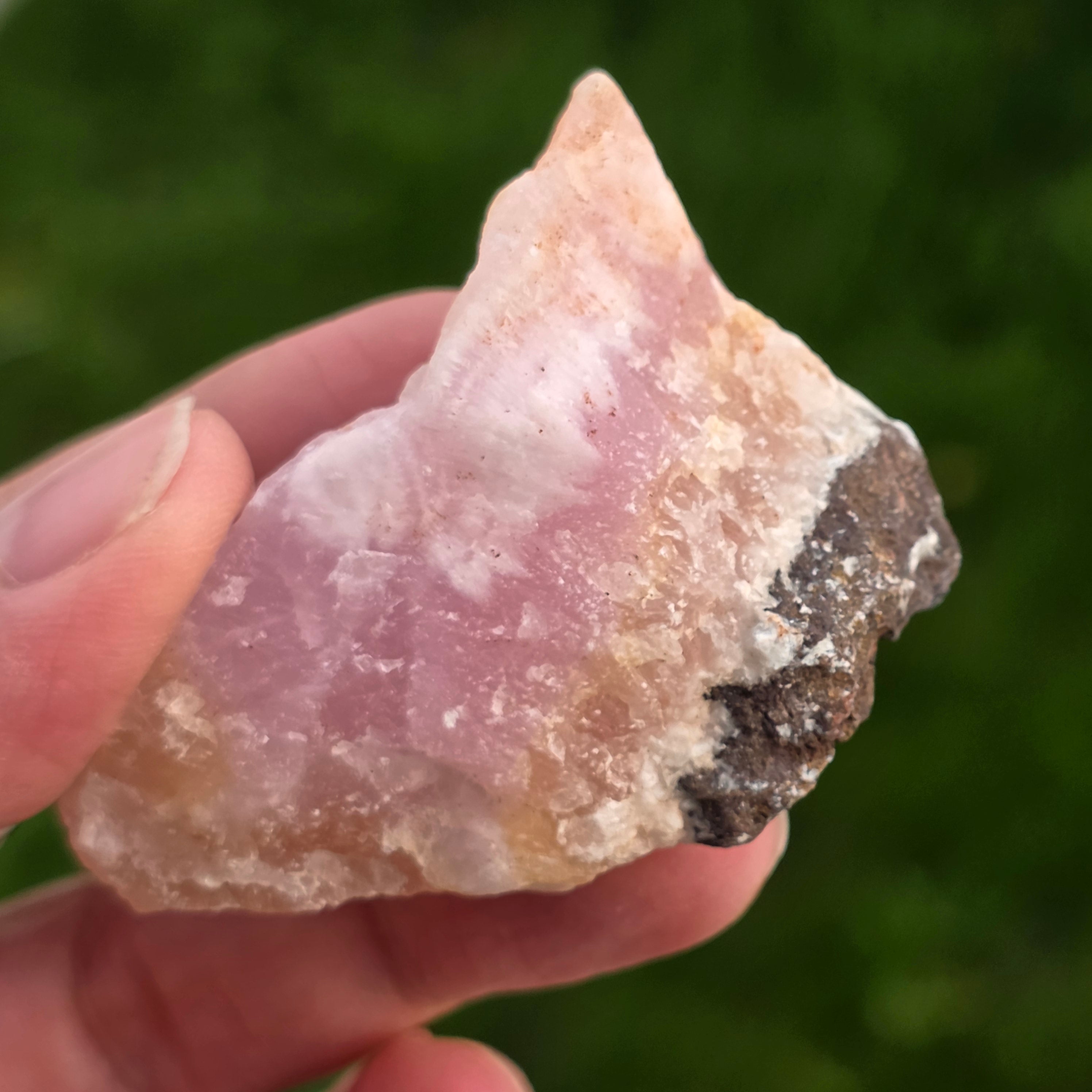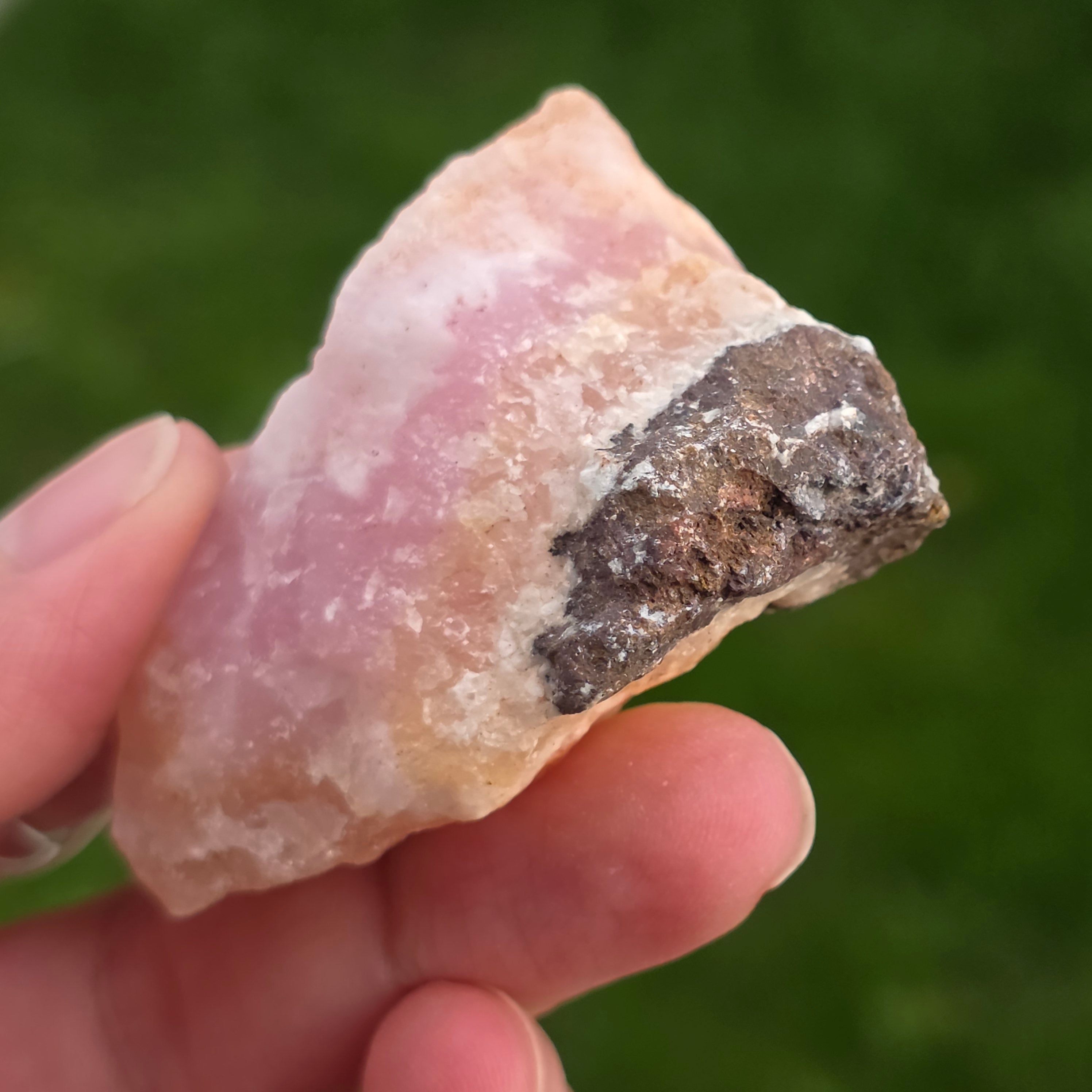 A rózsaszín aragonit ritka féldrágakő. Kalcium-karbonátból áll, és a vasszennyeződések miatt rózsaszín-narancssárga színű.