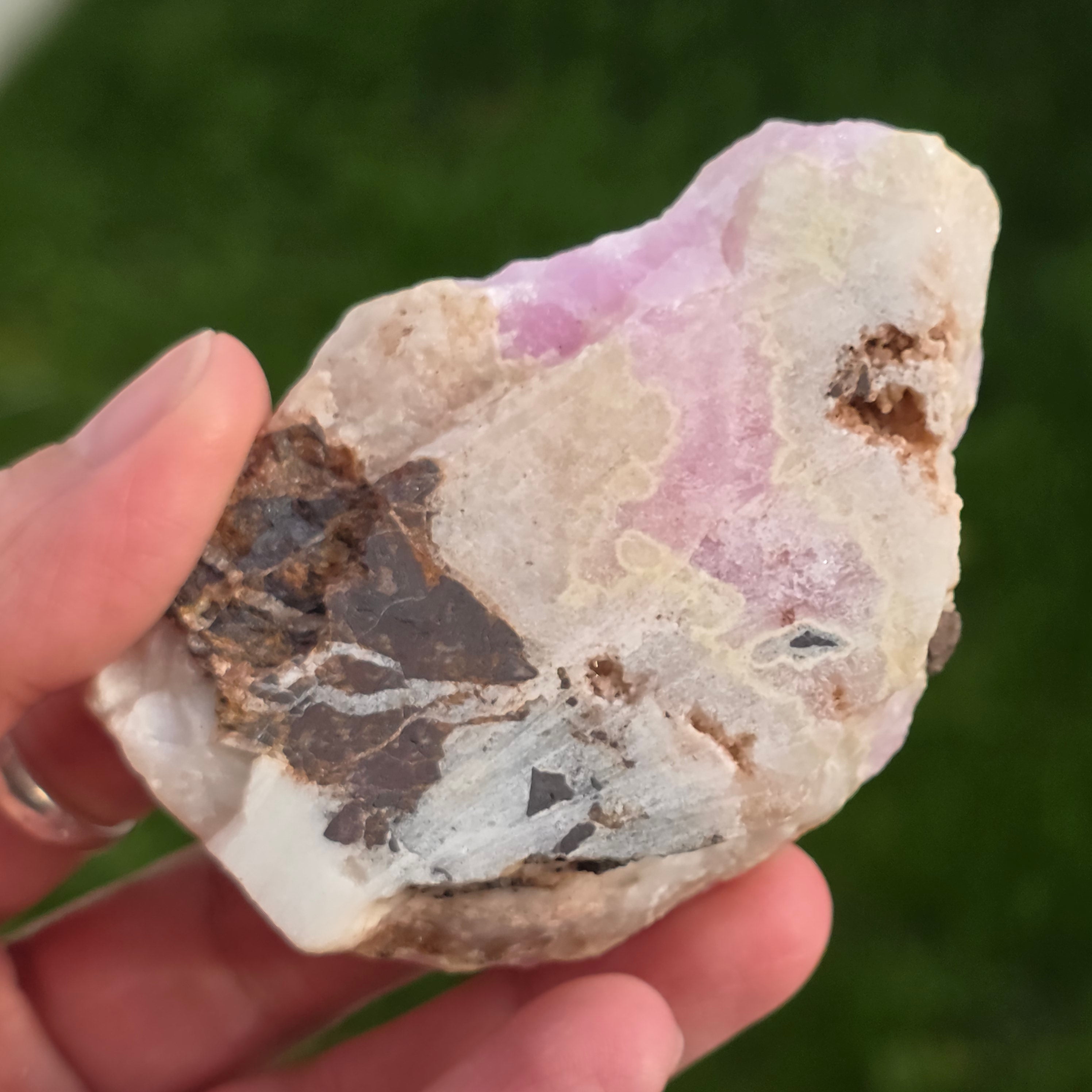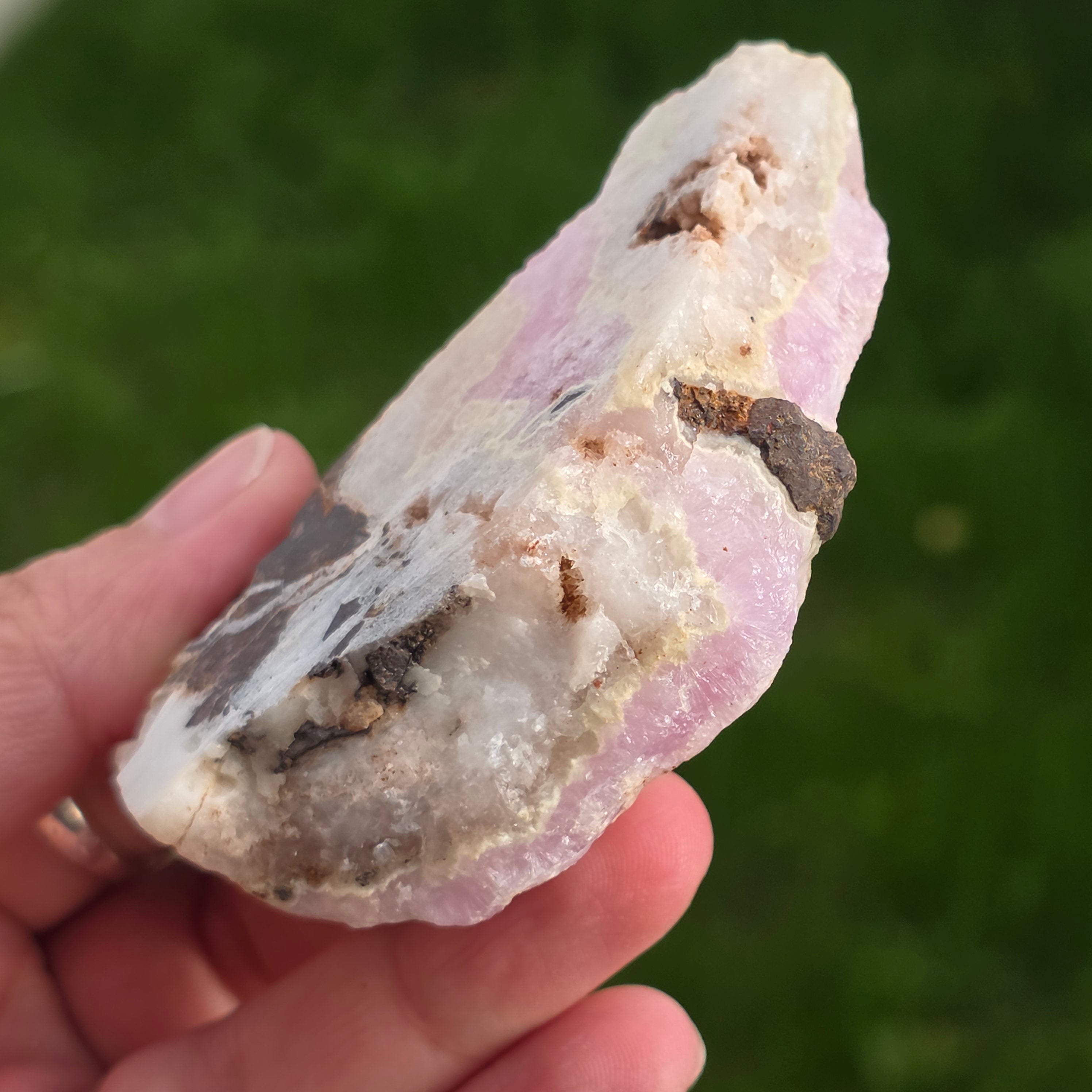 A rózsaszín aragonit ritka féldrágakő. Kalcium-karbonátból áll, és a vasszennyeződések miatt rózsaszín-narancssárga színű.