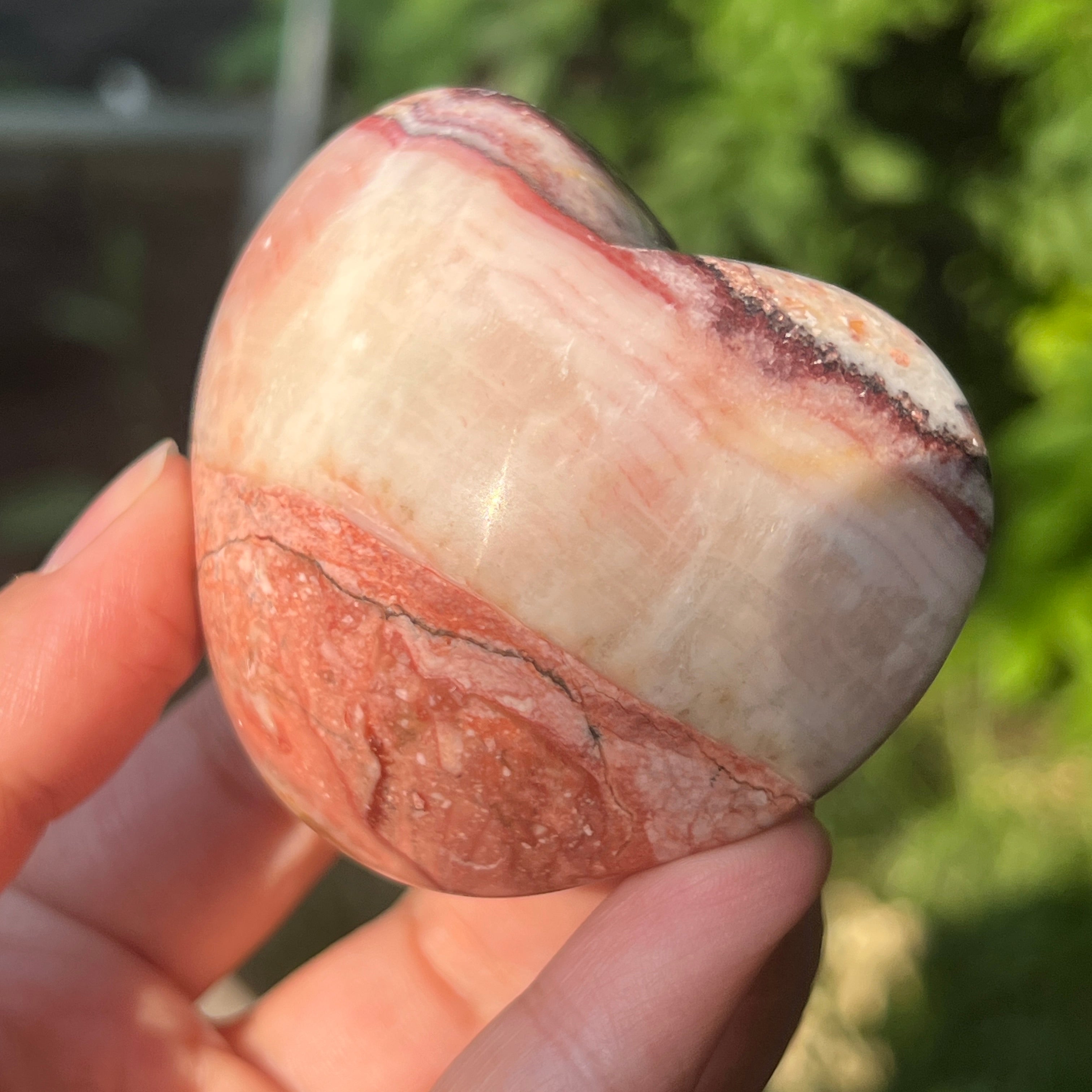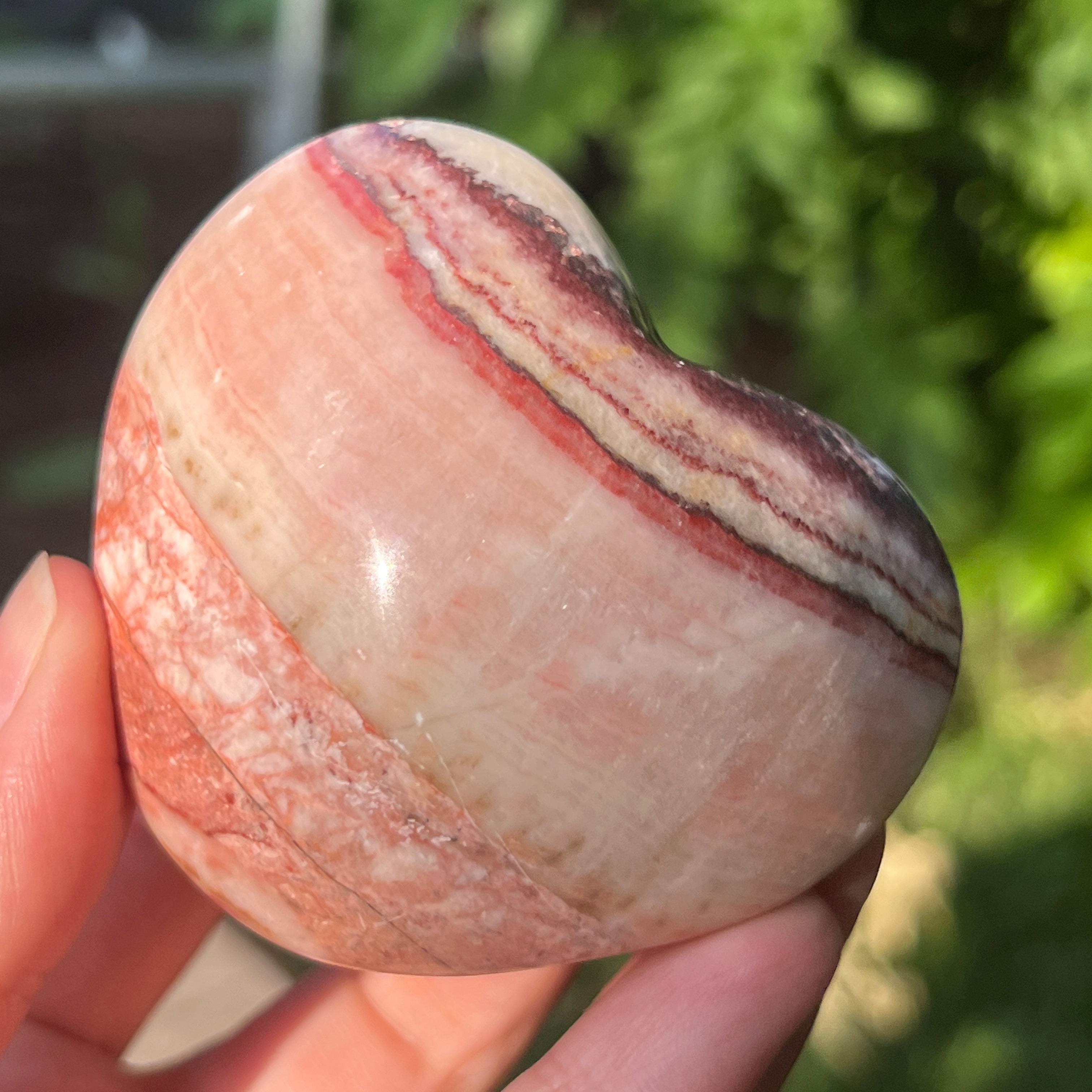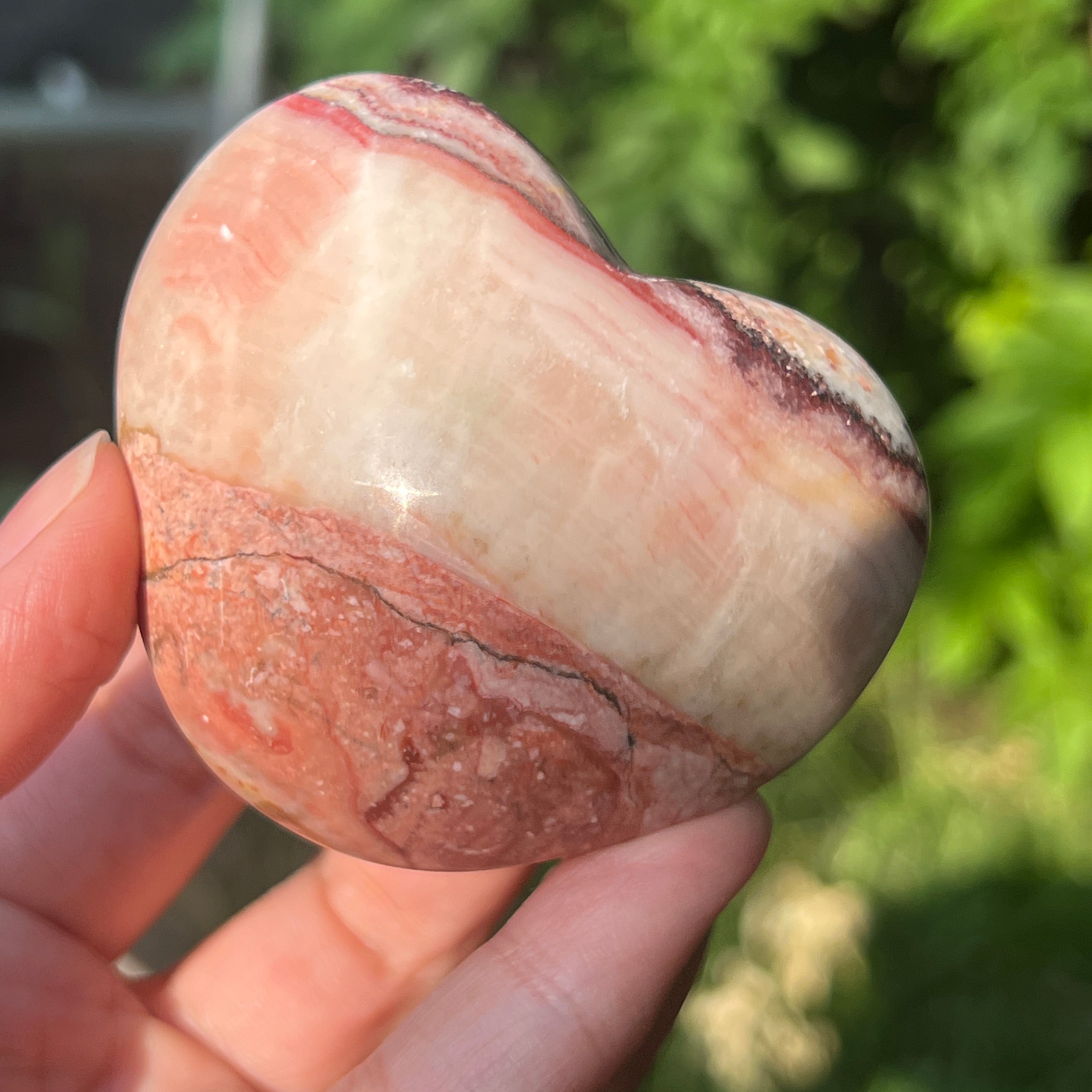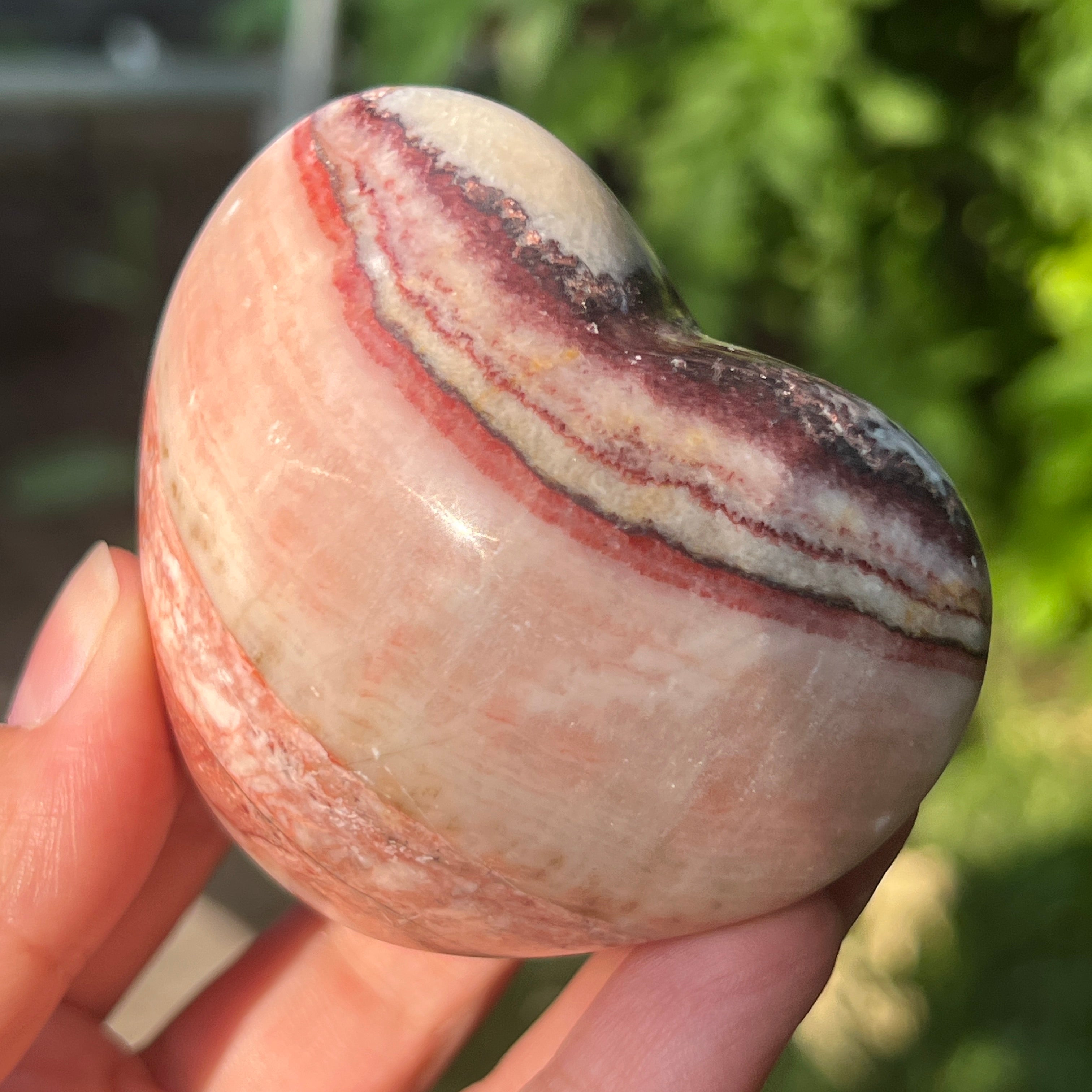 Rózsaszín csíkos kalcit szív m3. Méret: 6,8 x 5,7 x 4,2 cm