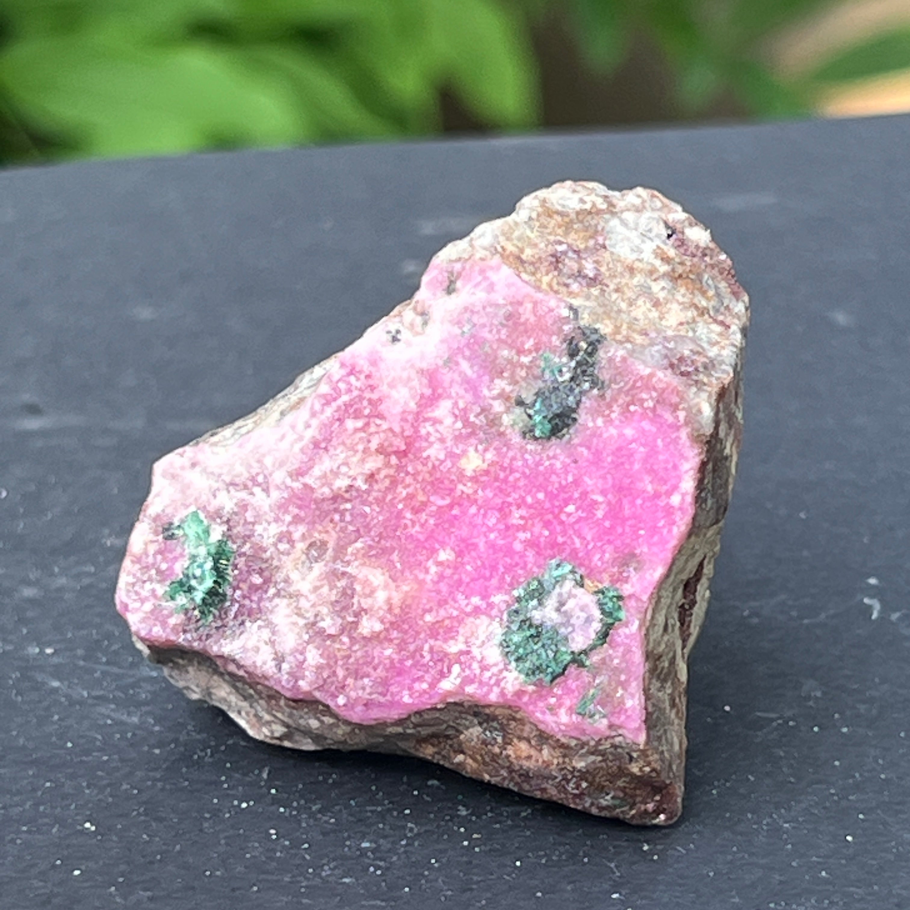 Vélemények - Rózsaszín dolomit Salrose malachit betétekkel, nyers kő m31