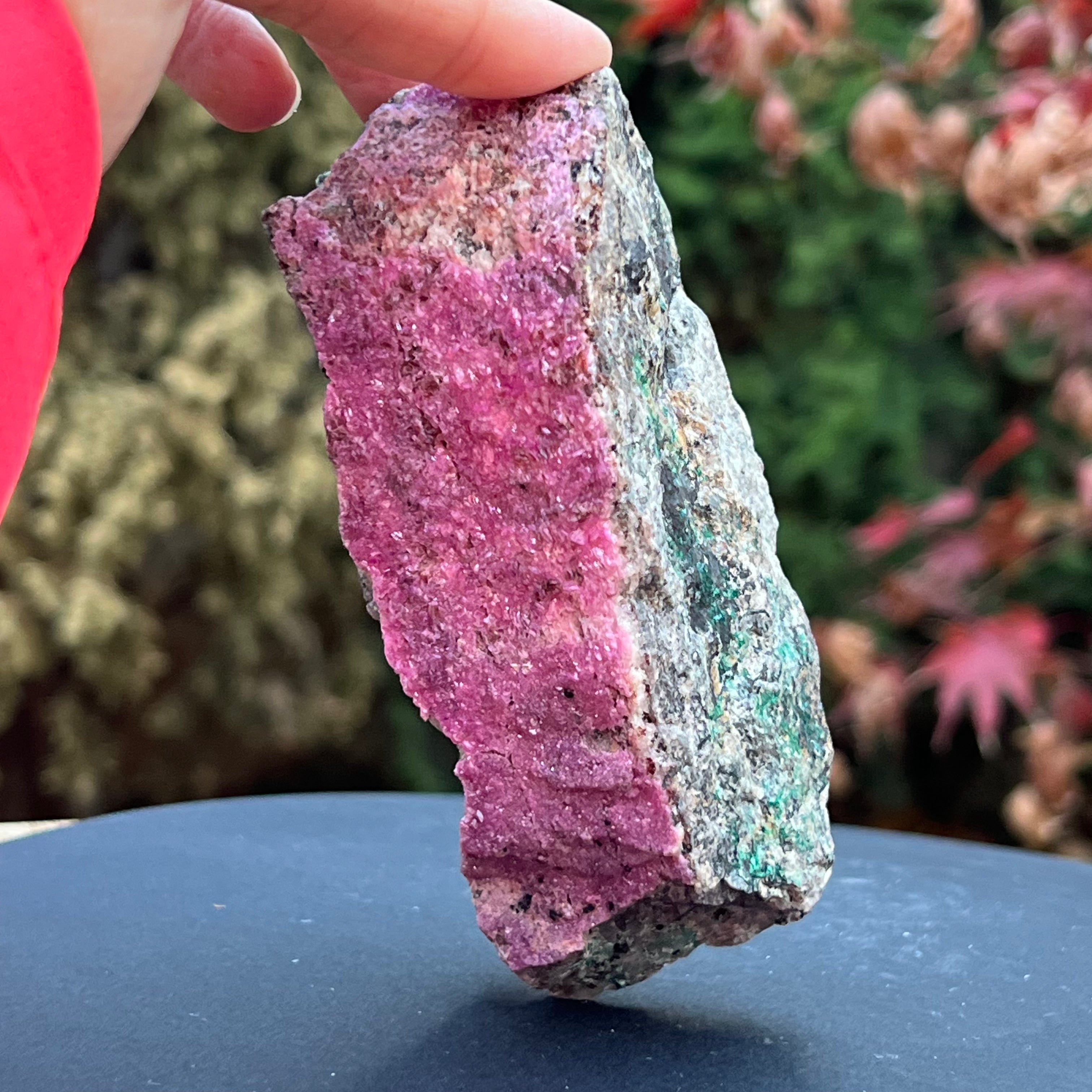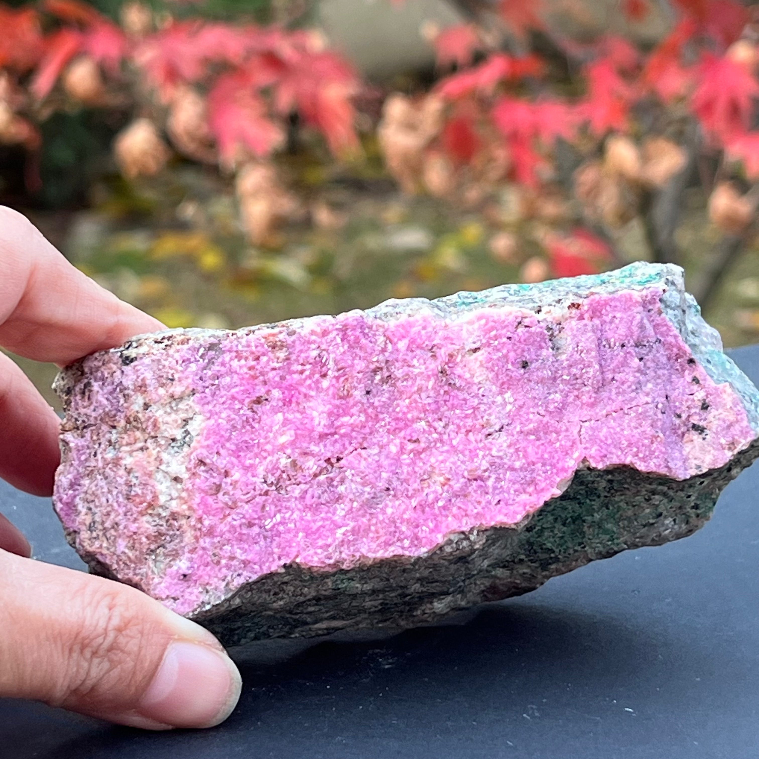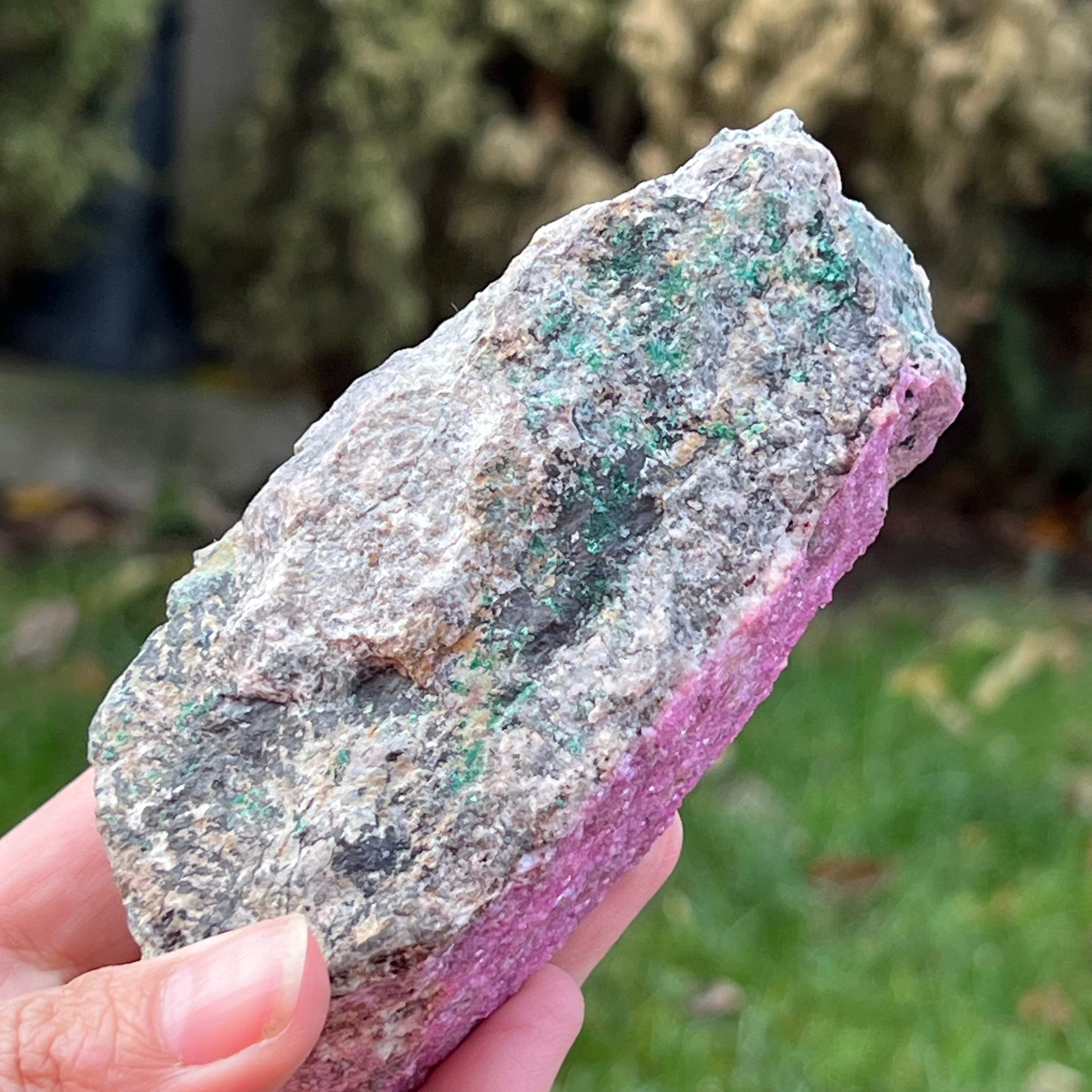 Rózsaszín dolomit Salrose malachit betétekkel nyers kő m4, méret: 12 * 5 * 5,2 cm