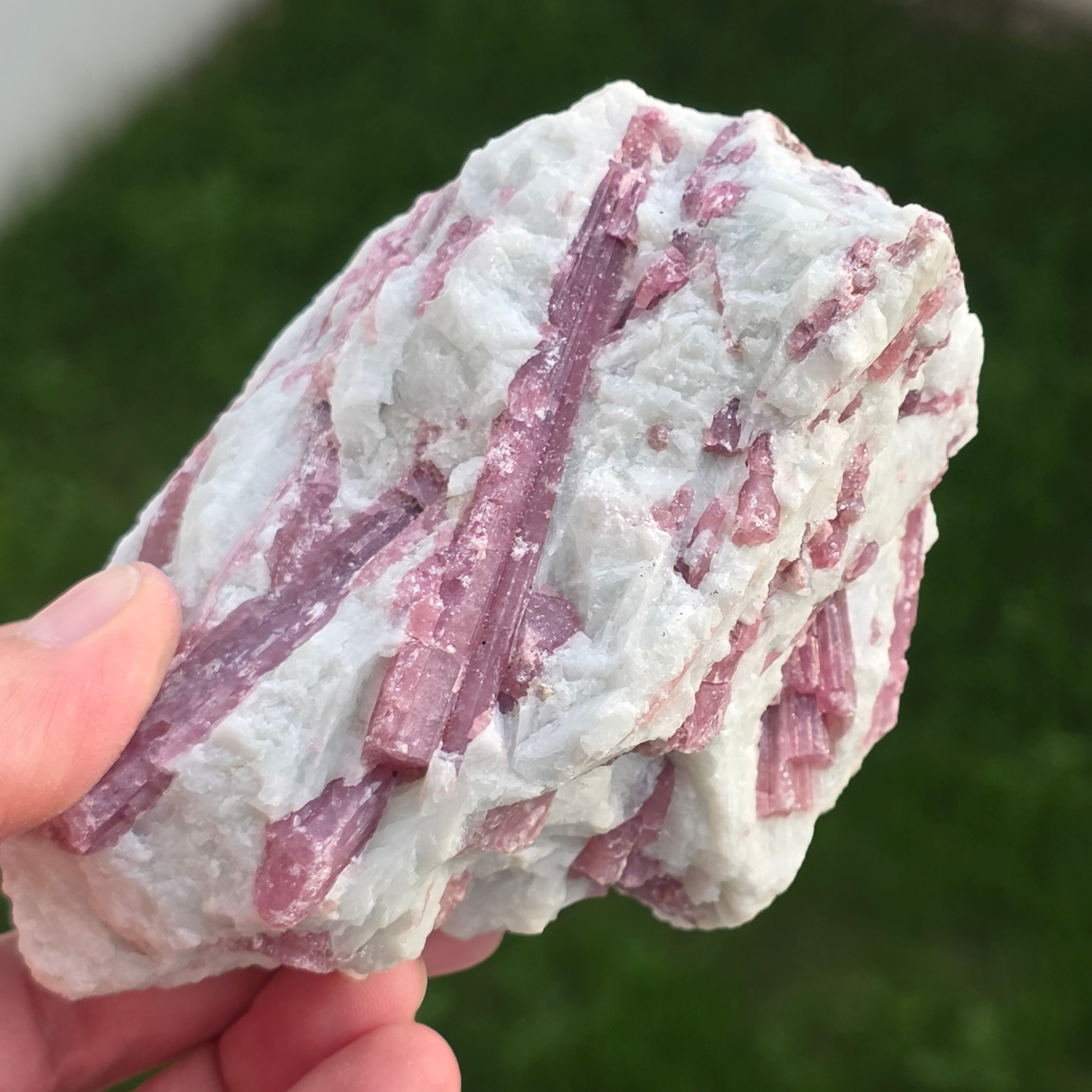 Rubbosz/rózsaszín turmalin Egy durva kő Brazíliából, m3