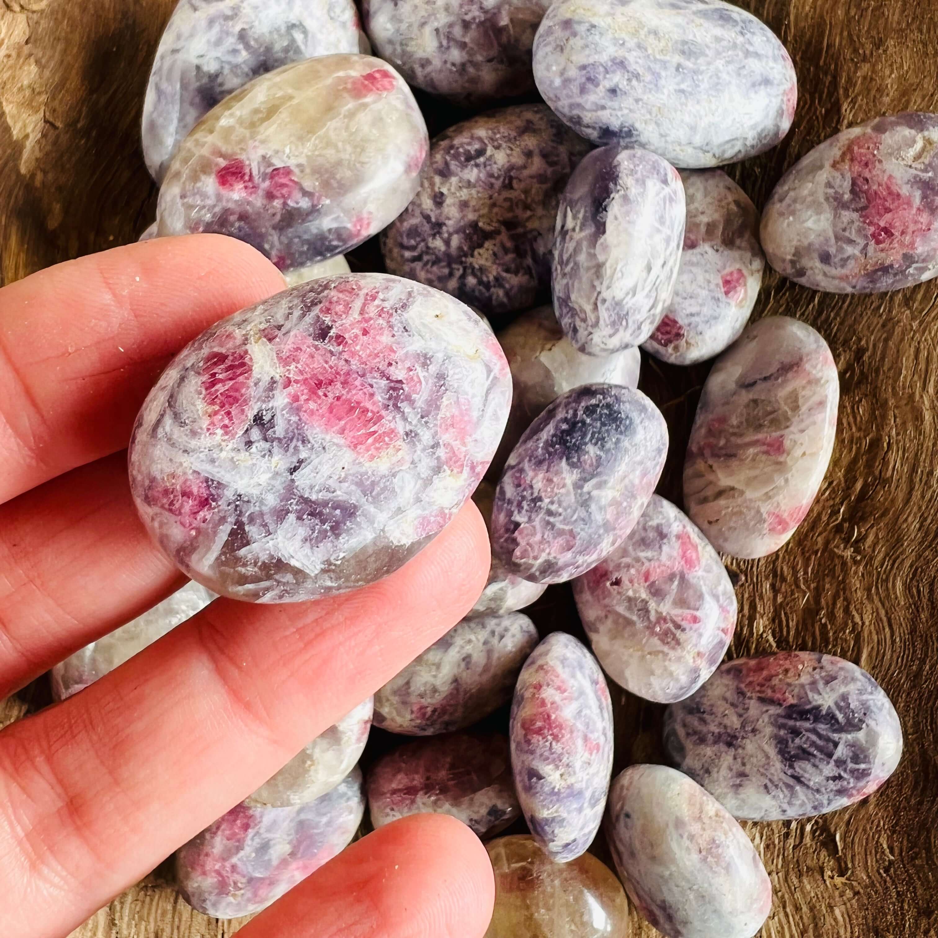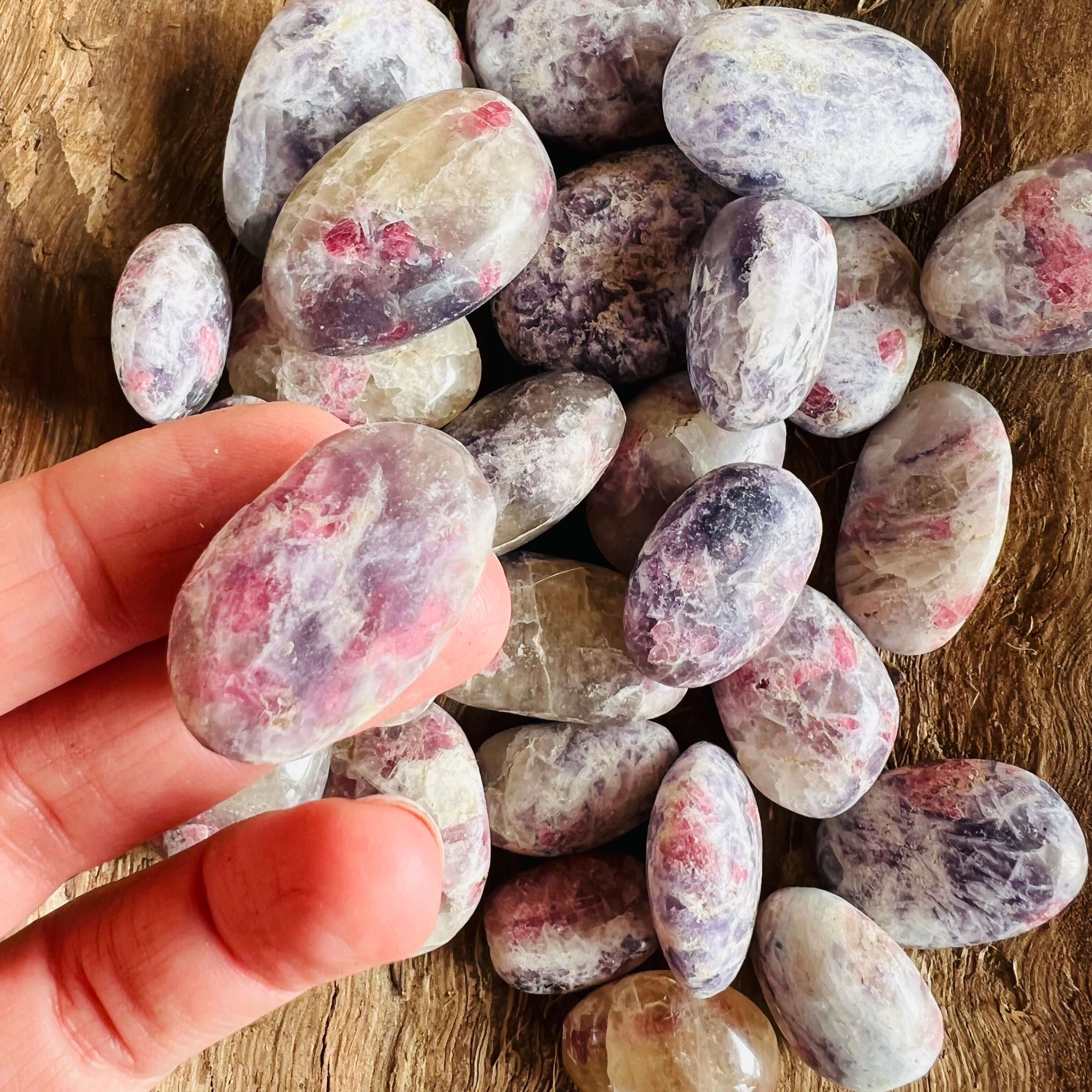 Rubelit/rubin mini hengerelt kő mátrixban, 2,5-5 cm közötti méretben. Az ár a kő méretétől függően változik, kérjük válassza ki a kívánt méretet.