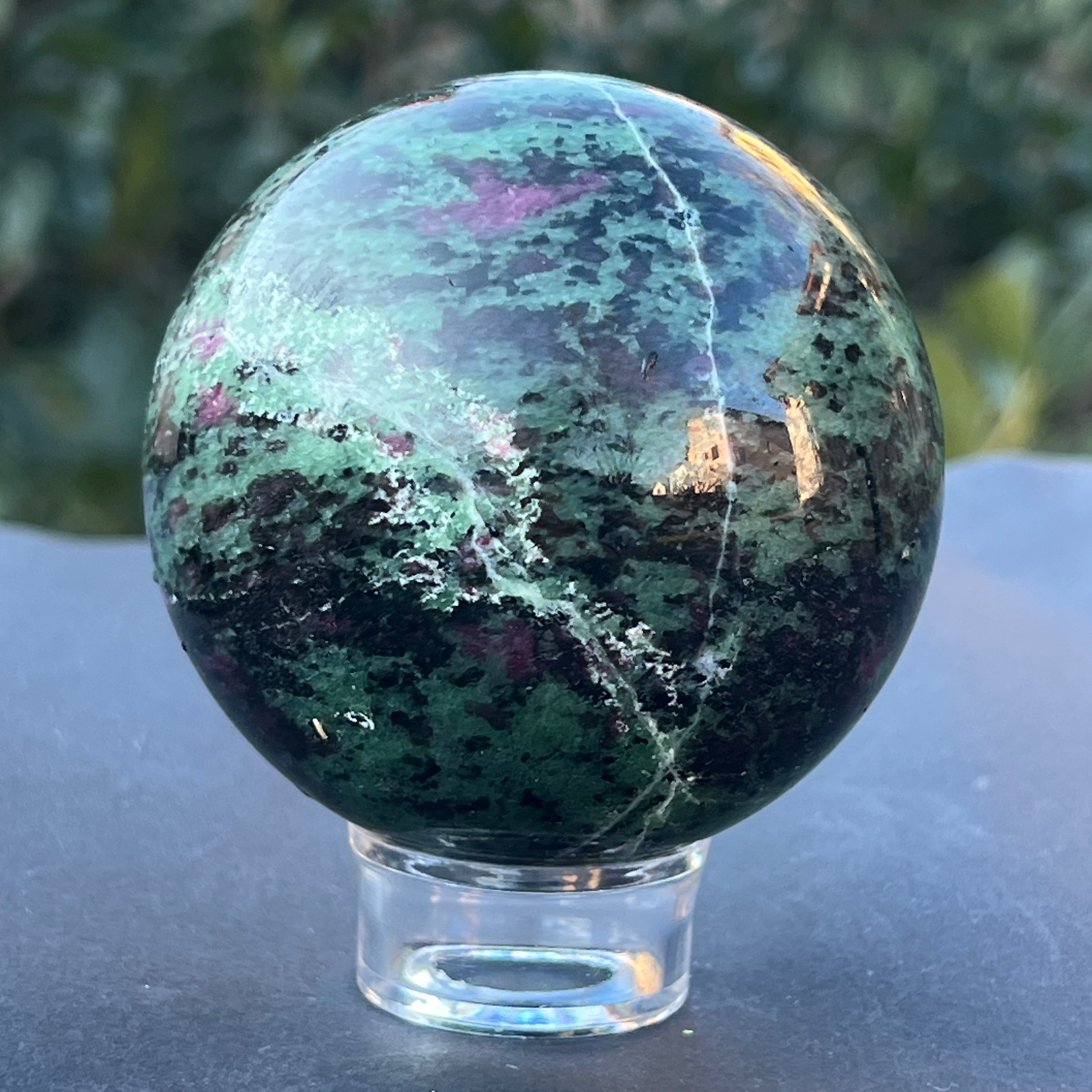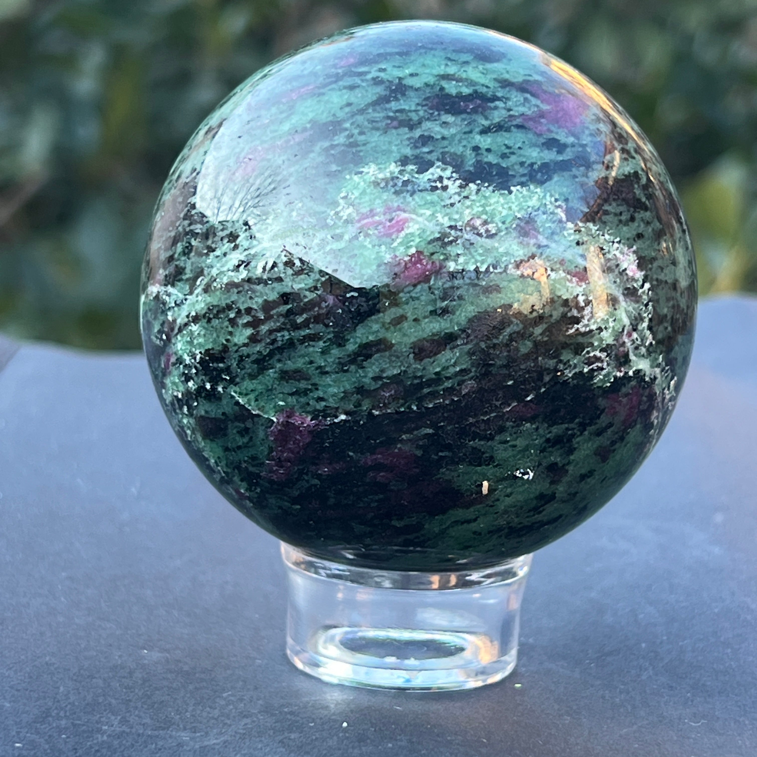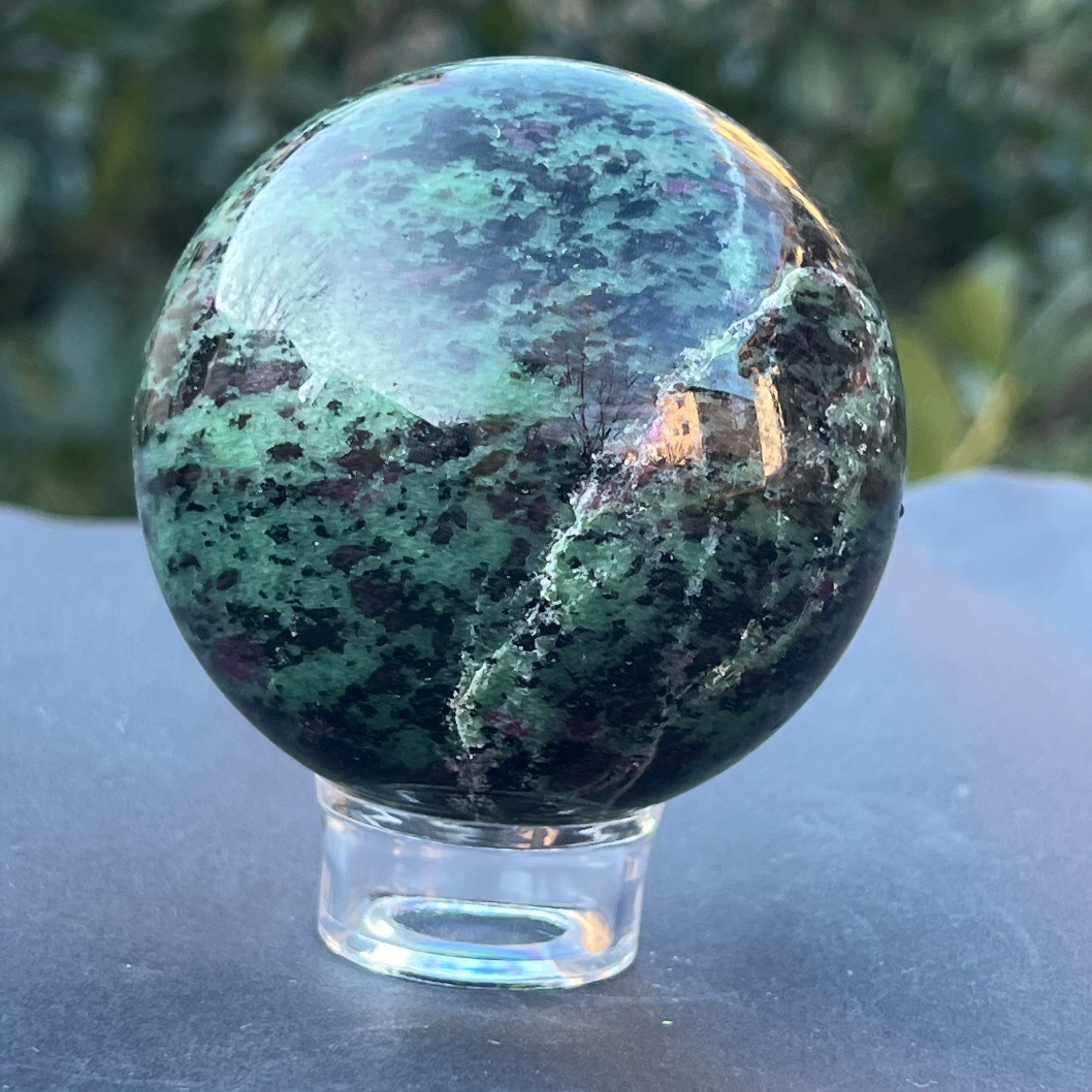 A rubinnal a zoisztban, amelyet "Anyolite" néven is ismernek, egy ritka és egzotikus féldrágakő, amely rubinkristályokból áll, zöld zoiszt mátrixban.