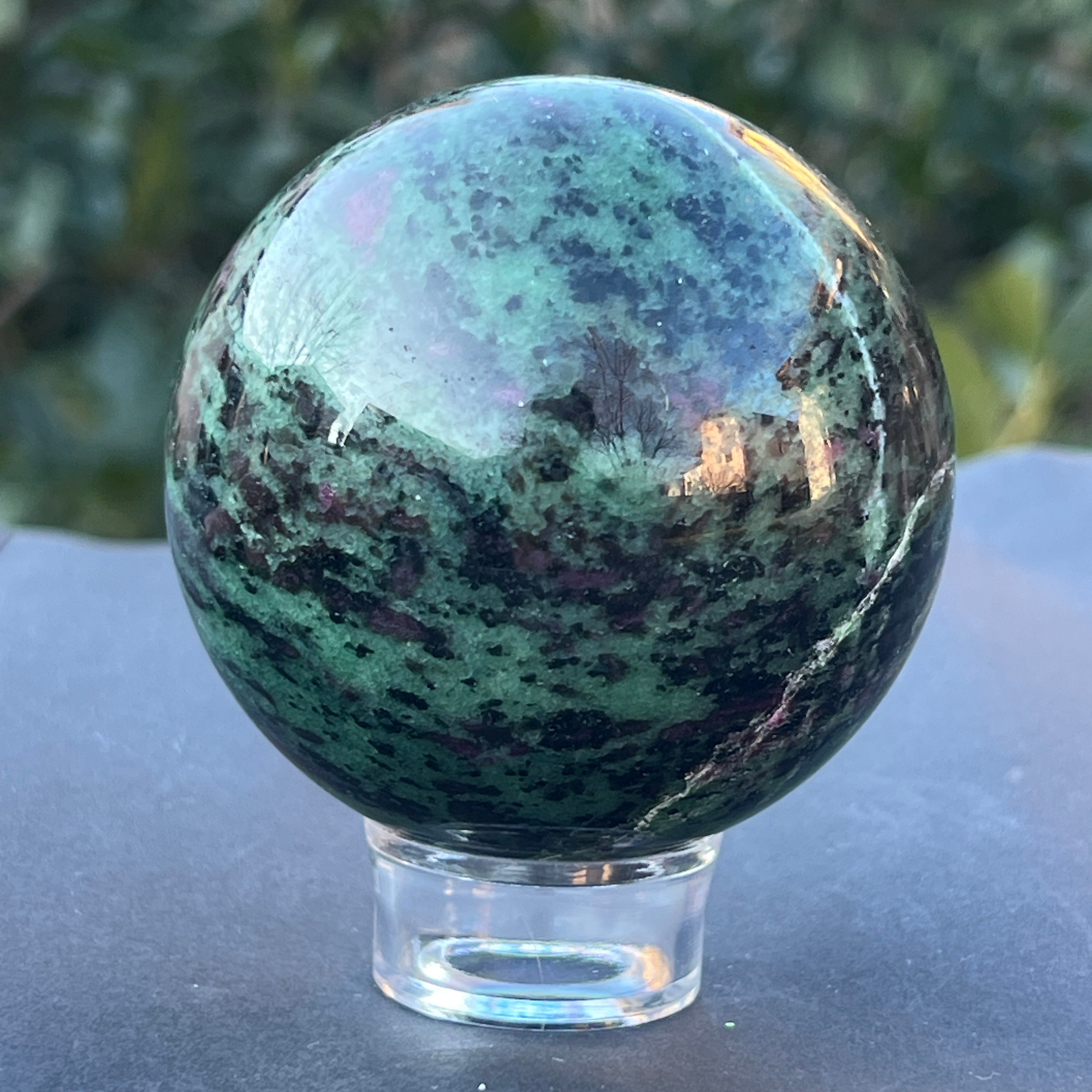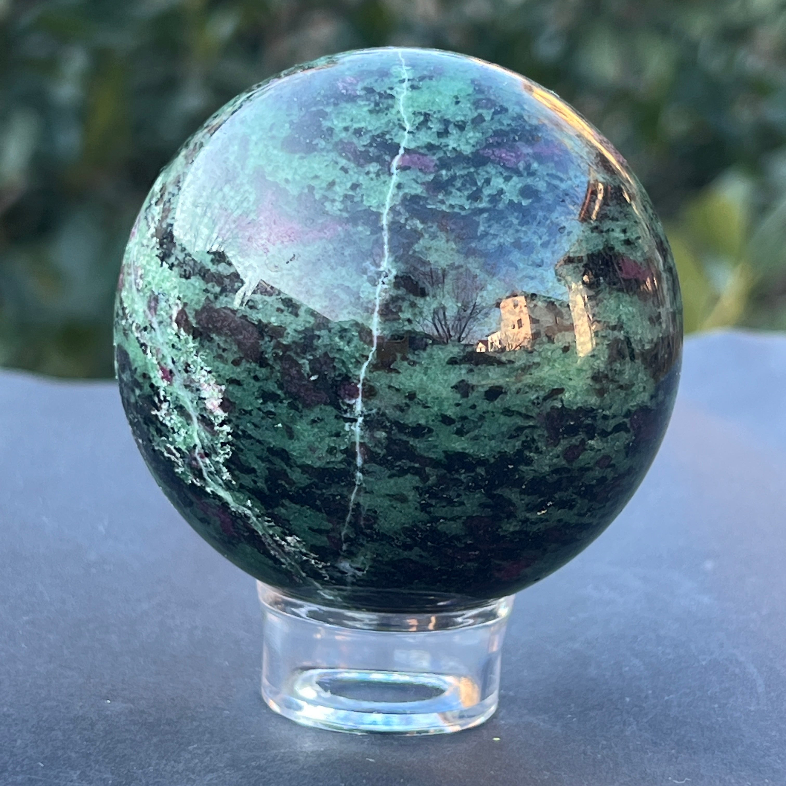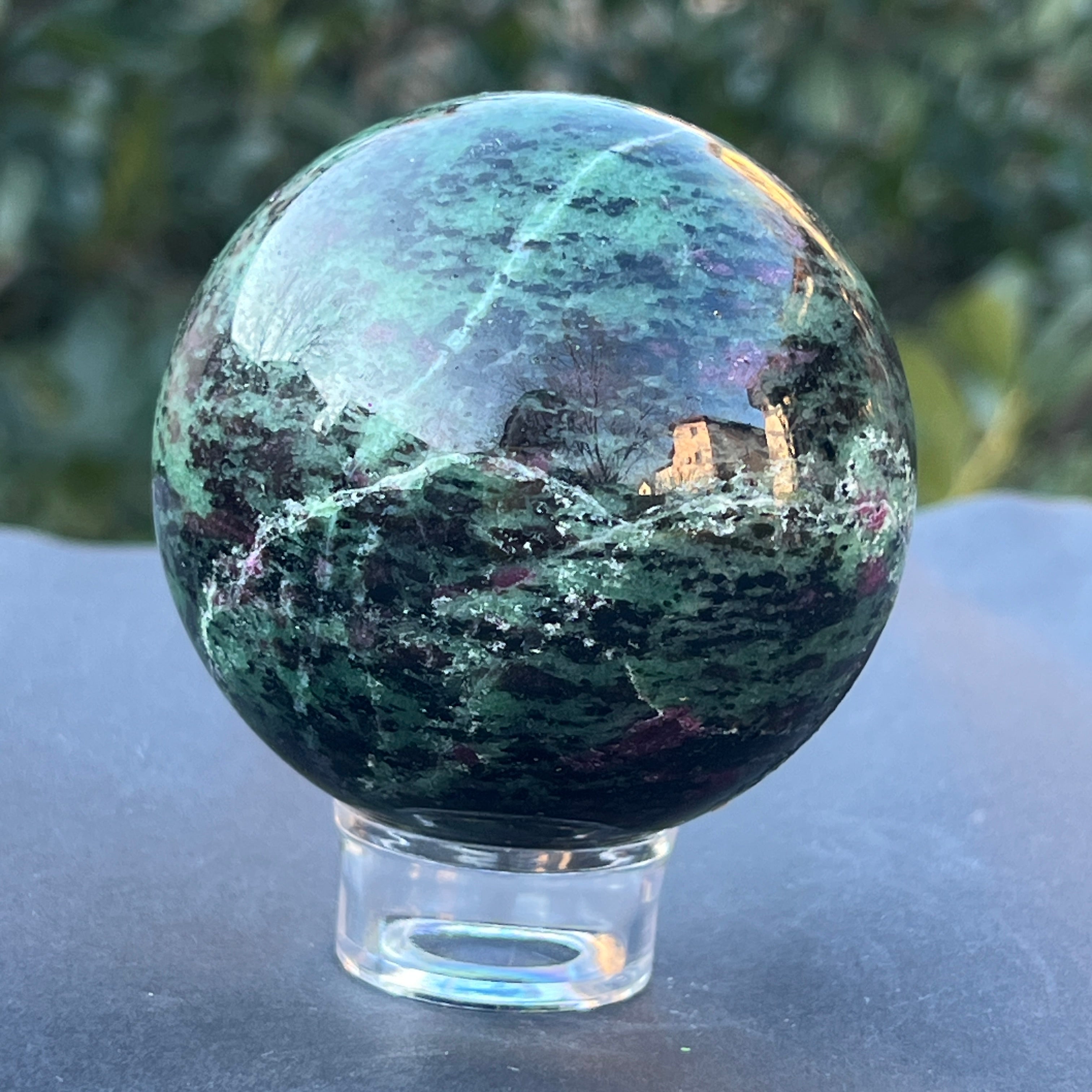 A rubinnal a zoisztban, amelyet "Anyolite" néven is ismernek, egy ritka és egzotikus féldrágakő, amely rubinkristályokból áll, zöld zoiszt mátrixban.