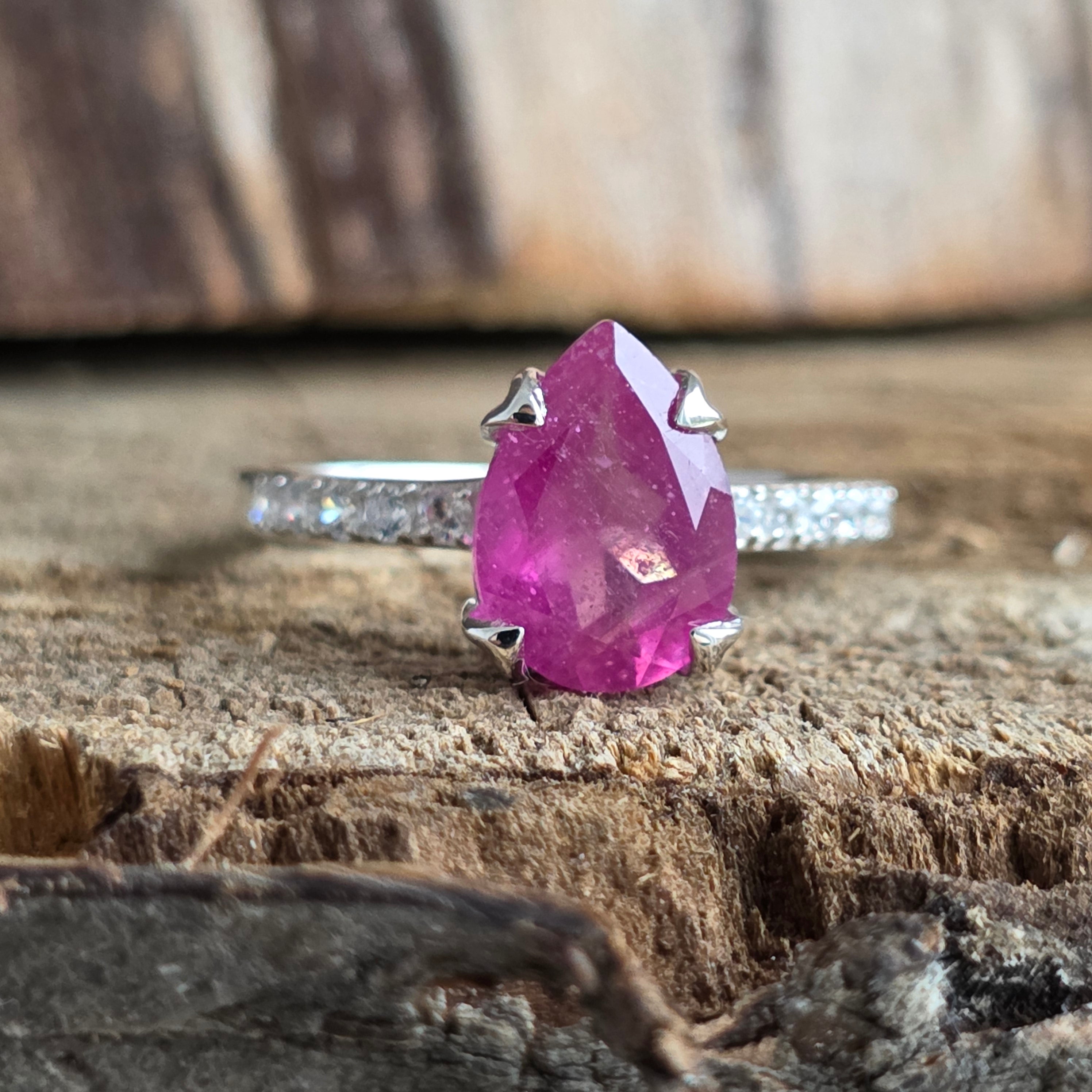 Descriere - Rubin és topáz ezüst gyűrű, Pear 10 mm