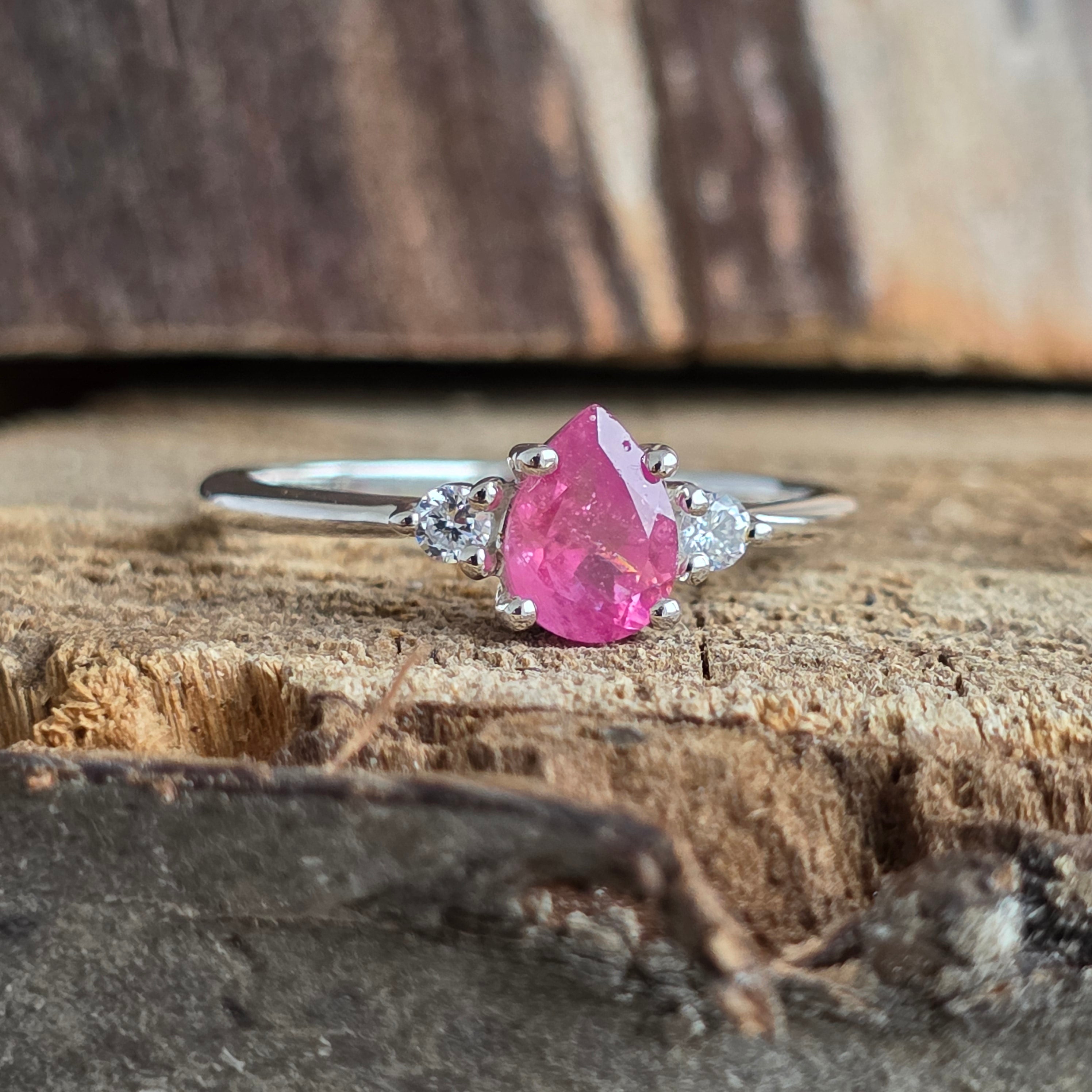 Rubin és topáz ezüst gyűrű Pear 7 mm, kérjük, válassza ki a kívánt méretet.