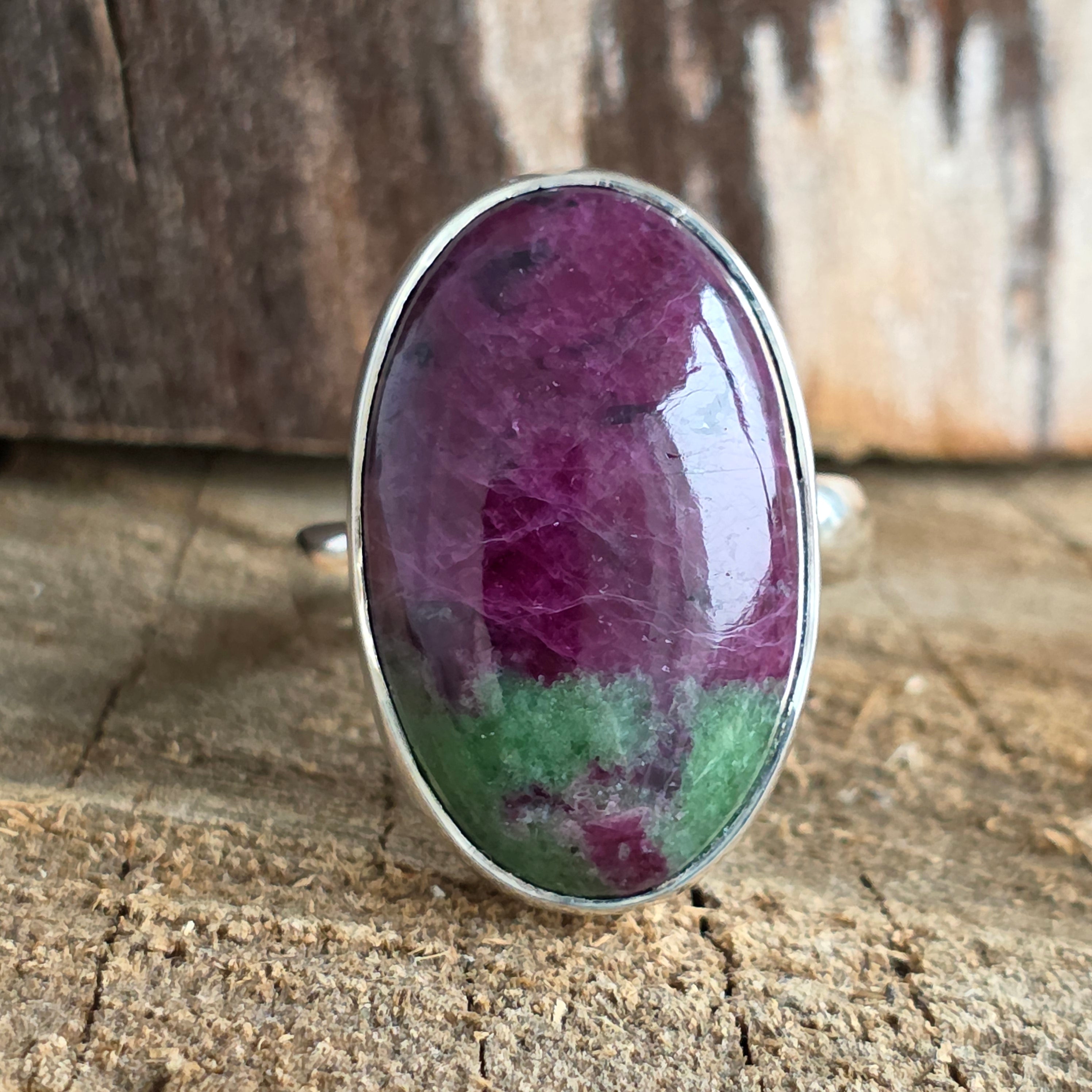 Viseld ezt a rubinnal és zosszittal díszített ezüstgyűrűt, hogy energiát, egyensúlyt és természetes eleganciát hozz az életedbe – egy egyedi darab, amelyet azoknak a lelkeknek terveztek, akik szeretik a ritka ékszereket.