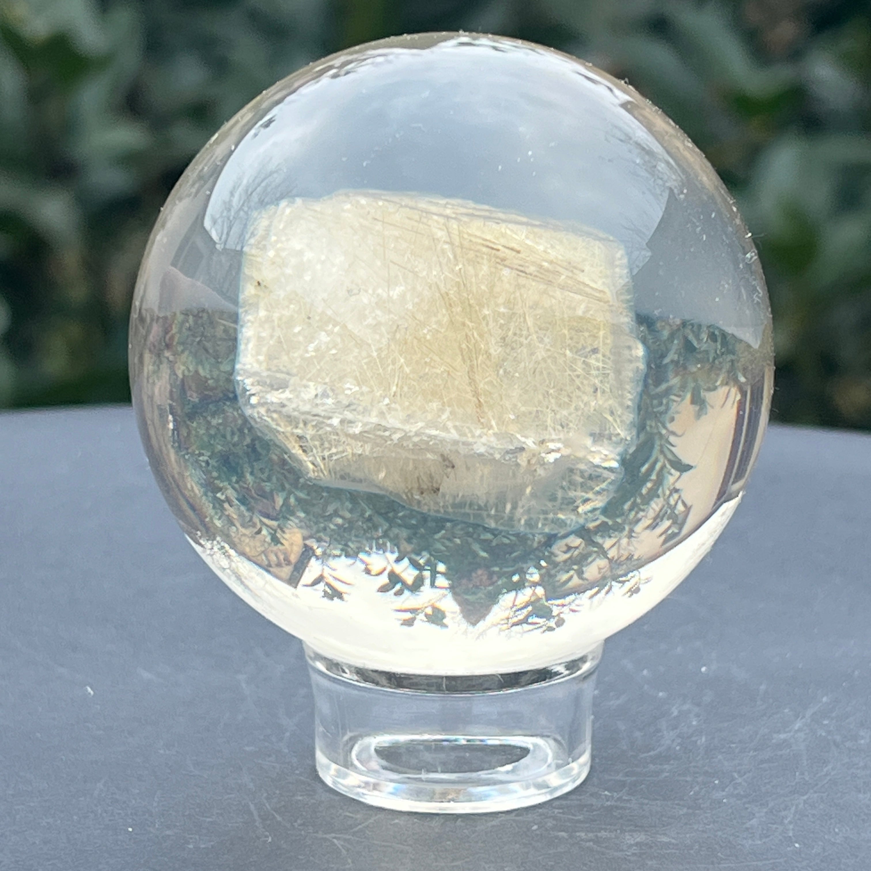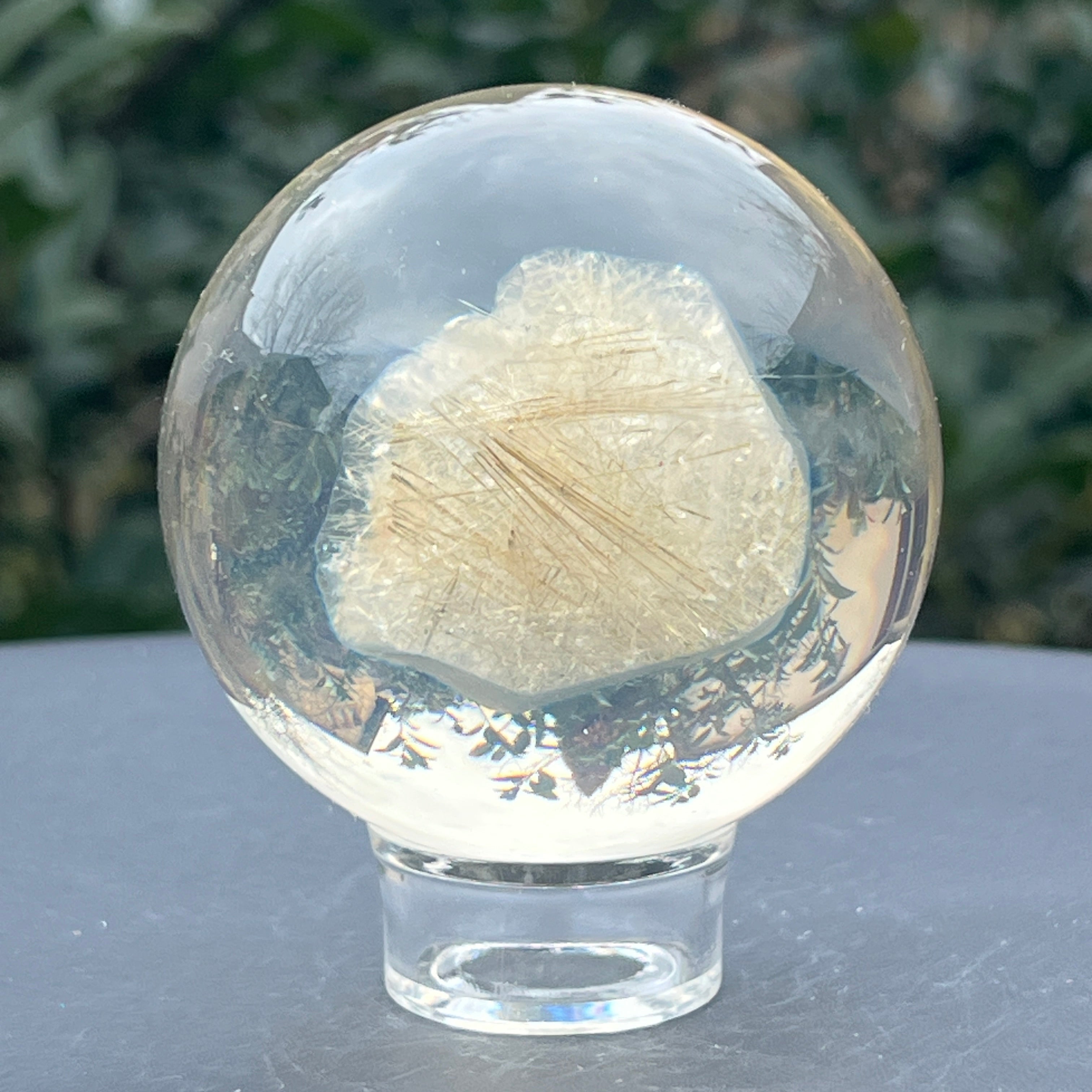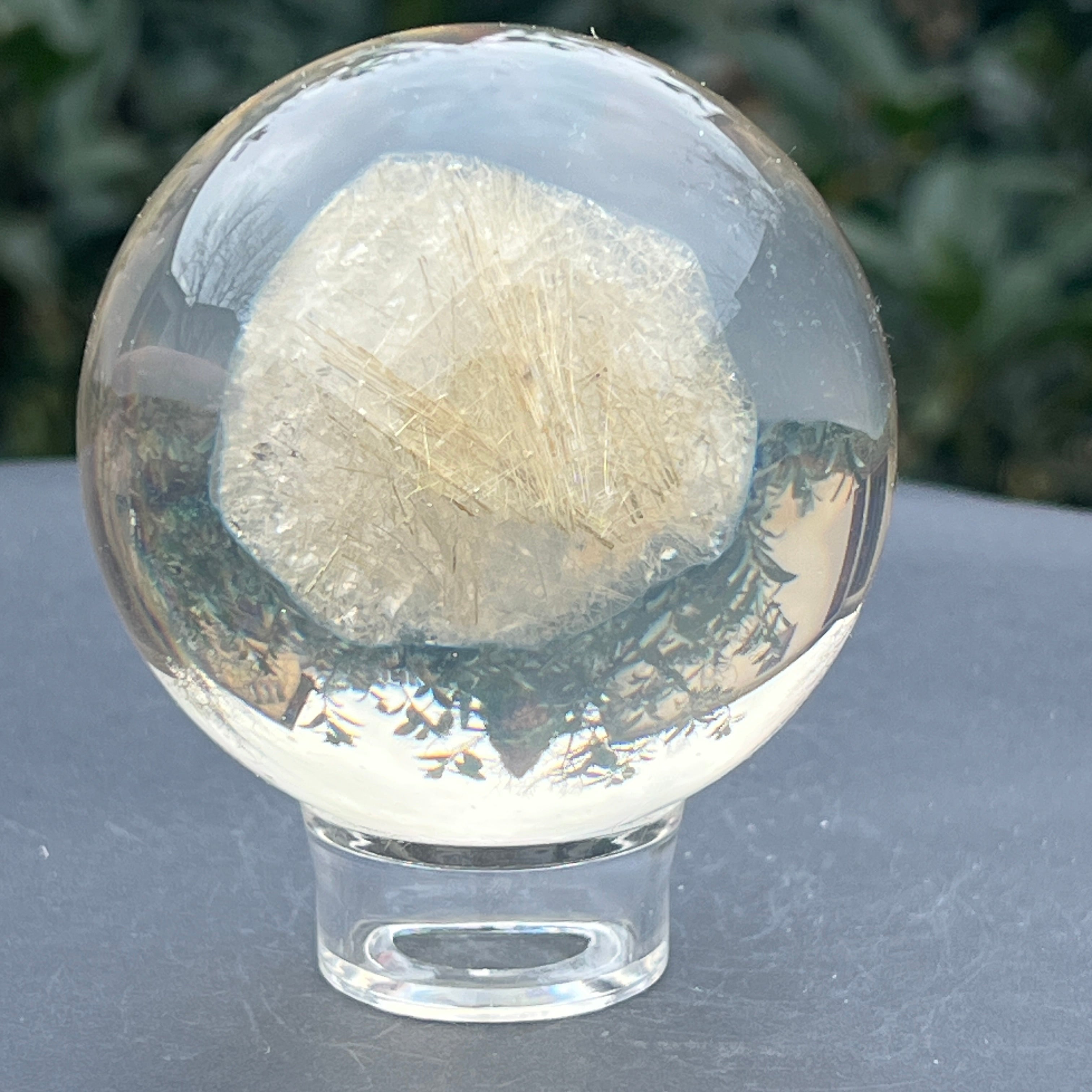 Rutilált kvarcgömb 2-es műgyanta modellben, mérete: 6,5 cm
