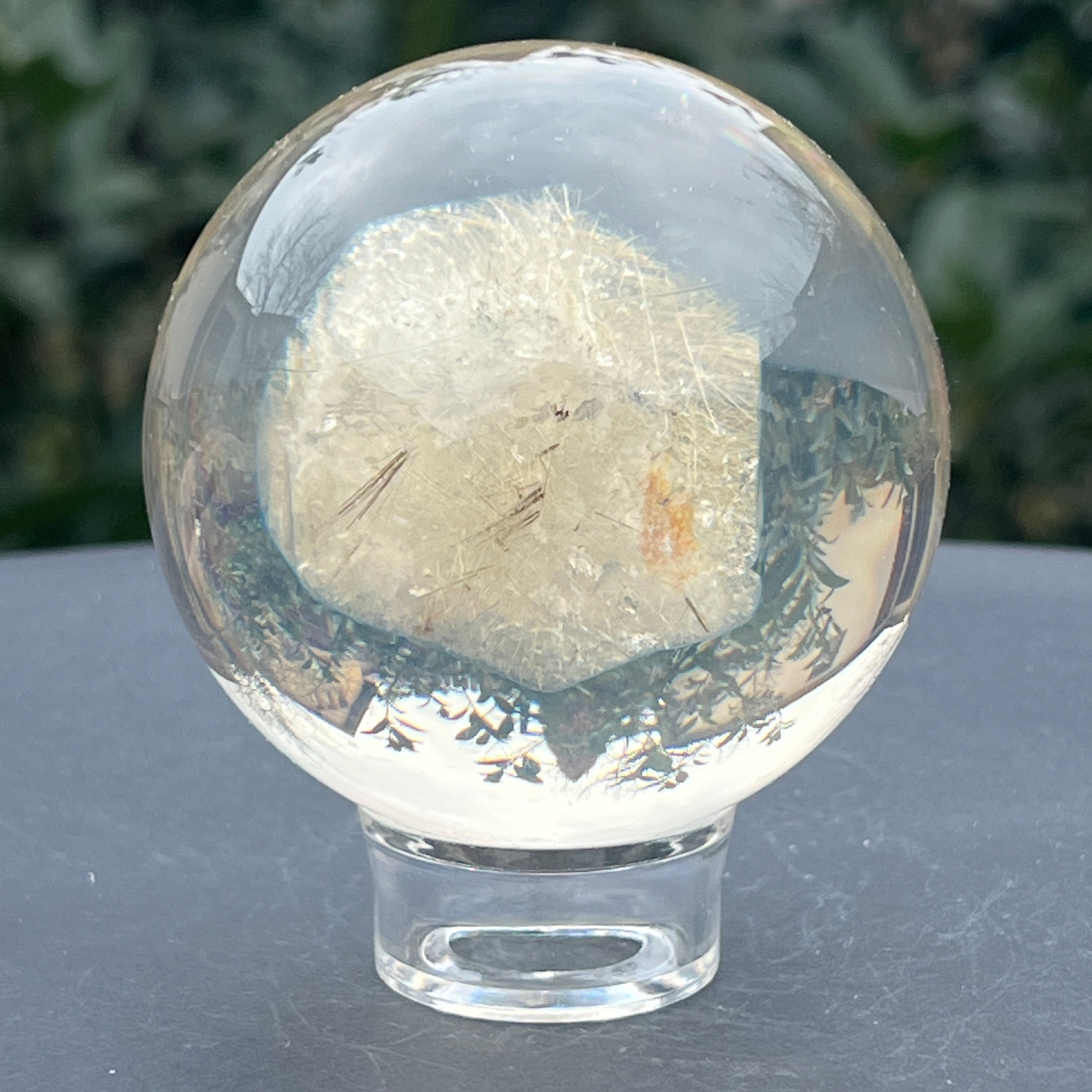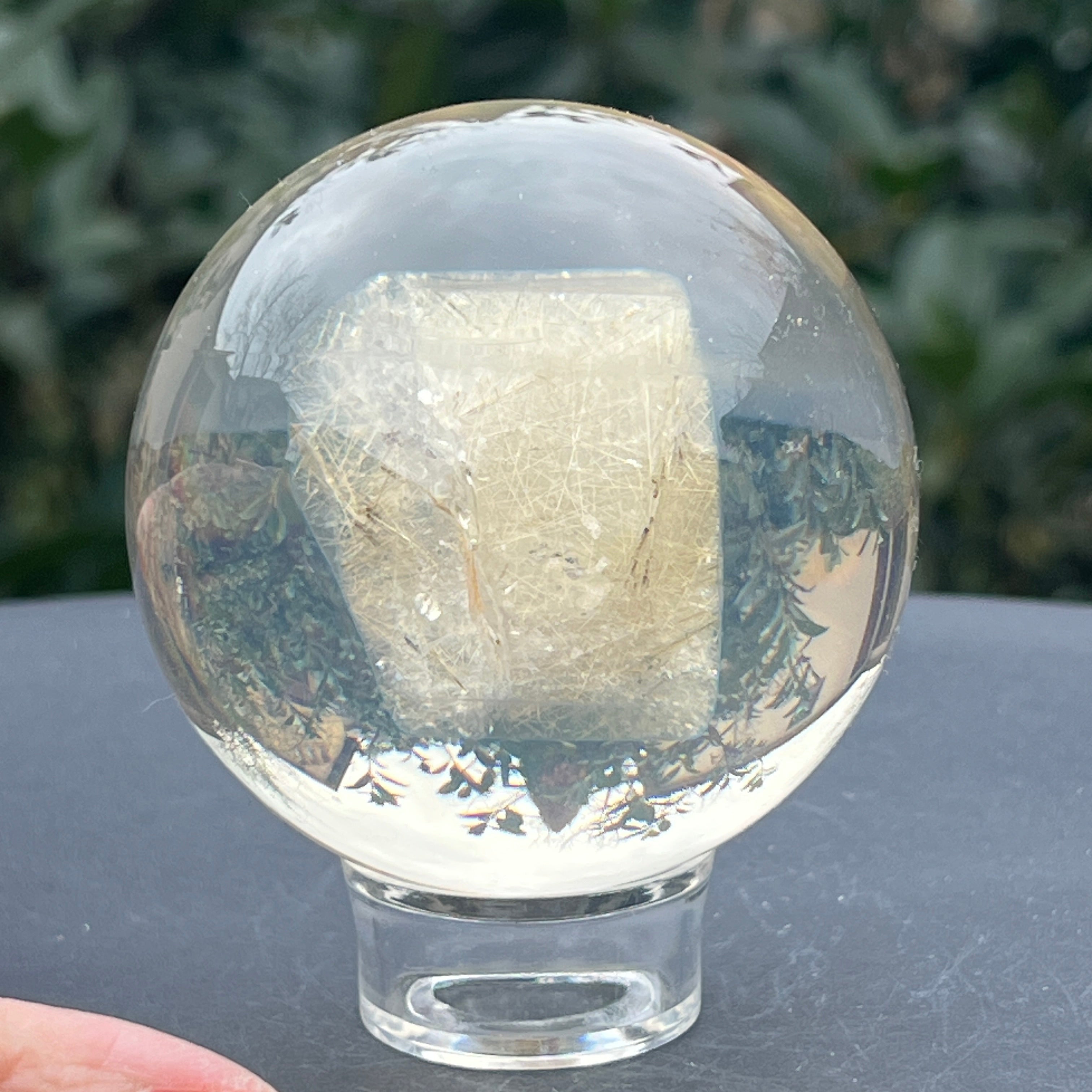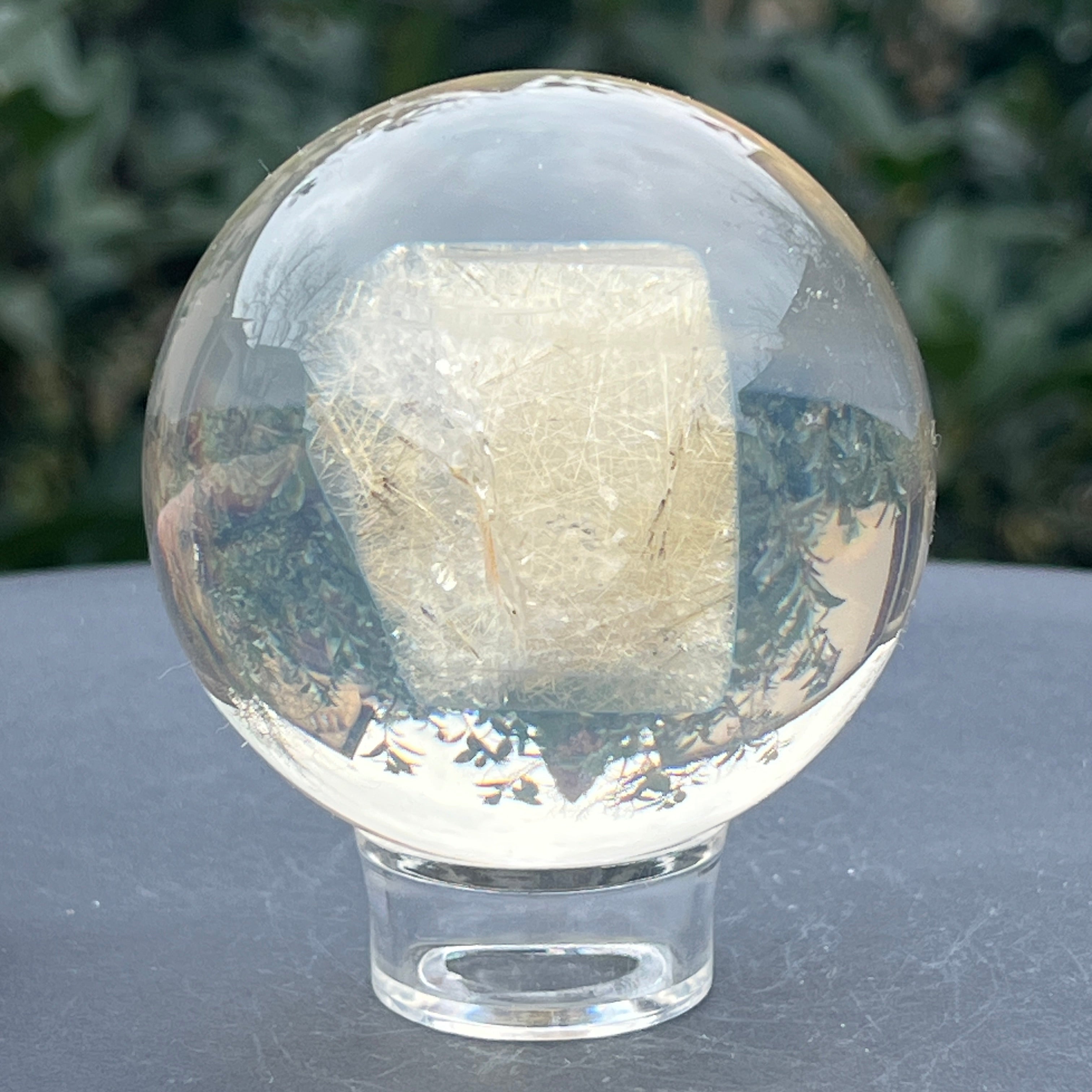 Rutilált kvarcgömb 2-es műgyanta modellben, mérete: 6,5 cm