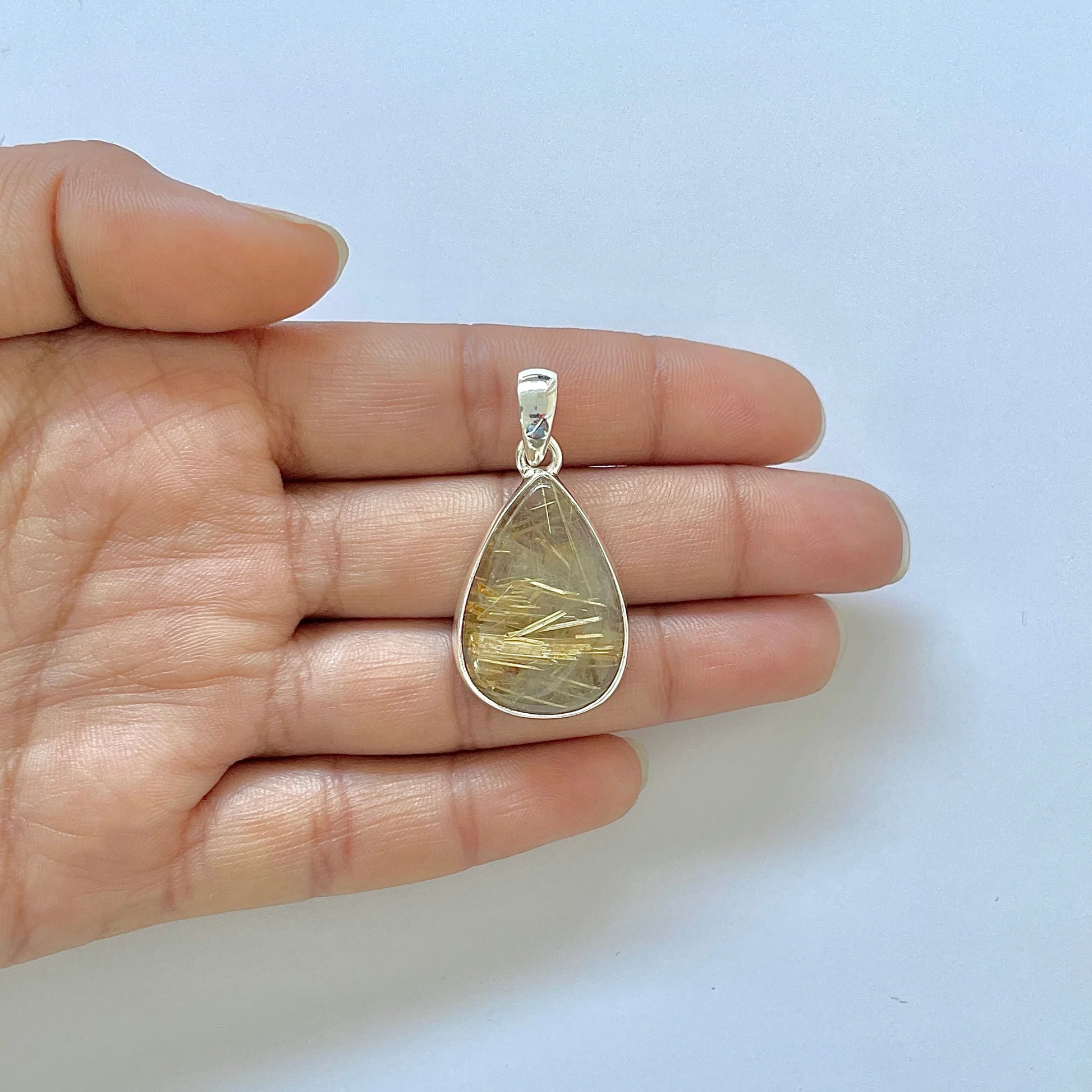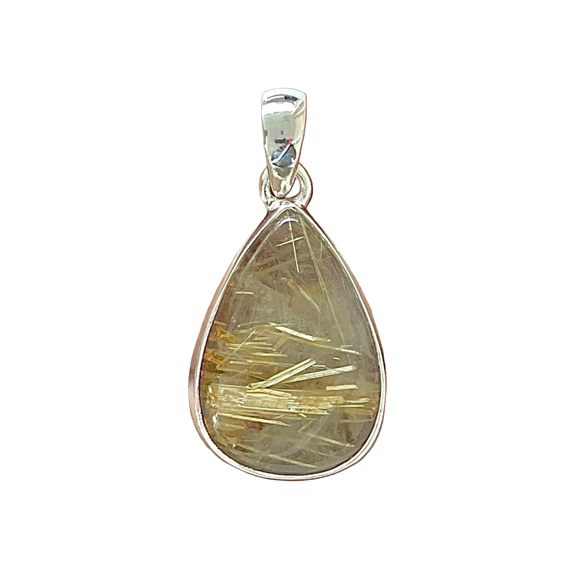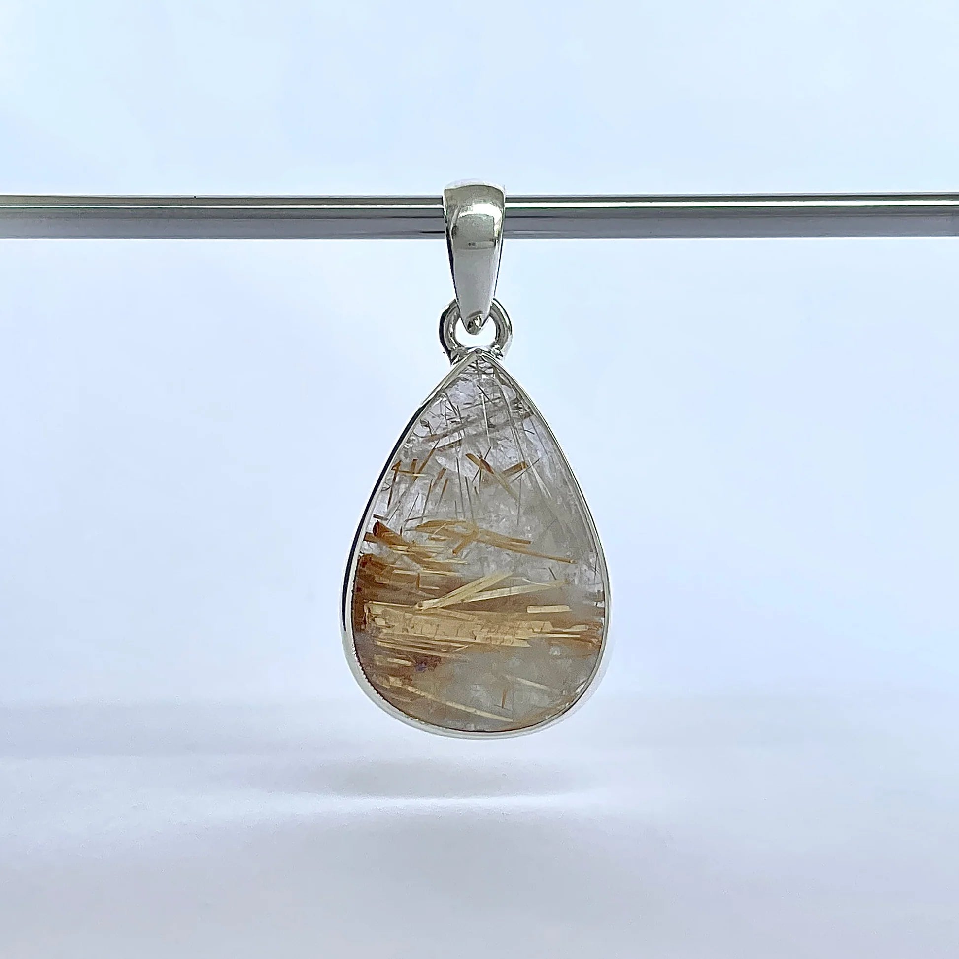 Ez az egyedi rutilkvarc medál a kristály átlátszóságában lebegő arany szálak révén ragadja meg a tekintetet, akár a napfény egy harmatcseppbe zárva. Meleg és finom reflexiói minden pillantást a fény játékává varázsolnak.