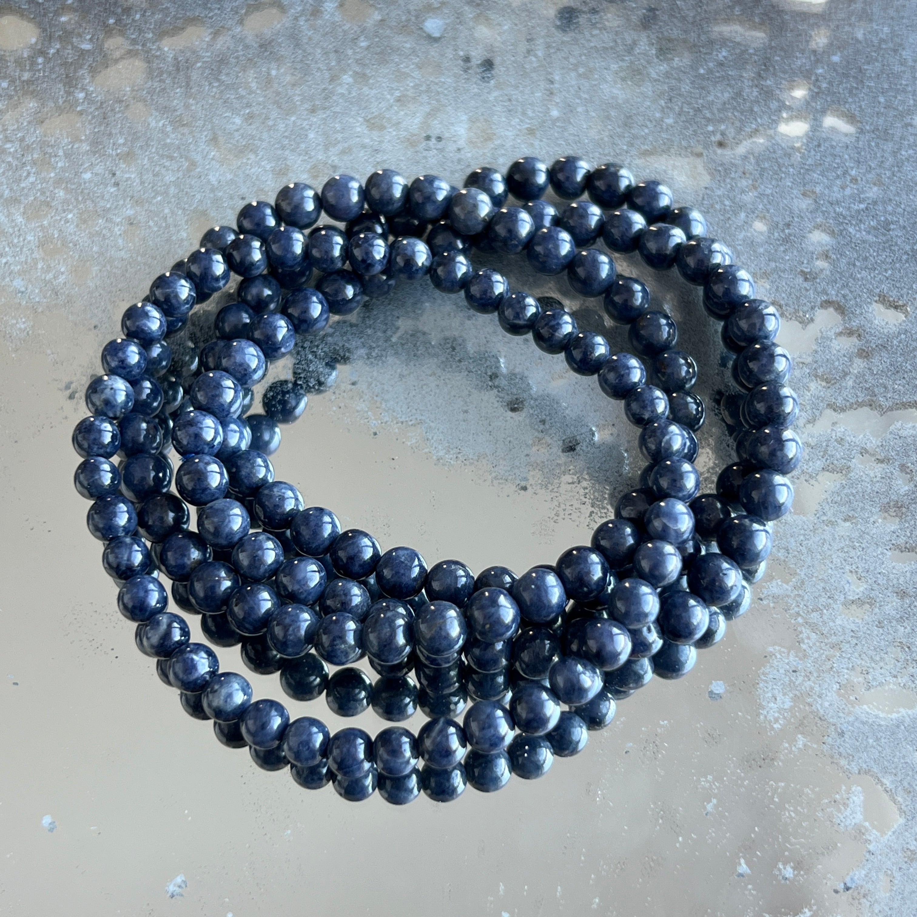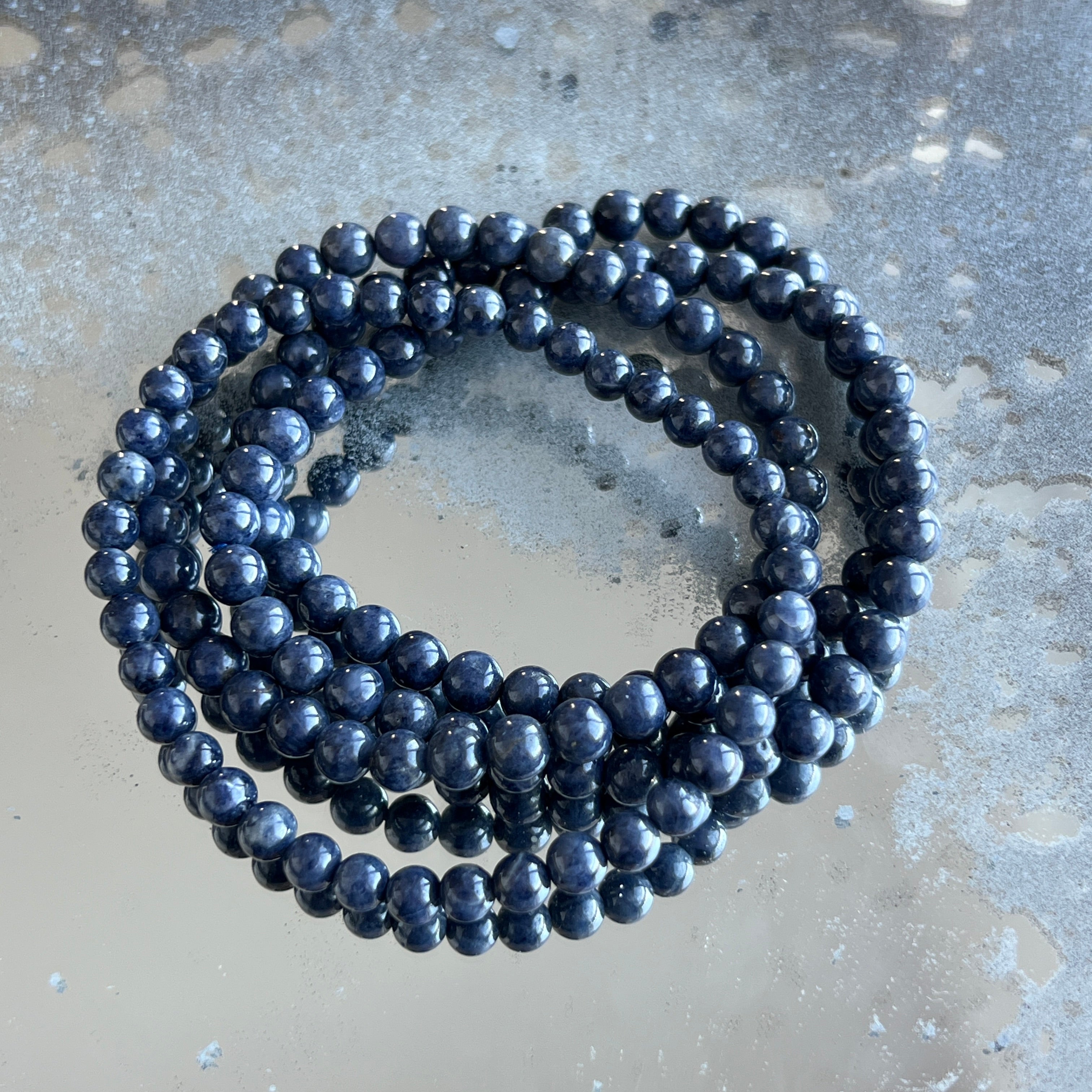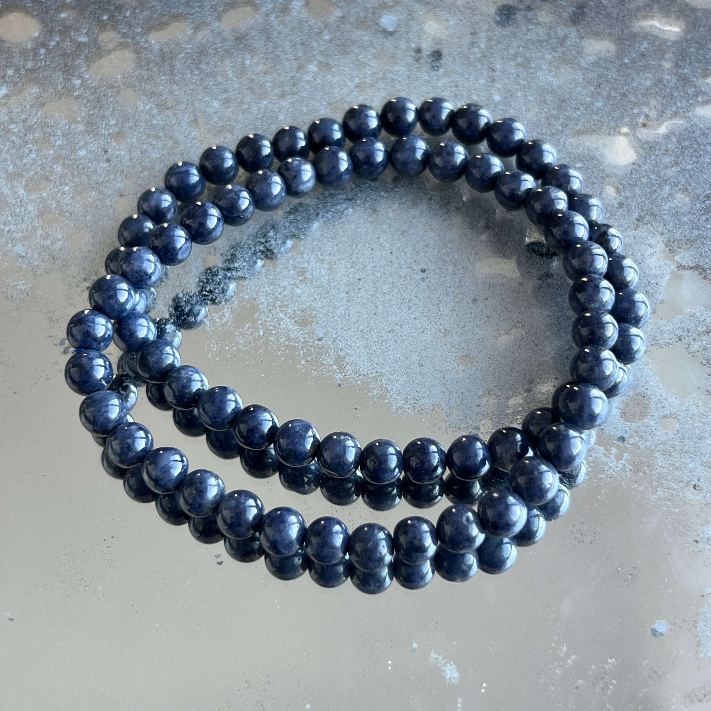 Olyan karkötő, akár egy suttogás, mégis tele mélységgel, mint az éjszakai égbolt, amelyben a csillagok tükröződnek. A csiszolt természetes zafírgyöngyök, 5 mmátmérővel, intenzív kék árnyalatokban ragyognak, néha mély indigós reflexekkel vagy világosabb tónusokkal, amelyek egyensúlyt teremtenek az összhatásban. Ez egy diszkrét és kifinomult ékszer, azokat számára létrehozva, akik lelkükben csendes eleganciát és belső erőt hordoznak.