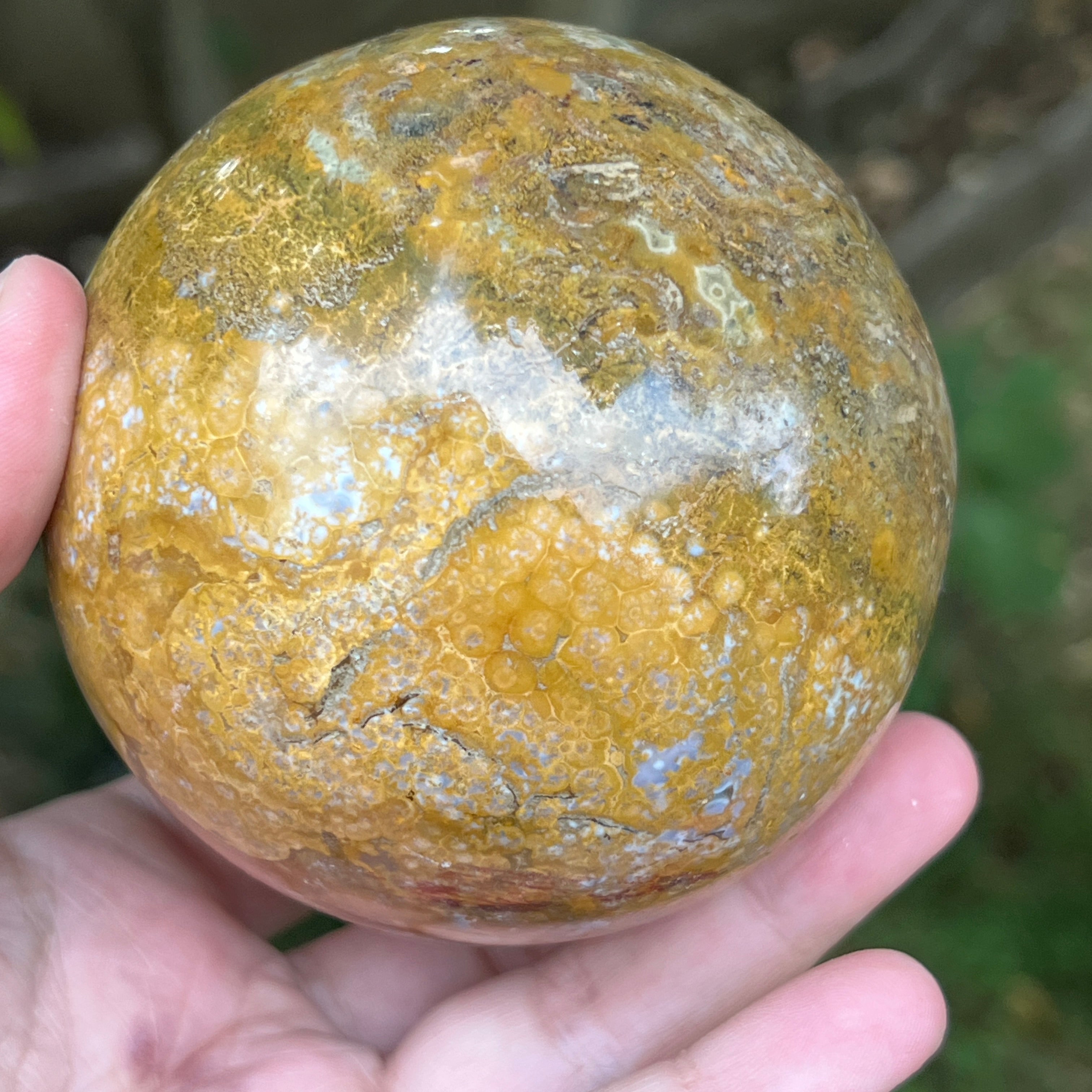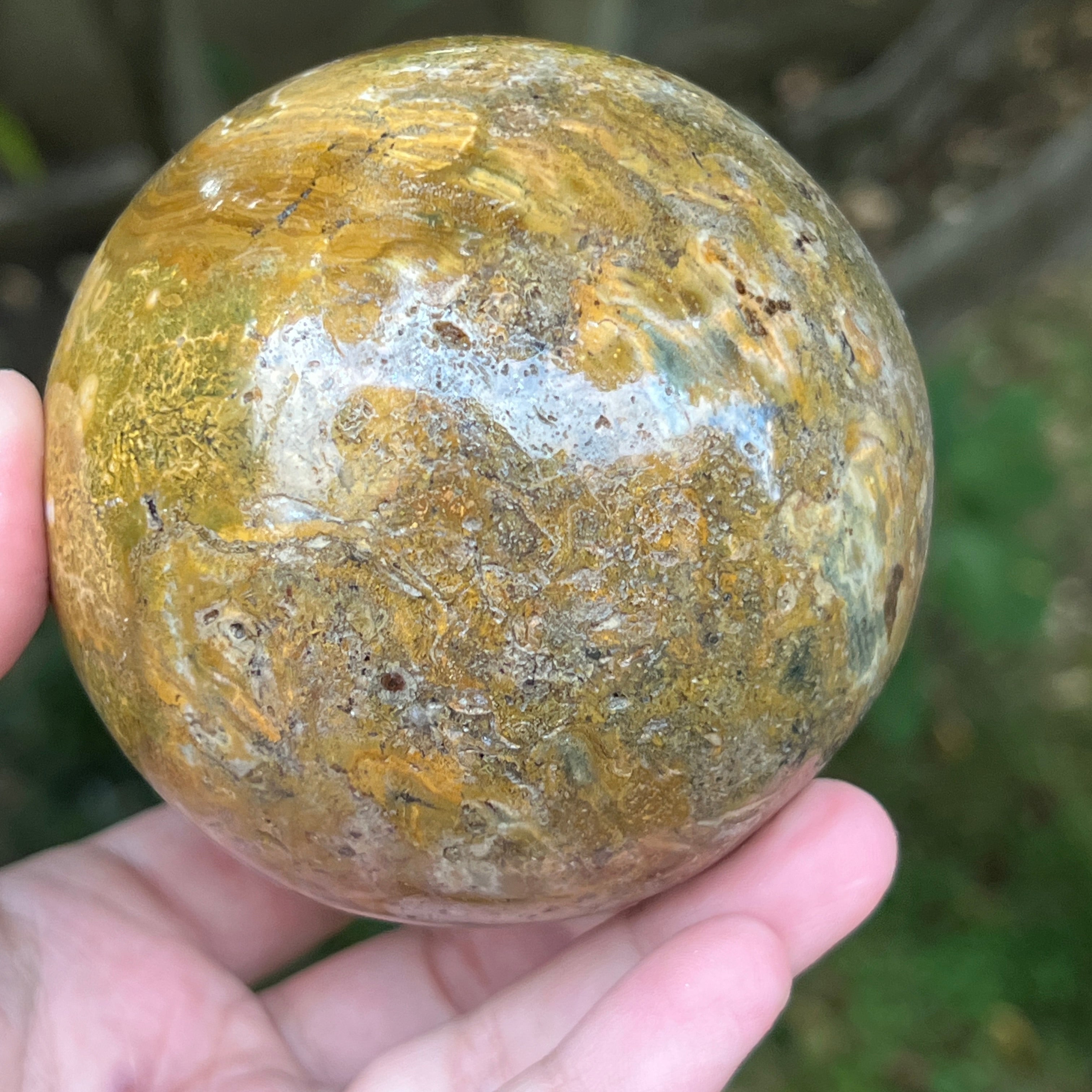Sárga jáspis gömb, 1. modell, méret: 8,6 cm