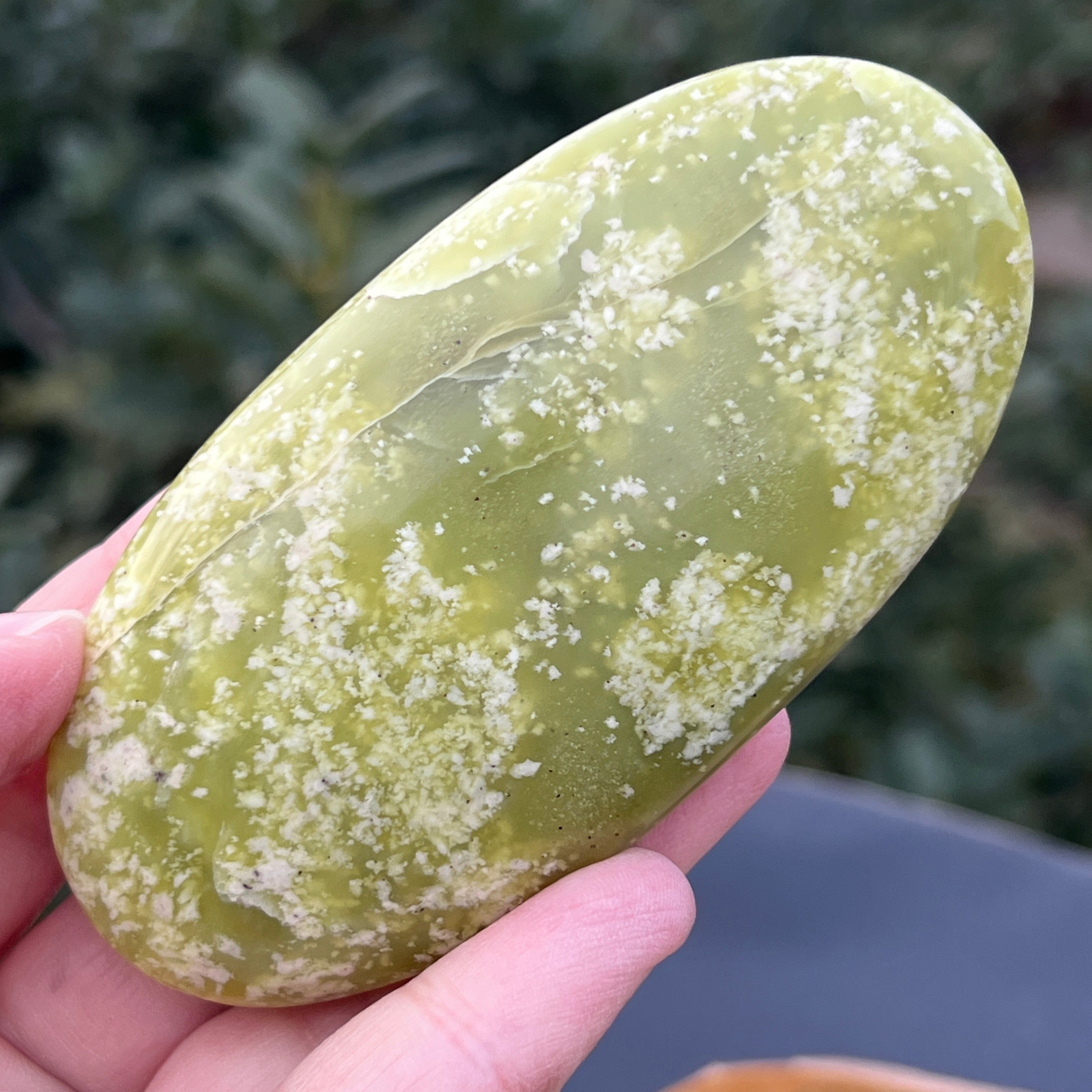 Sárga szerpentin pálmakő XL7, méret 9,7 * 4,9 * 2,1 cm
