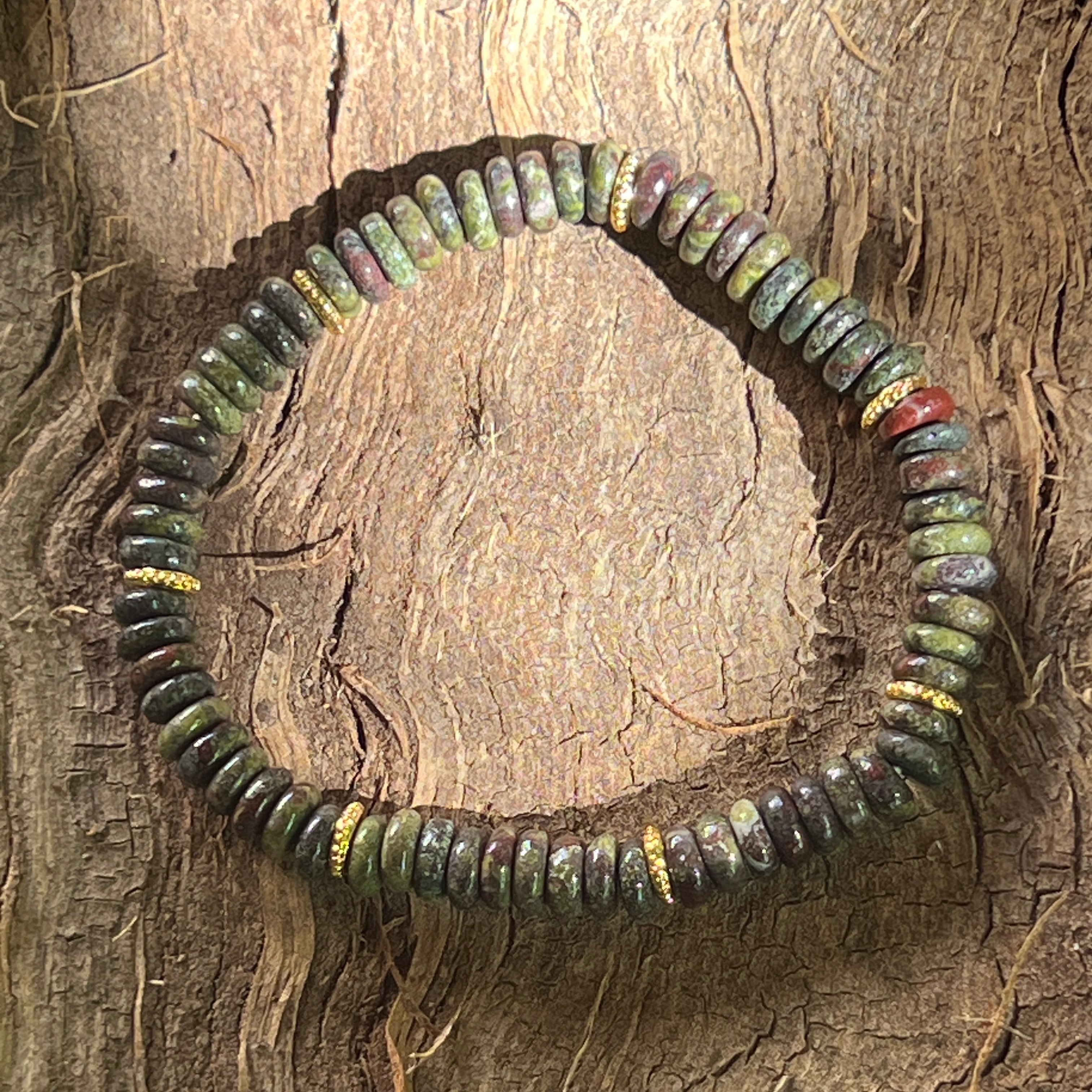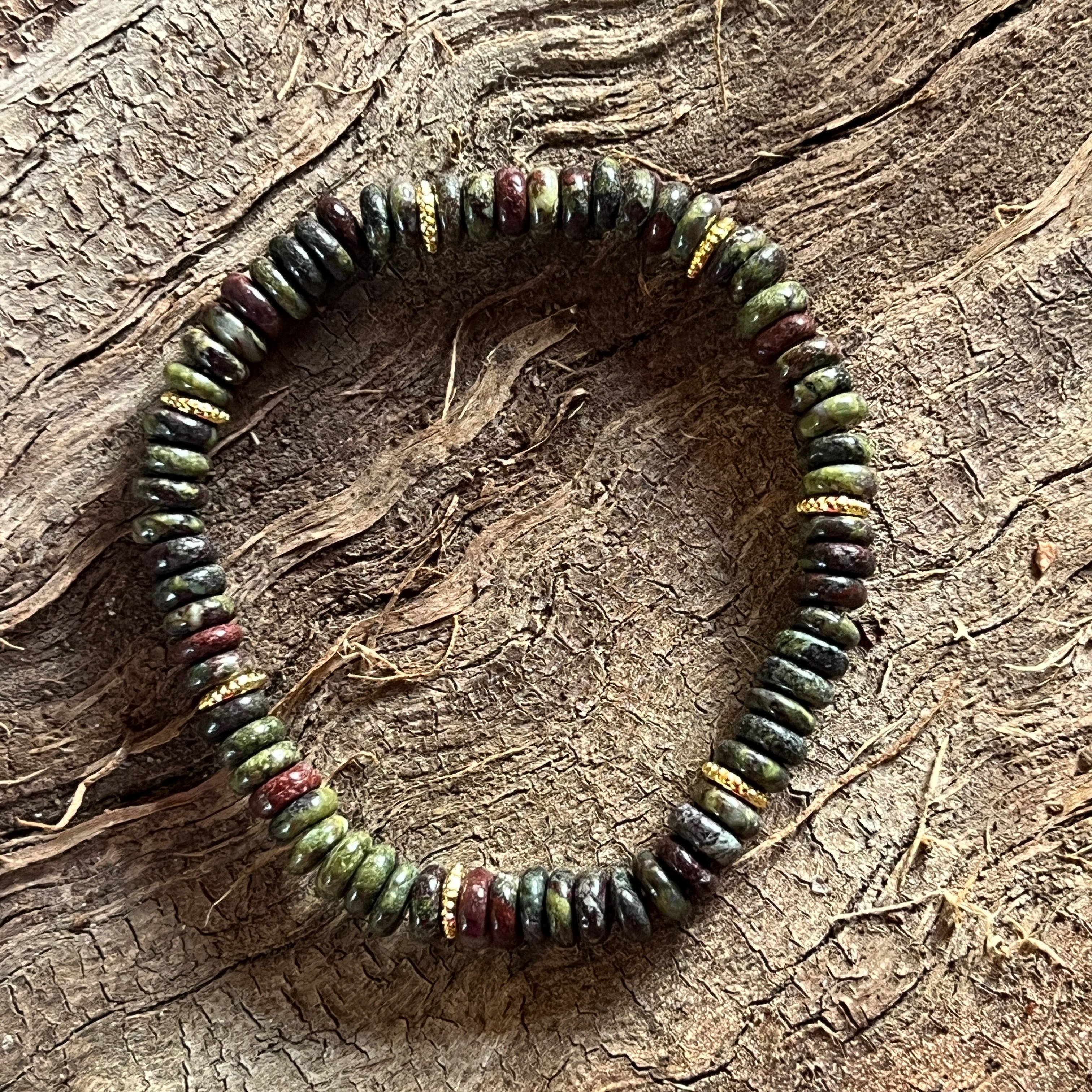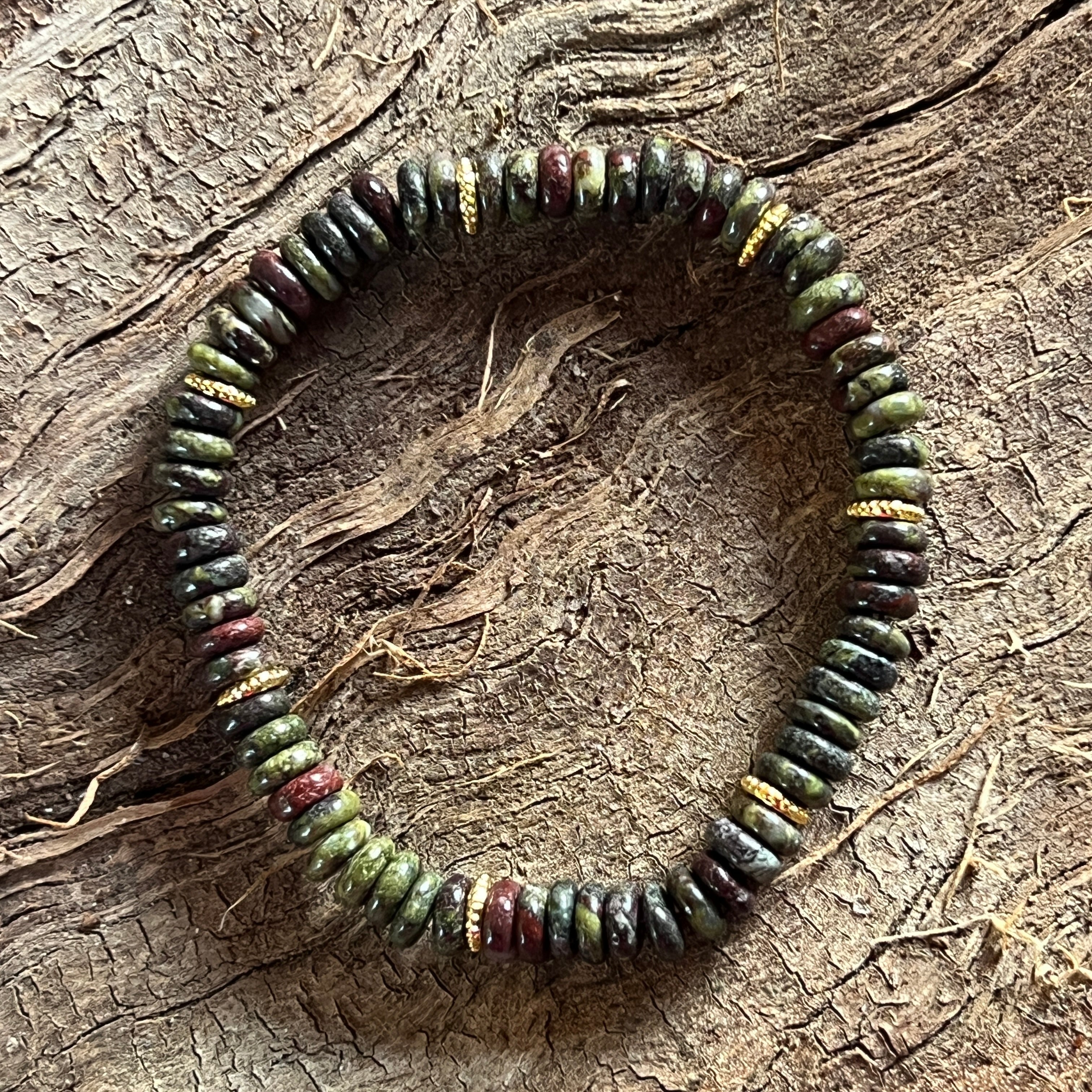 Sárkányvér korongokból készült karkötő arany berakásokkal – 6x2 mm
