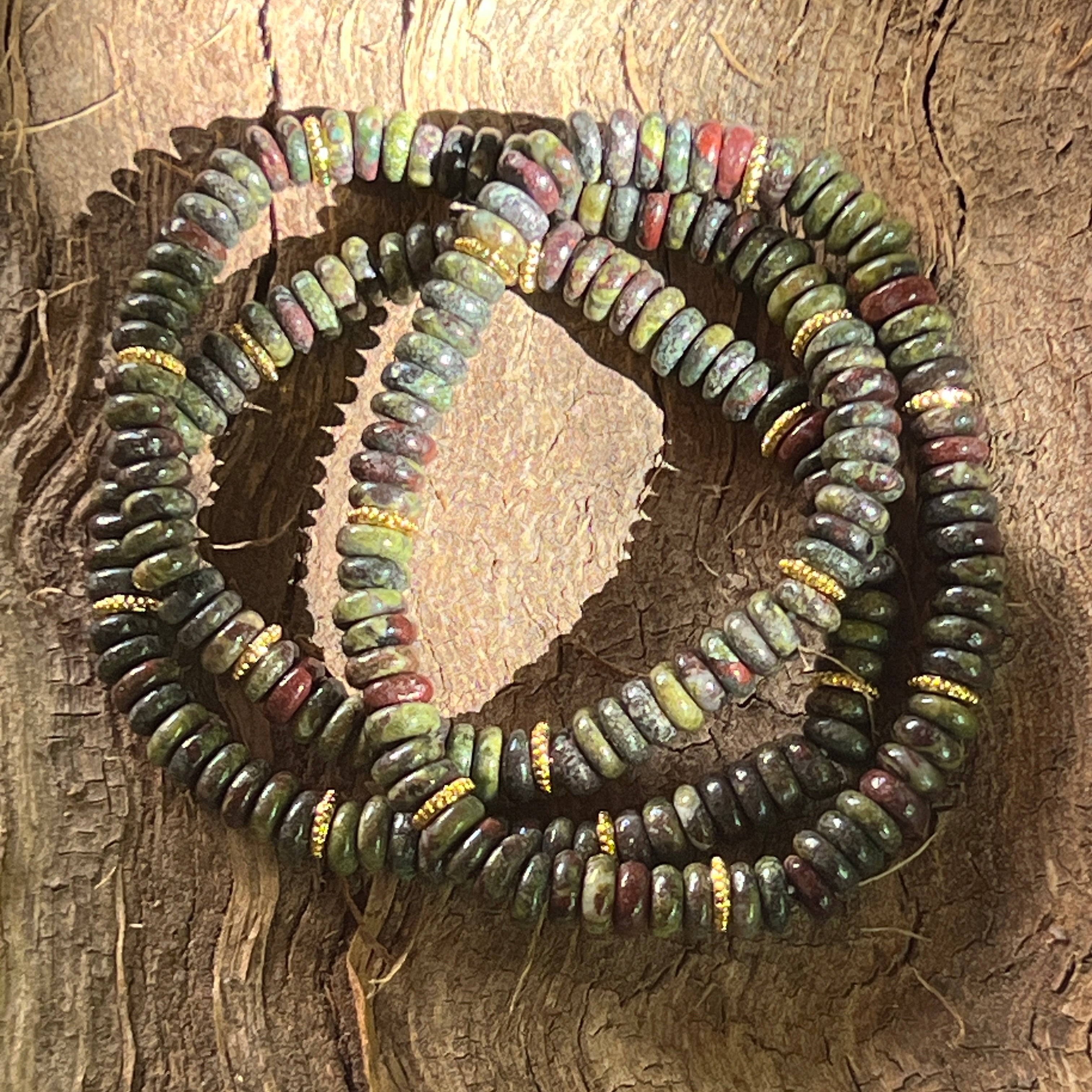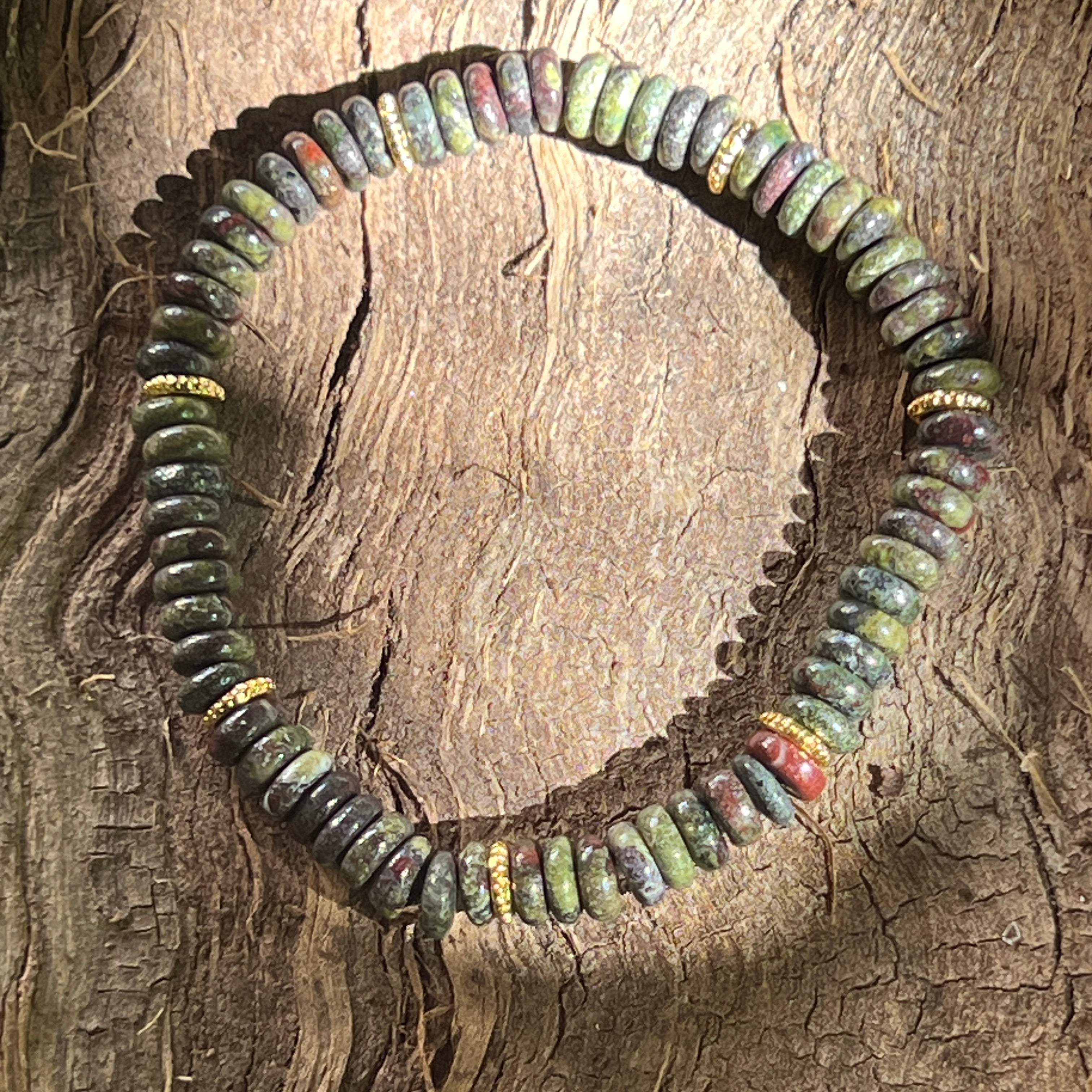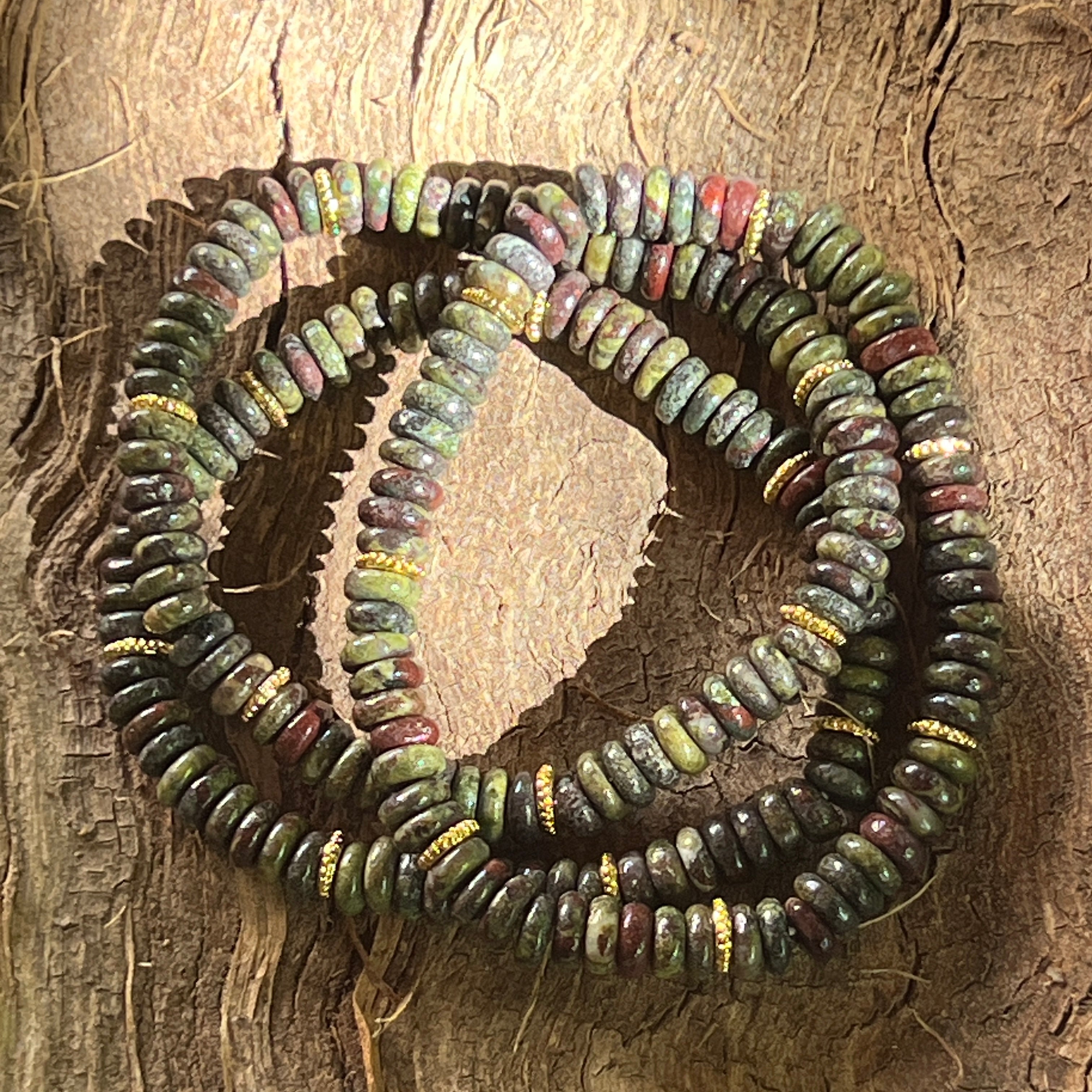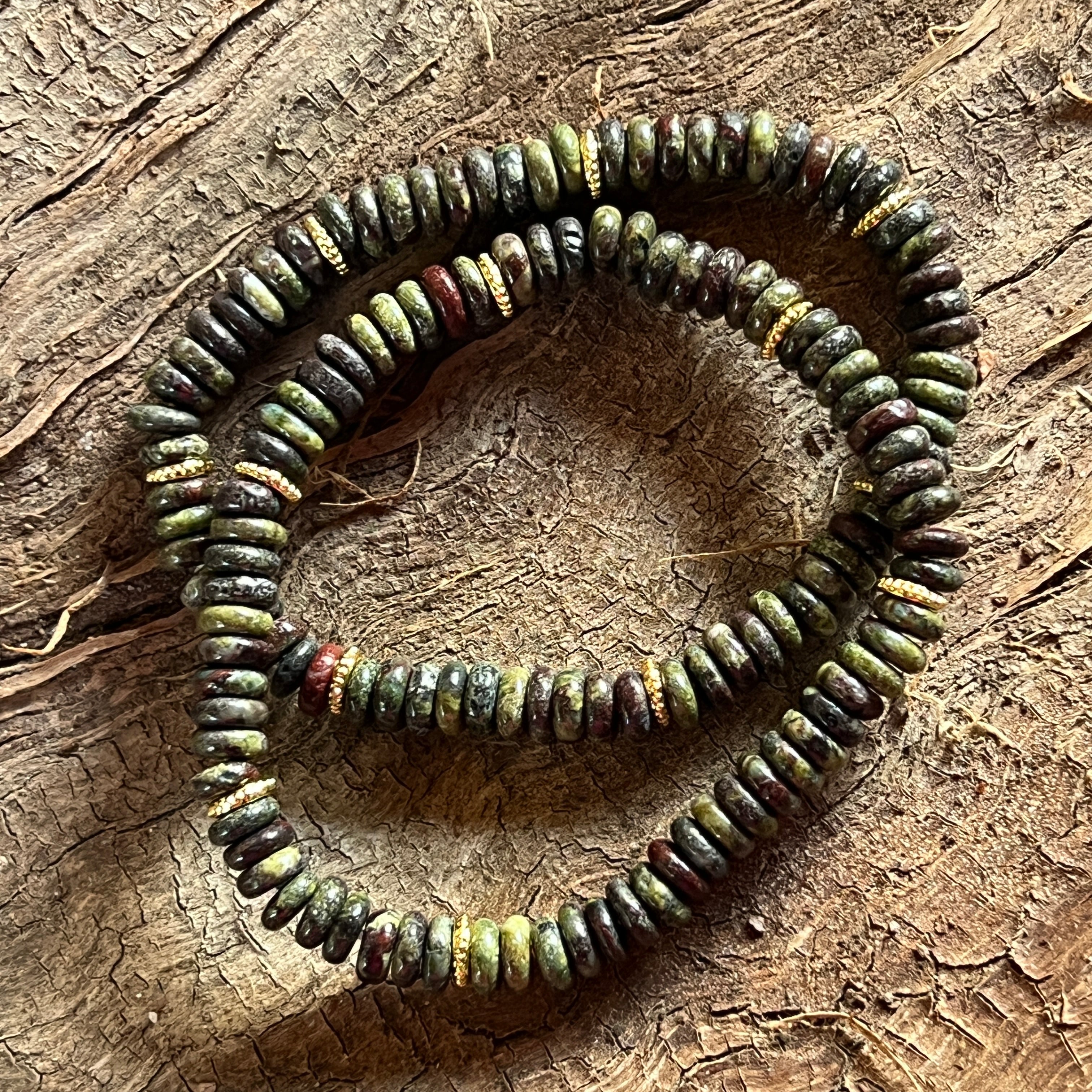 Sárkányvér korongokból készült karkötő arany berakásokkal – 6x2 mm