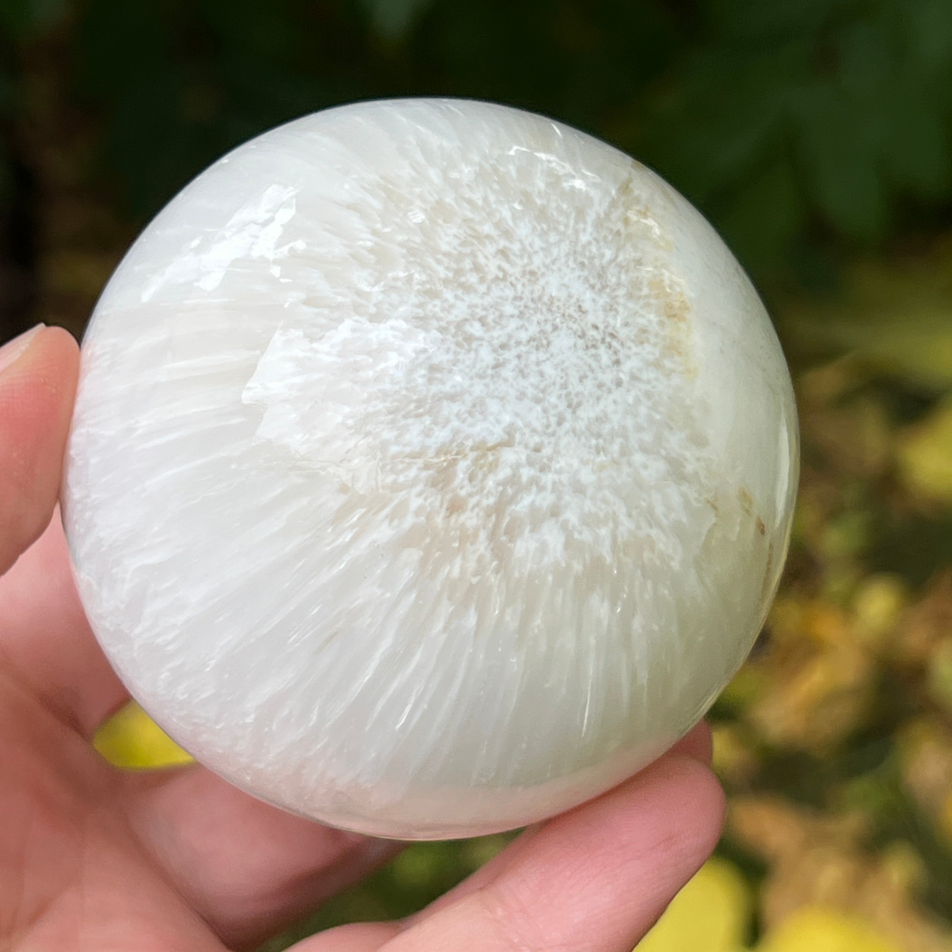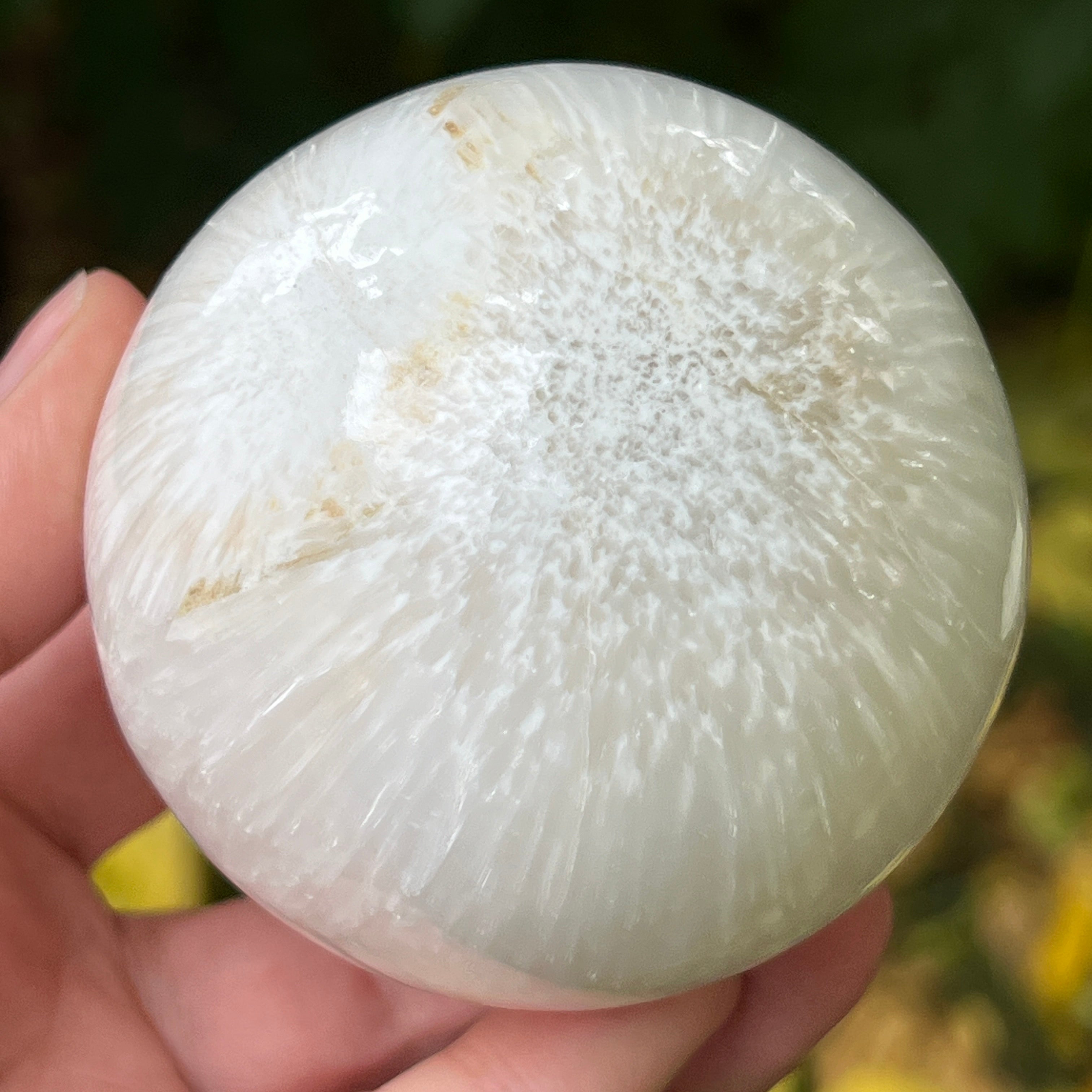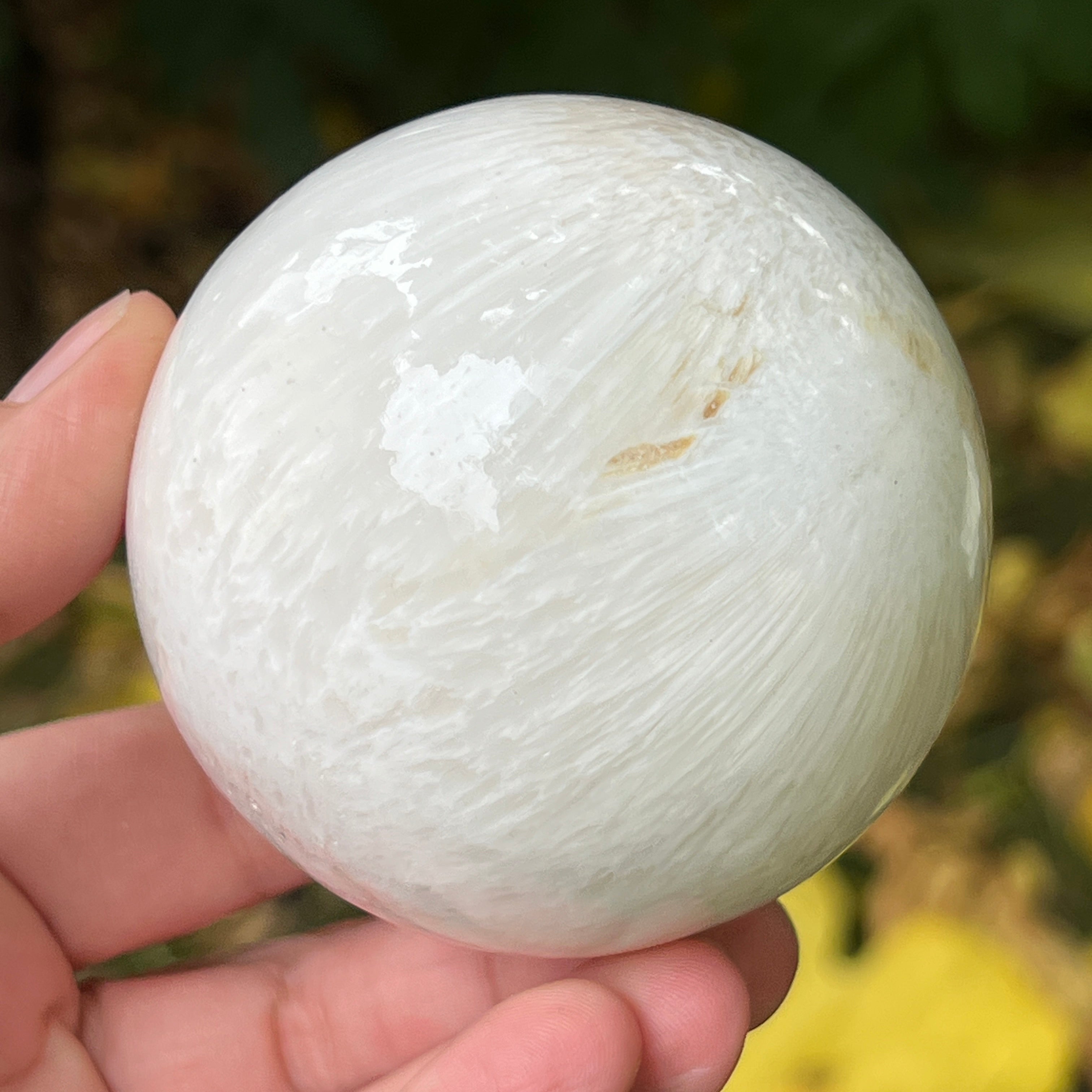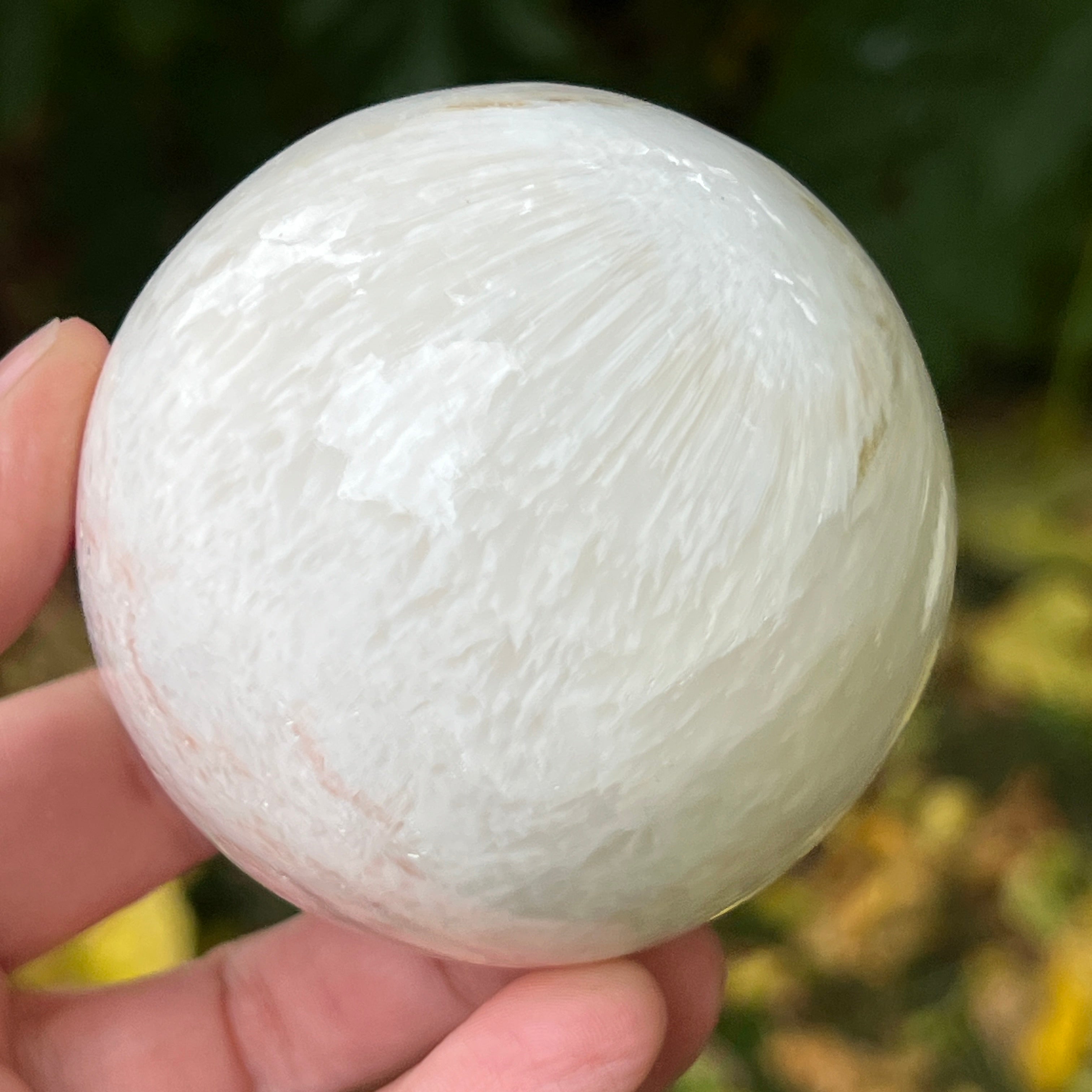 A scolecit egy finom és világos kő, a zeolitok családjába tartozik, jellegzetes finom, rostos-radiális szerkezetéről és selymes fényéről ismert. Általában fehér vagy krémszínű, néha finom rózsaszín vagy bézs árnyalatokkal, ez a kő majdnem éteri tisztaságot sugároz, emlékeztetve a belső nyugalomra és a csendre, amelyből a béke születik.