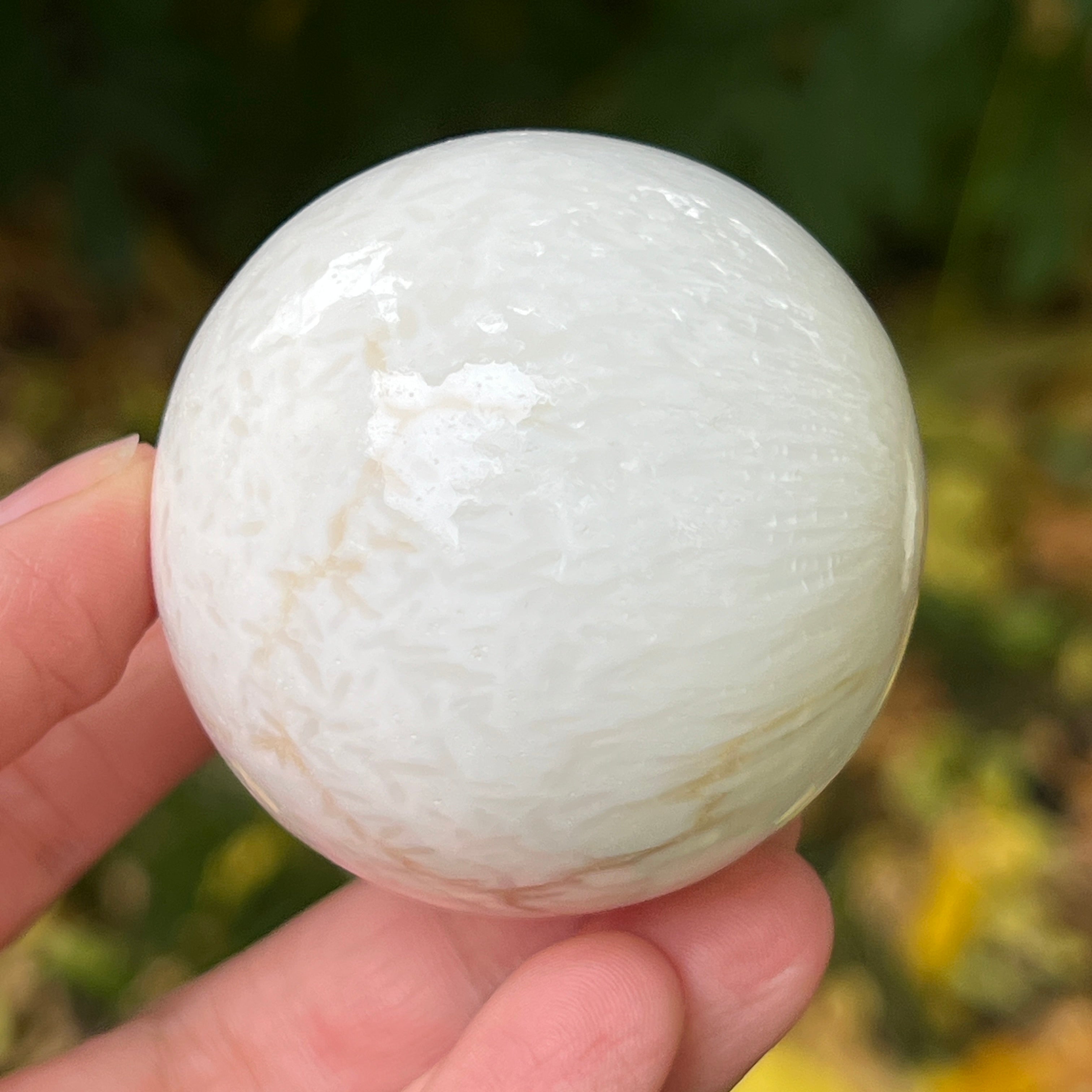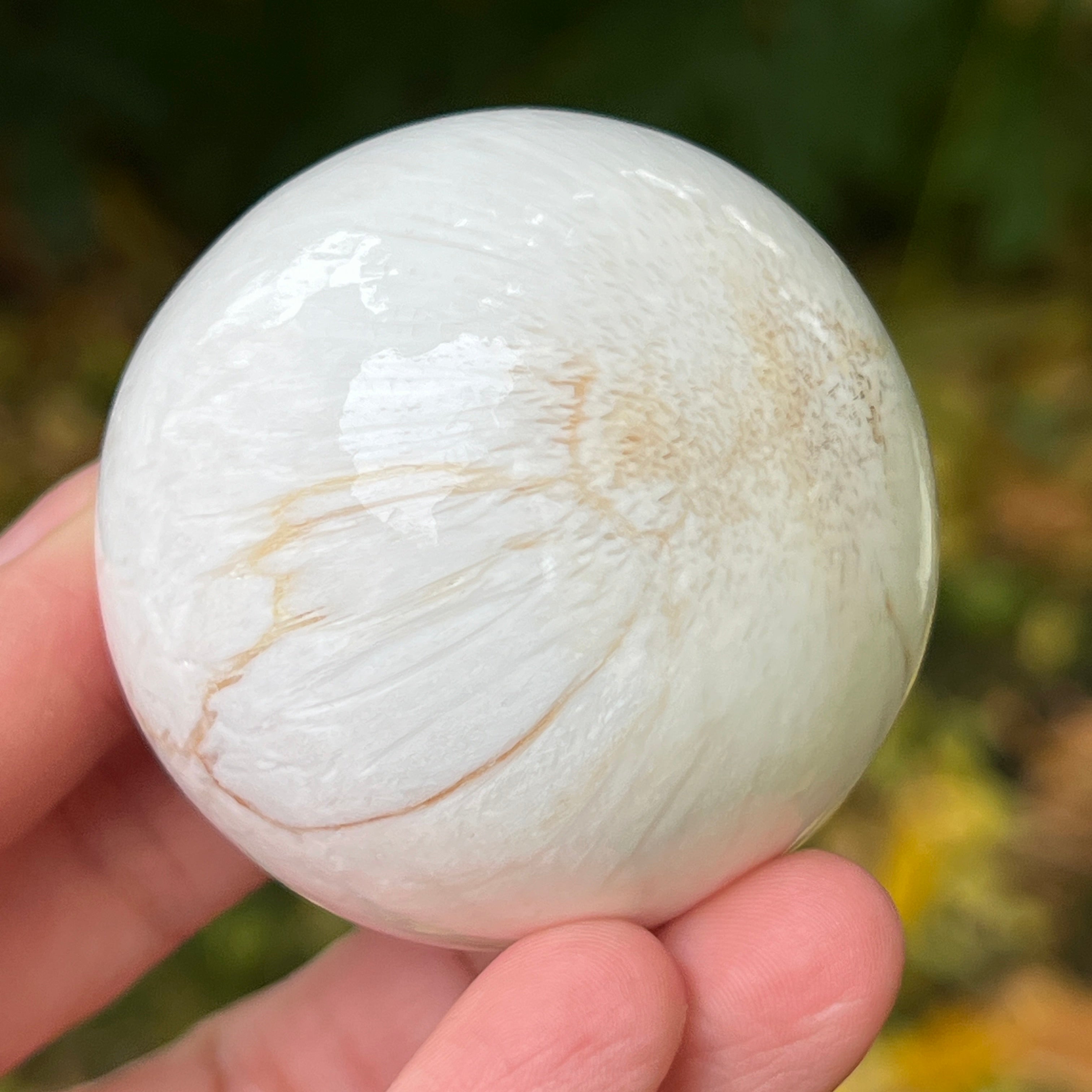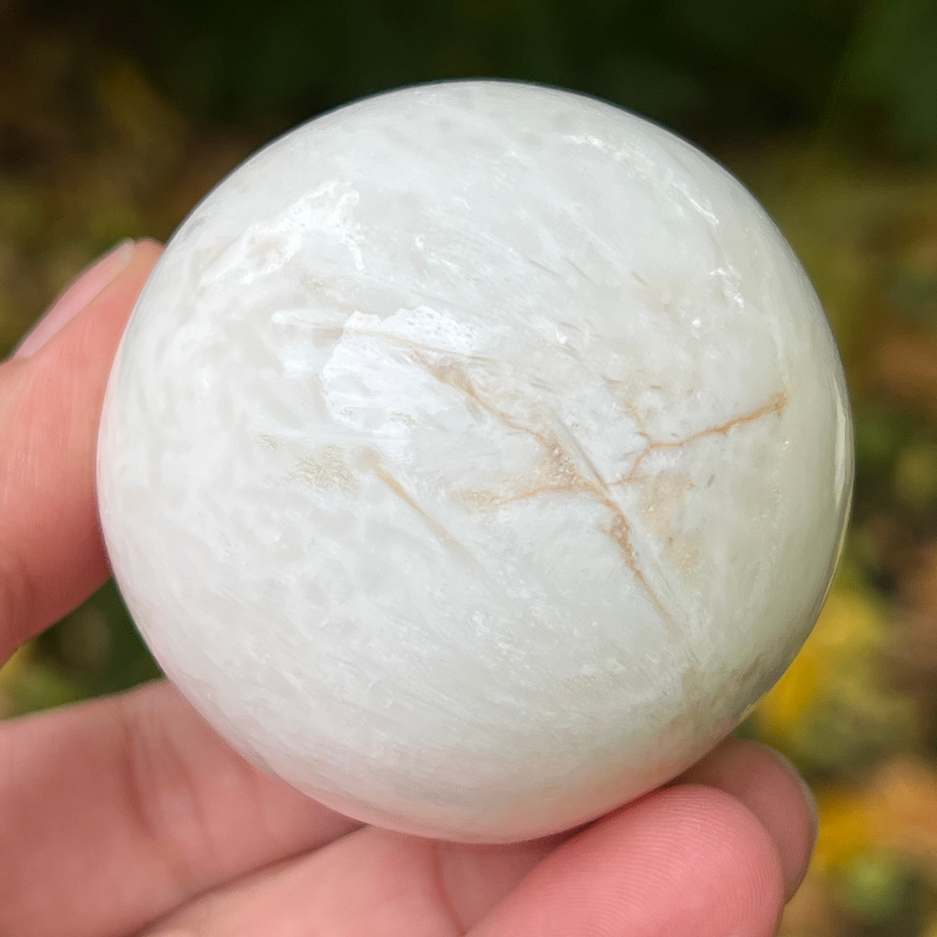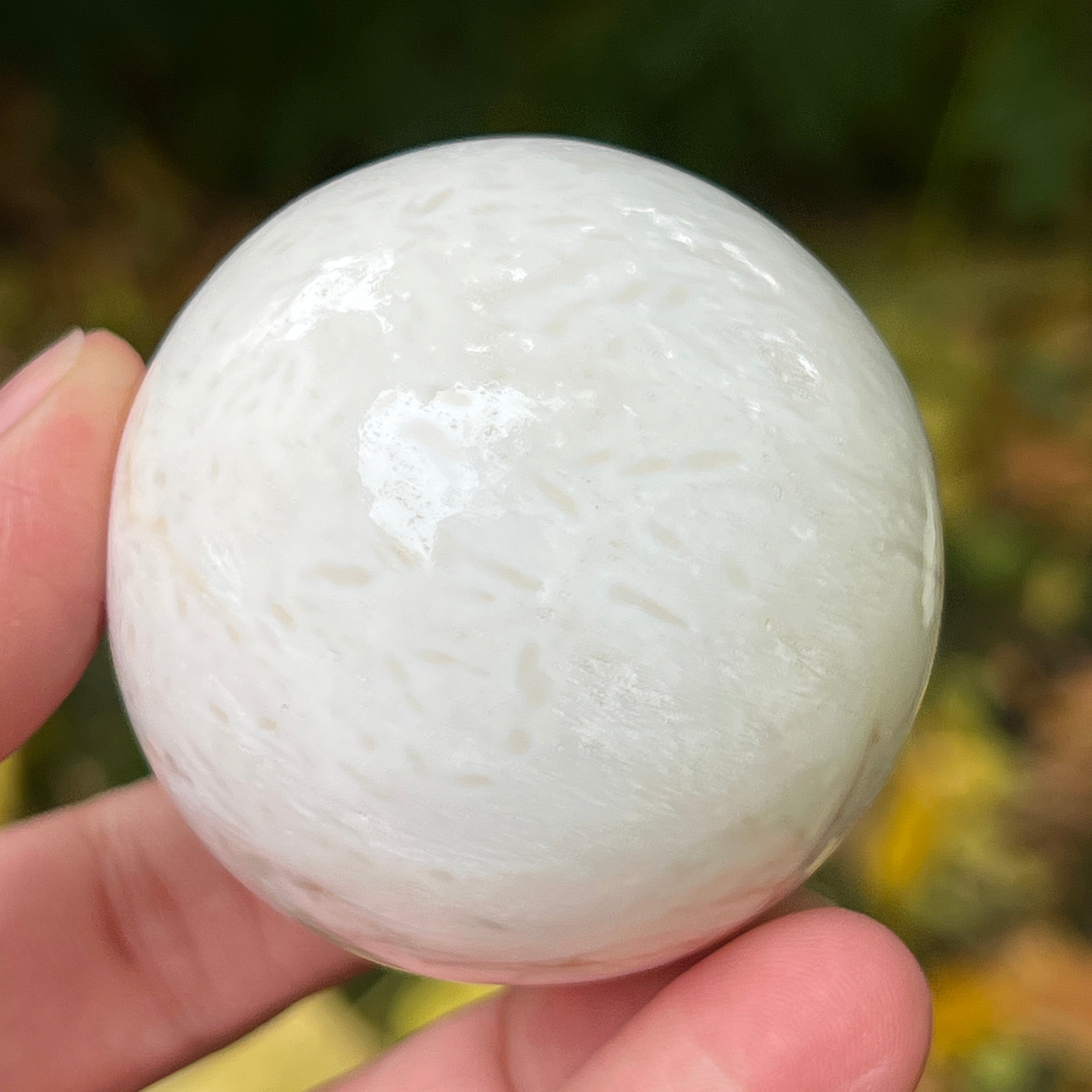 A scolecit egy finom és fényes kő, amely a zeolitok családjába tartozik, híres finom, rostos-radialis szerkezetéről és selymes csillogásáról. Általában fehér vagy krémszínű, néha finom rózsaszín vagy bézs árnyalatokkal, ez a kő majdnem éteri tisztaságot sugároz, emlékeztetve a belső nyugalomra és a csendre, amelyből a béke születik.