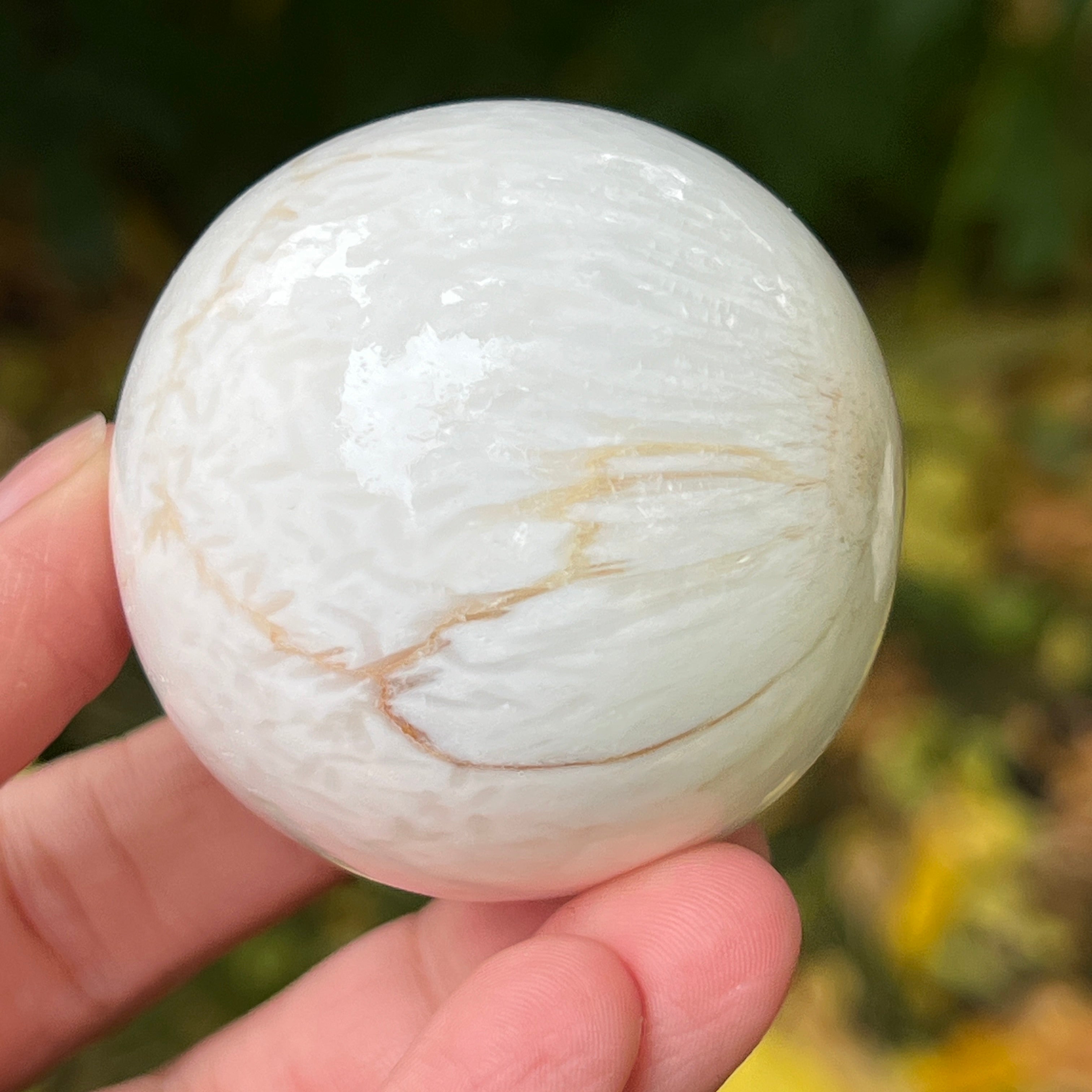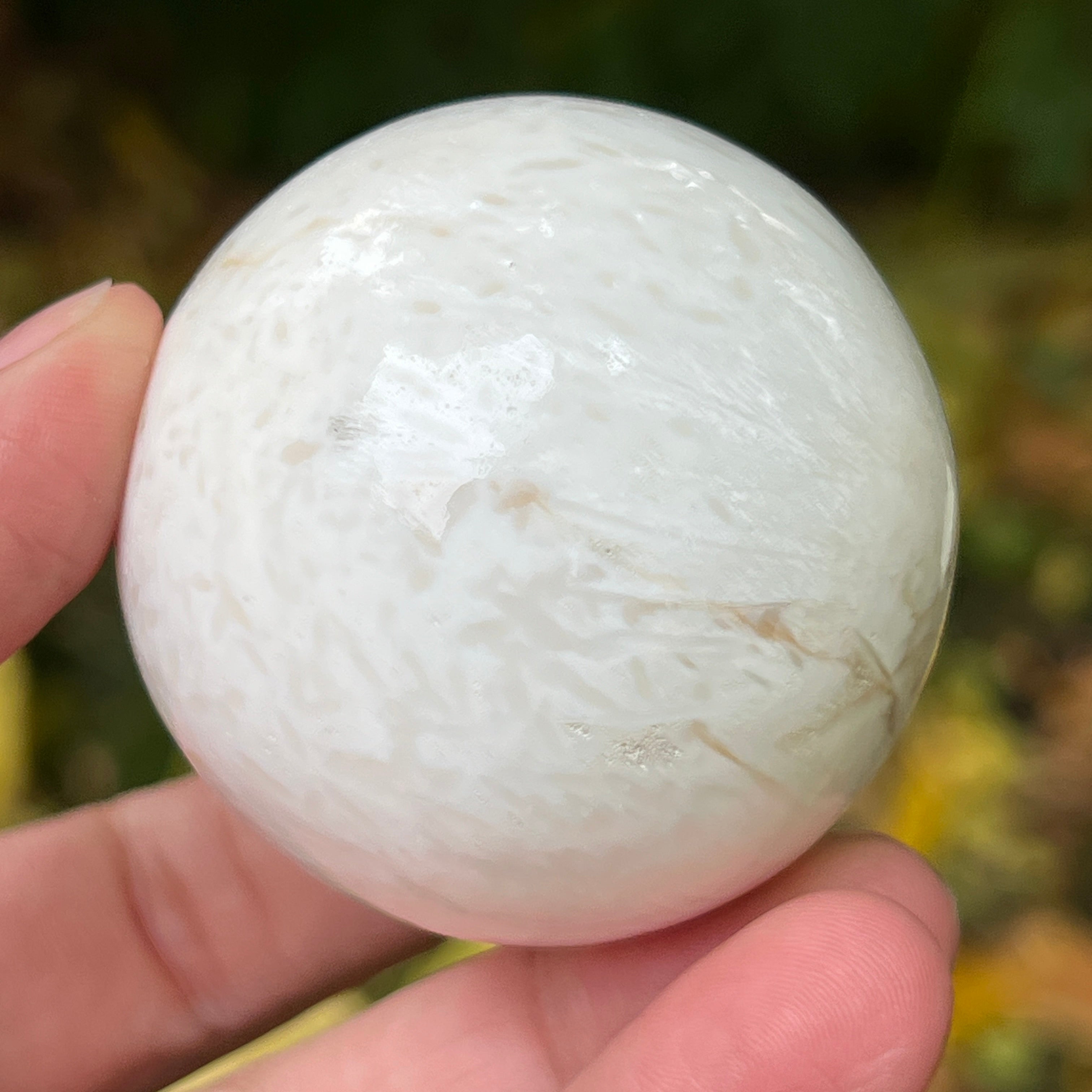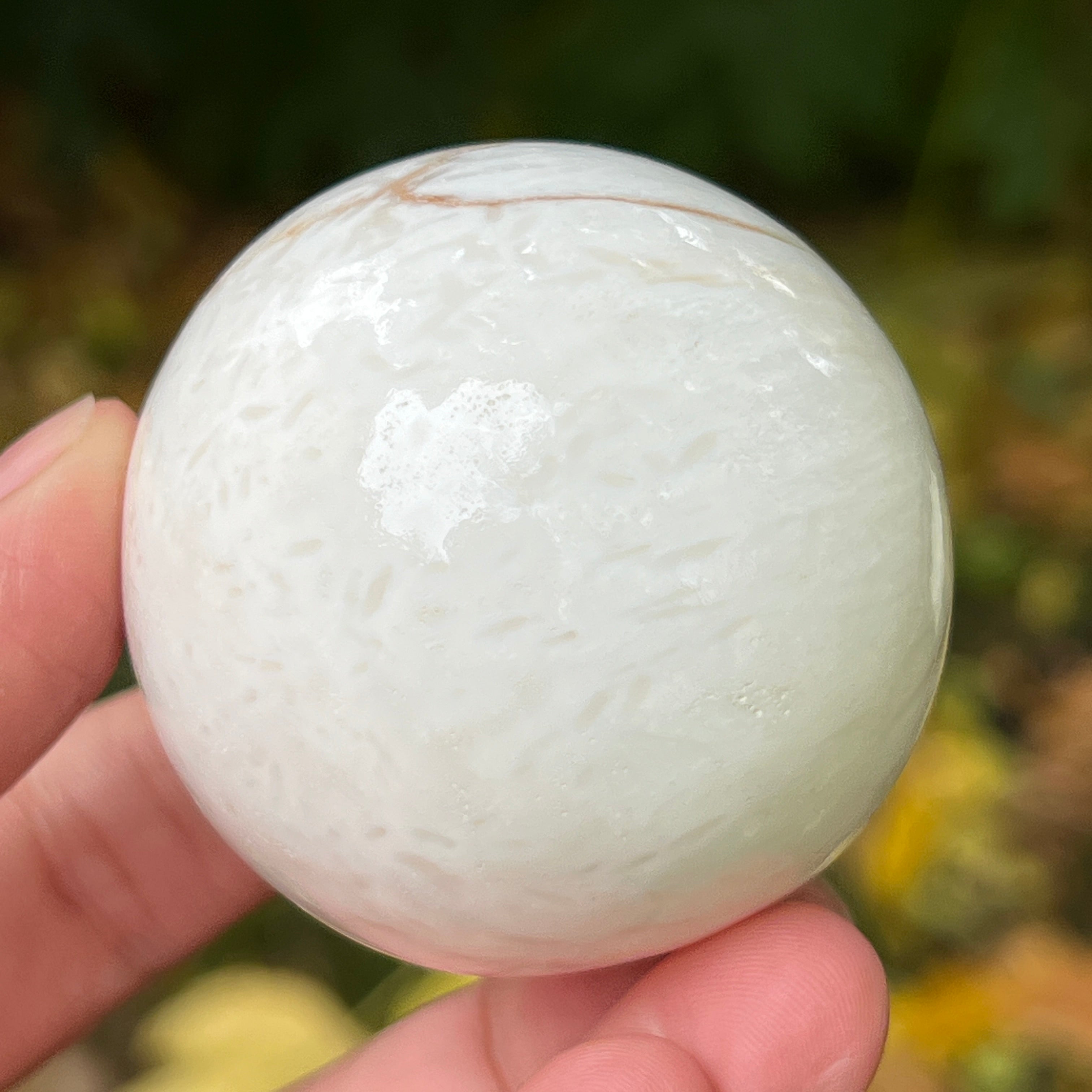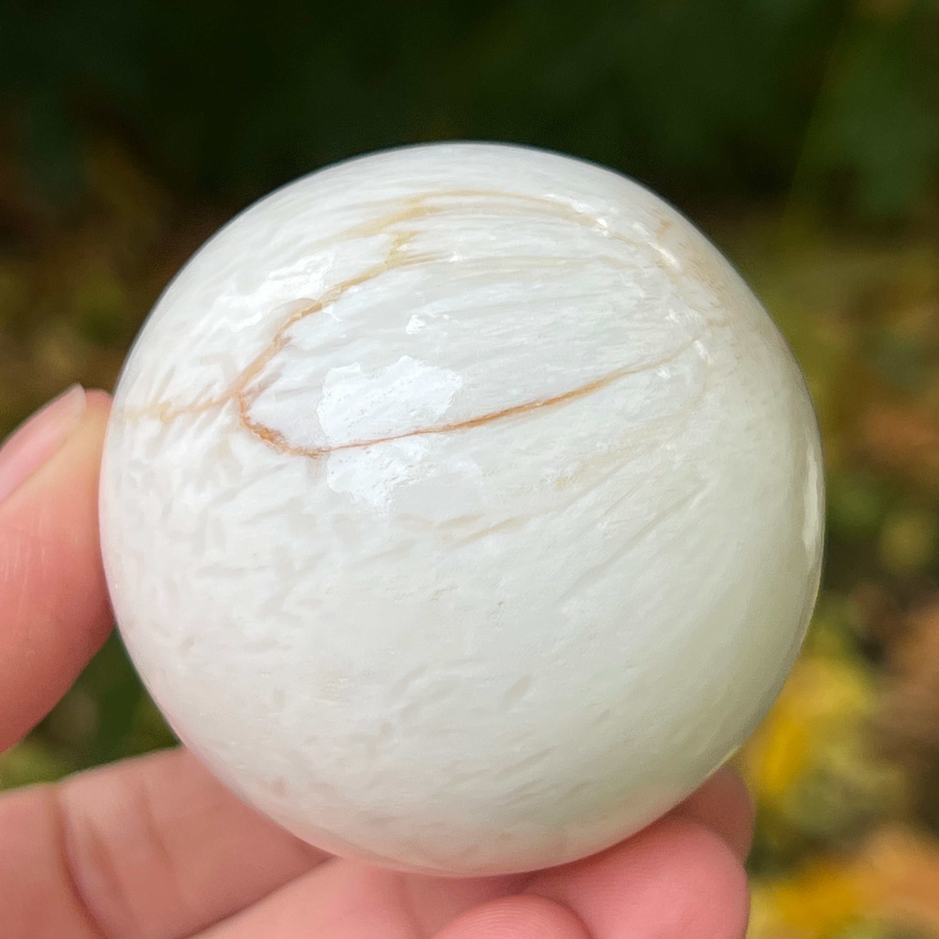 A scolecit egy finom és fényes kő, amely a zeolitok családjába tartozik, híres finom, rostos-radialis szerkezetéről és selymes csillogásáról. Általában fehér vagy krémszínű, néha finom rózsaszín vagy bézs árnyalatokkal, ez a kő majdnem éteri tisztaságot sugároz, emlékeztetve a belső nyugalomra és a csendre, amelyből a béke születik.