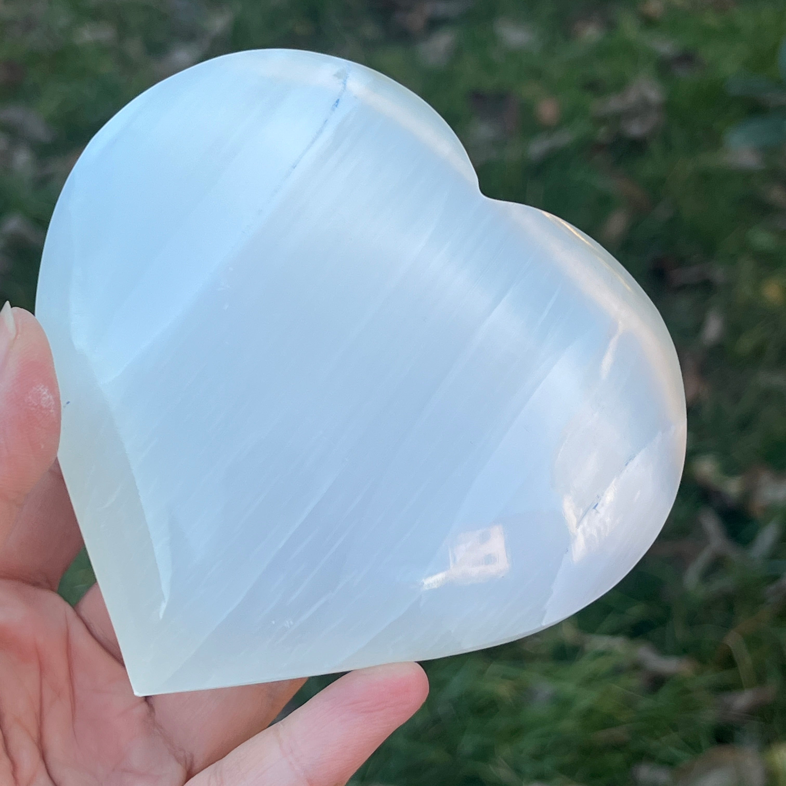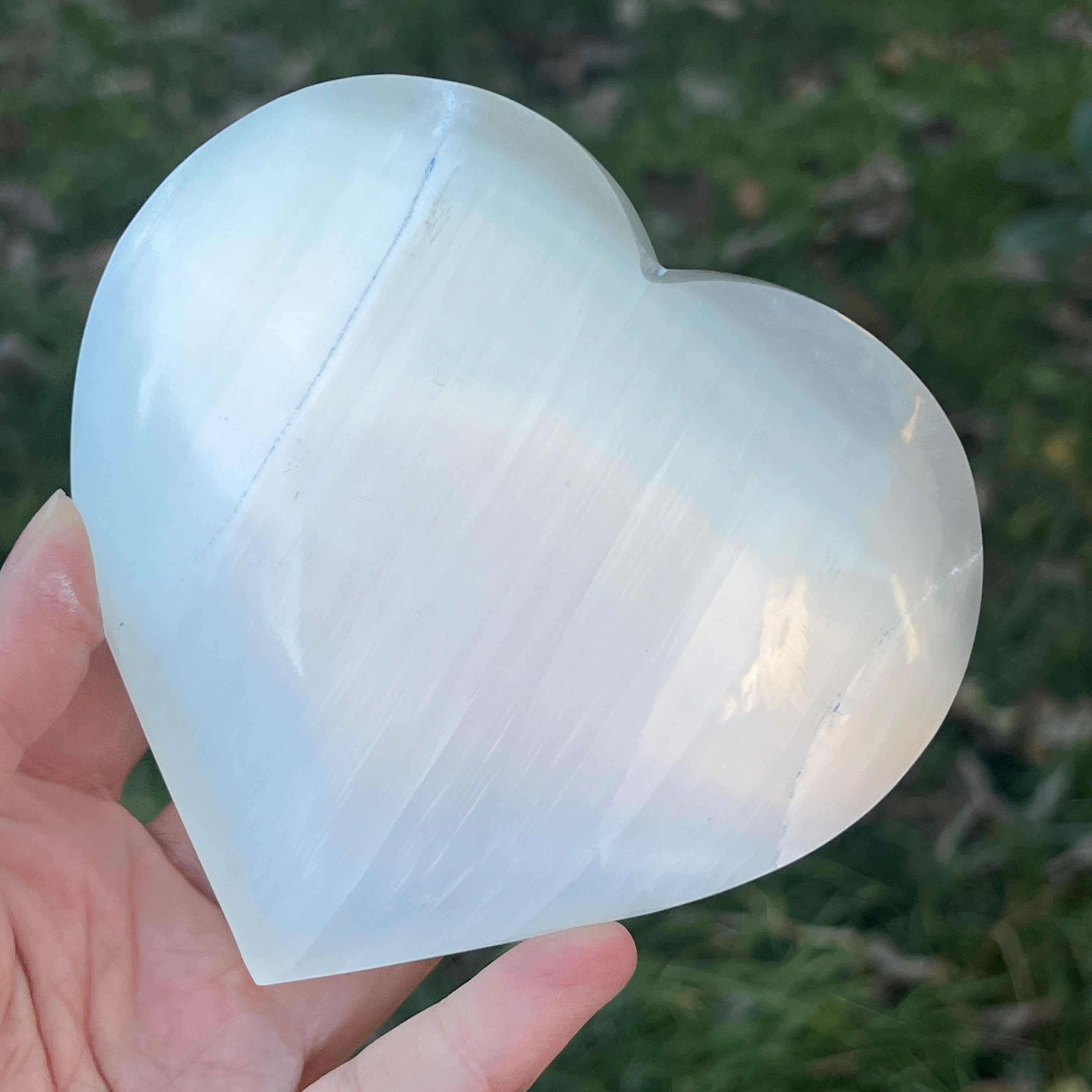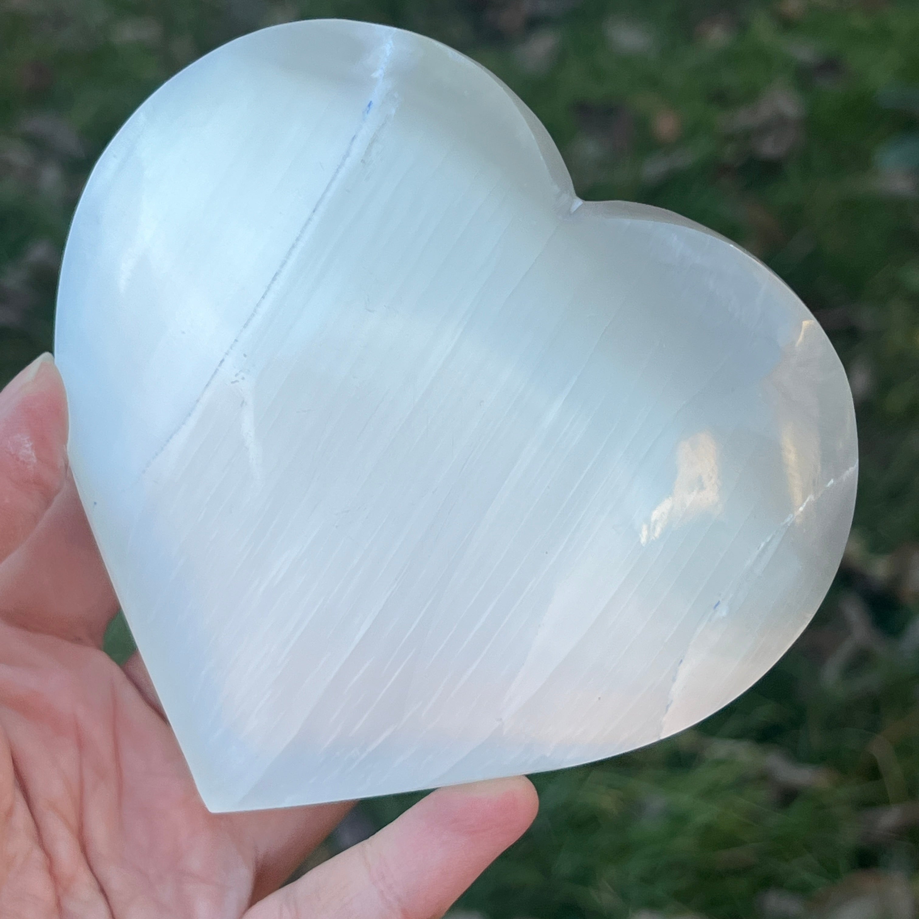 Selenite Heart XL, méret: 10/13 cm*10/12cm*3,5/2,5cm