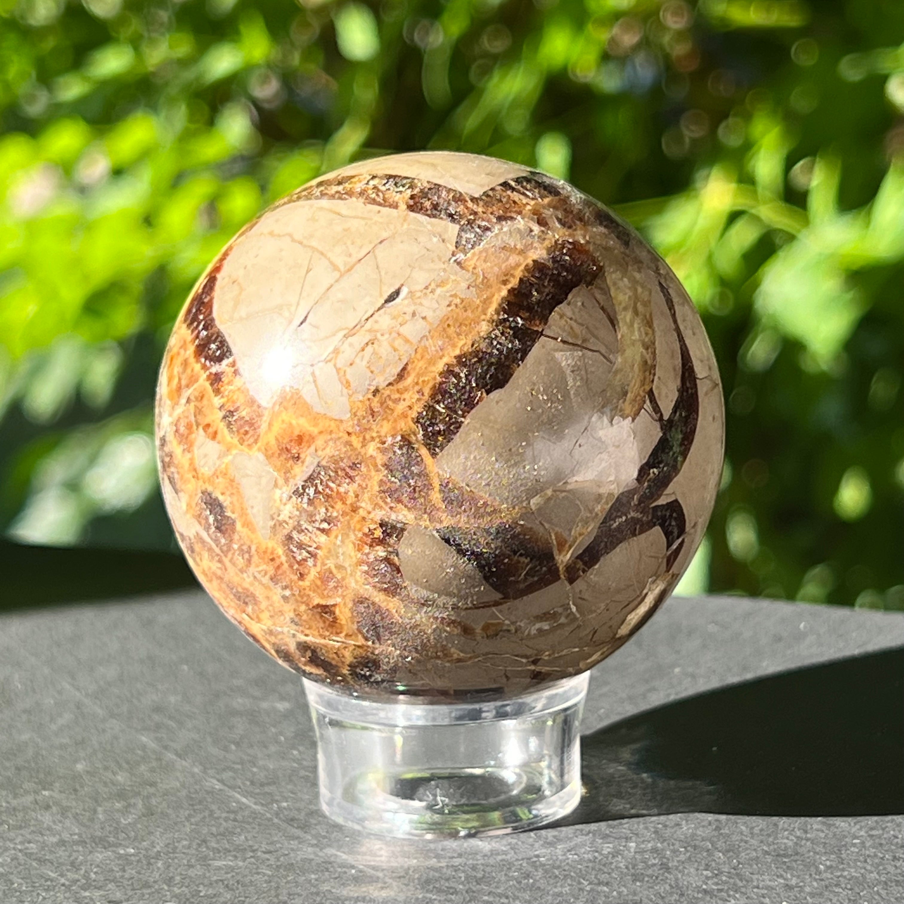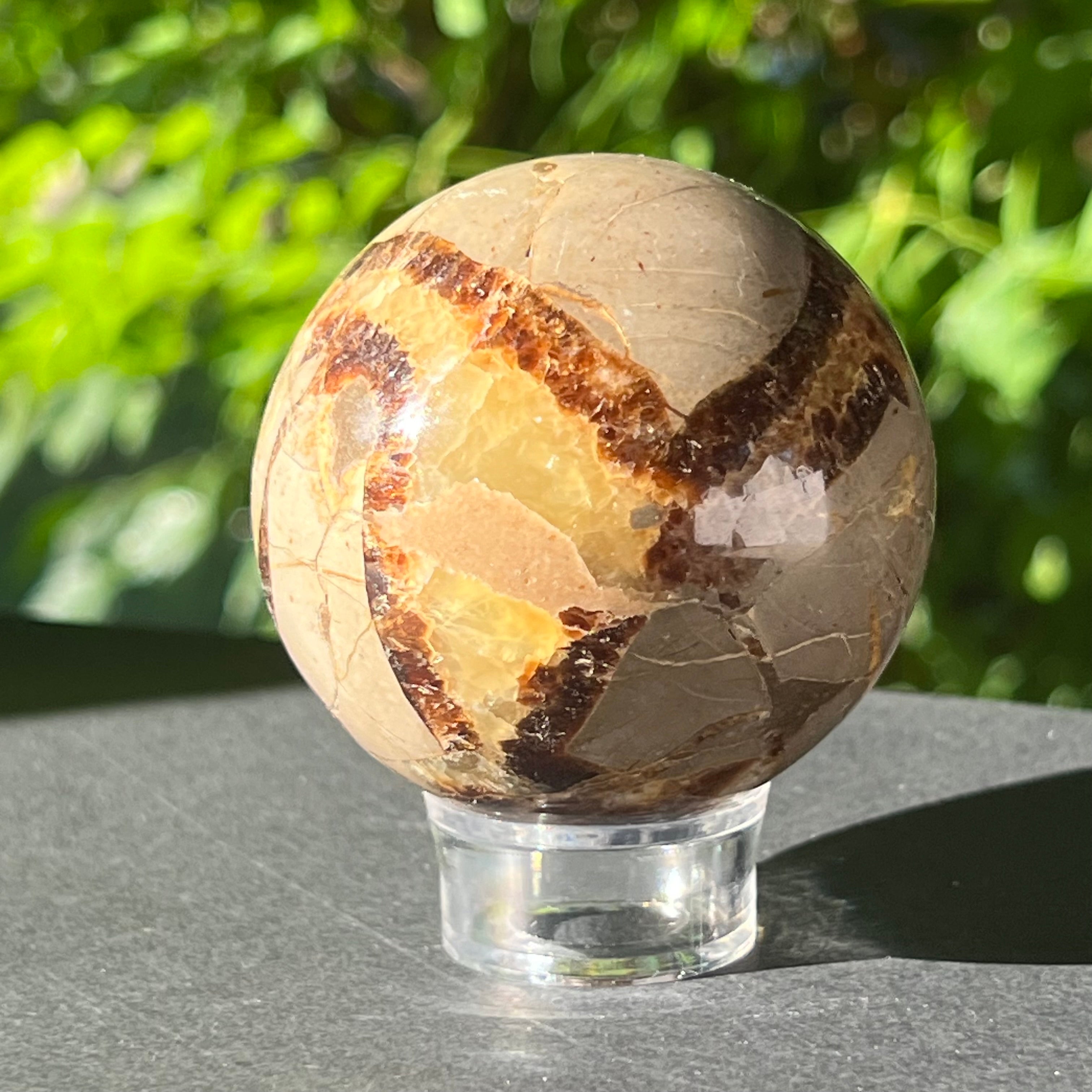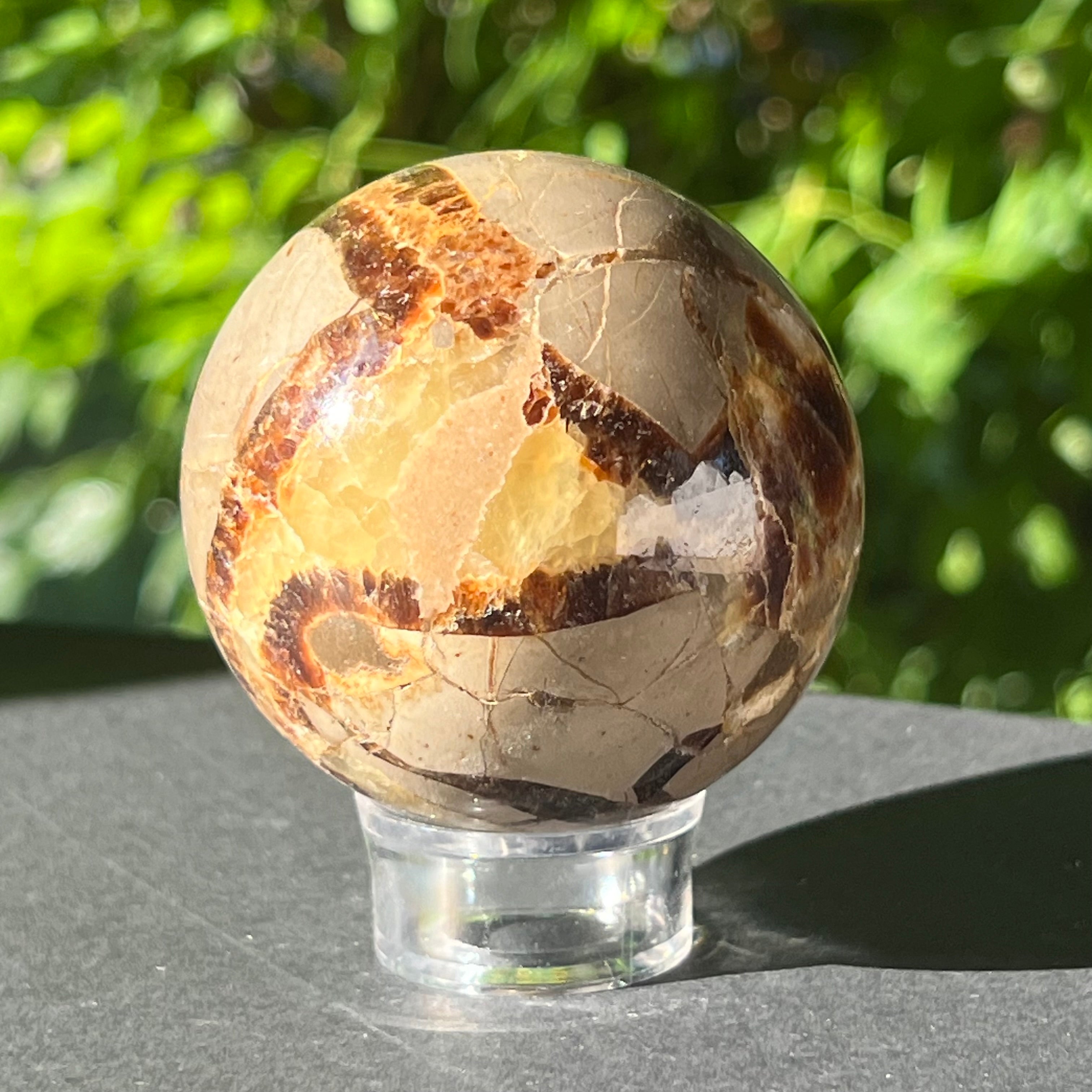 A Septaria kalcitból, limonitból, gipszből és baritból áll, amelyek egyedi játékot alkotnak ebben a kőben, és különleges megjelenést kölcsönöznek neki.