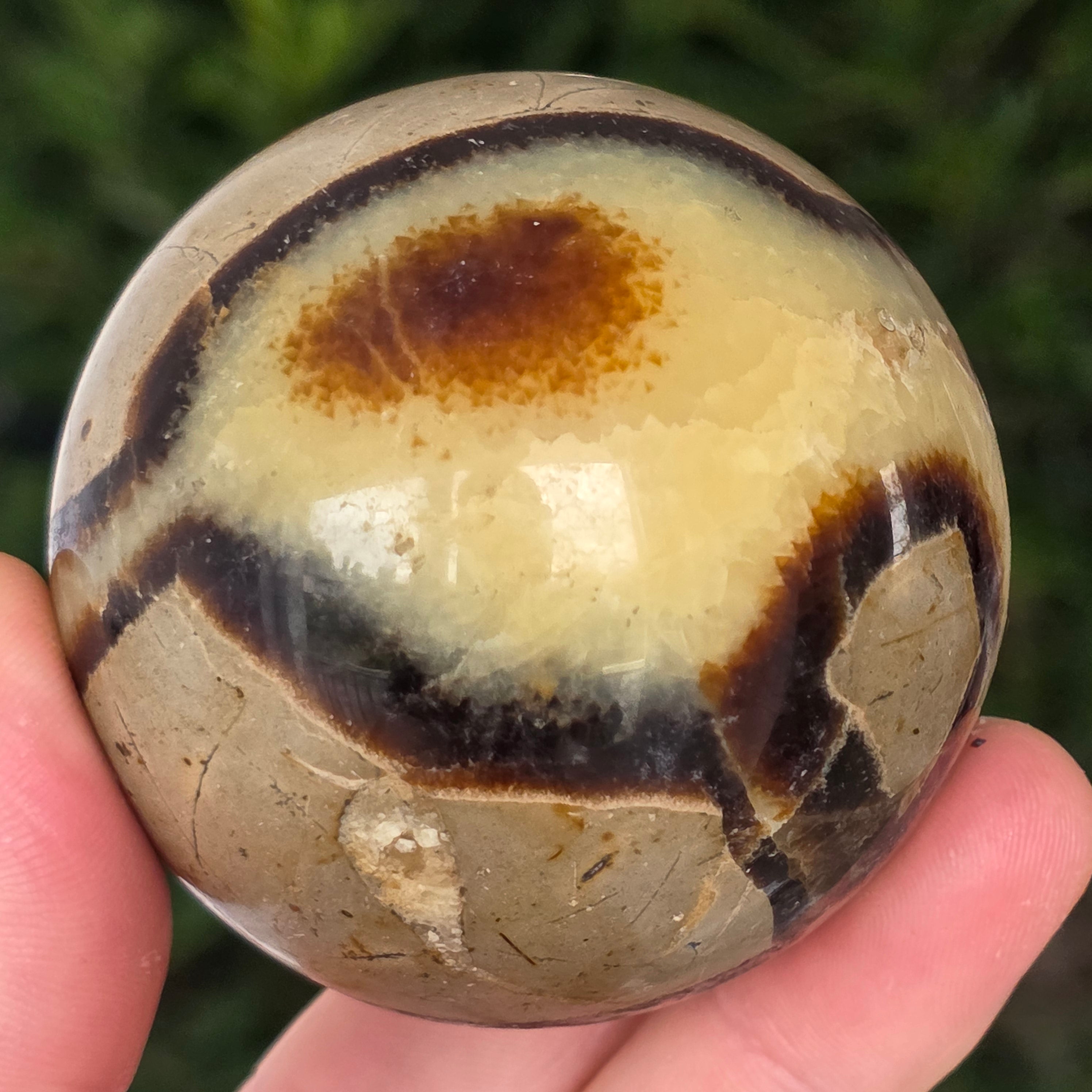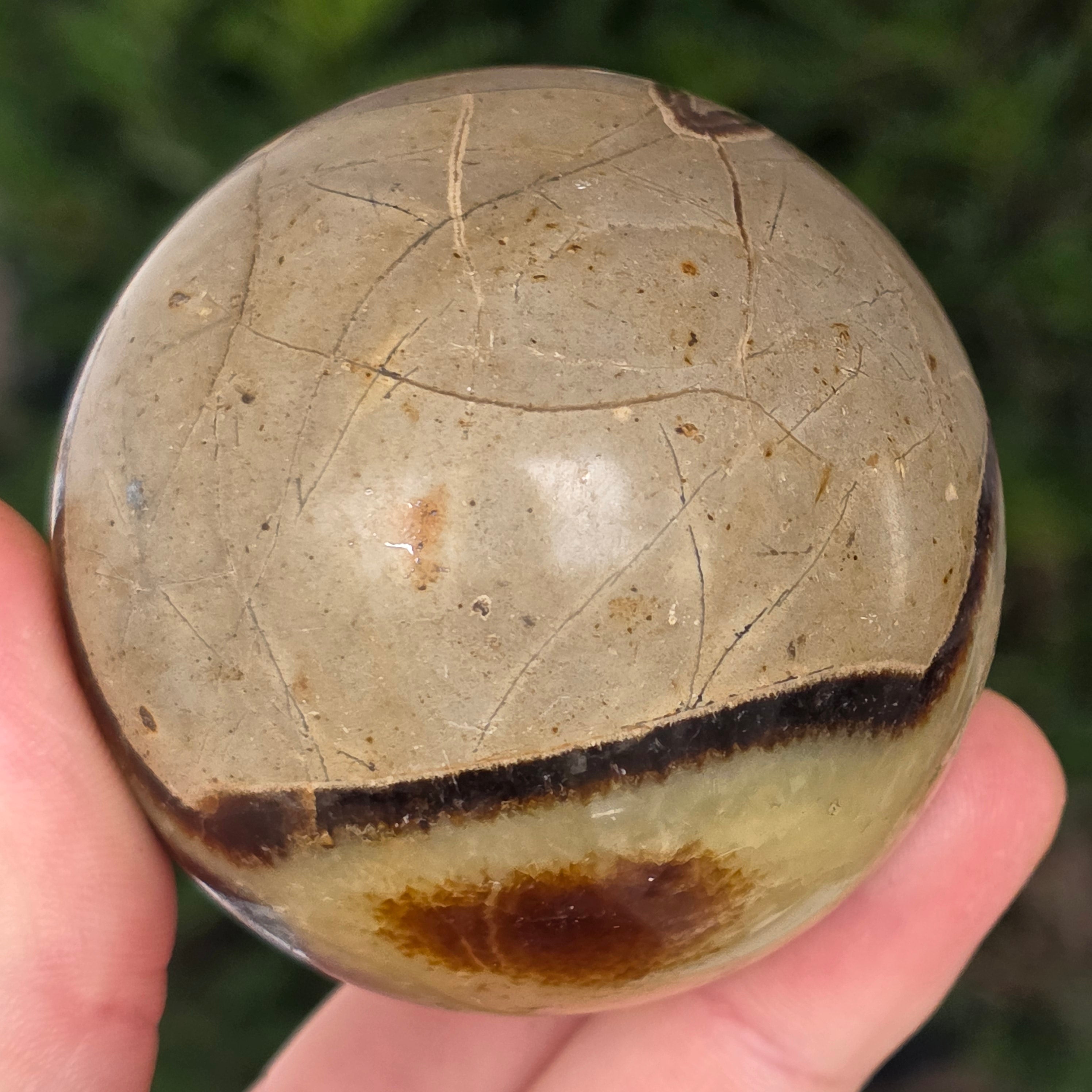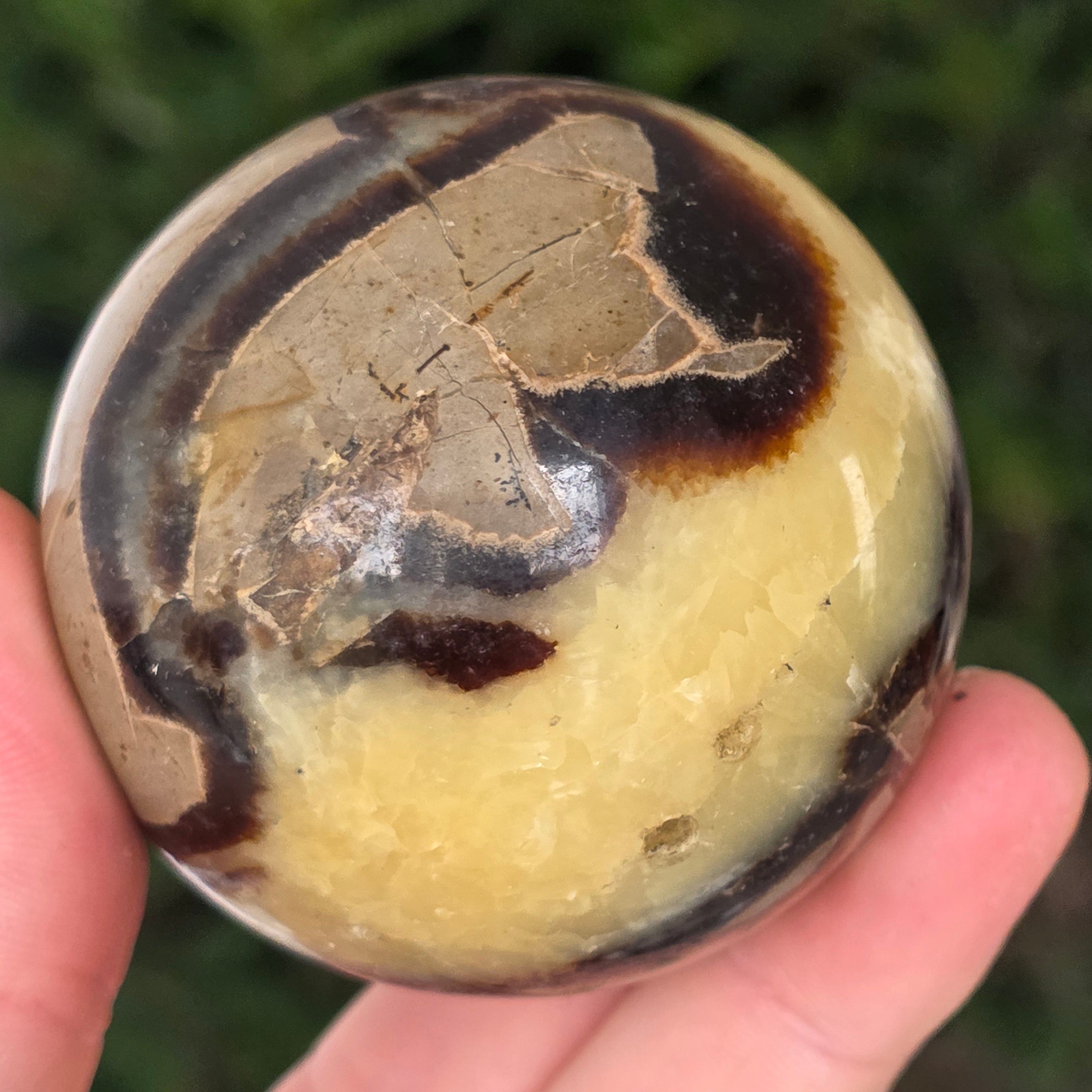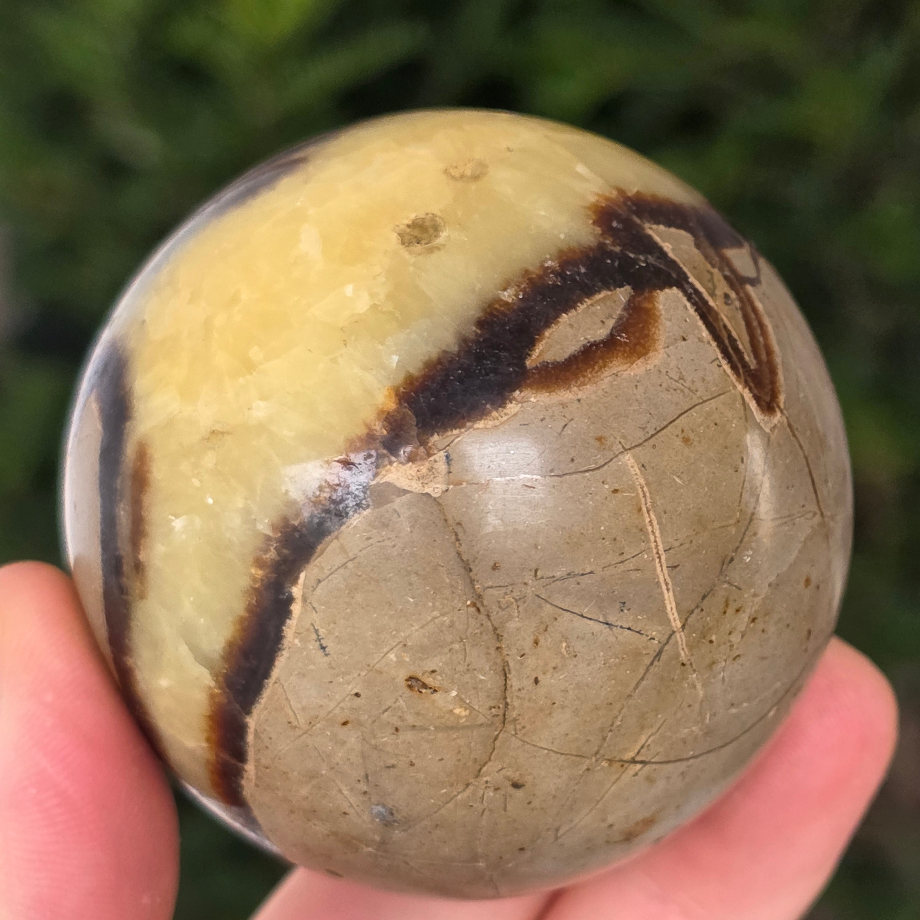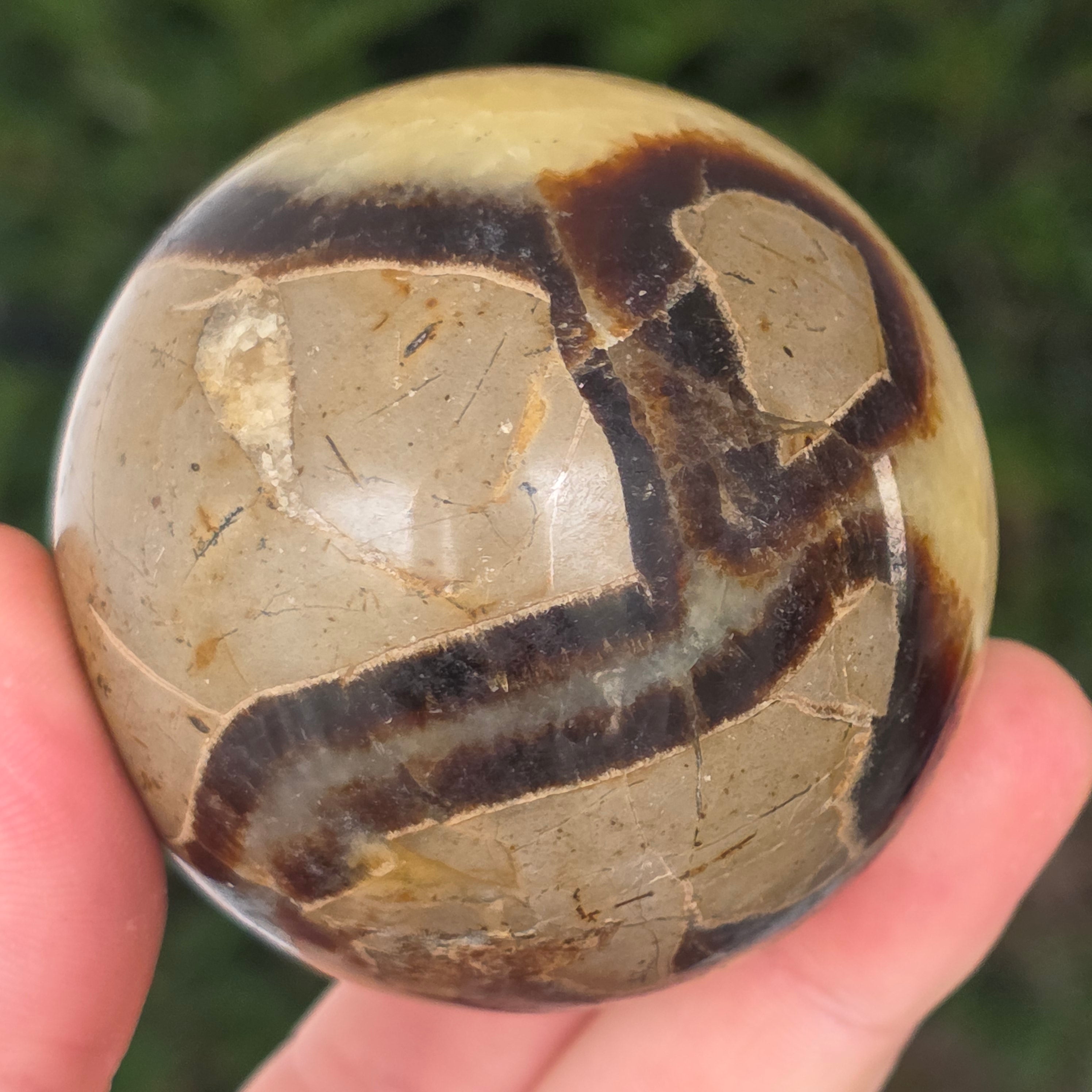 A Septaria kalcitból, limonitból, gipszből és baritból készül, olyan ásványokból, amelyek egyedi játékot alkotnak ebben a kőben, és különleges megjelenést kölcsönöznek neki.