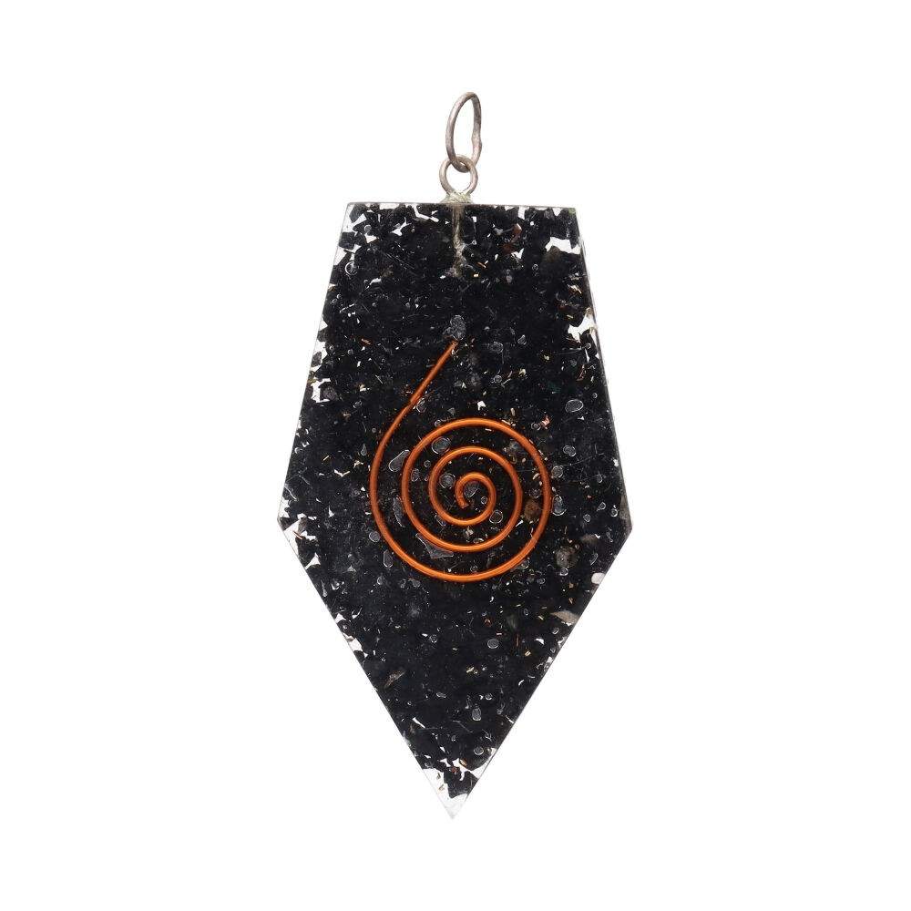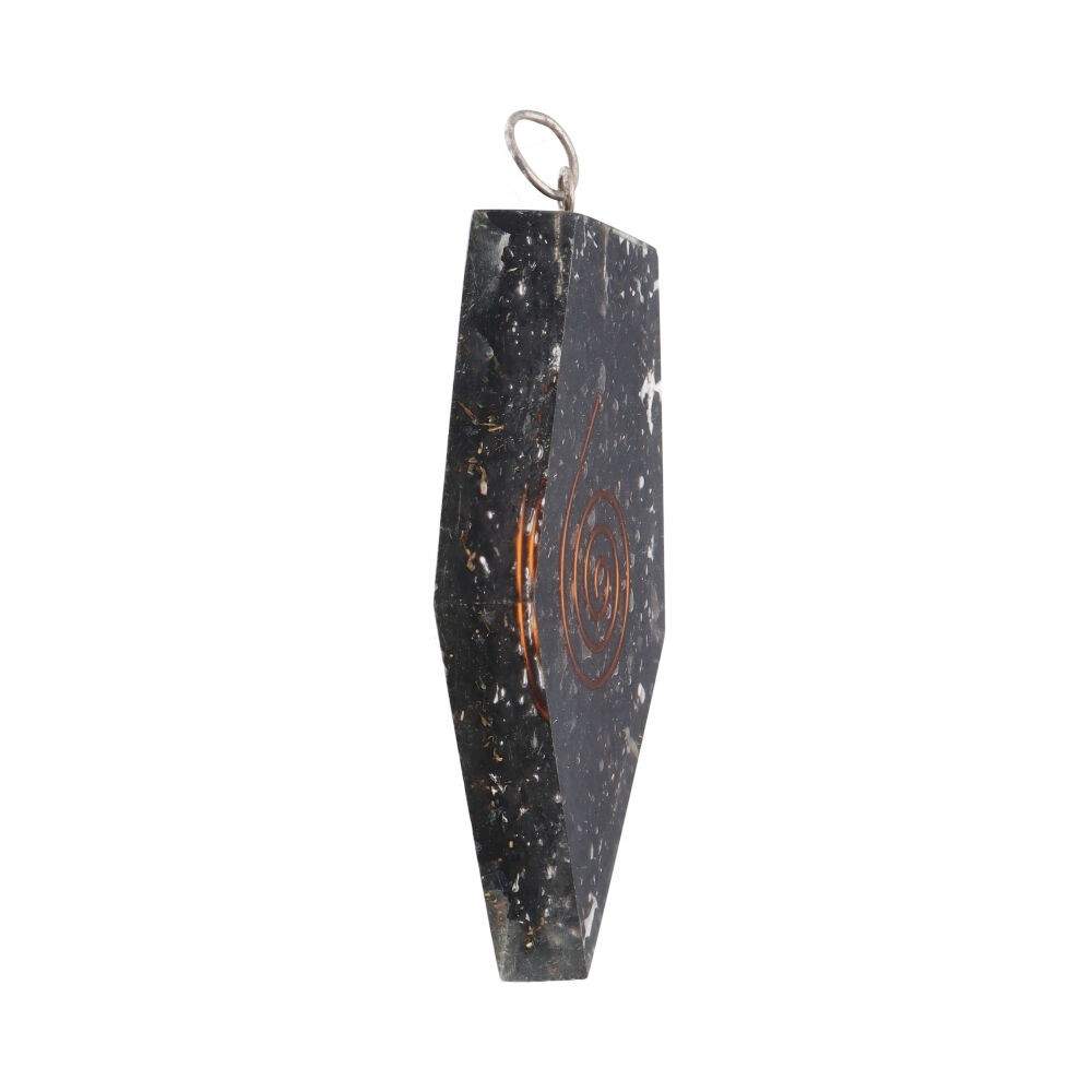 Ez Ötszögletű orgonit medál, amely Shungita és réz, egy talizmánként tervezve Energiavédelem és a személyes terület harmonizációja.