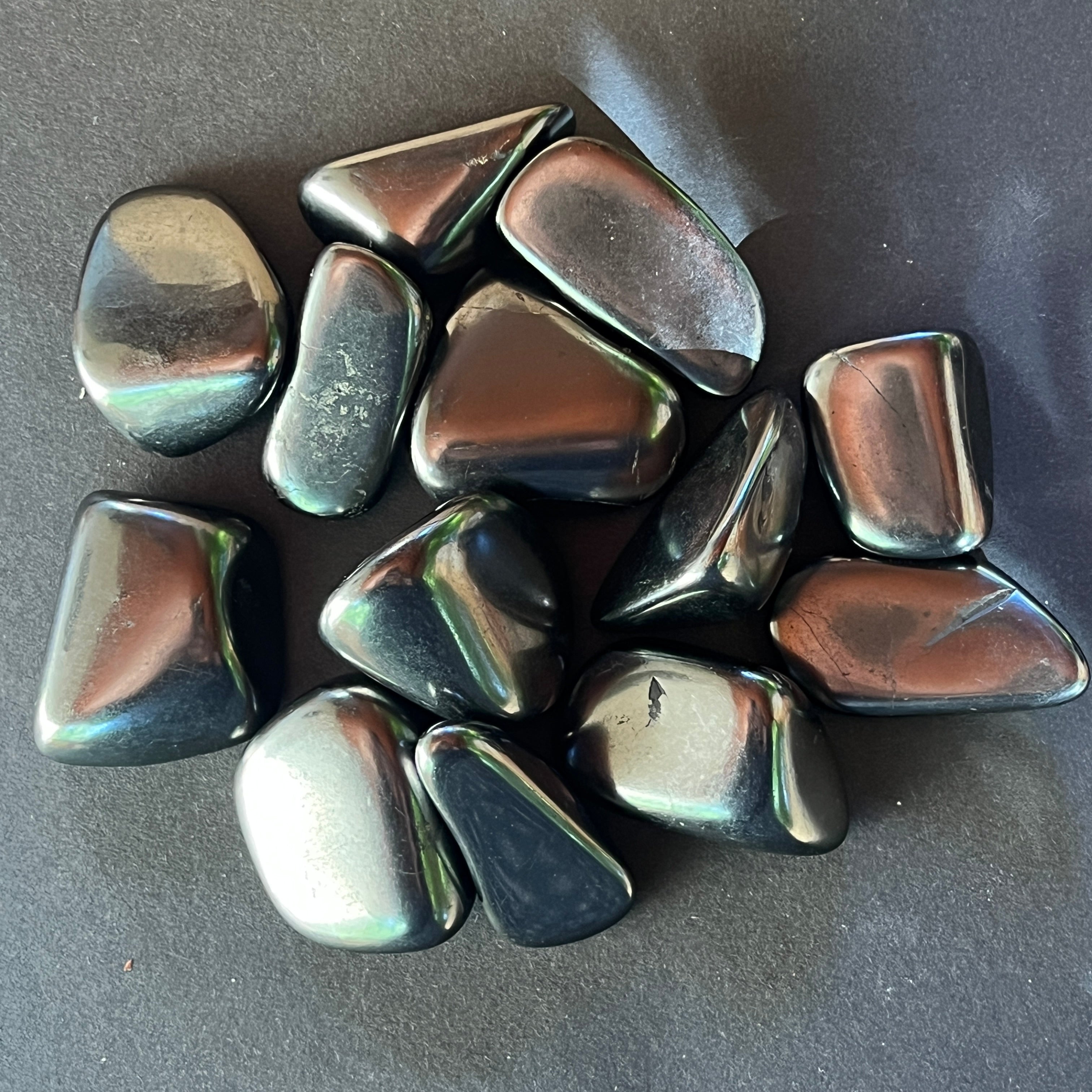 Shungit görgetett kő L modell 2, méretei 3-5 cm között.