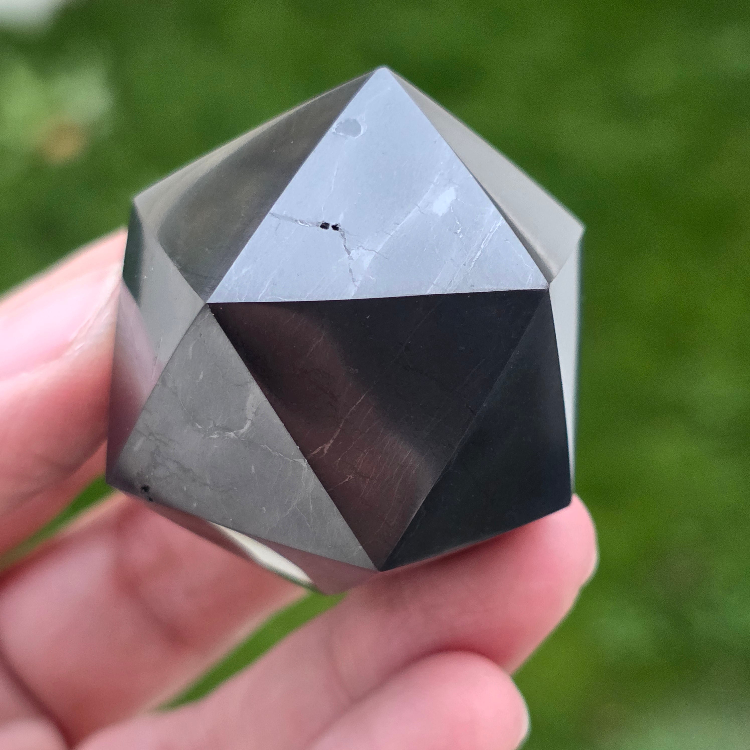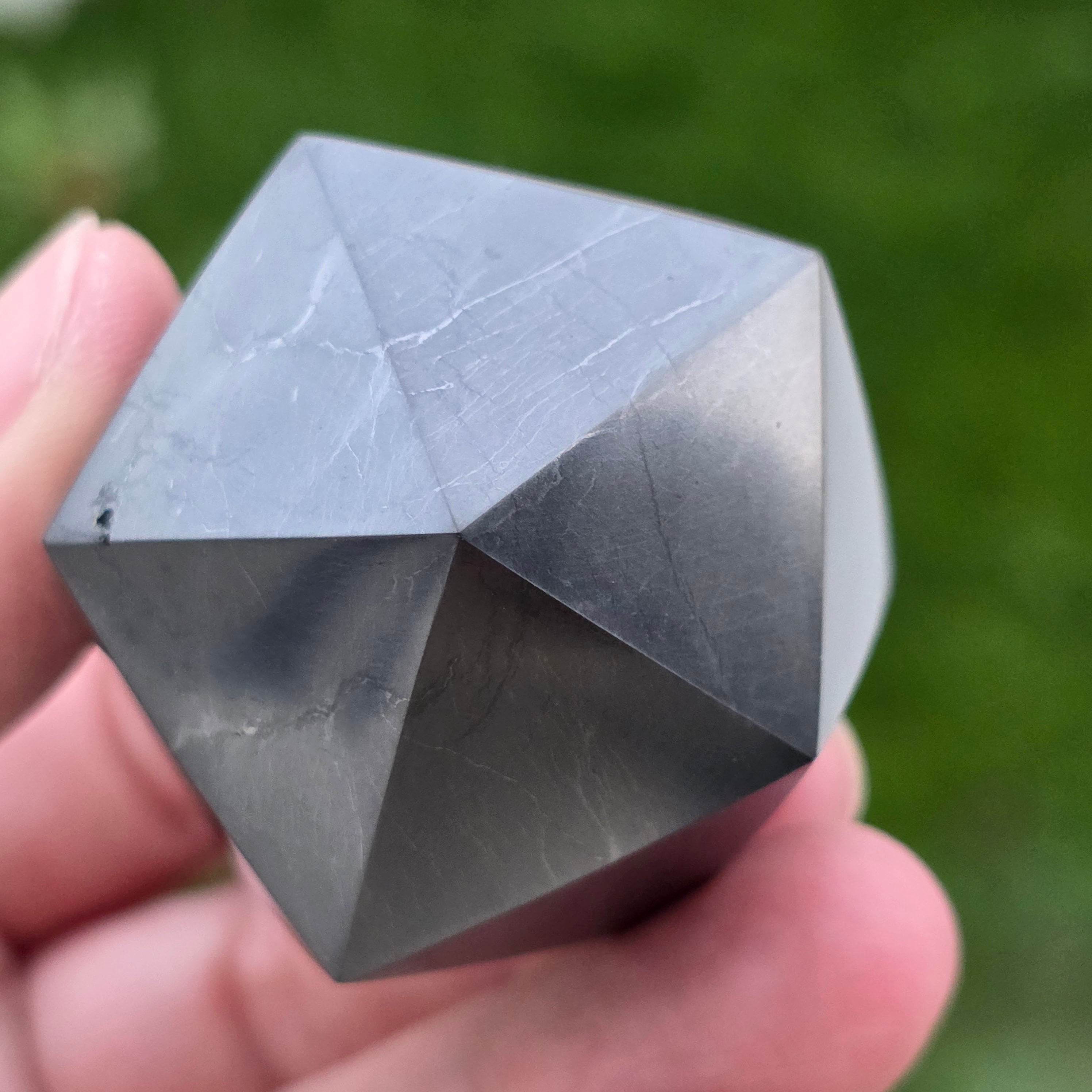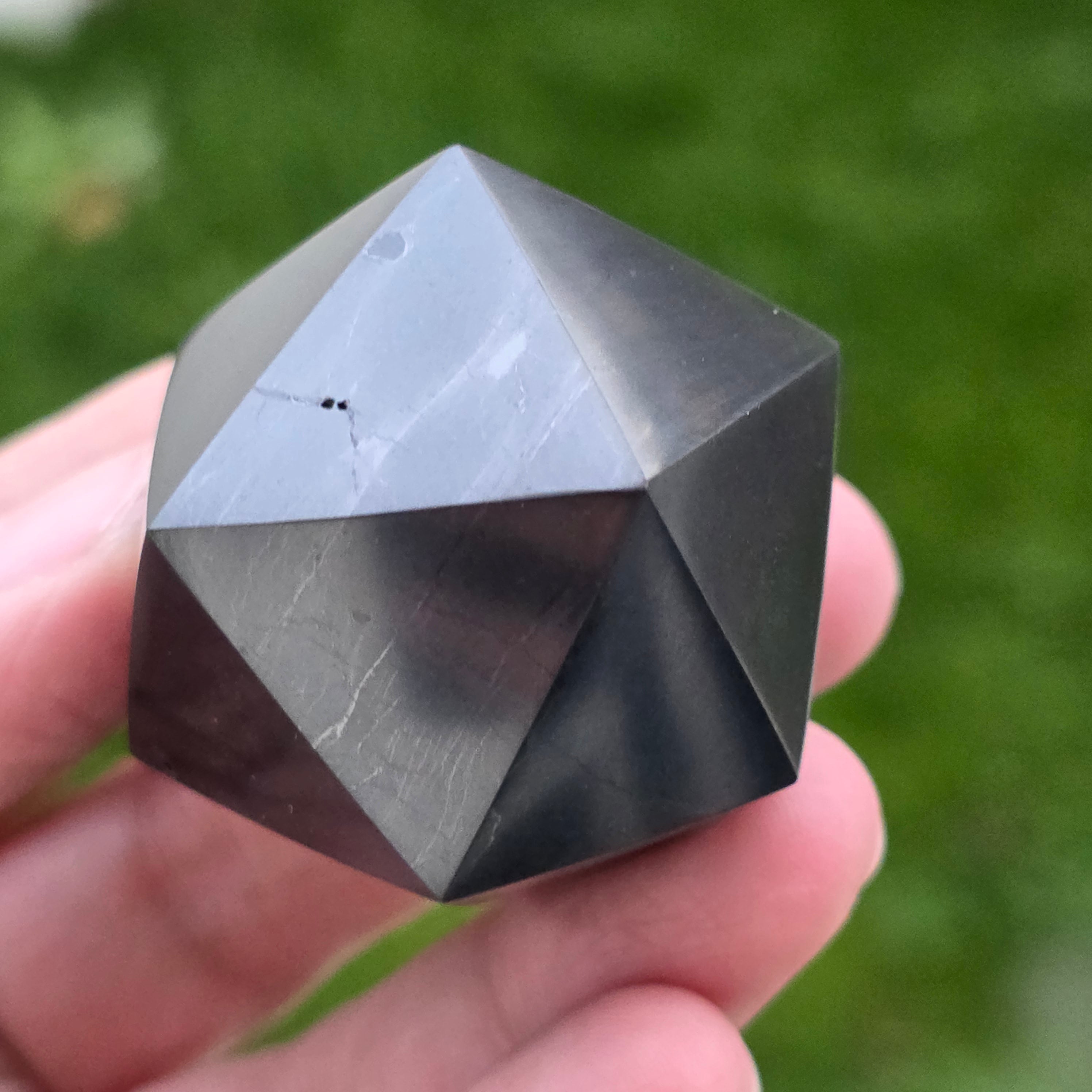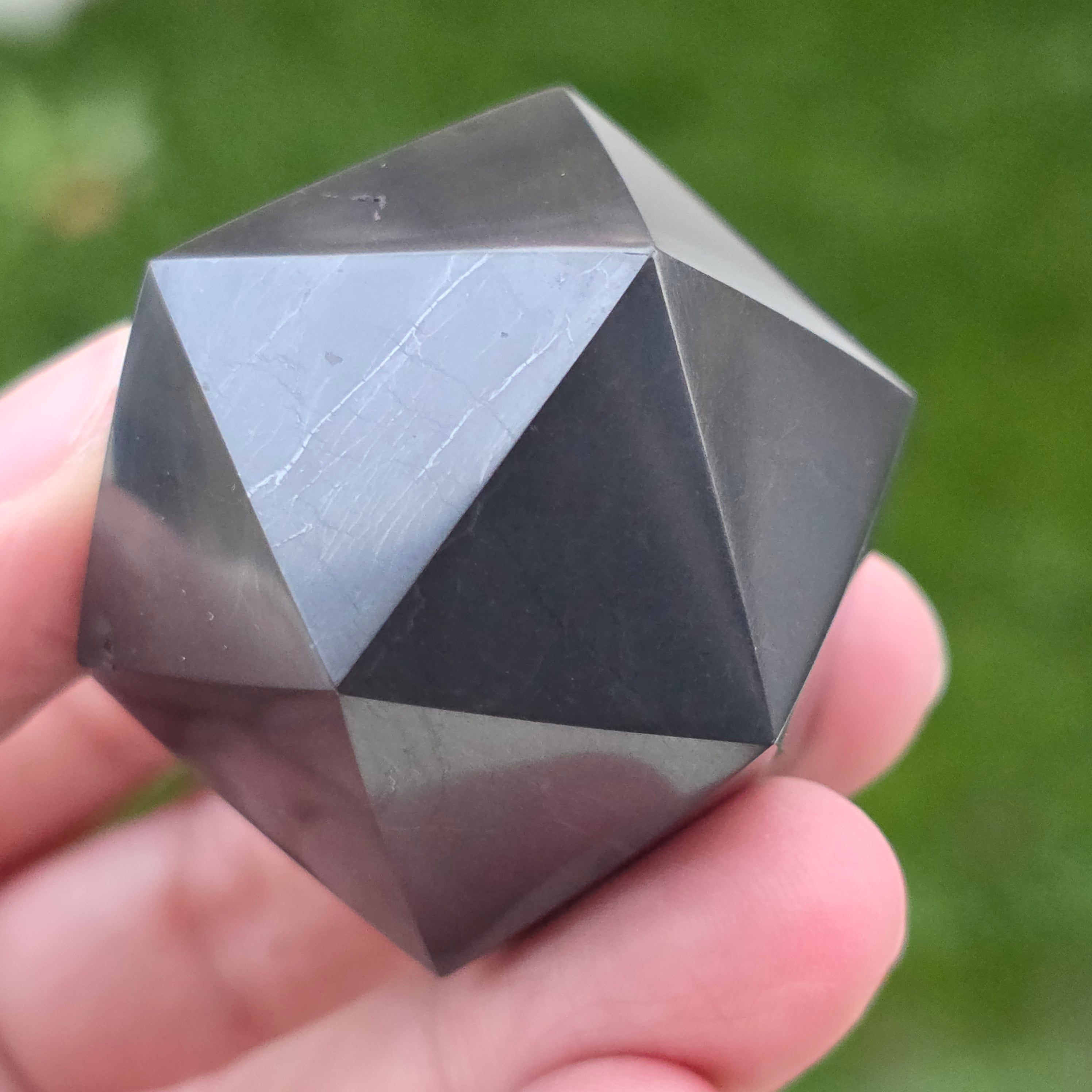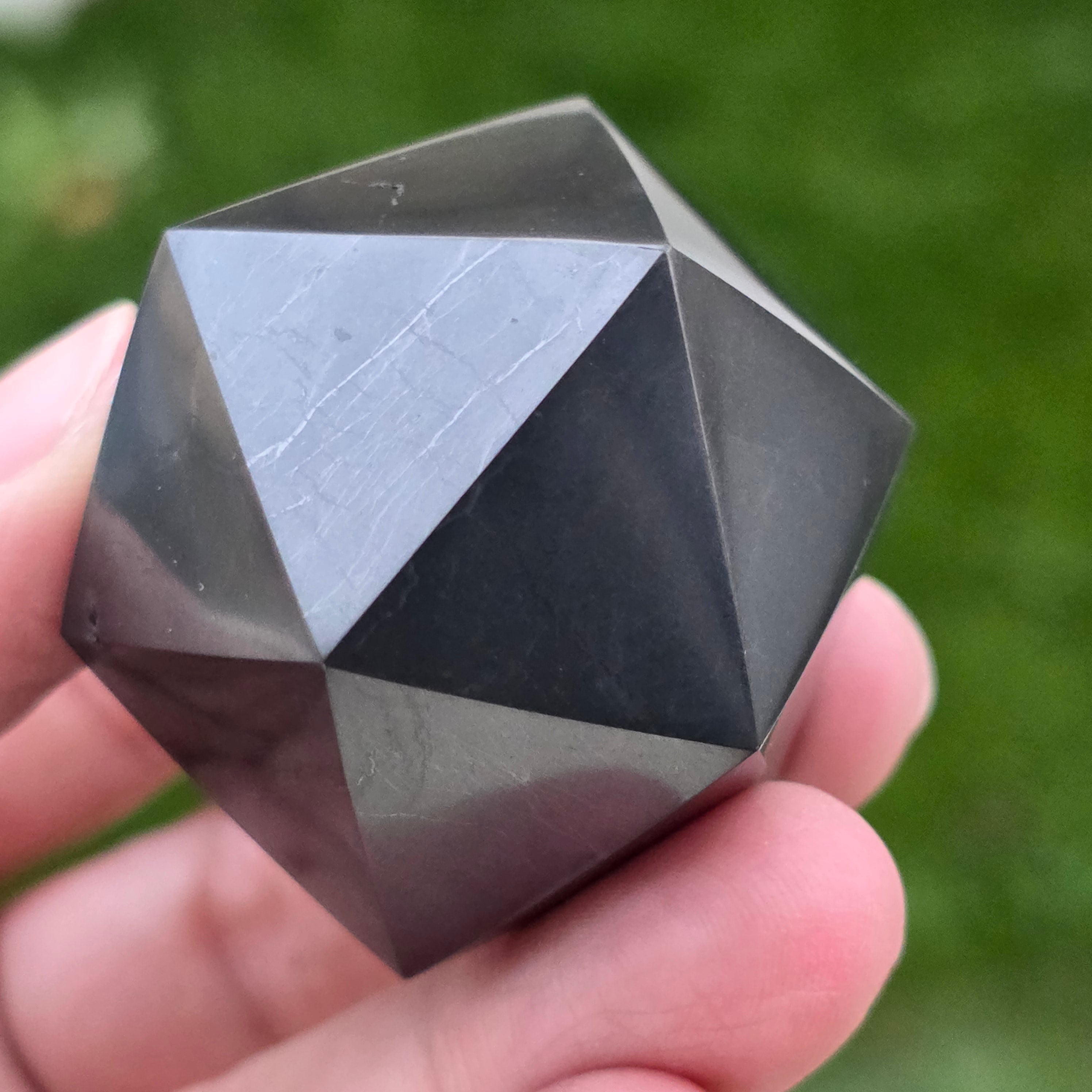 A shungit icosaéder a víz elemhez és az érzelmek természetes áramlásához kapcsolódik. A szent geometriában ez a forma az alkalmazkodóképességet, a rugalmasságot és a változások rezisztencia nélküli elfogadásának képességét szimbolizálja.