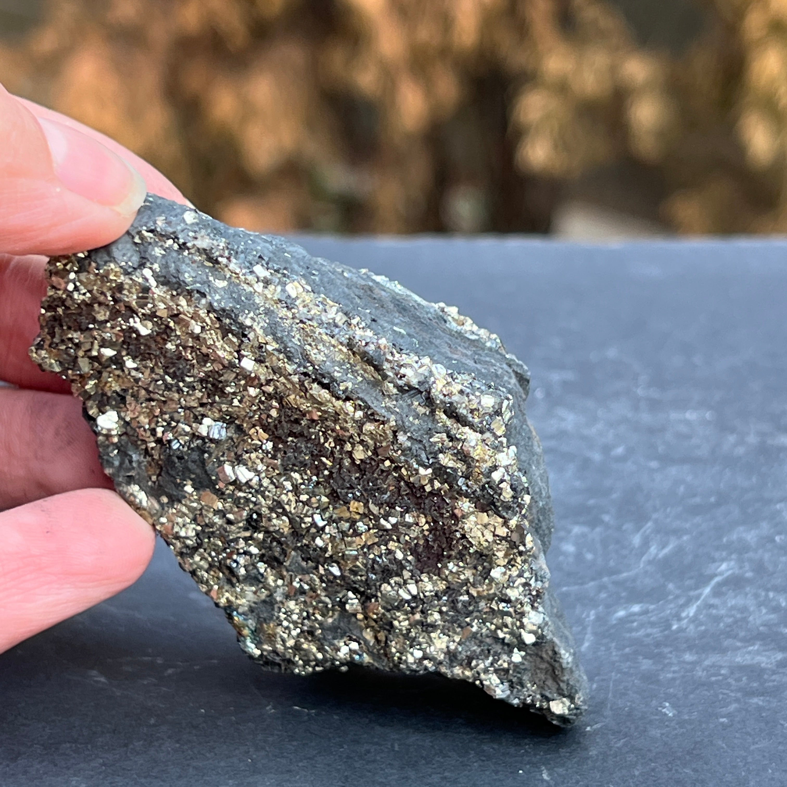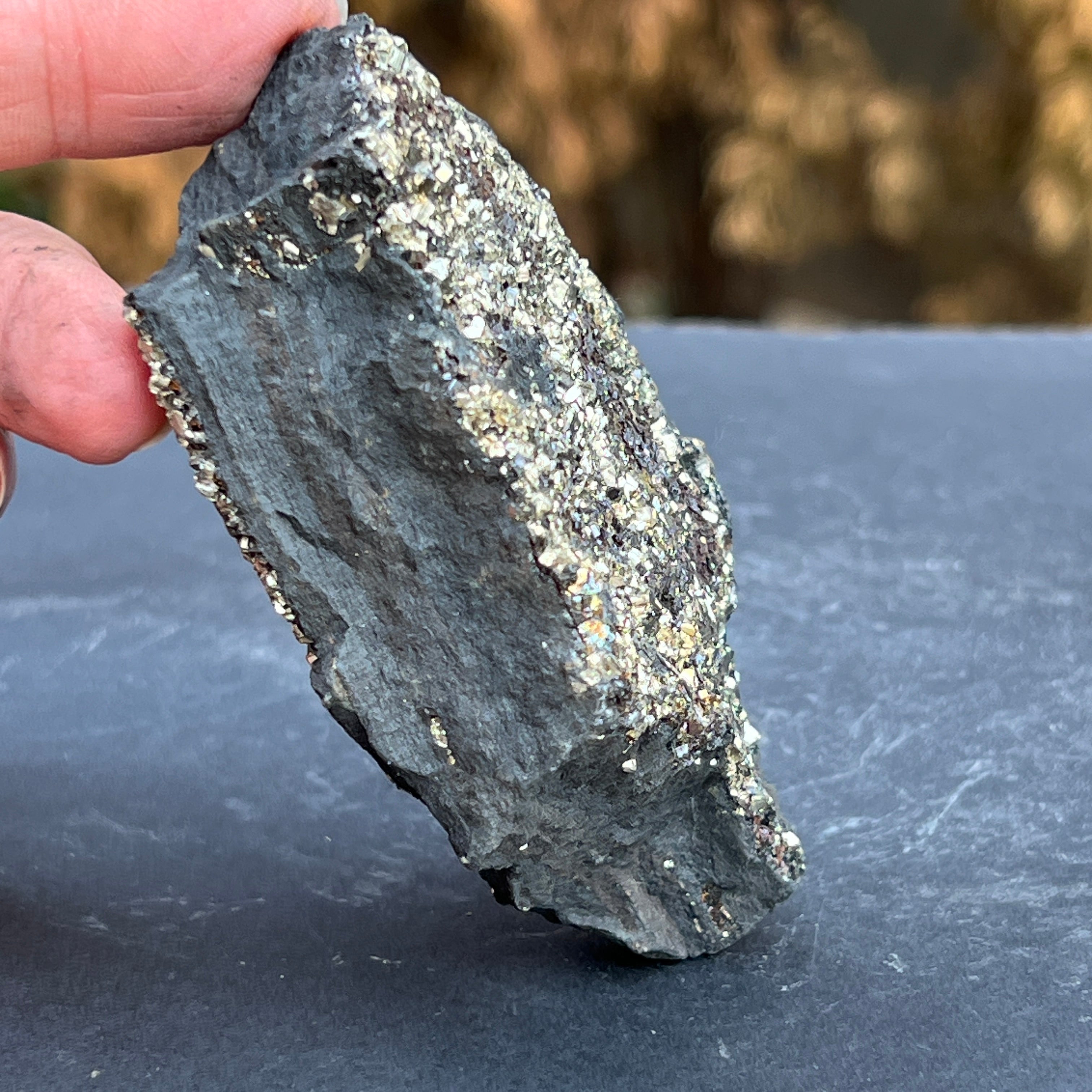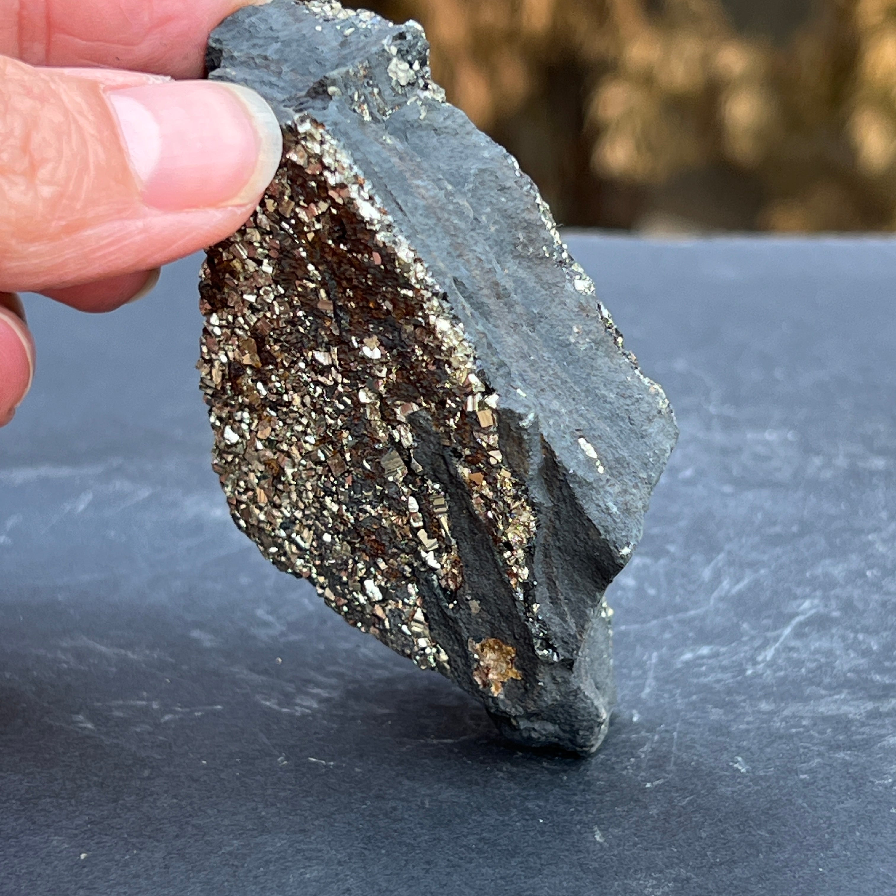 Shungit piritával, 5. modell, méret: 8,3 * 4,5 * 2,6 cm