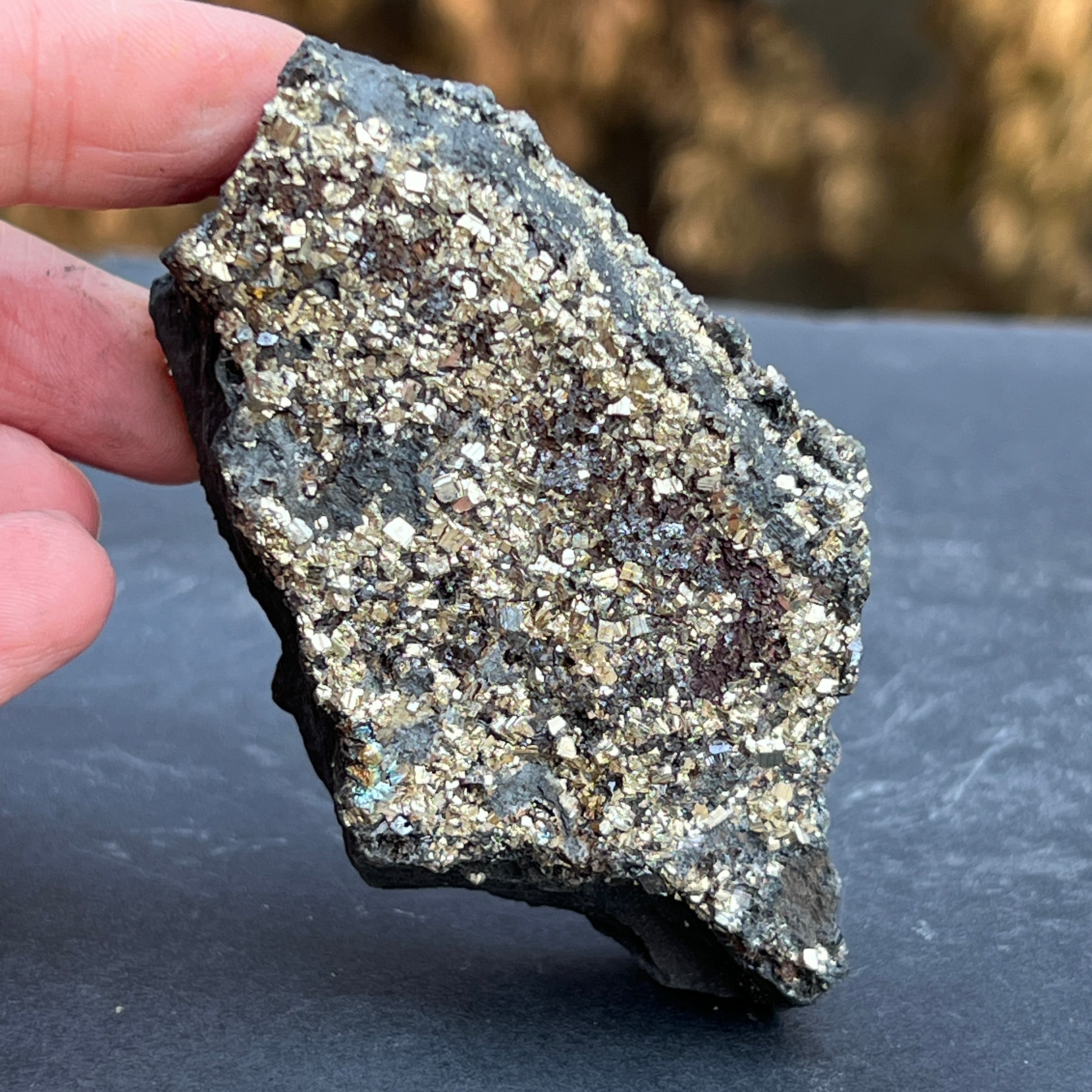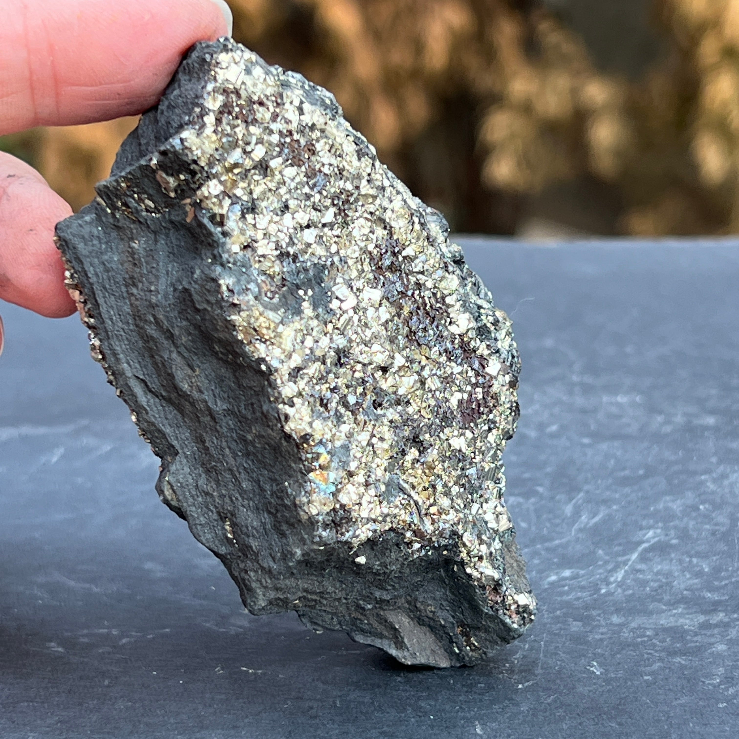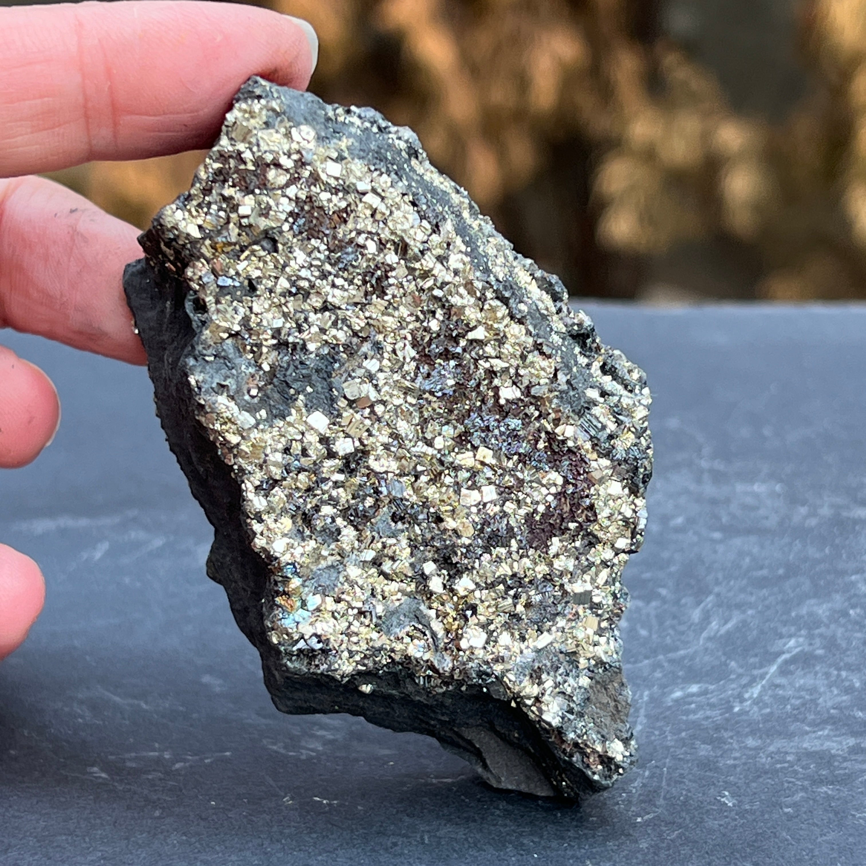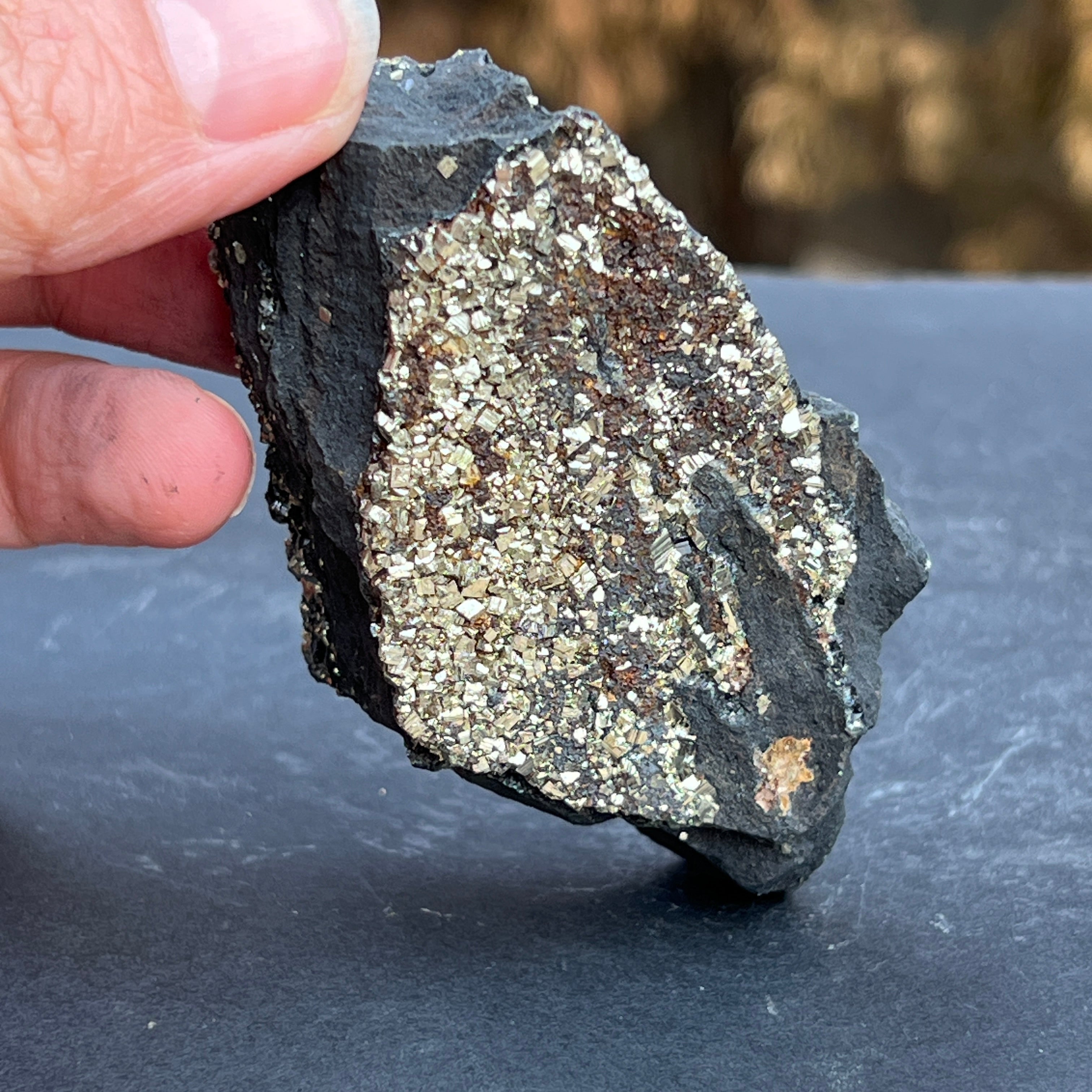 Shungit piritával, 5. modell, méret: 8,3 * 4,5 * 2,6 cm