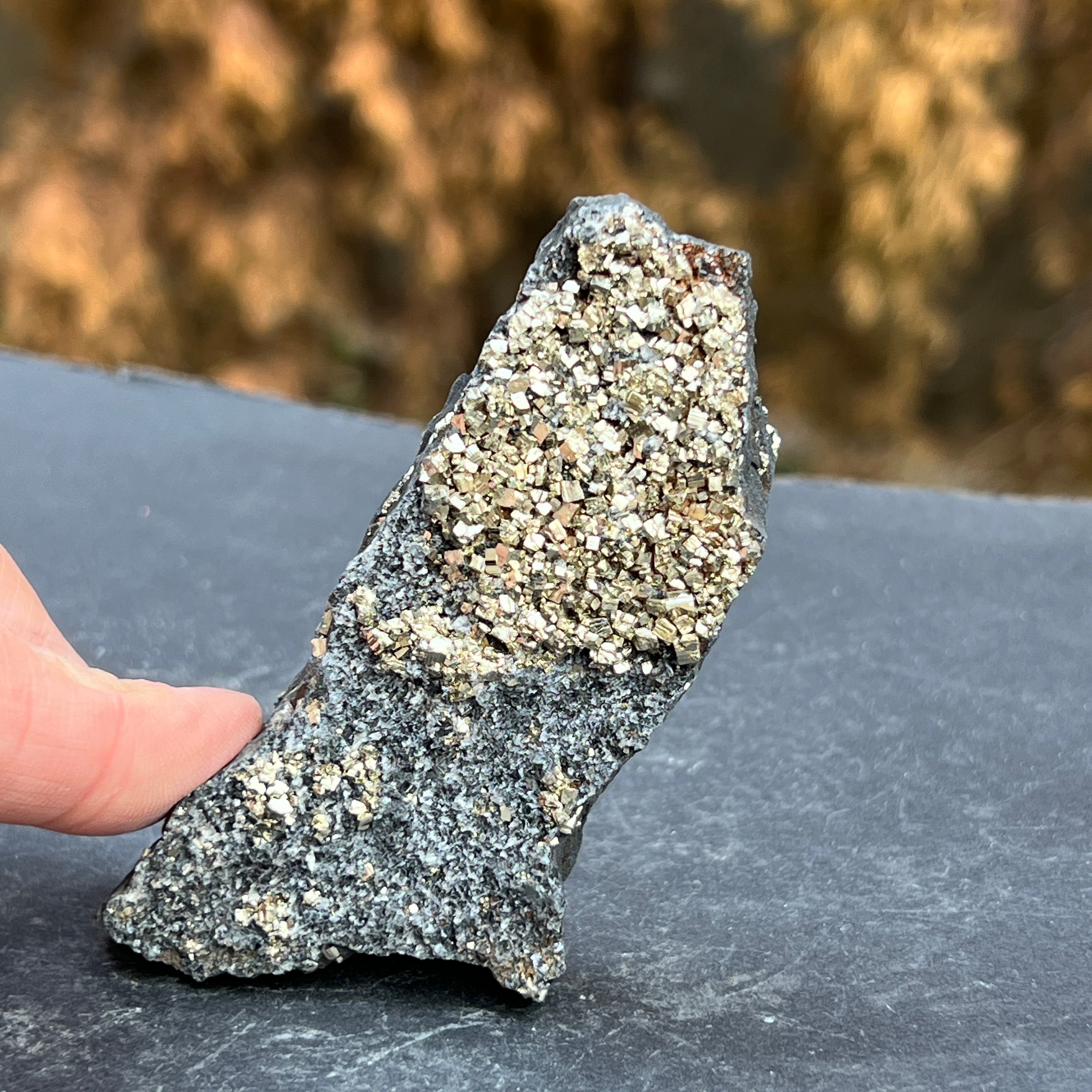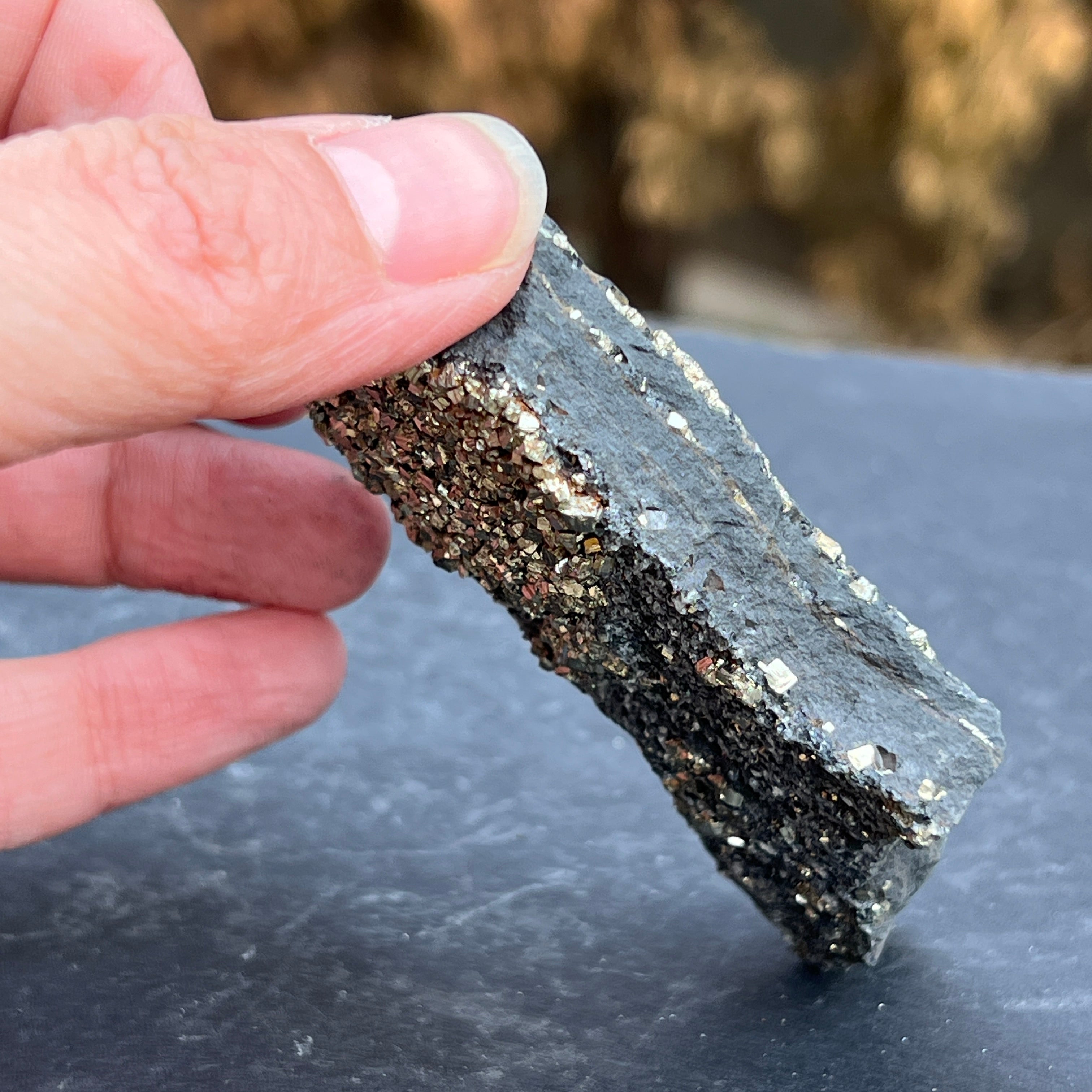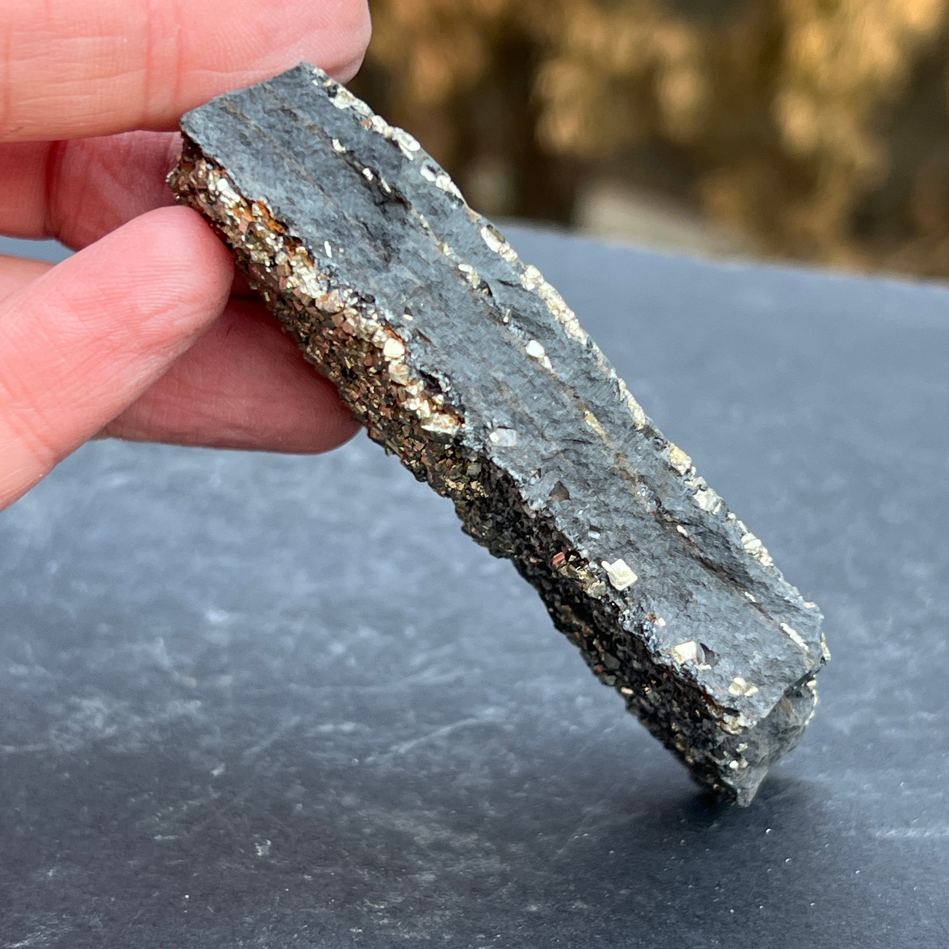 Shungit piritával, 7. modell, méret: 8,4 * 3,3 * 1,7 cm