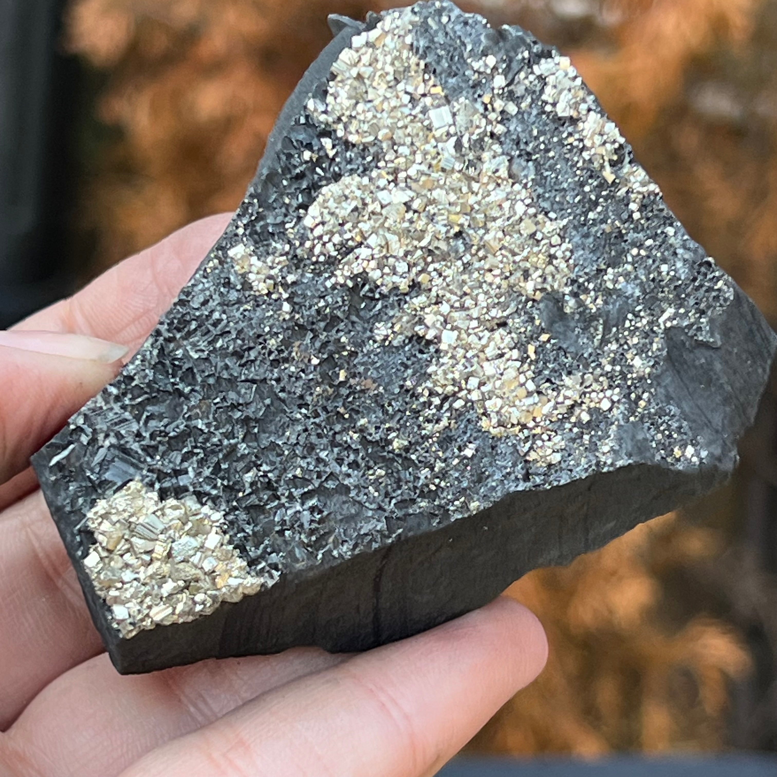 Shungit piritával, 8-as modell, méret: 7 * 5,5 * 2,5 cm