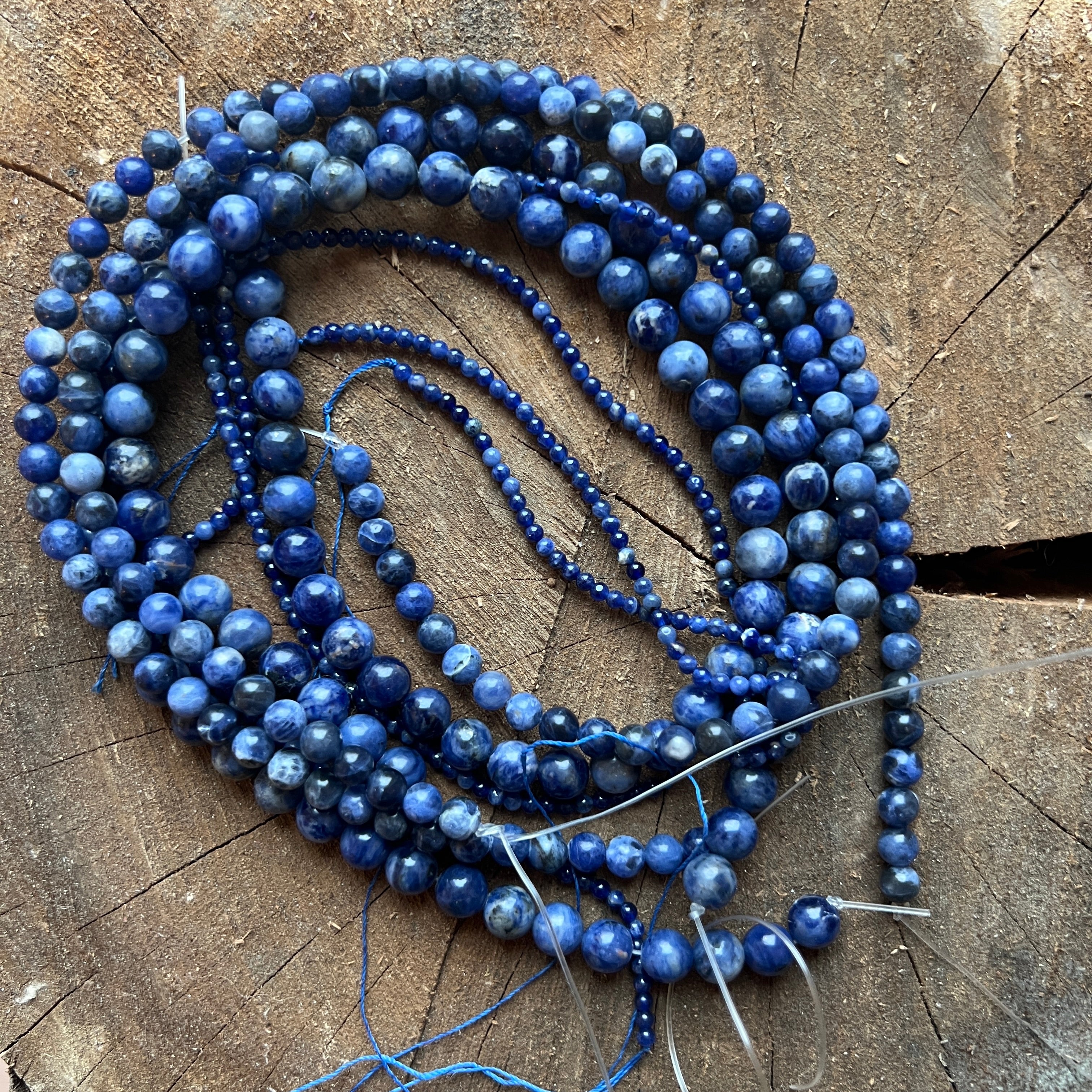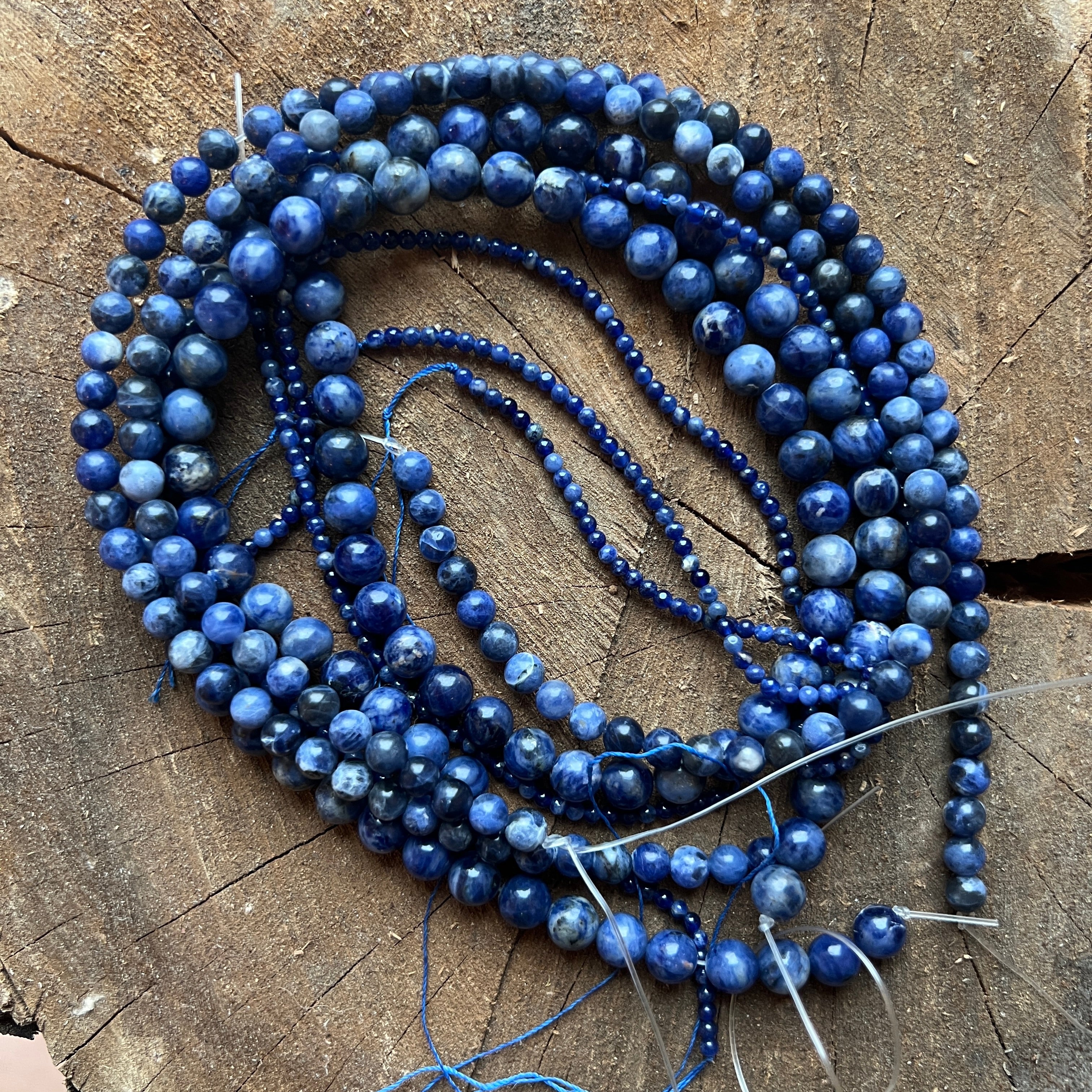 SODALIT szirup, amelyből áll természetes gömb alakú gyöngyök, tökéletes nyaklánchoz, karkötőhöz vagy más kézzel készített ékszerhez.