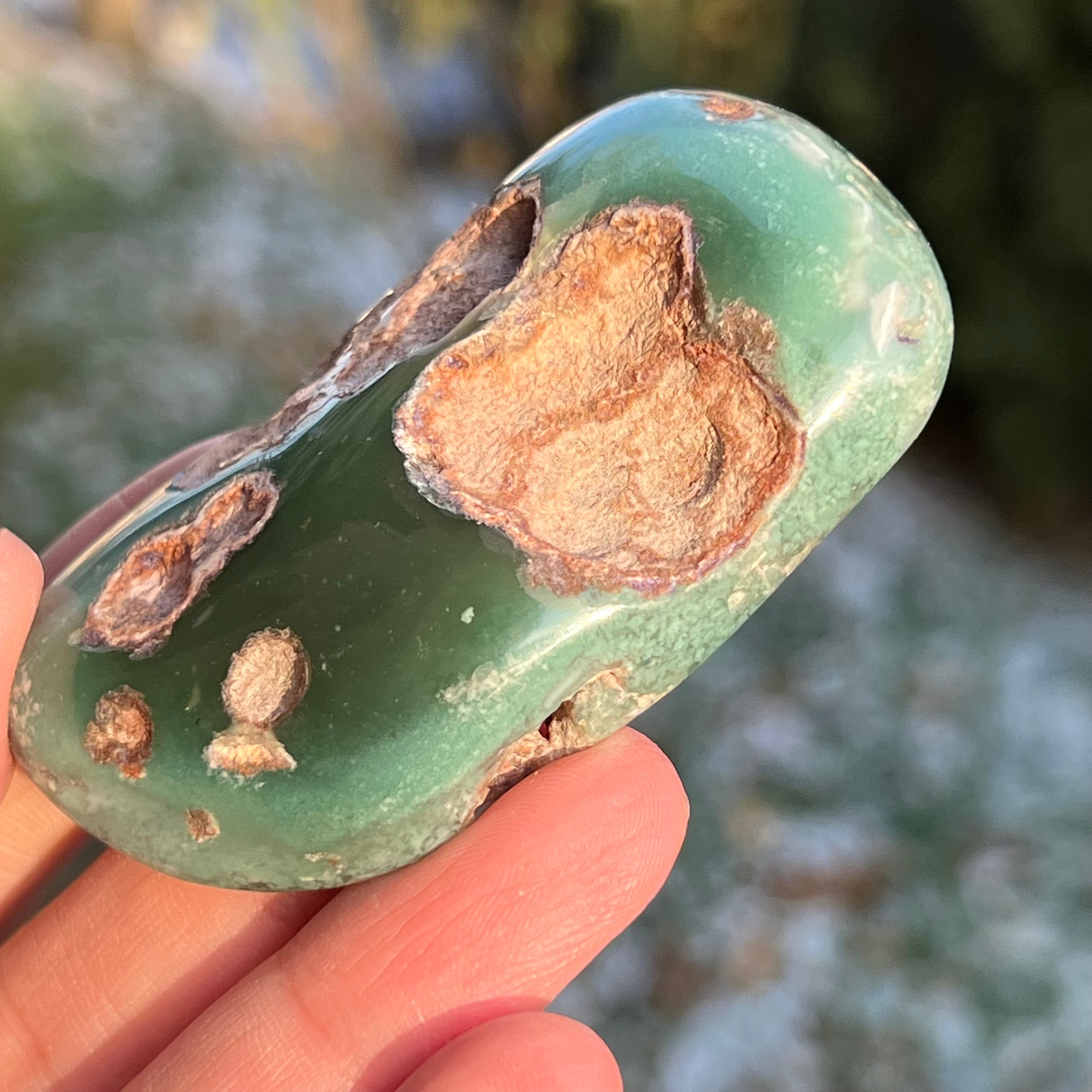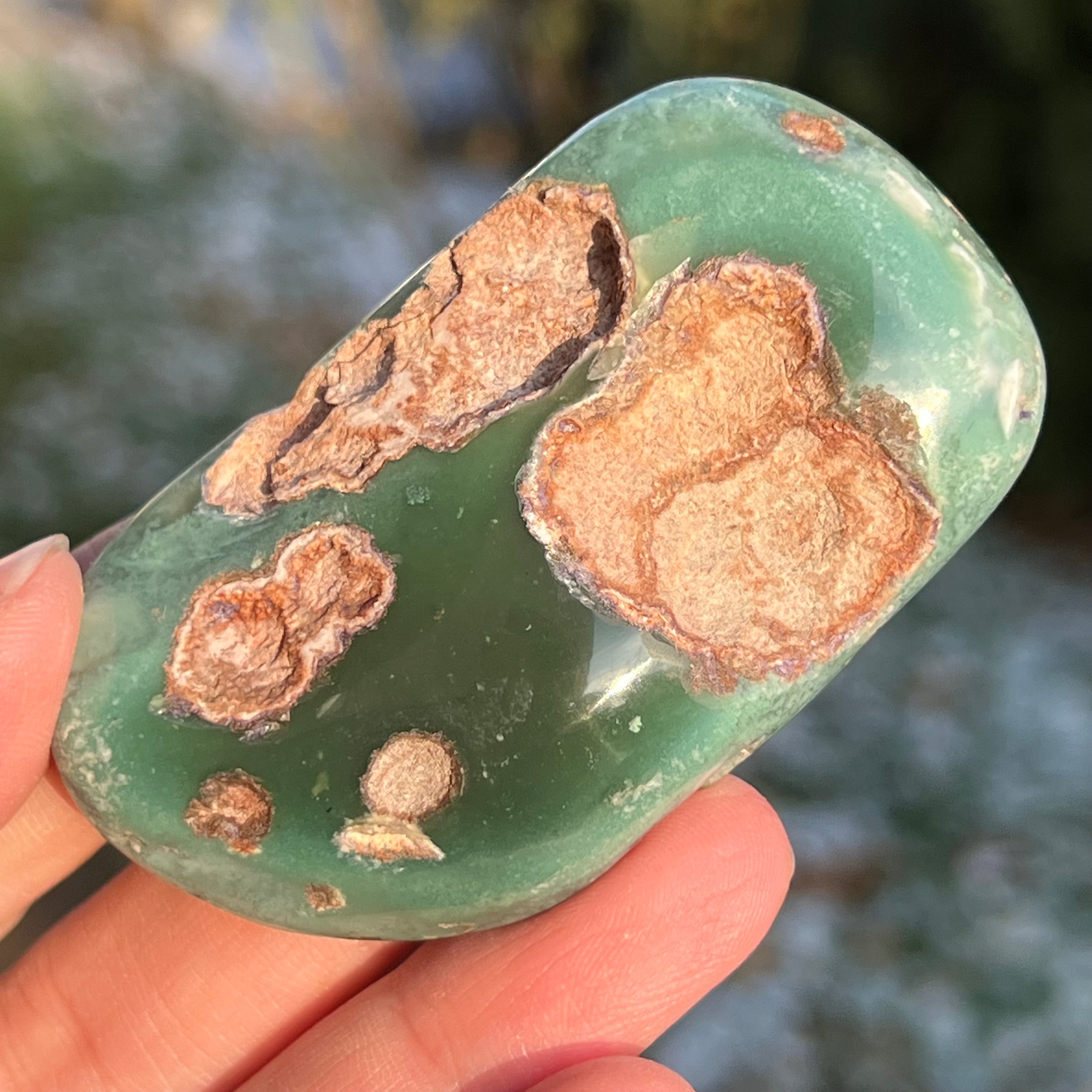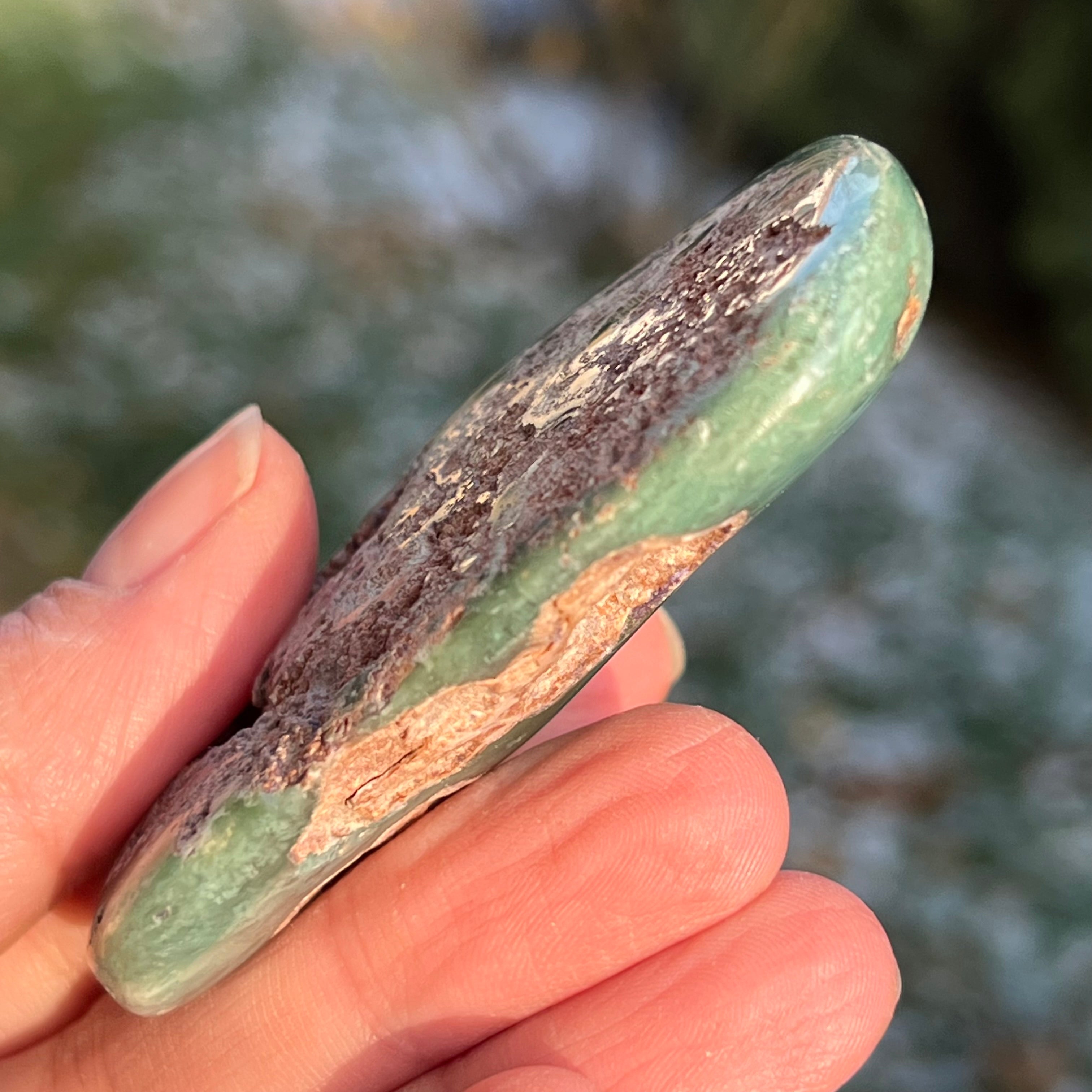 Smaragd Chrysoprase Palmstone Model 4 Zimbabwéből, méret: 6,9*4*1,5 cm